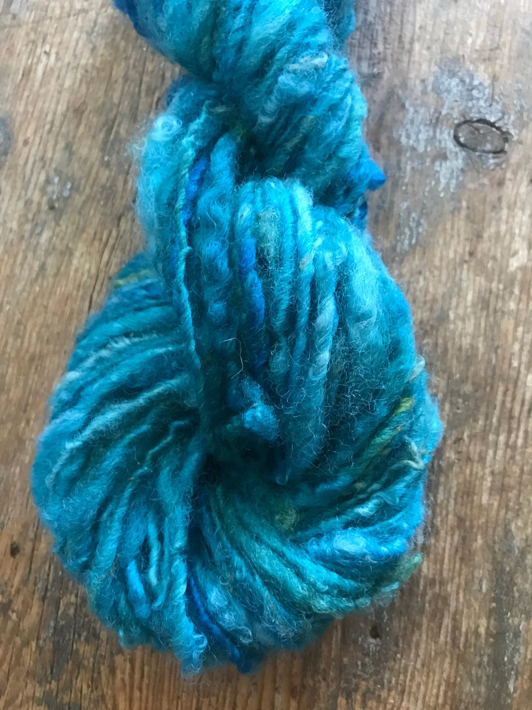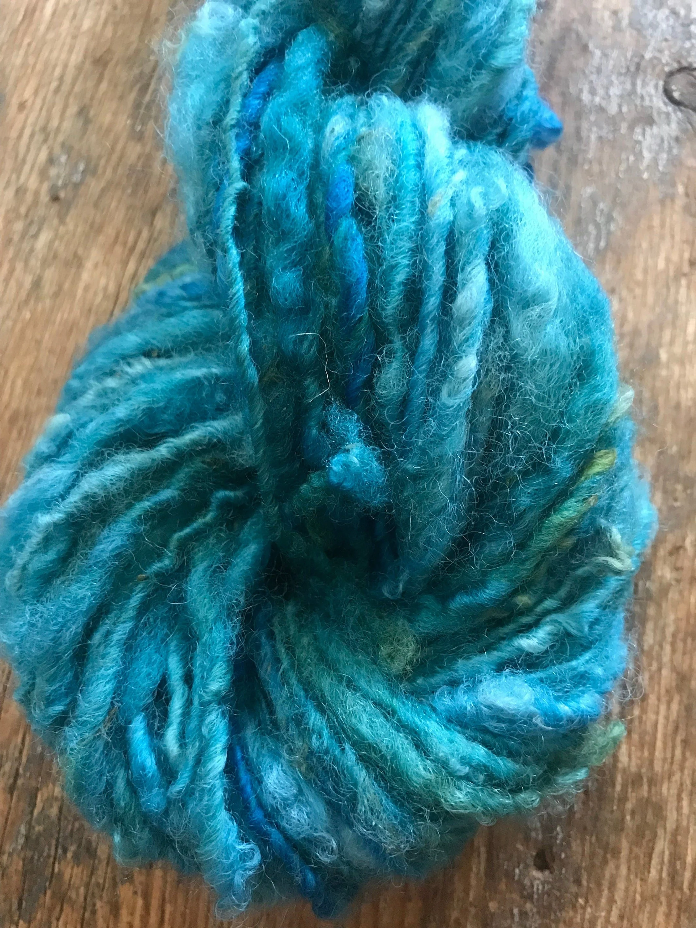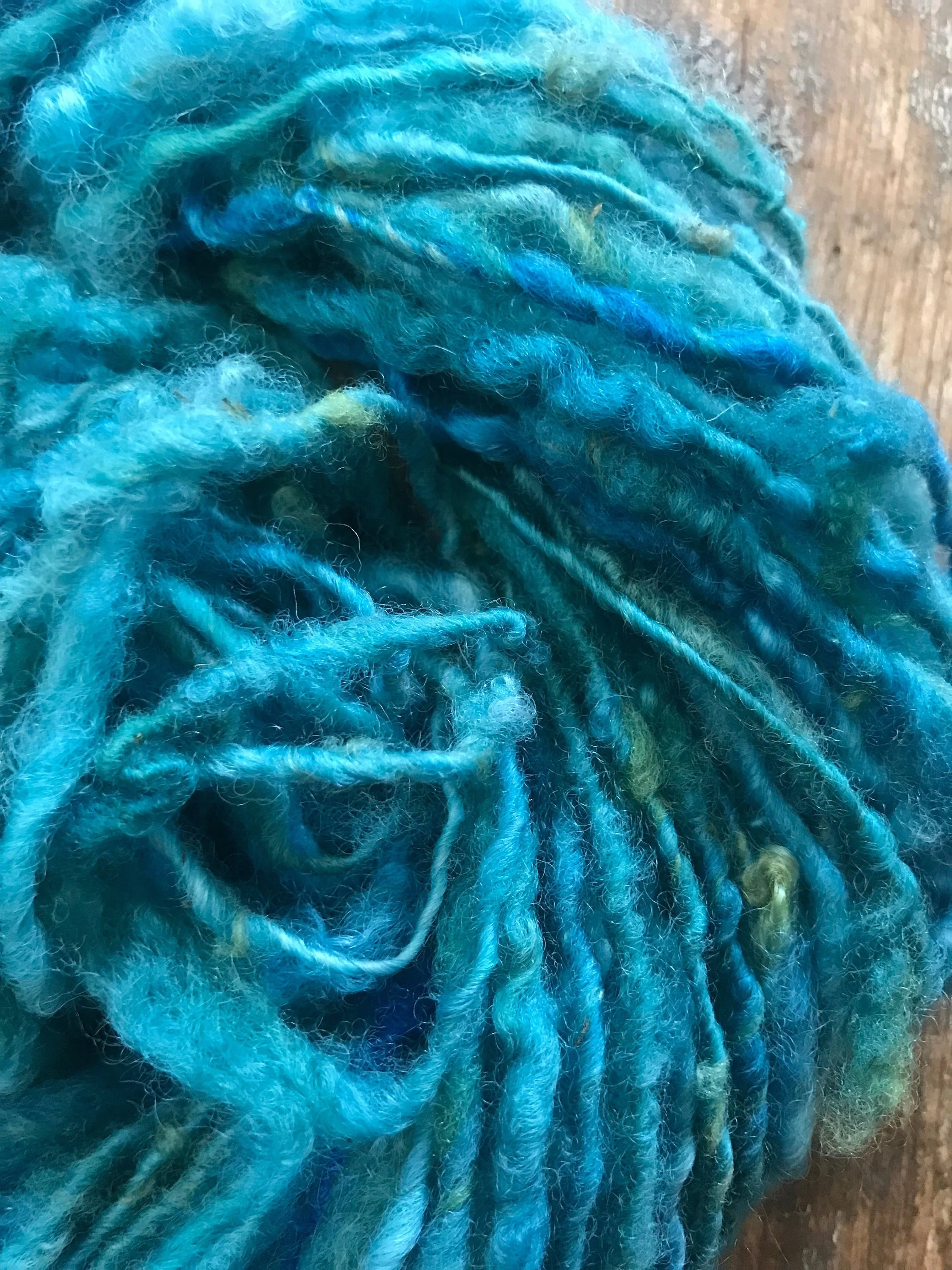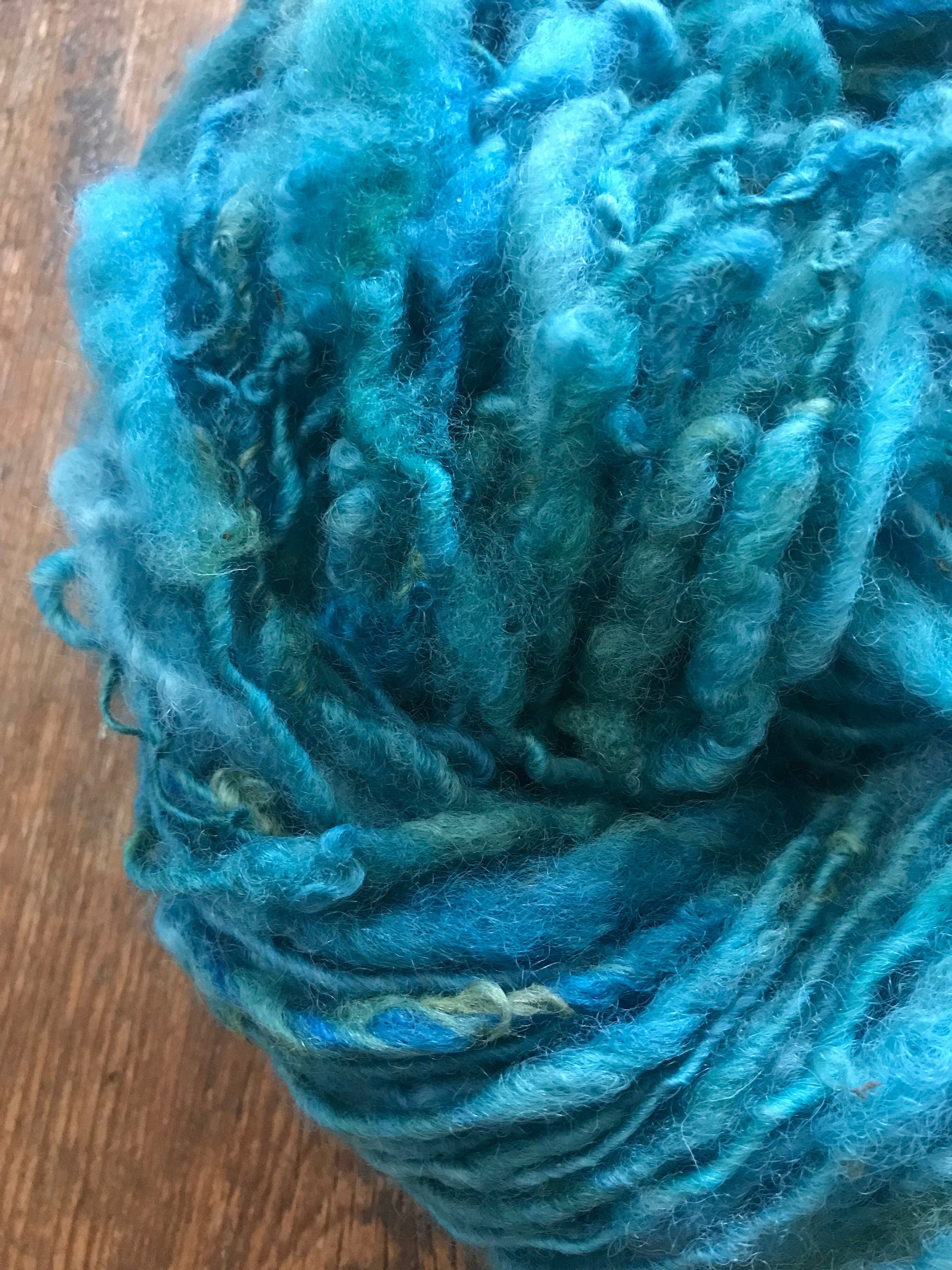 Chicory Blossom - blue green nubbly squishy Southdown wool art yarn