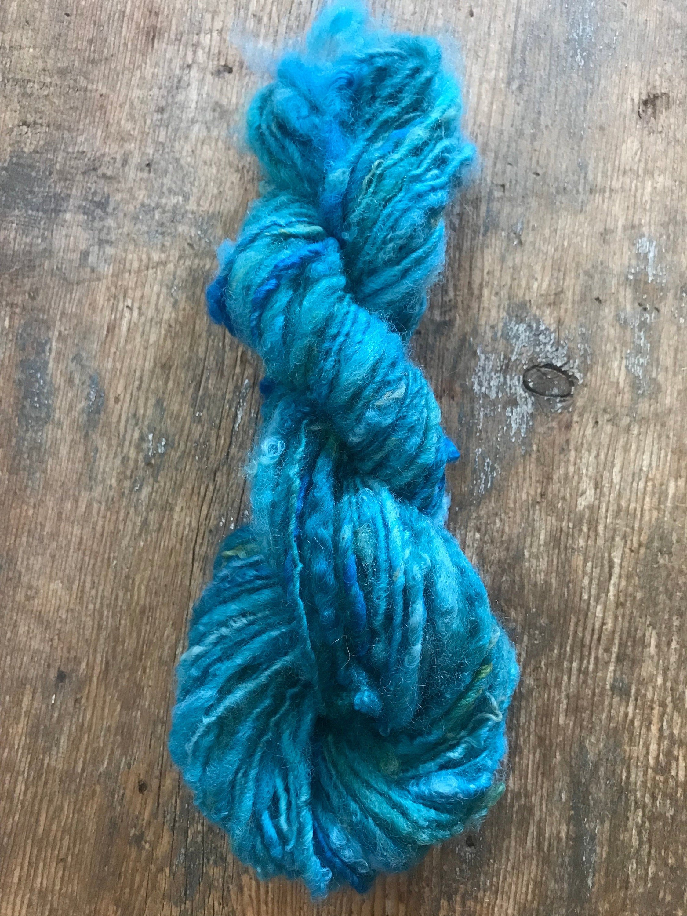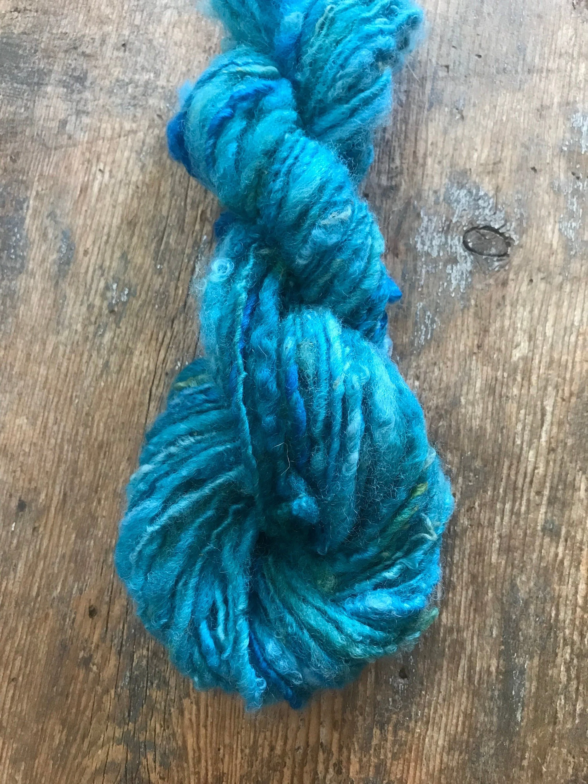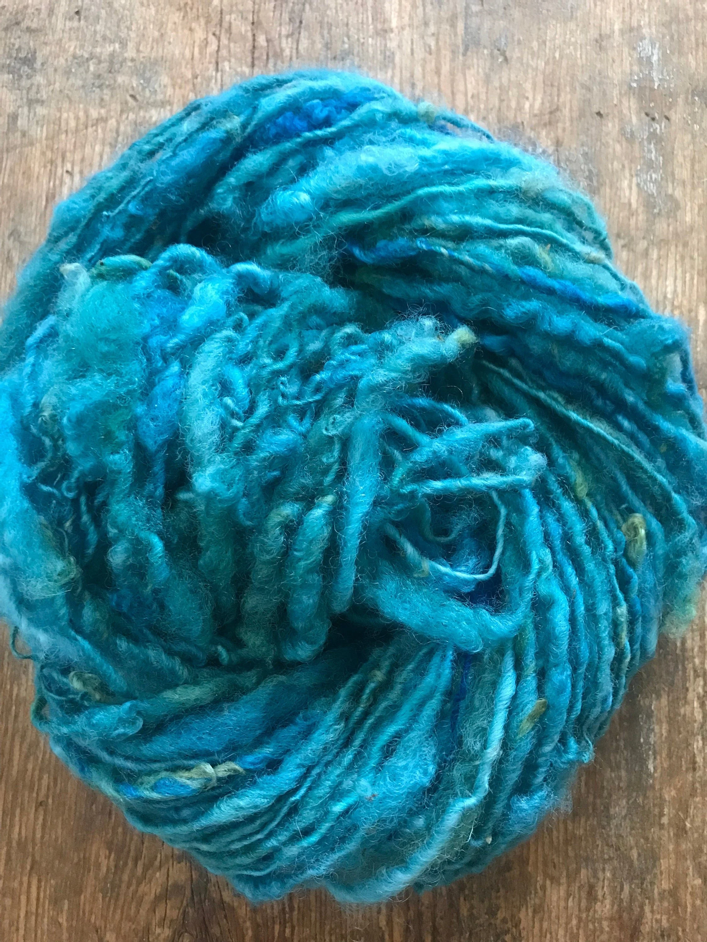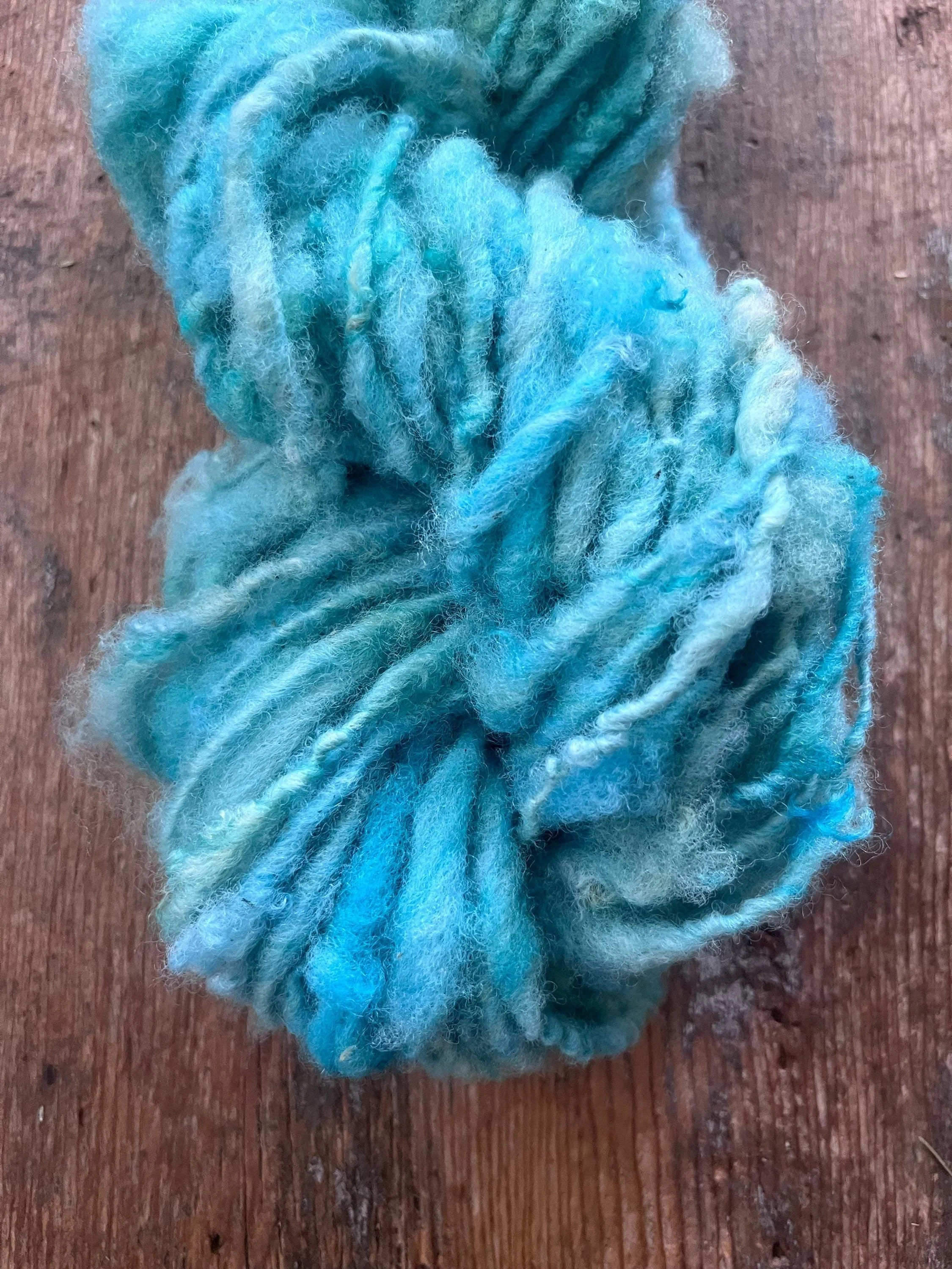 Chicory Blossom - blue green nubbly squishy Southdown wool art yarn