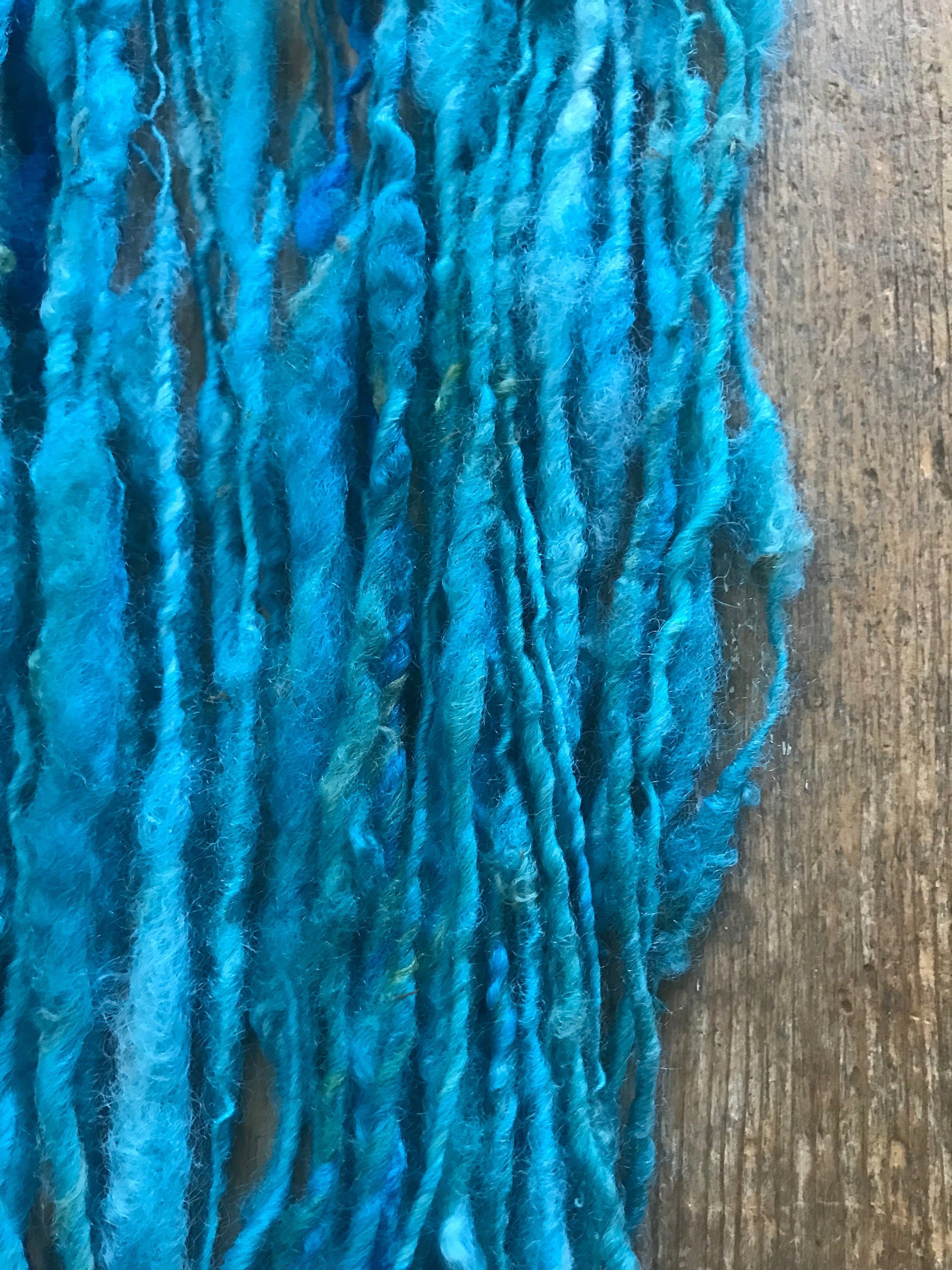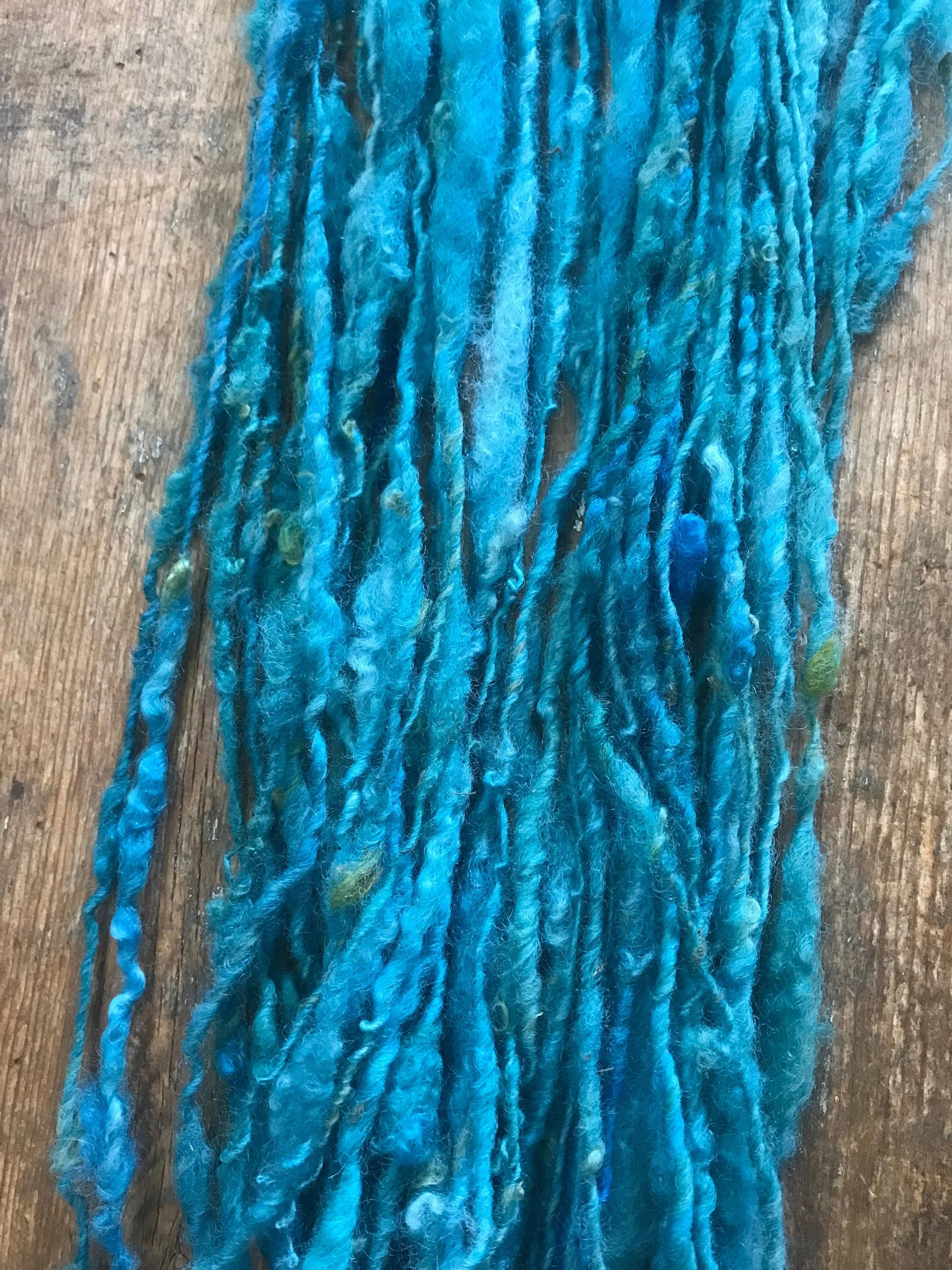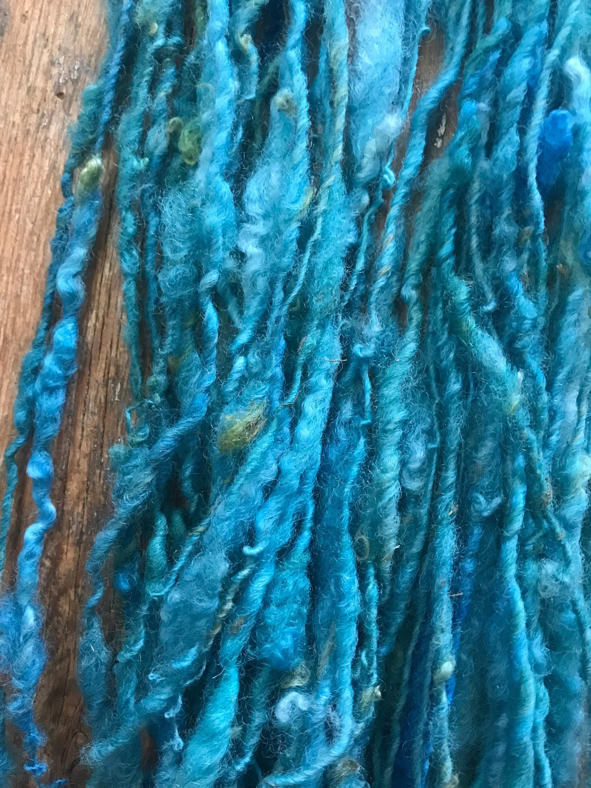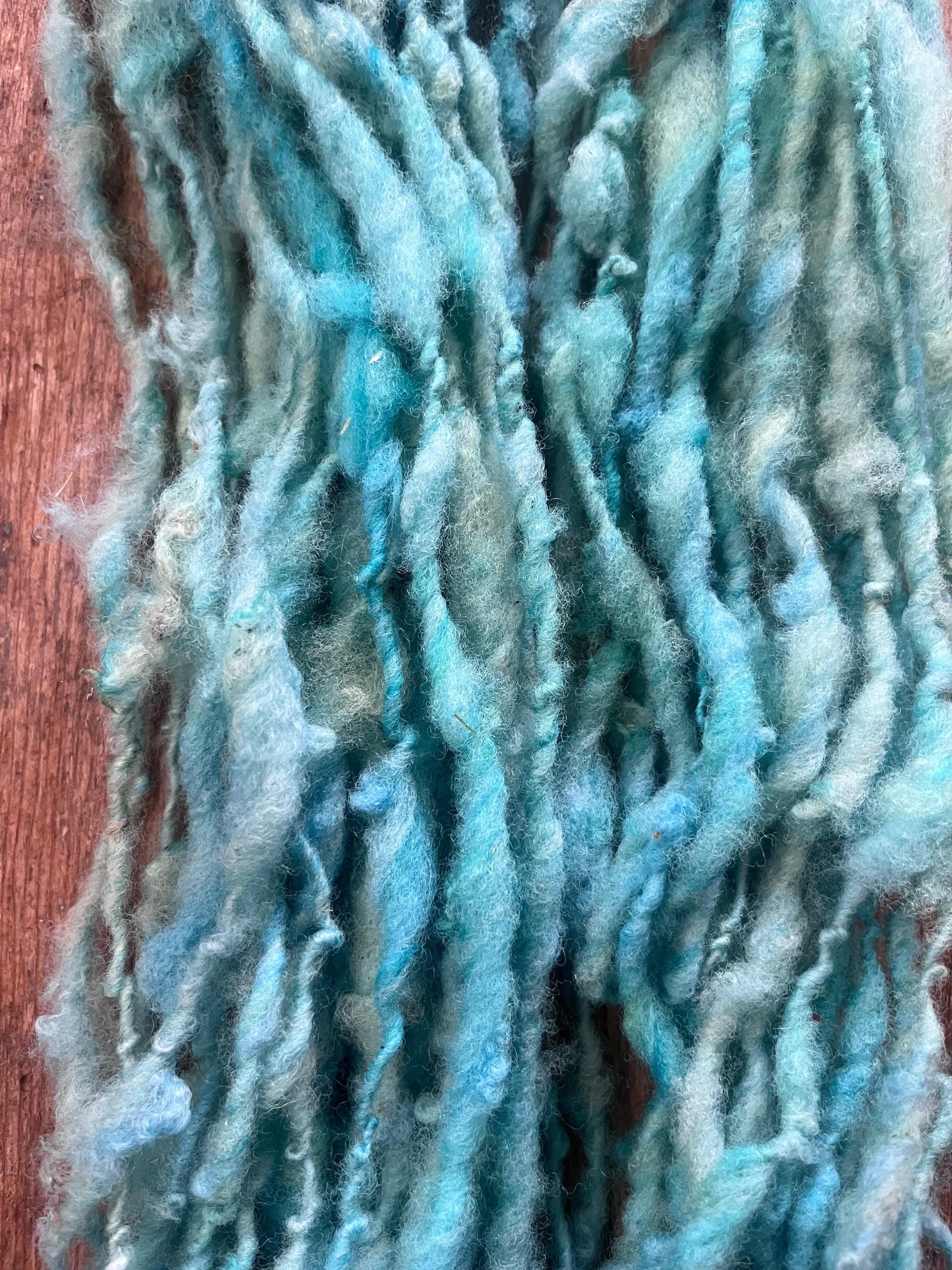 Chicory Blossom - blue green nubbly squishy Southdown wool art yarn