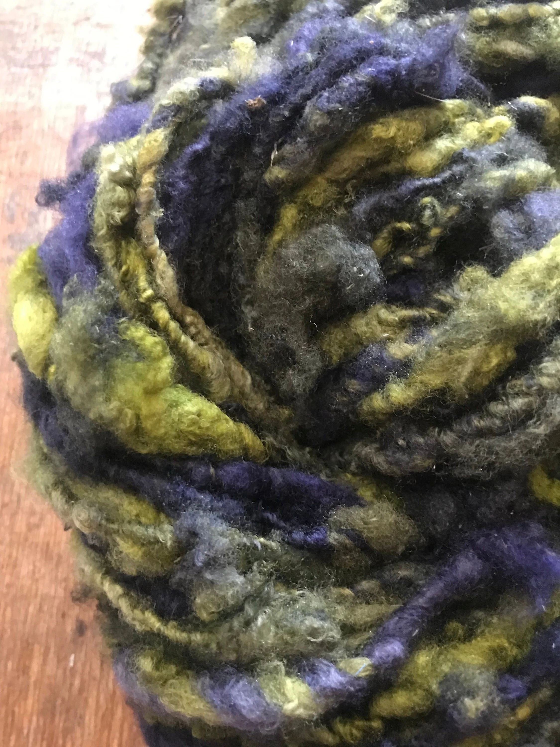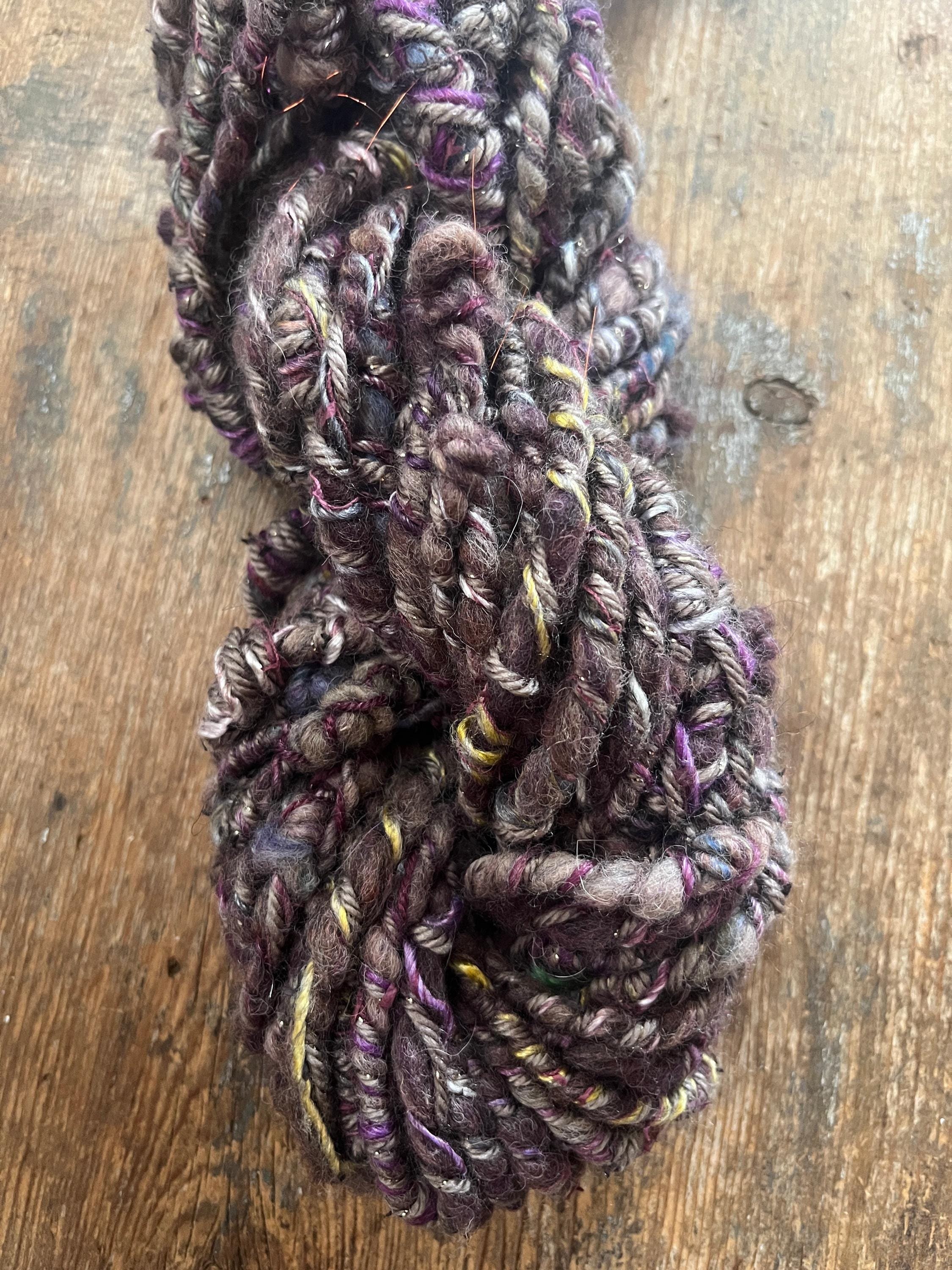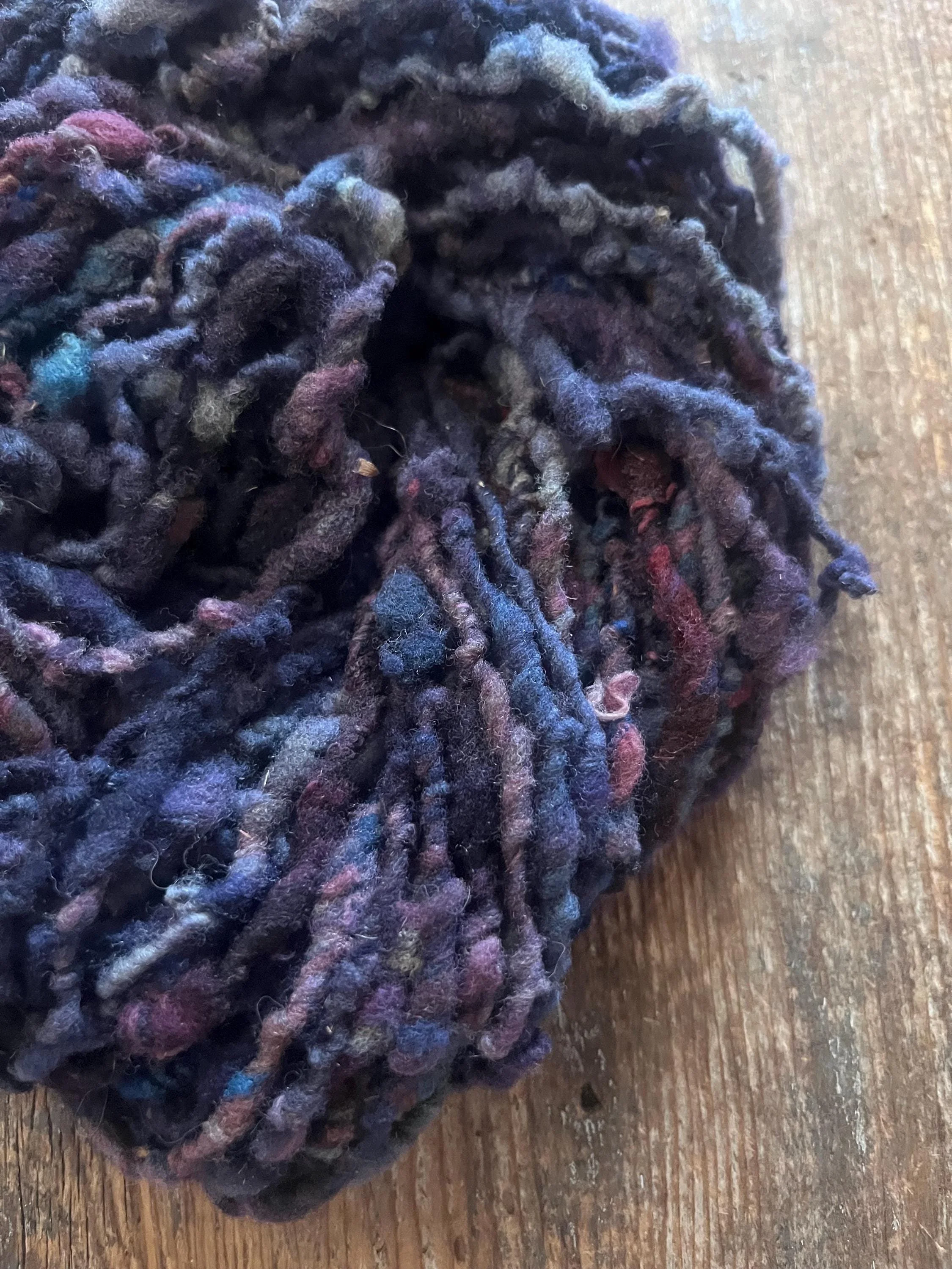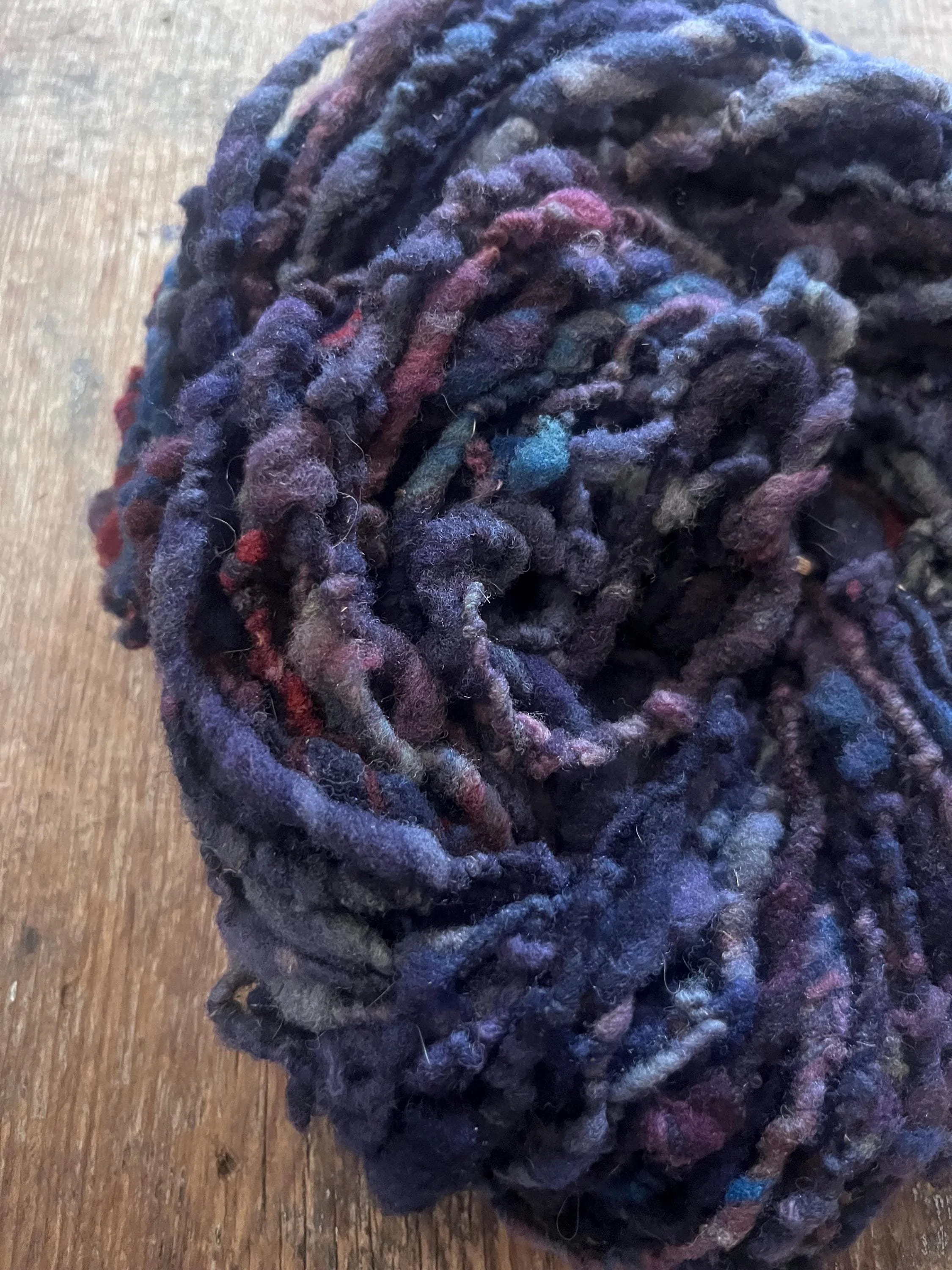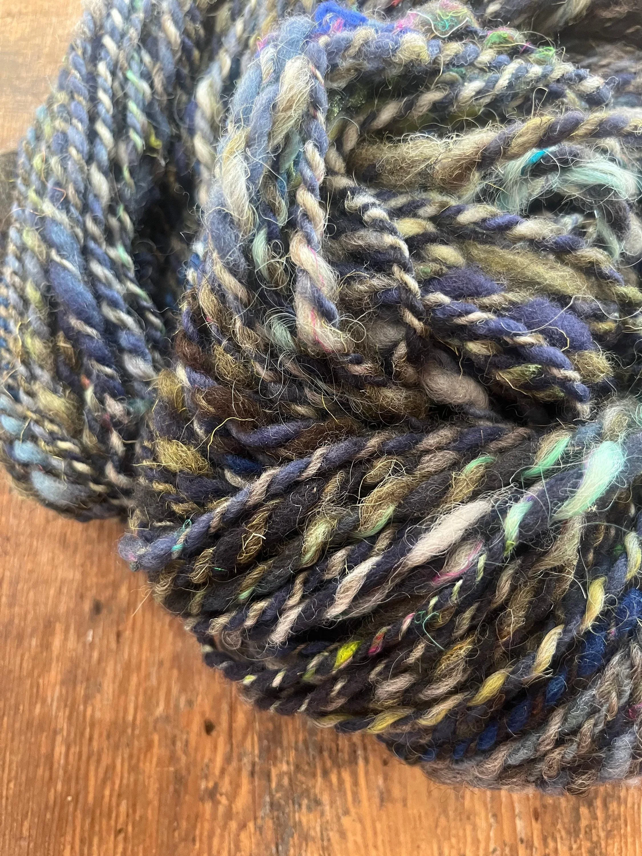 Twilight Carnival, handspun nubbly squishy chunky handspun Southdown wool art yarn