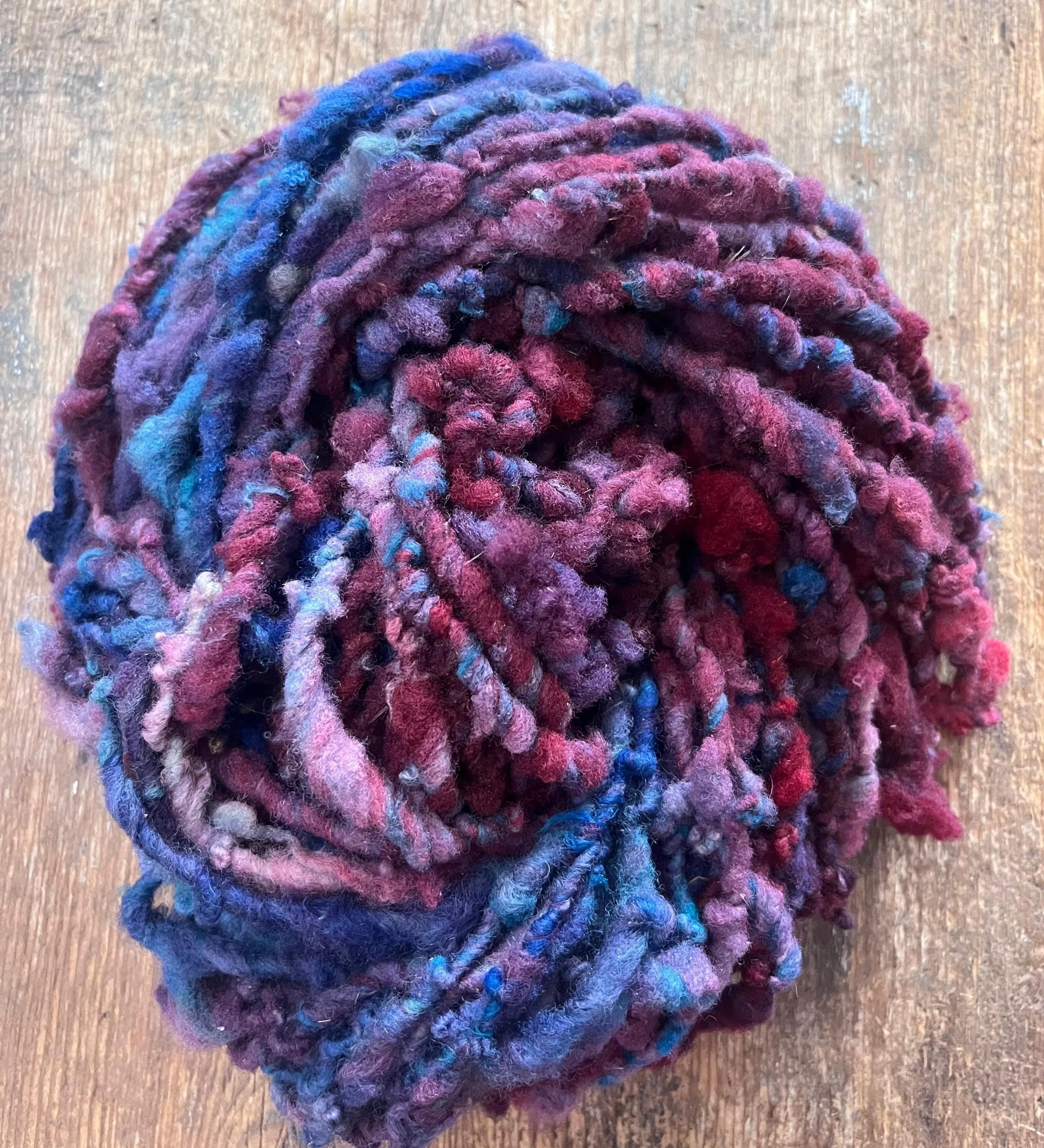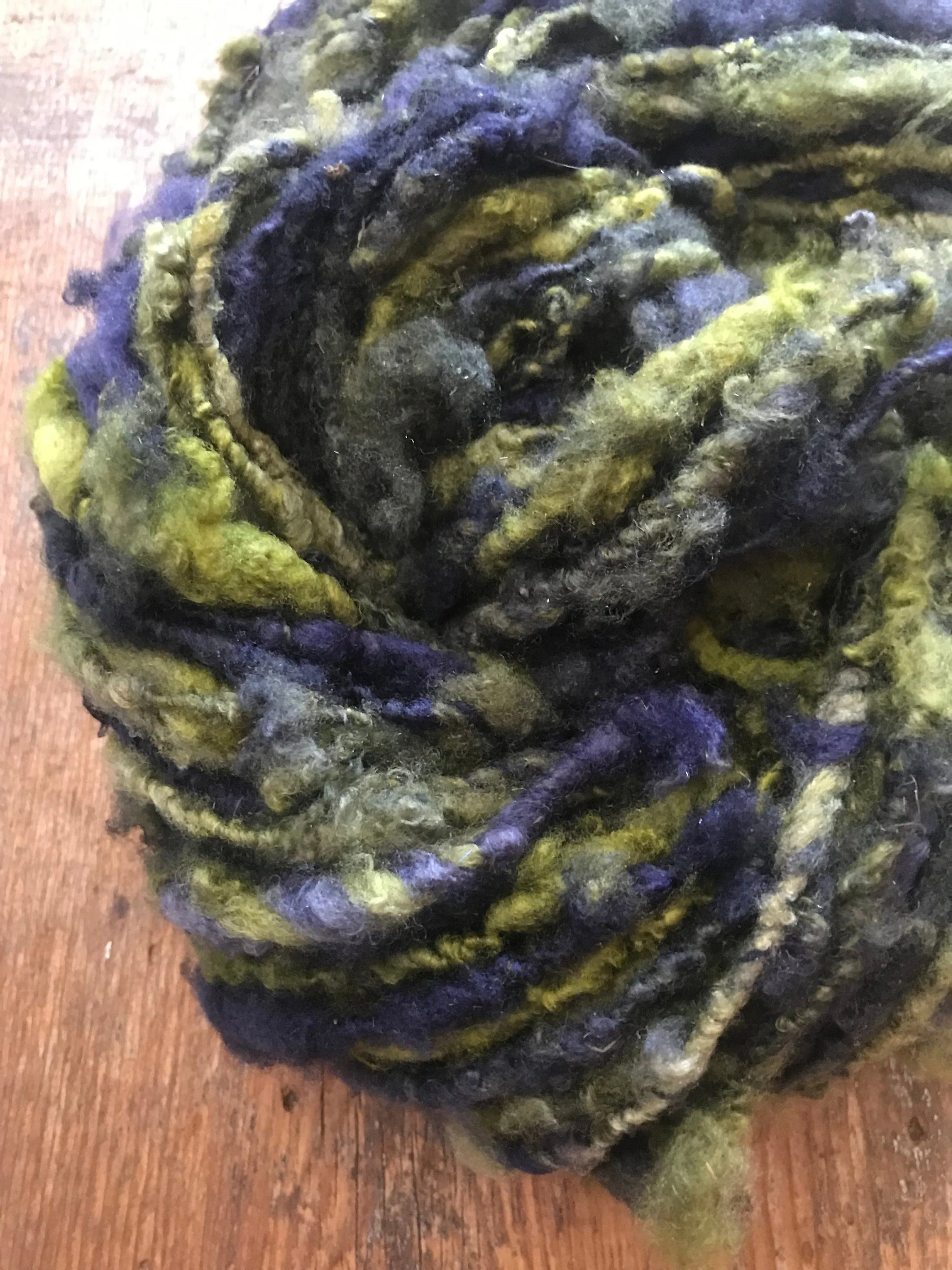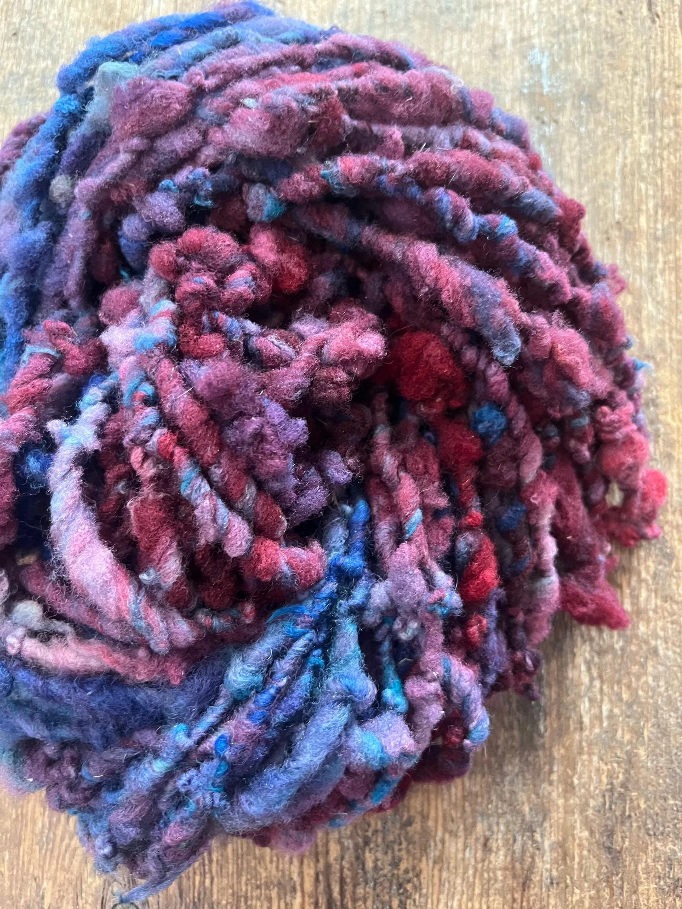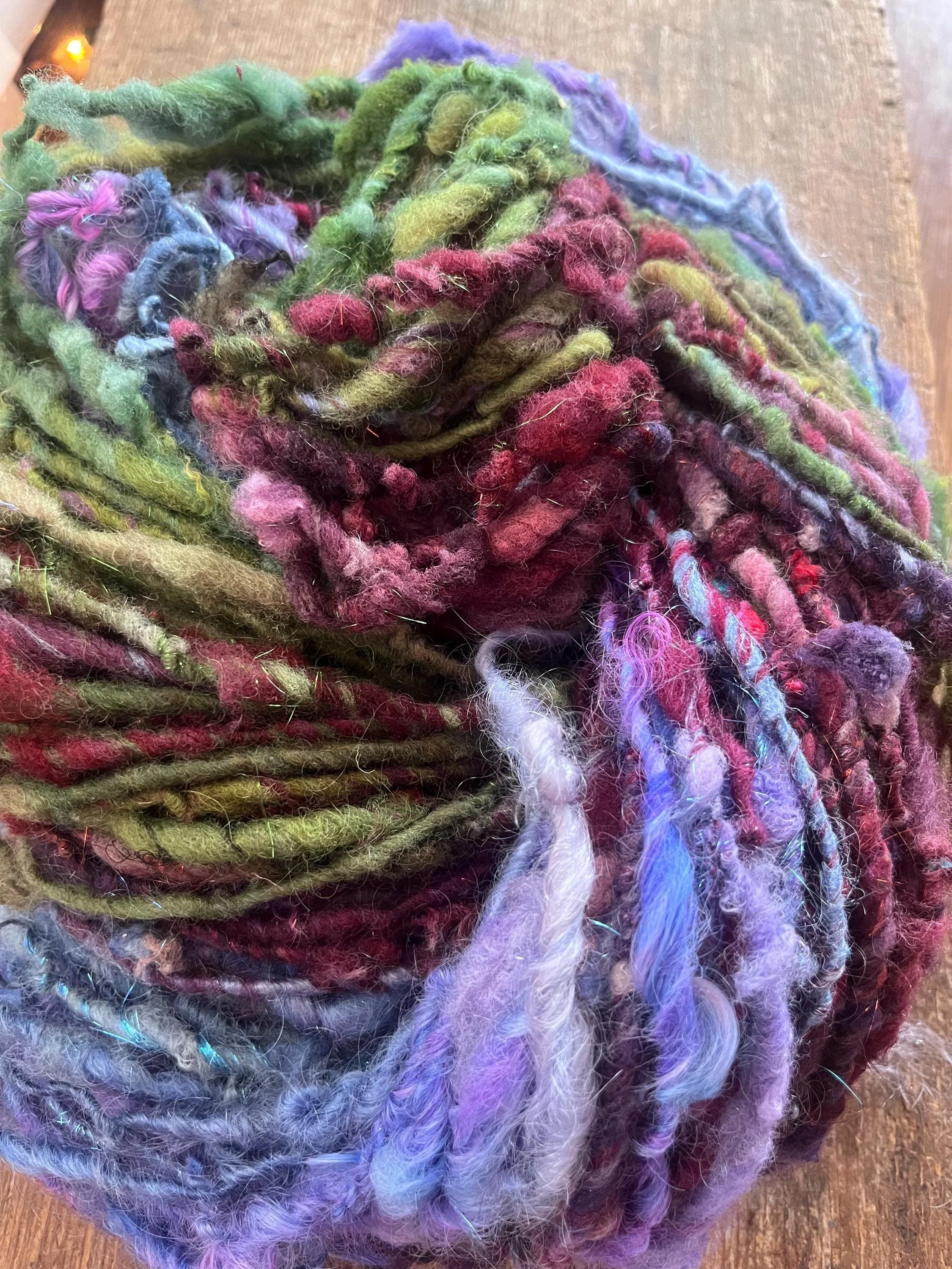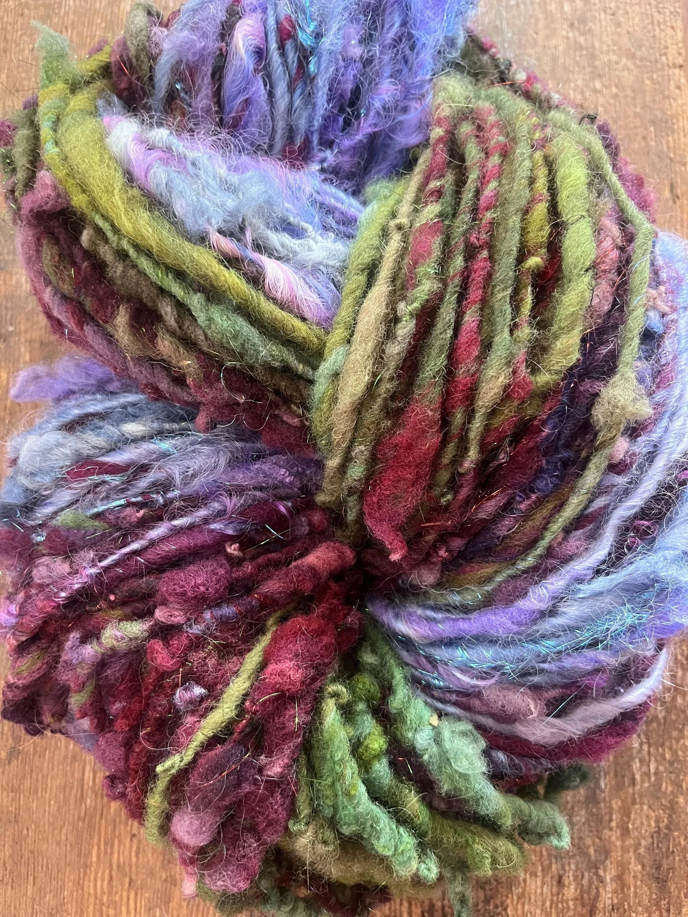 Twilight Carnival, handspun nubbly squishy chunky handspun Southdown wool art yarn