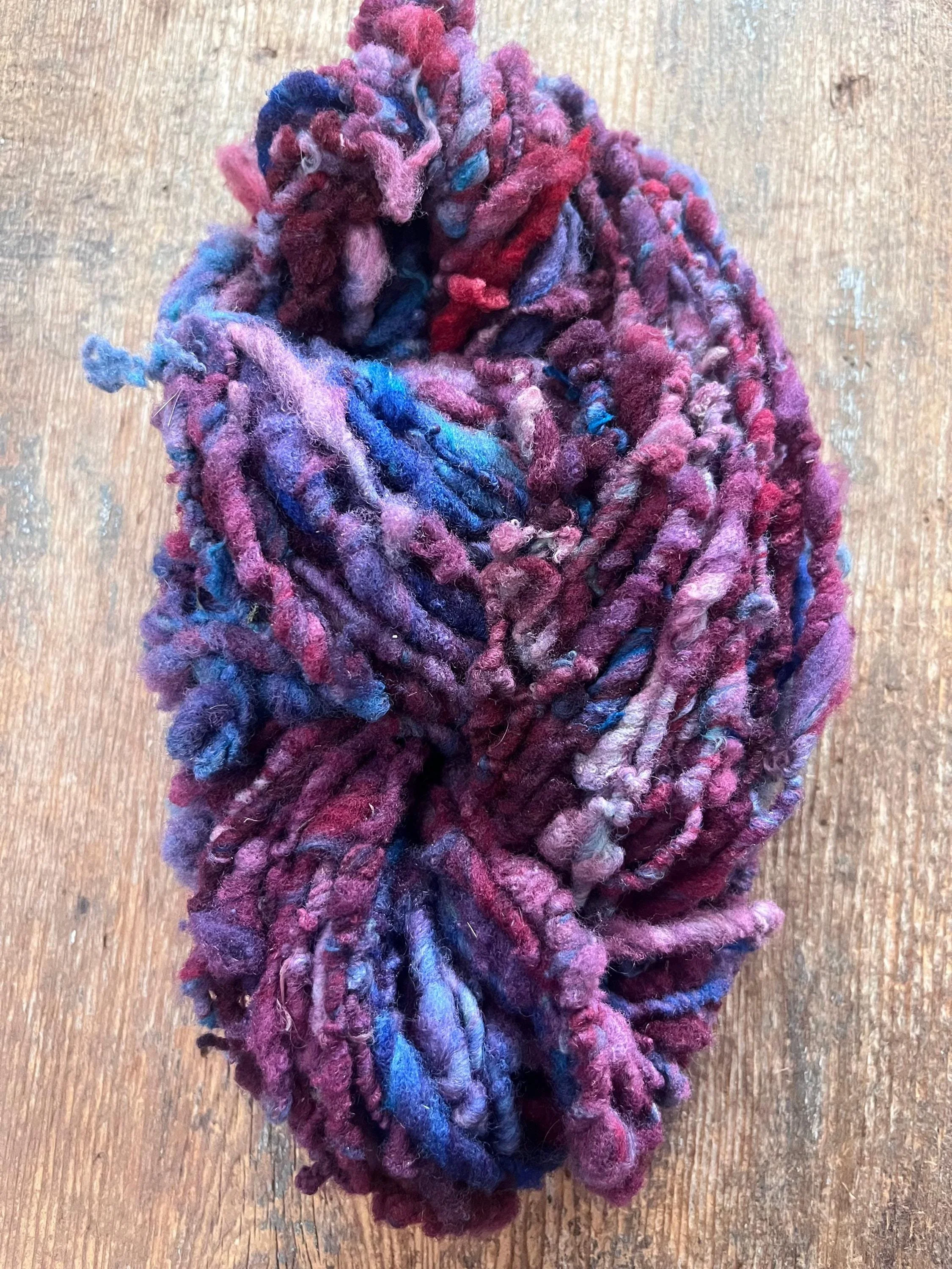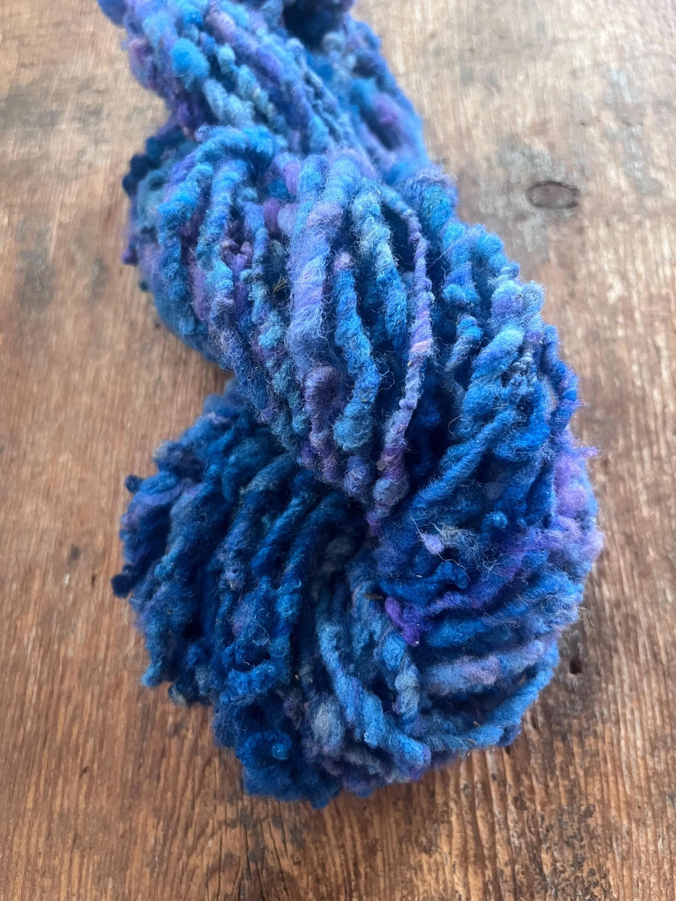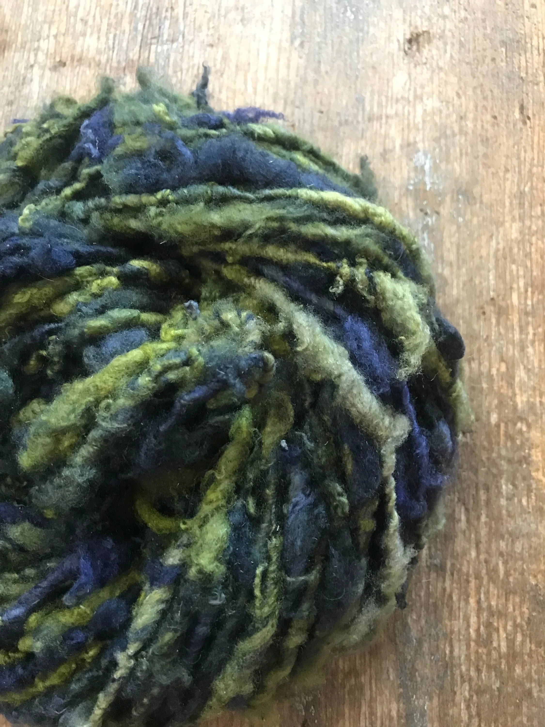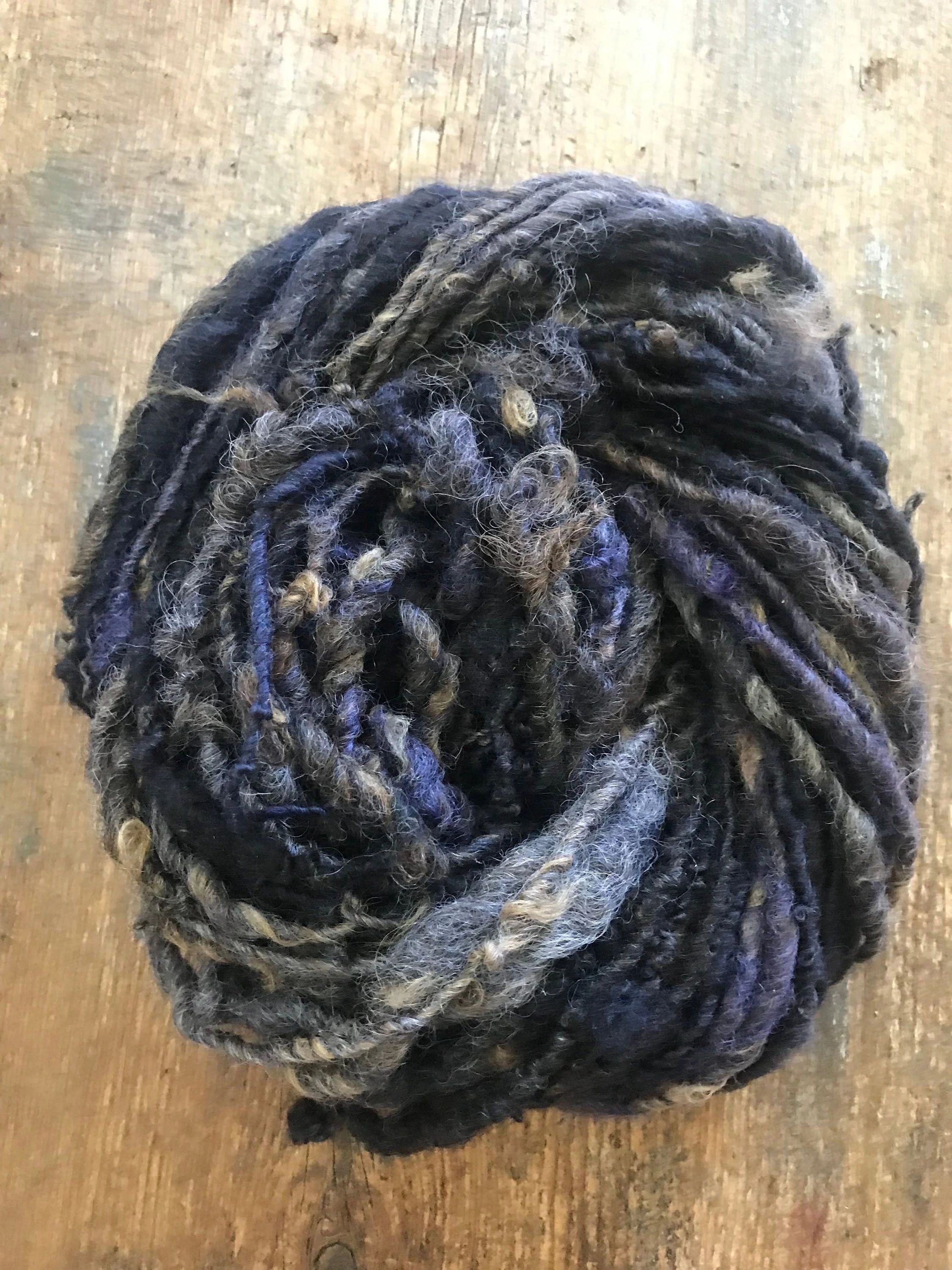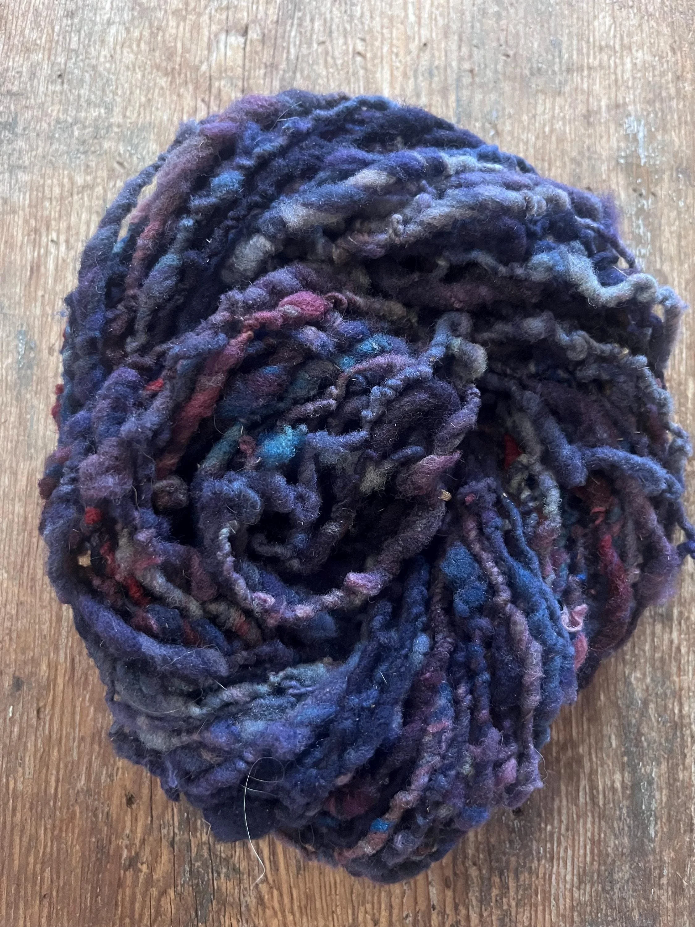 Twilight Carnival, handspun nubbly squishy chunky handspun Southdown wool art yarn