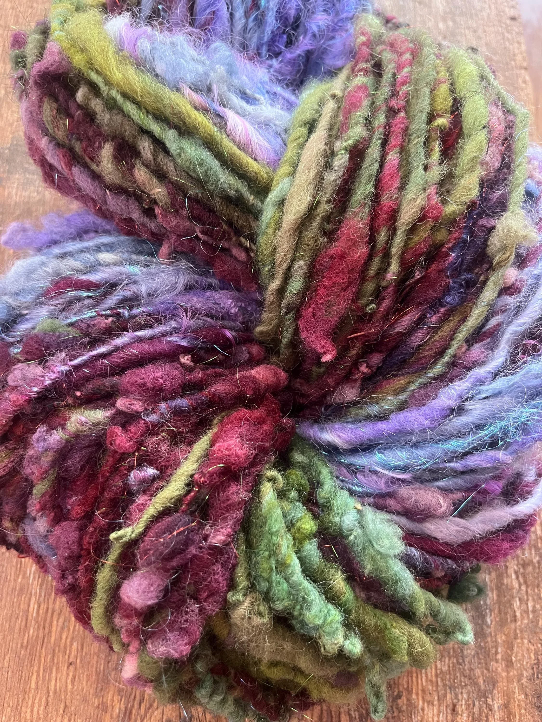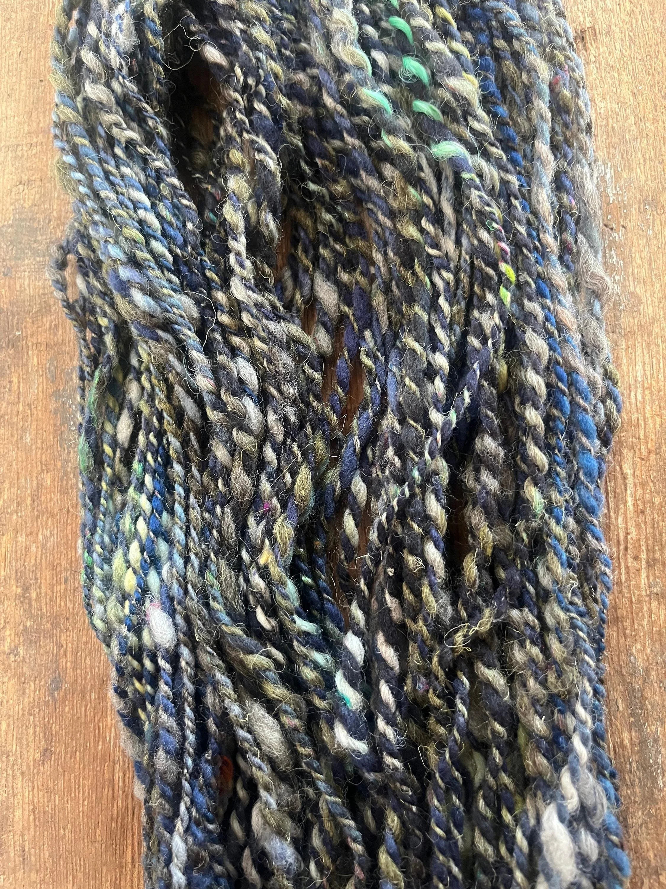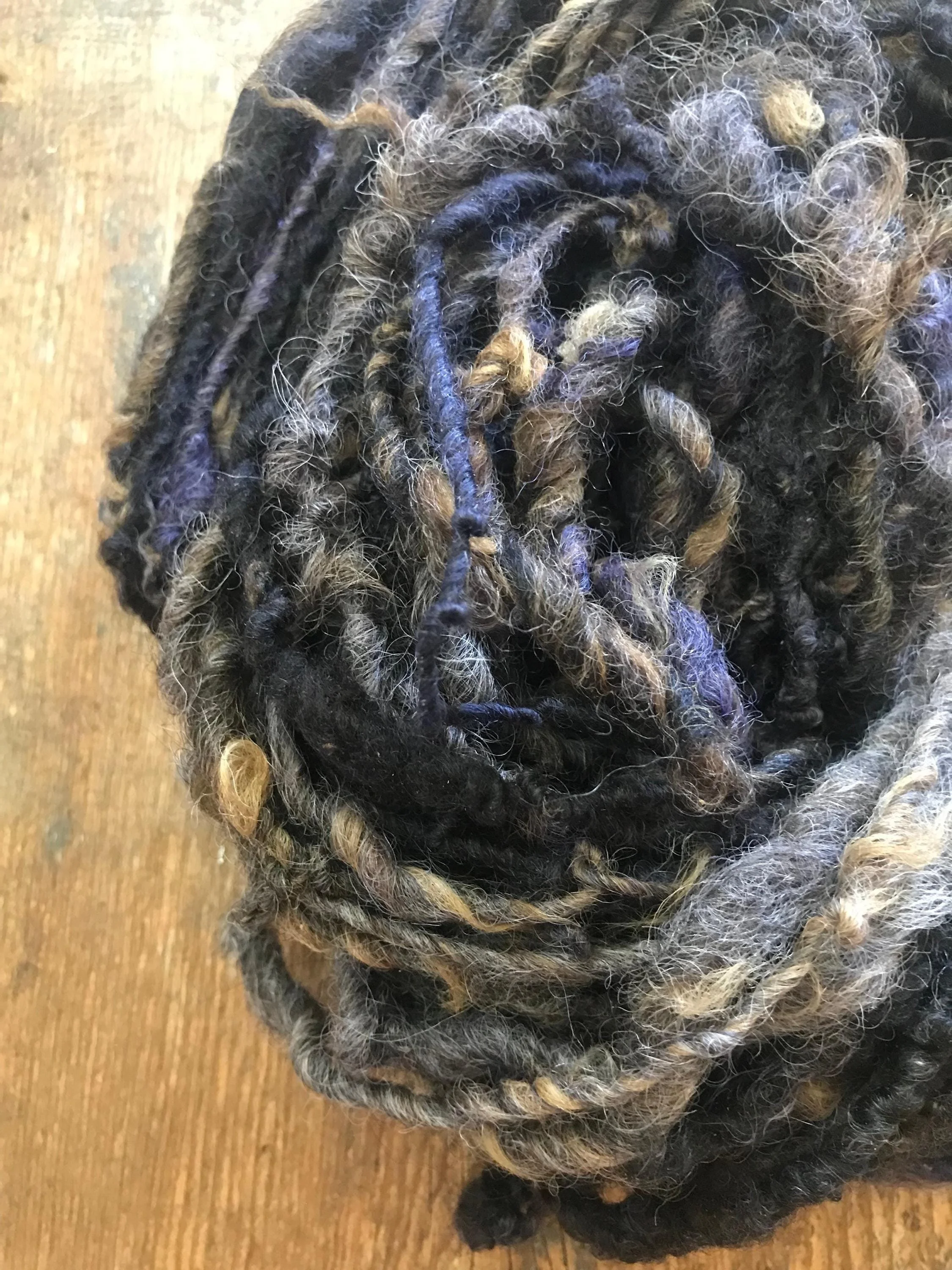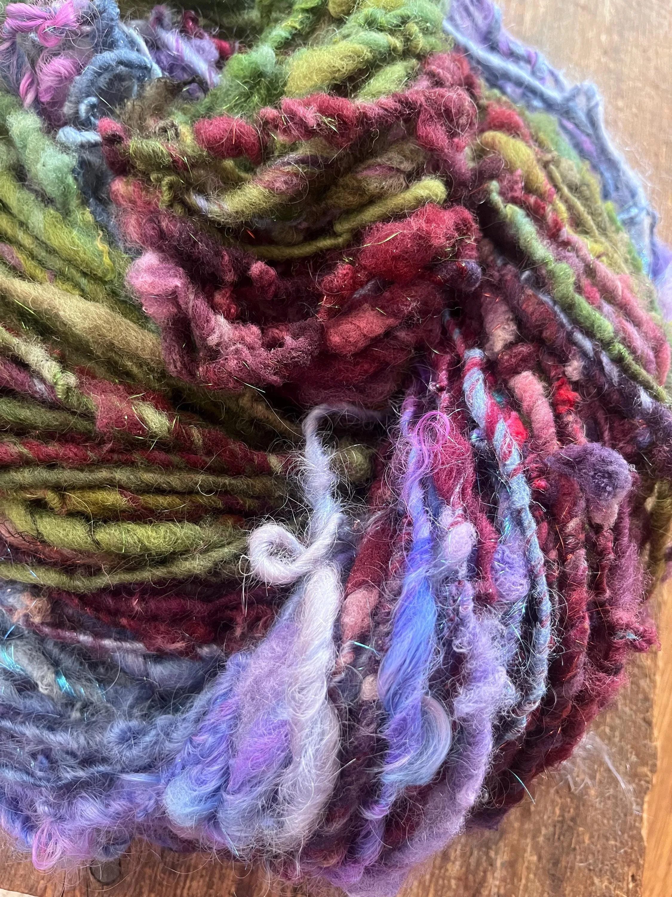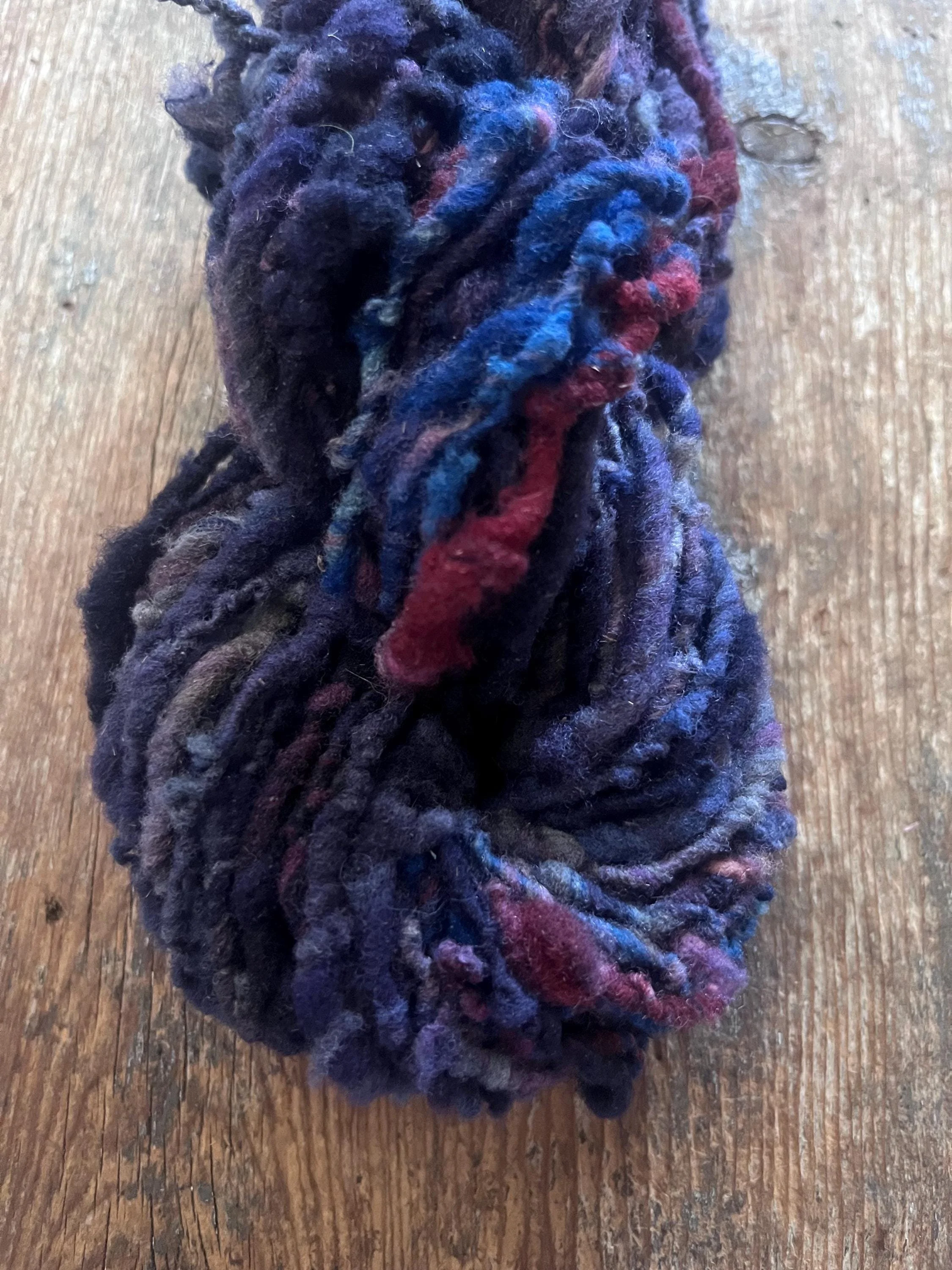 Twilight Carnival, handspun nubbly squishy chunky handspun Southdown wool art yarn