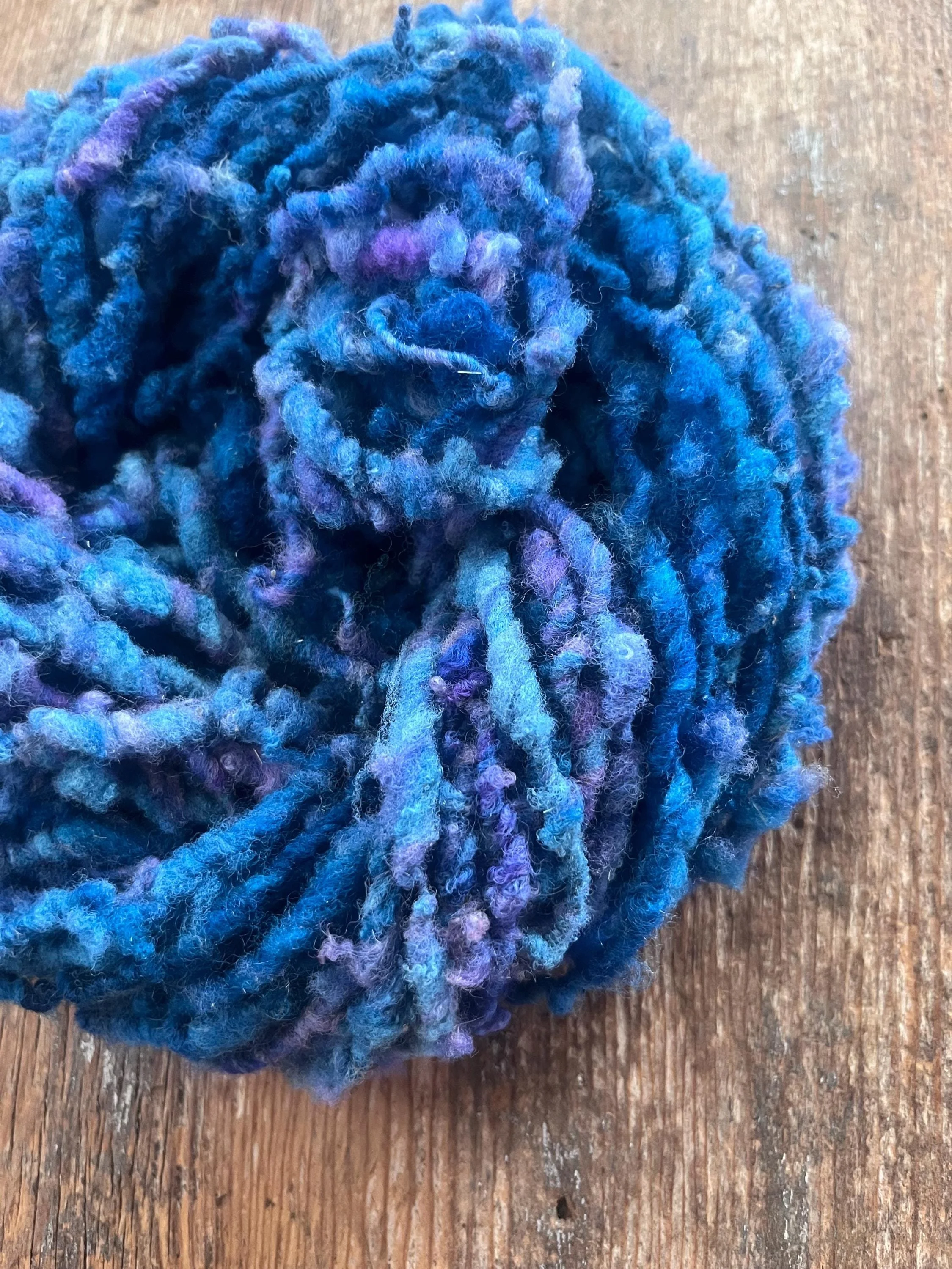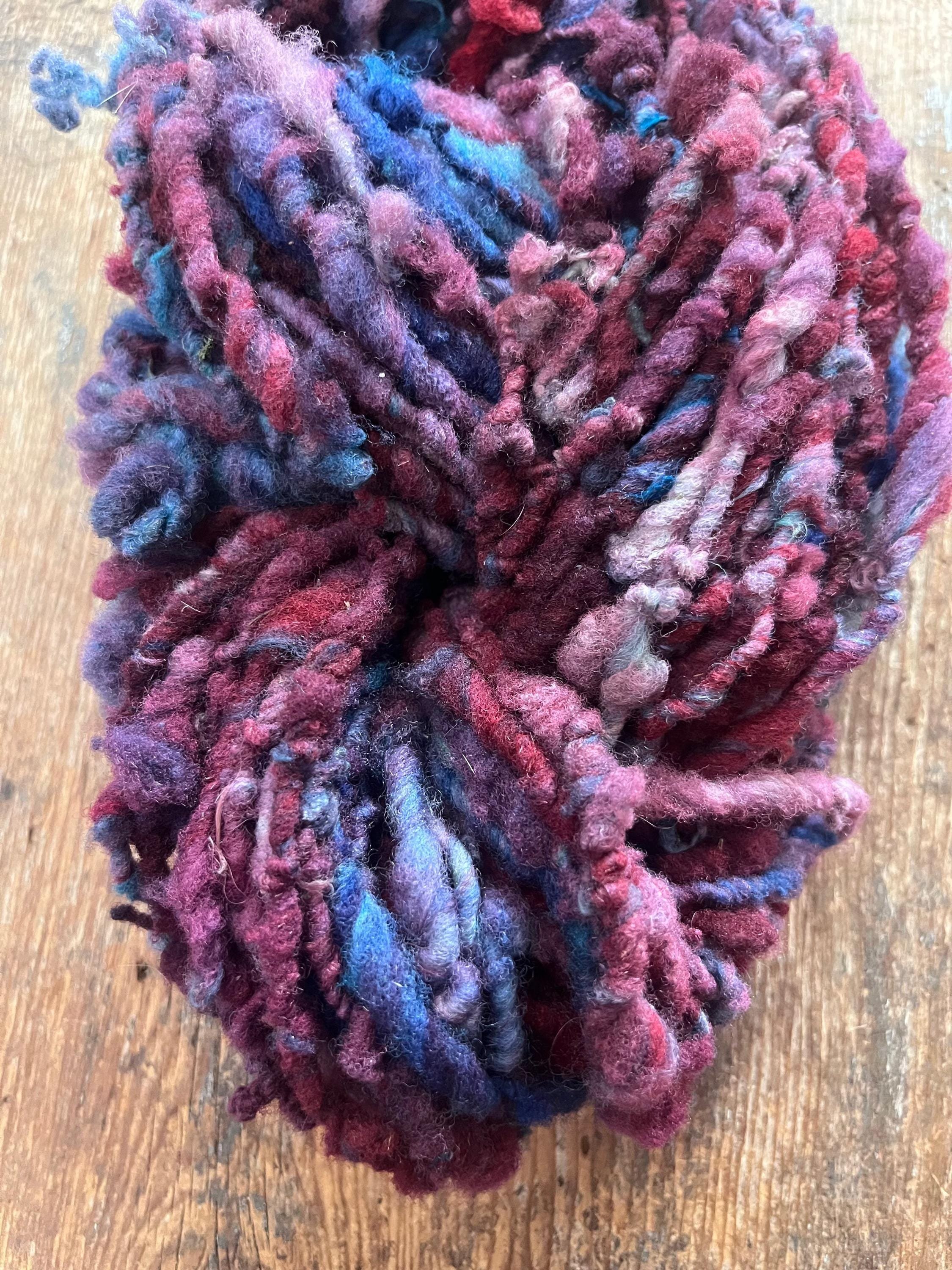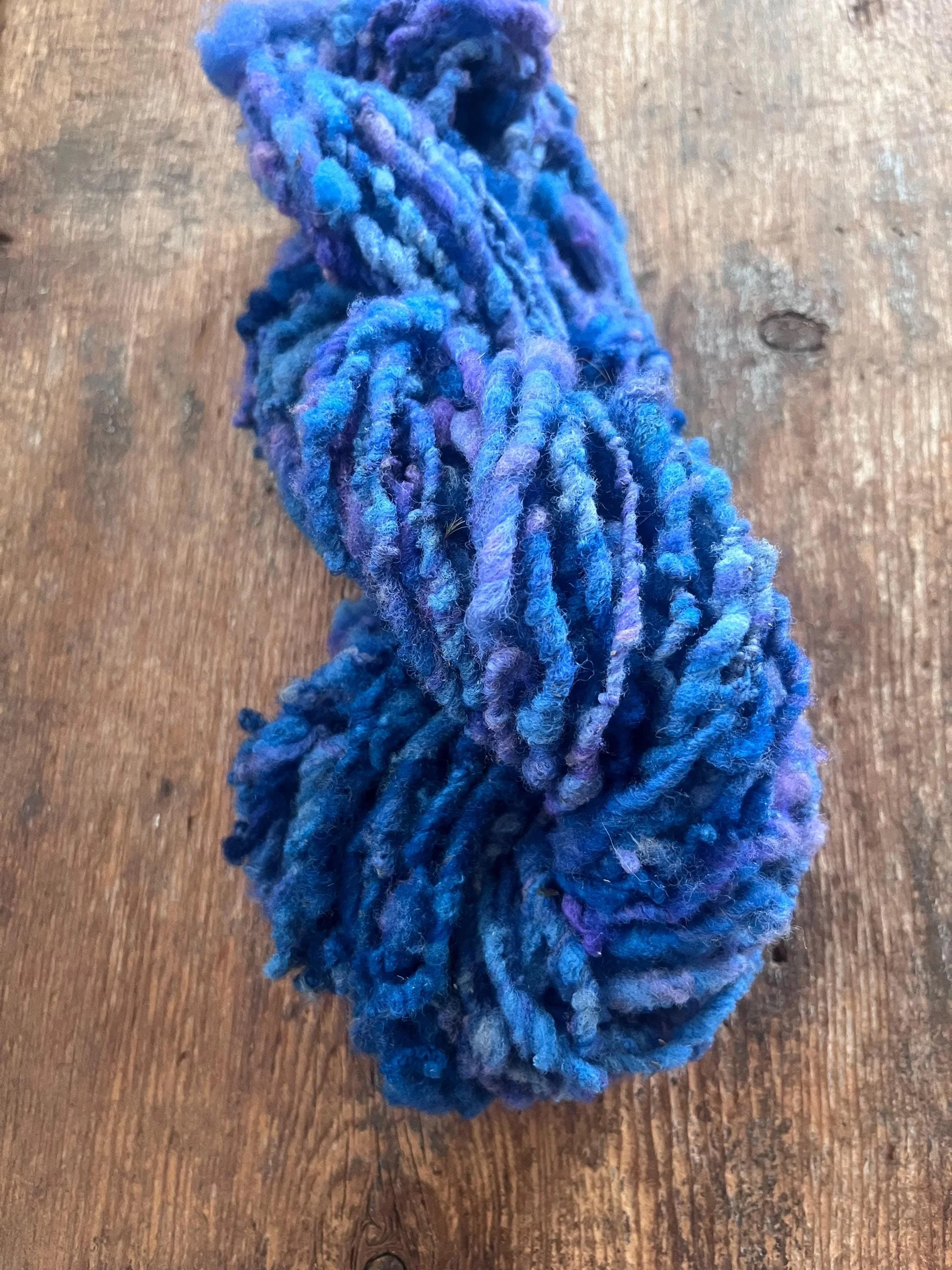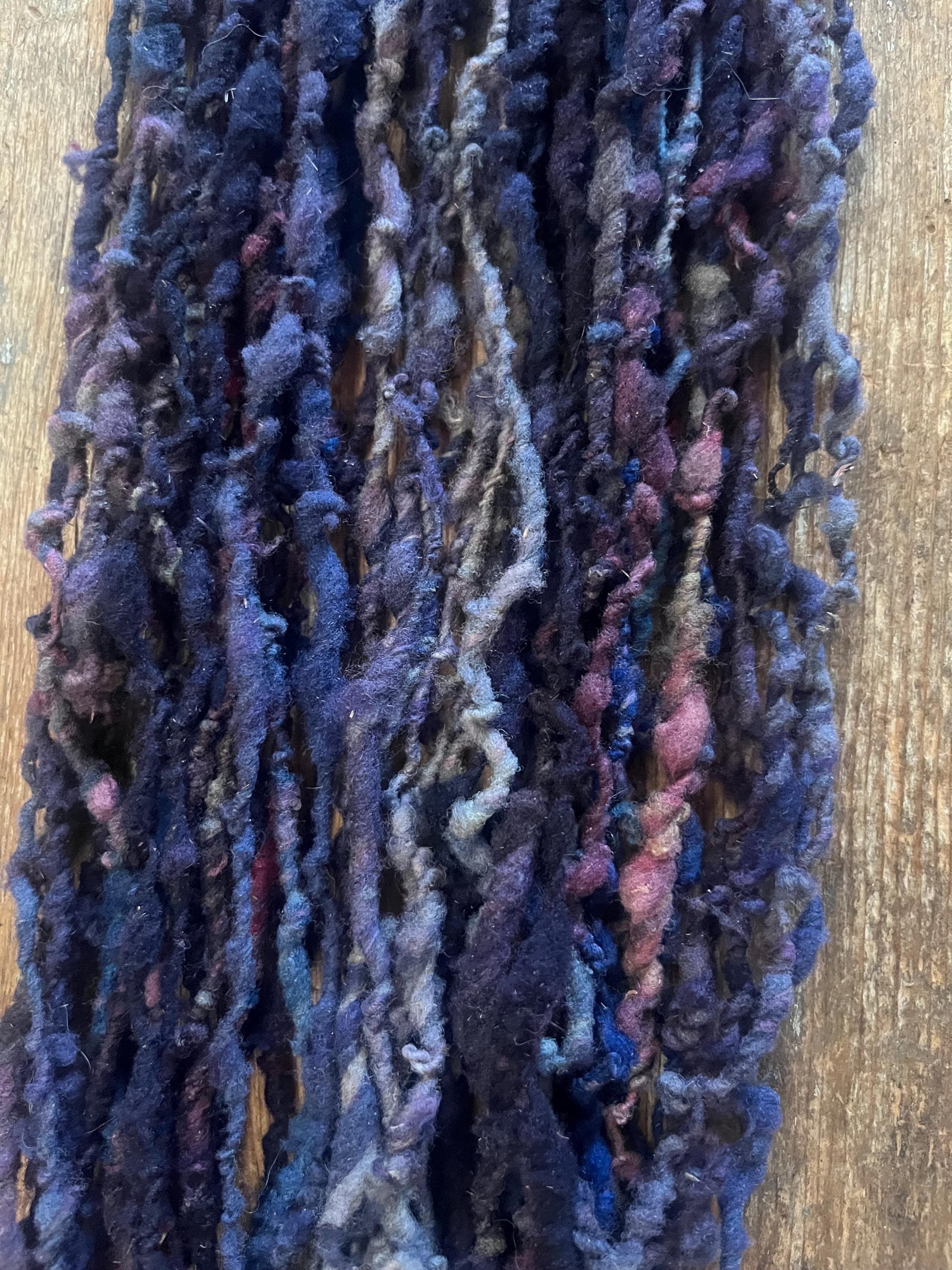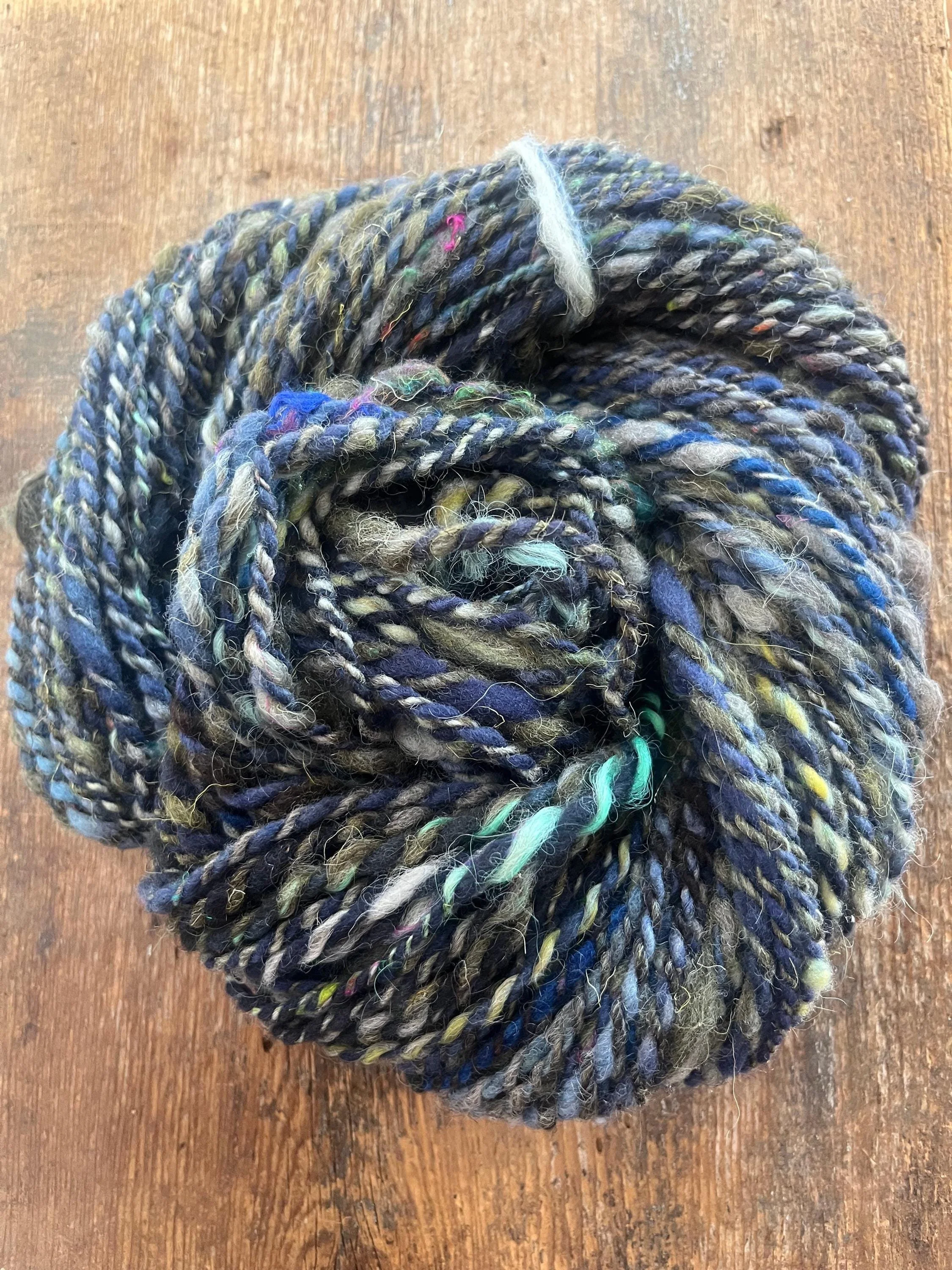Twilight Carnival, handspun nubbly squishy chunky handspun Southdown wool art yarn