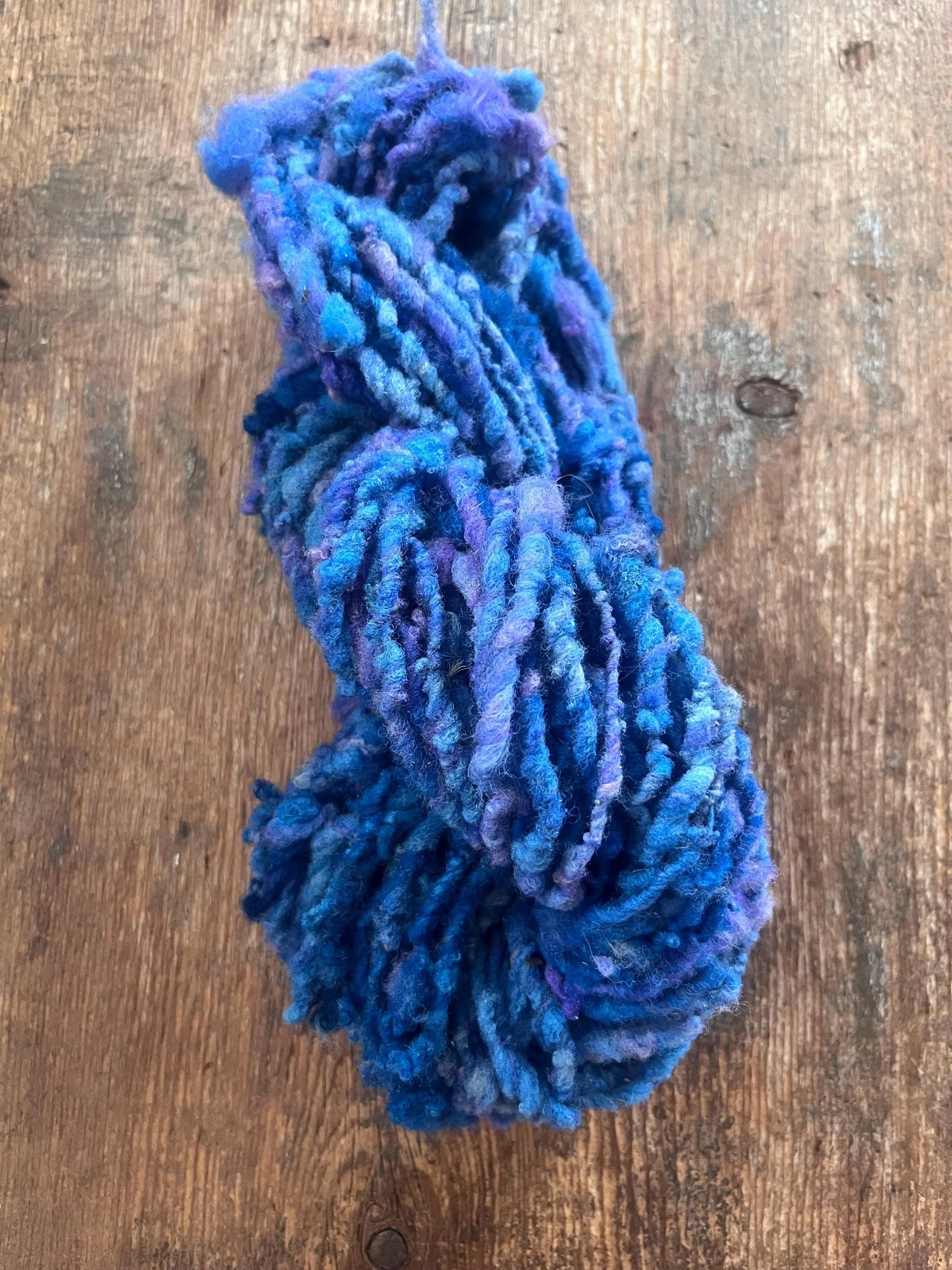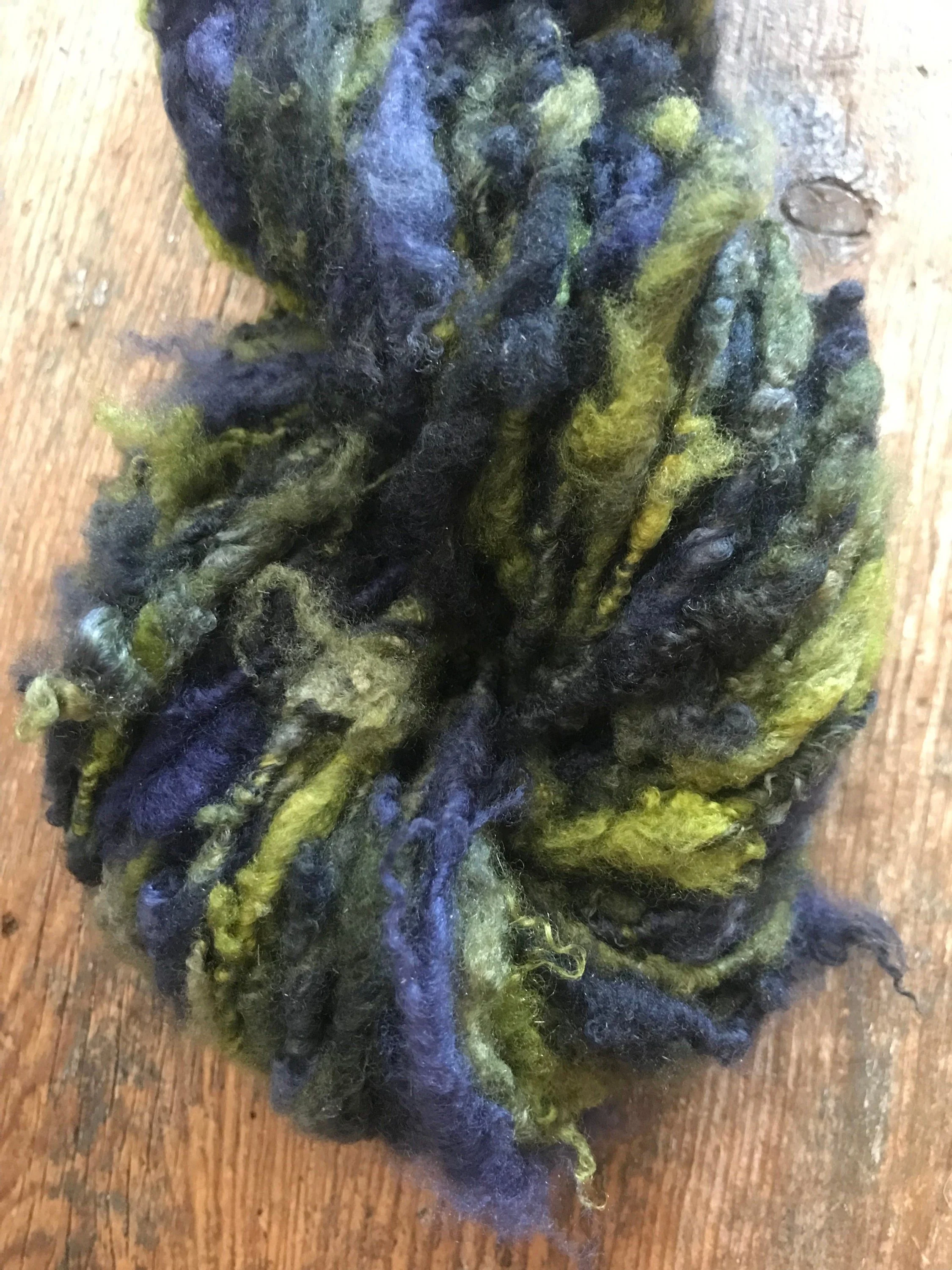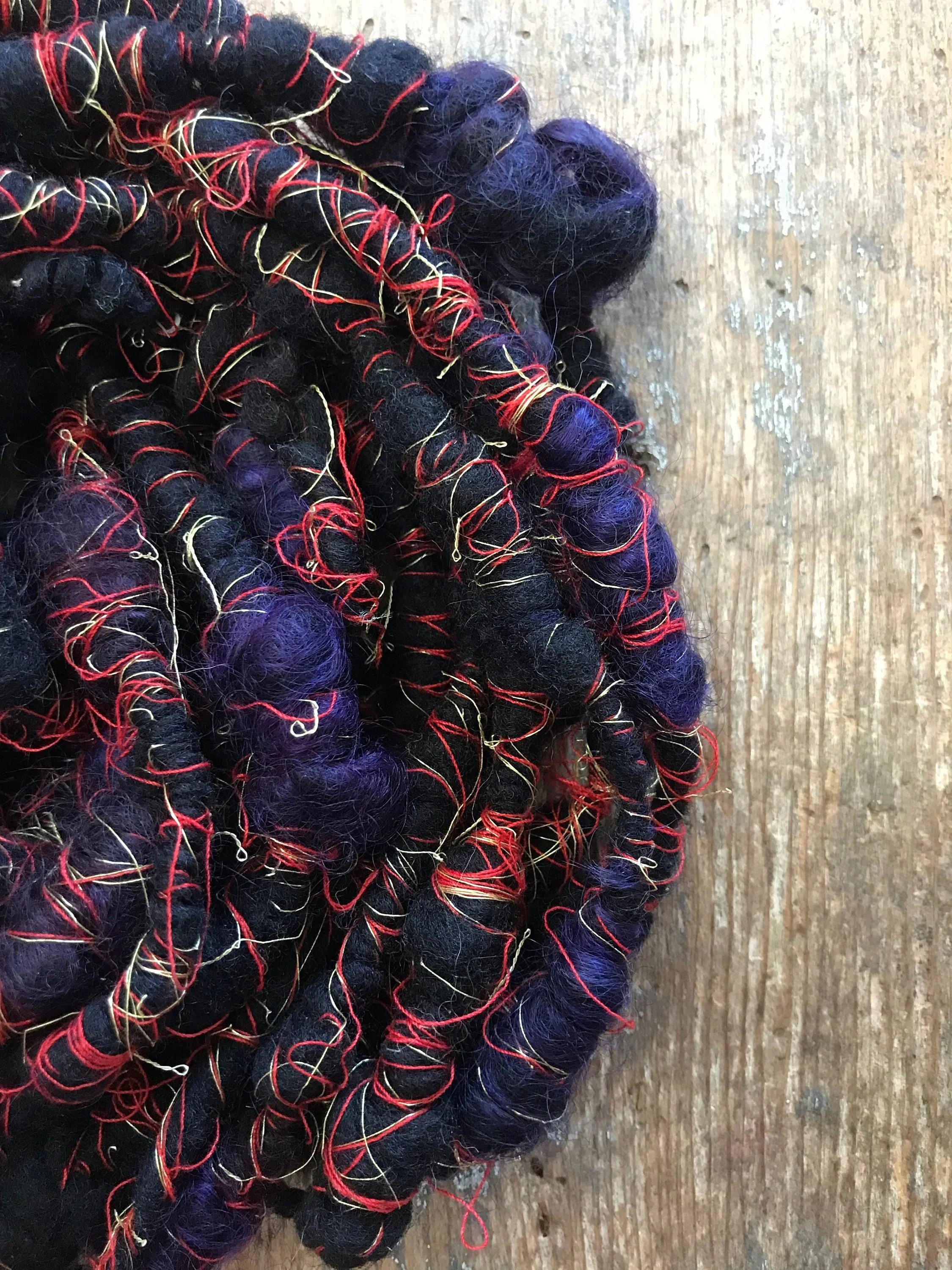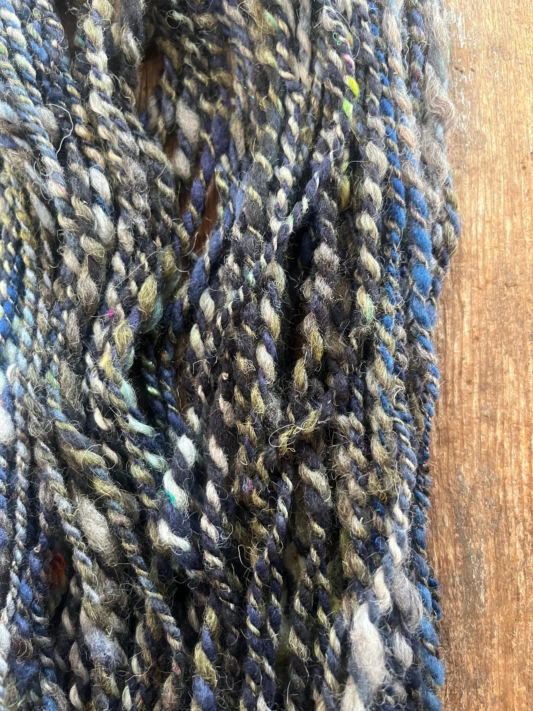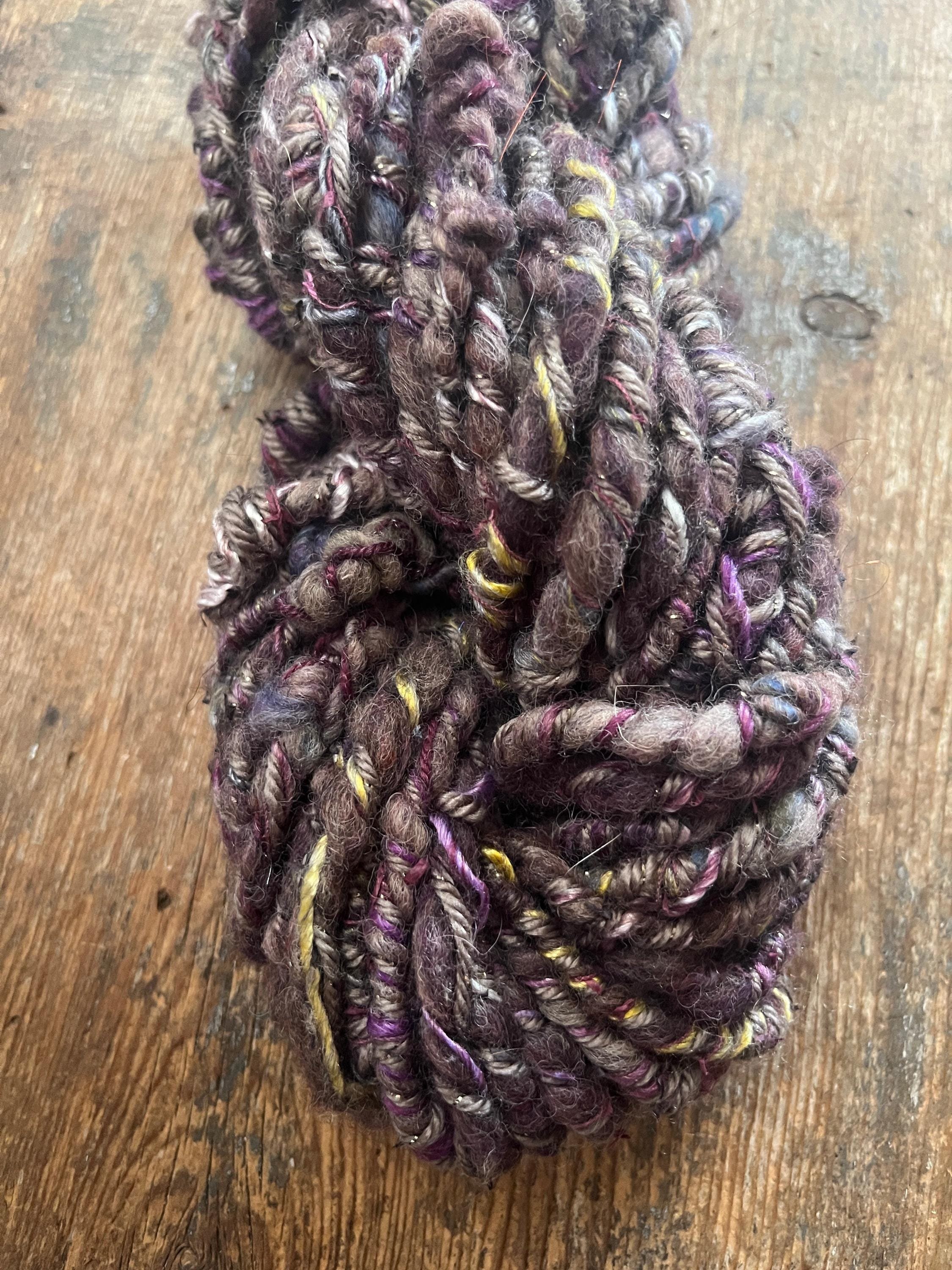 Twilight Carnival, handspun nubbly squishy chunky handspun Southdown wool art yarn