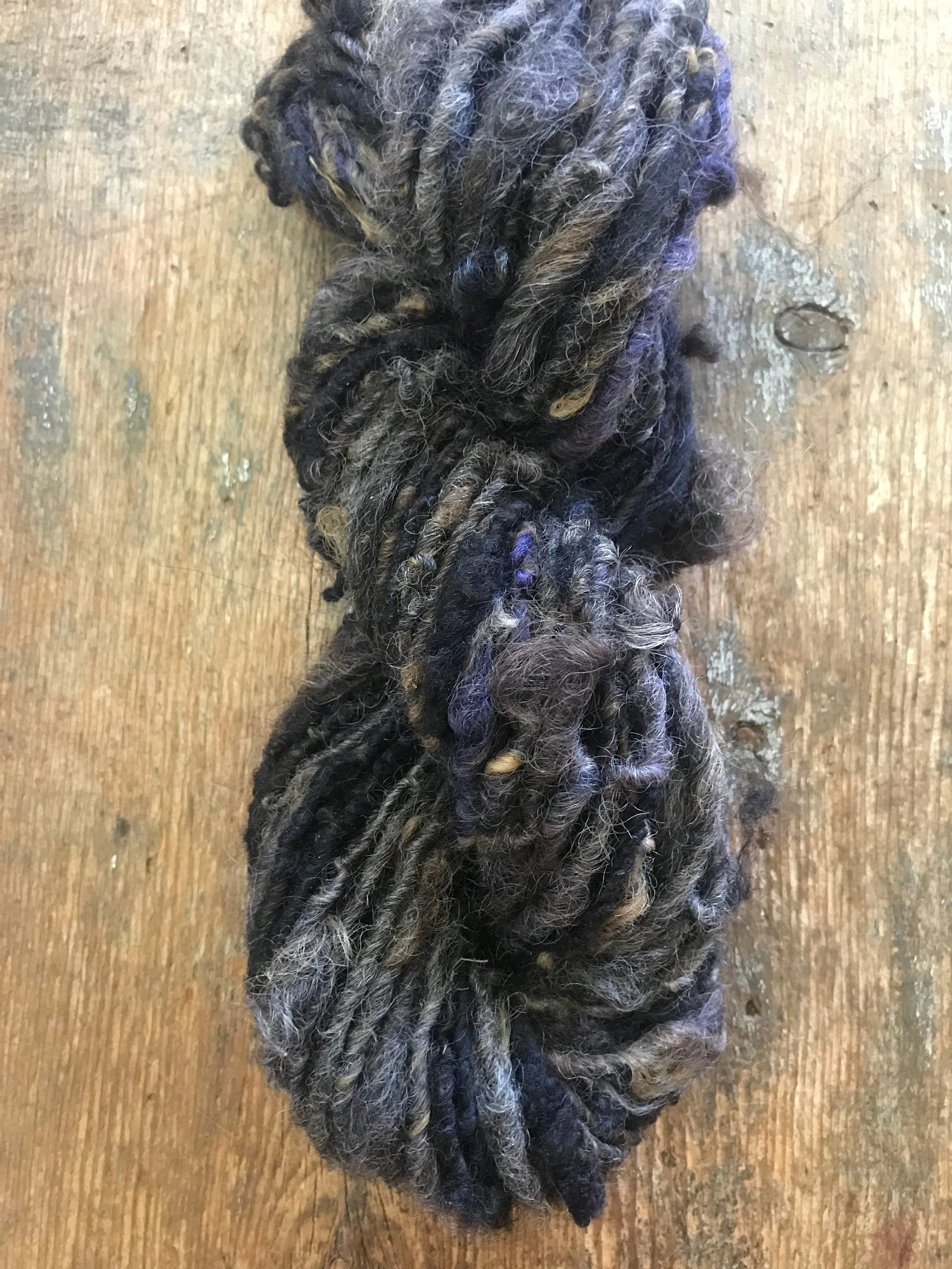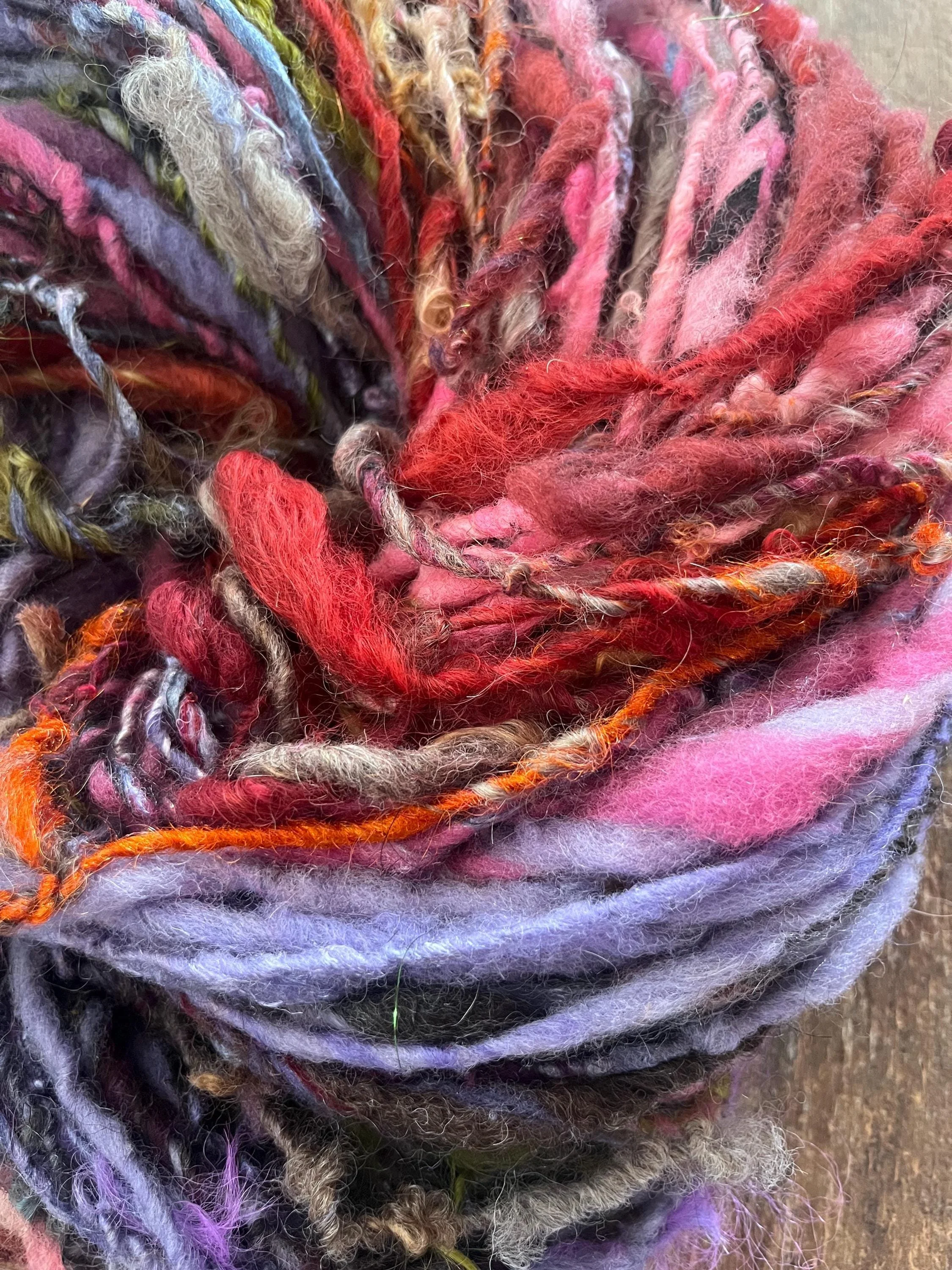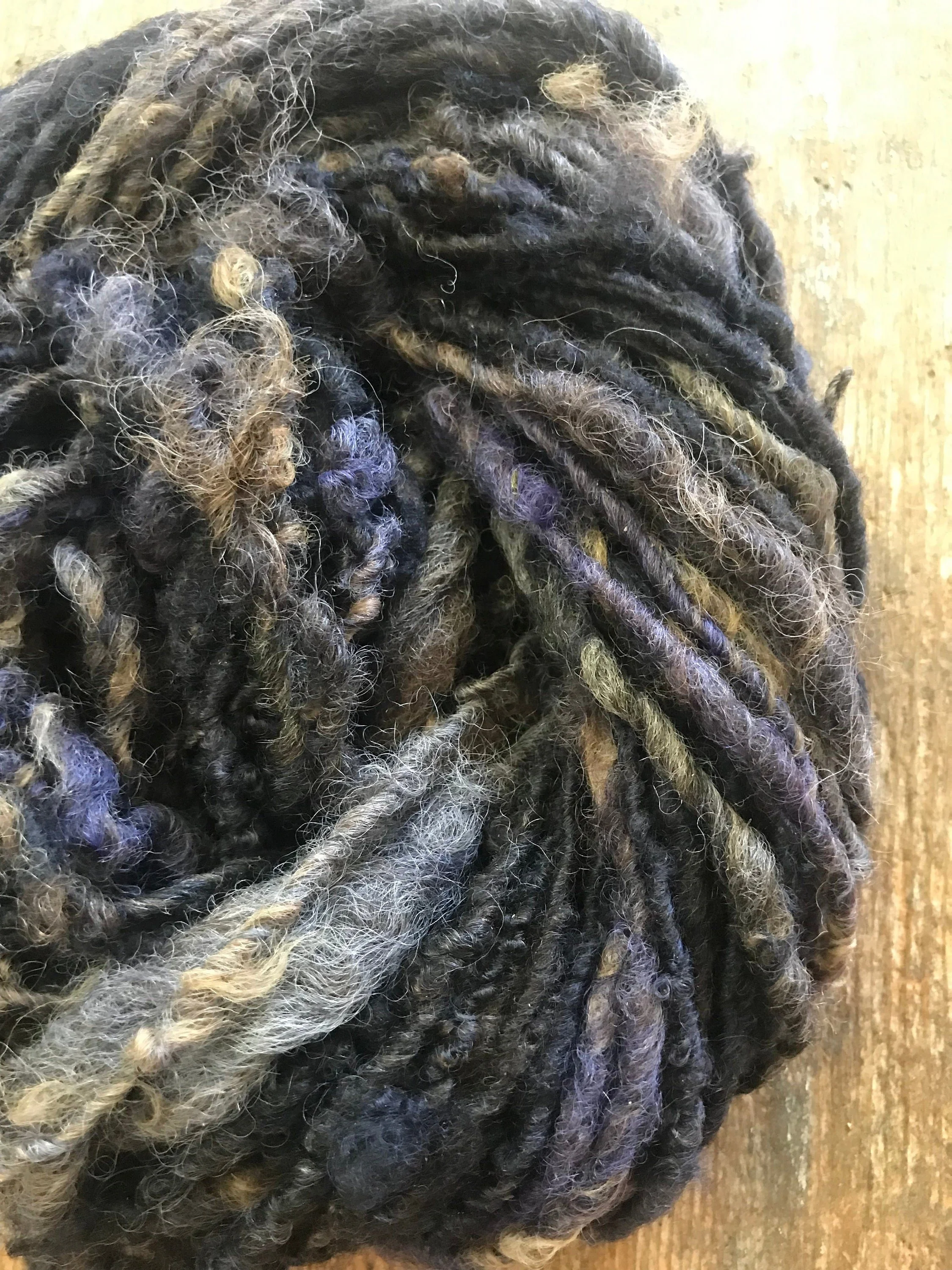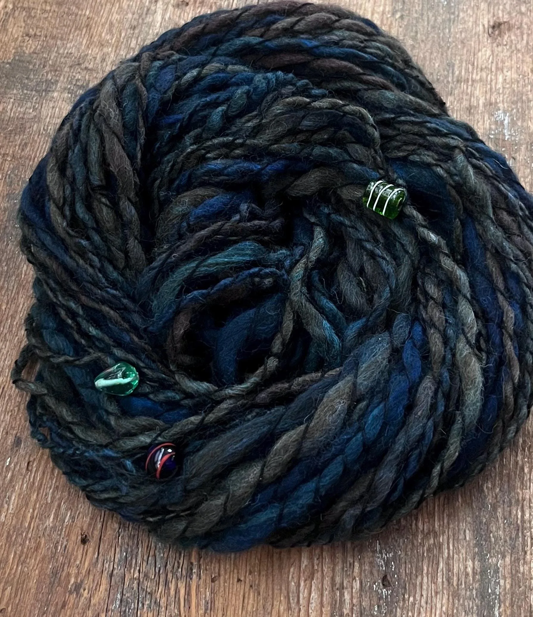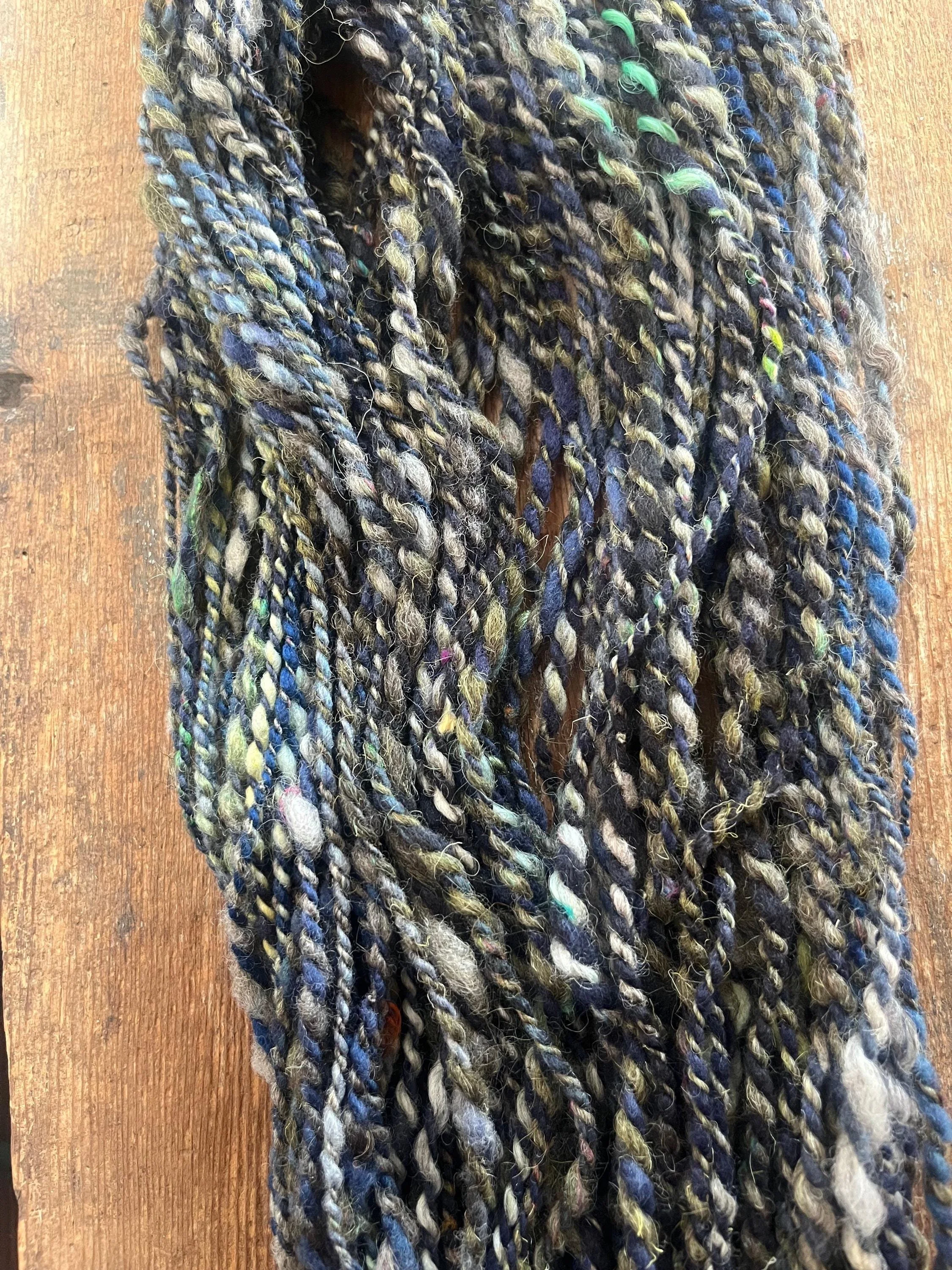 Twilight Carnival, handspun nubbly squishy chunky handspun Southdown wool art yarn
