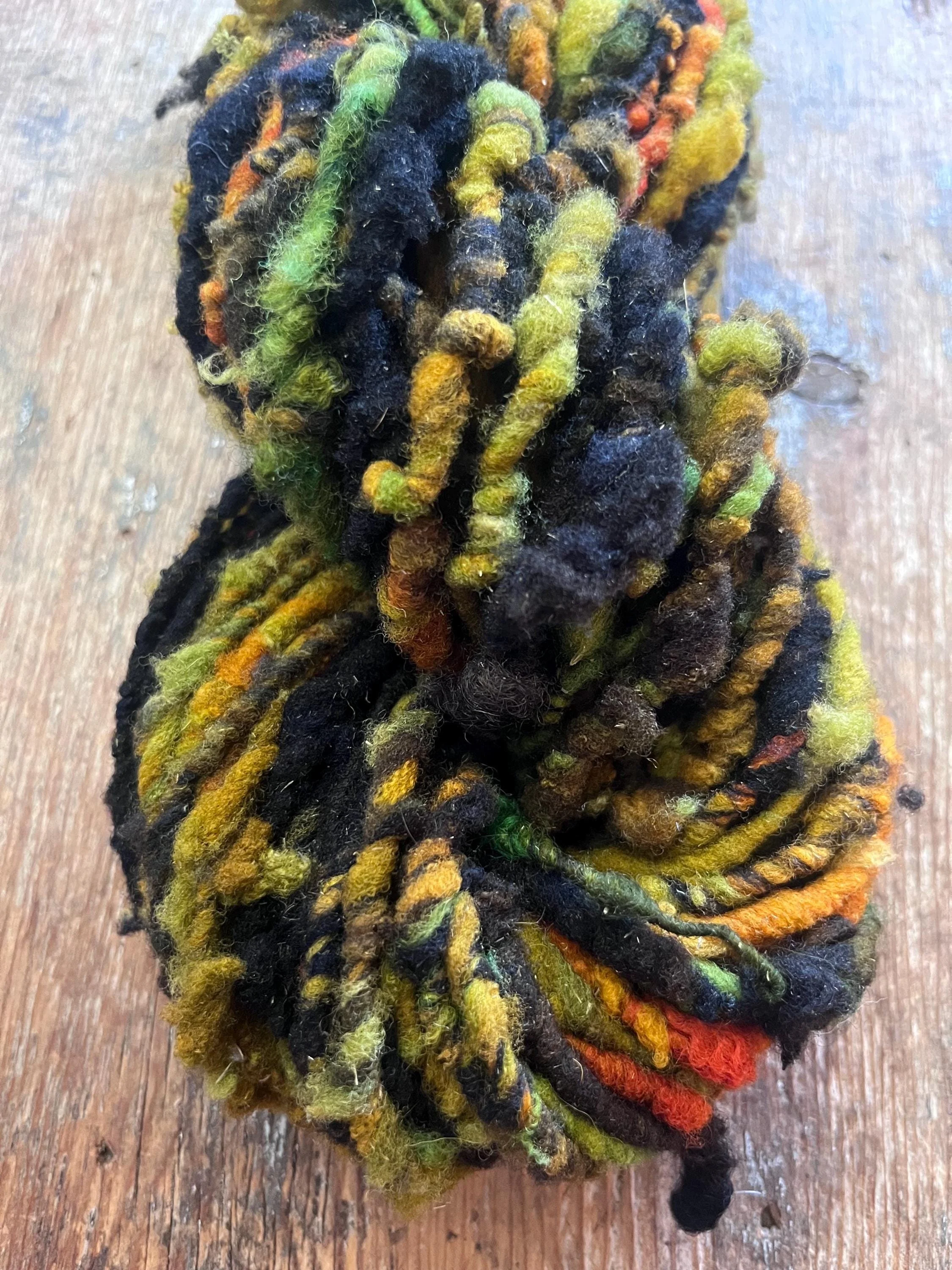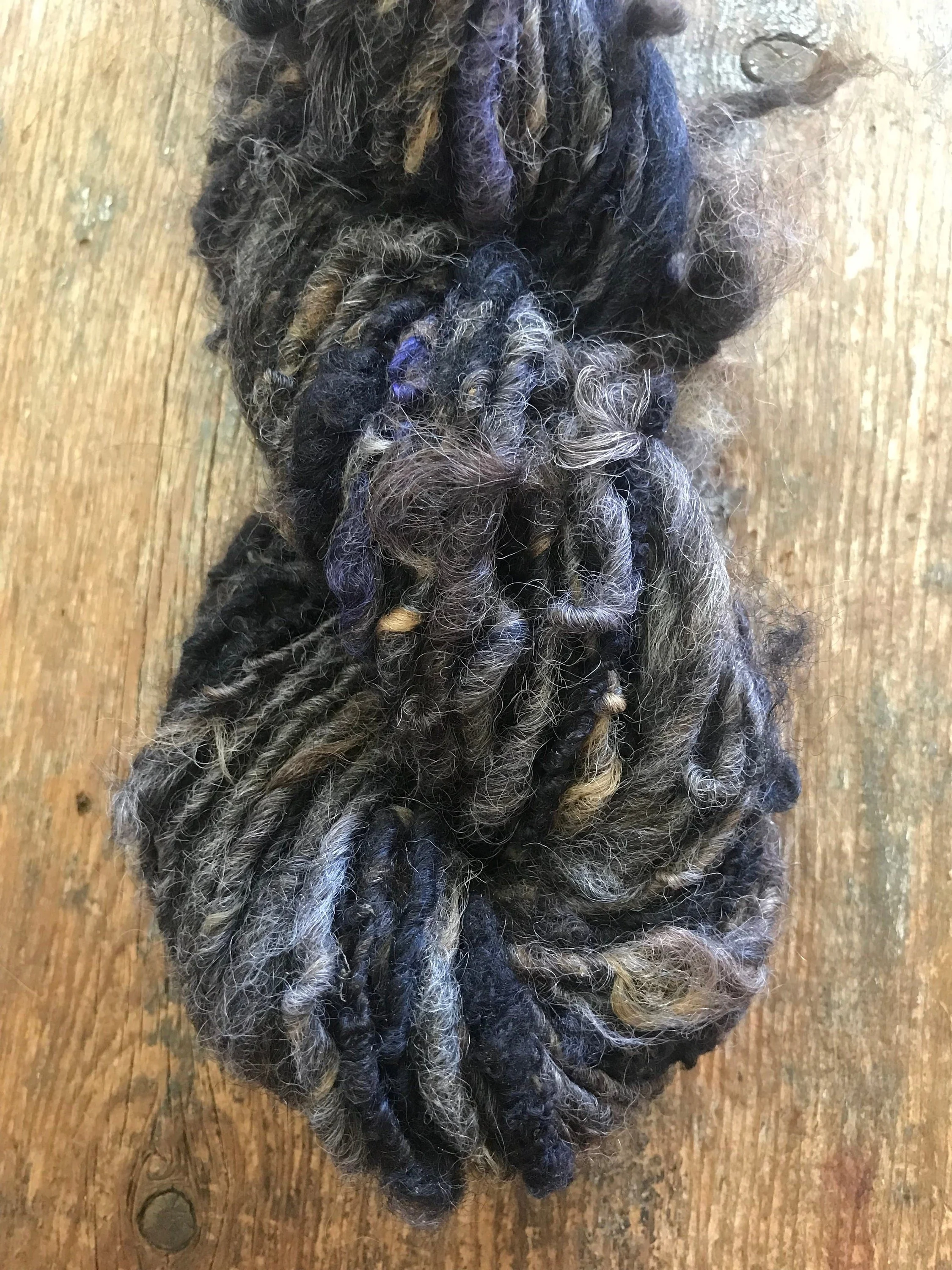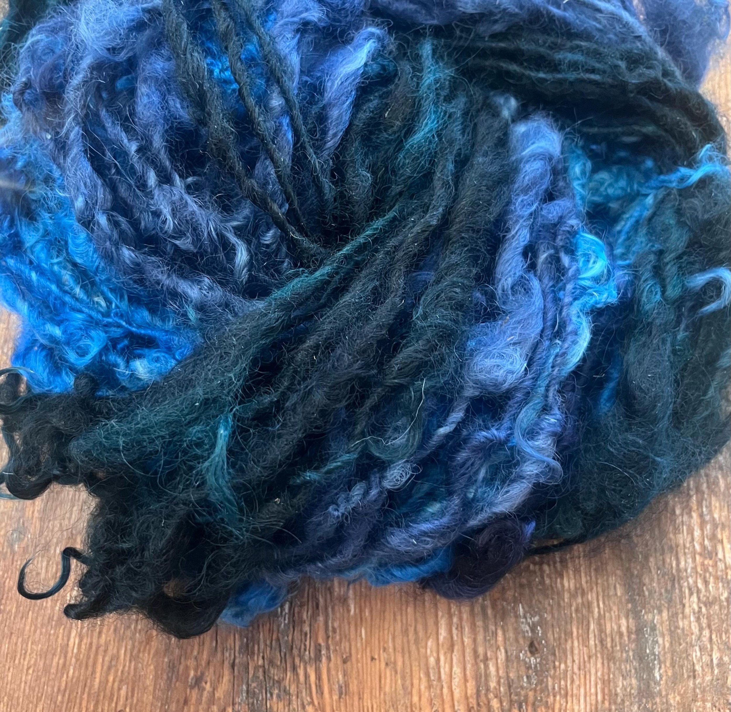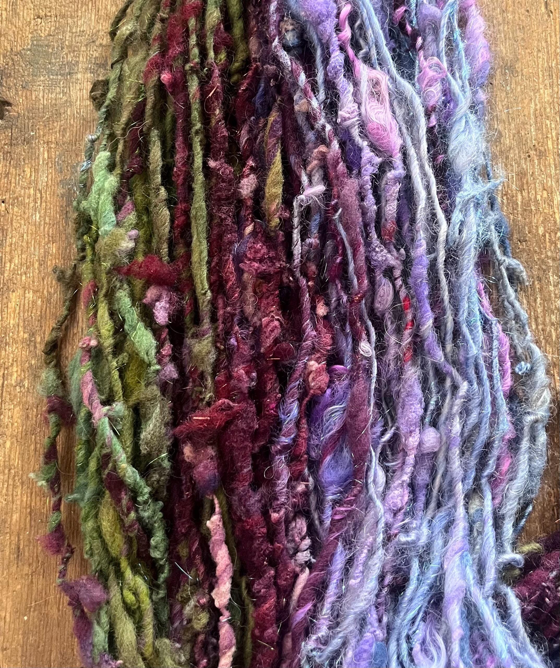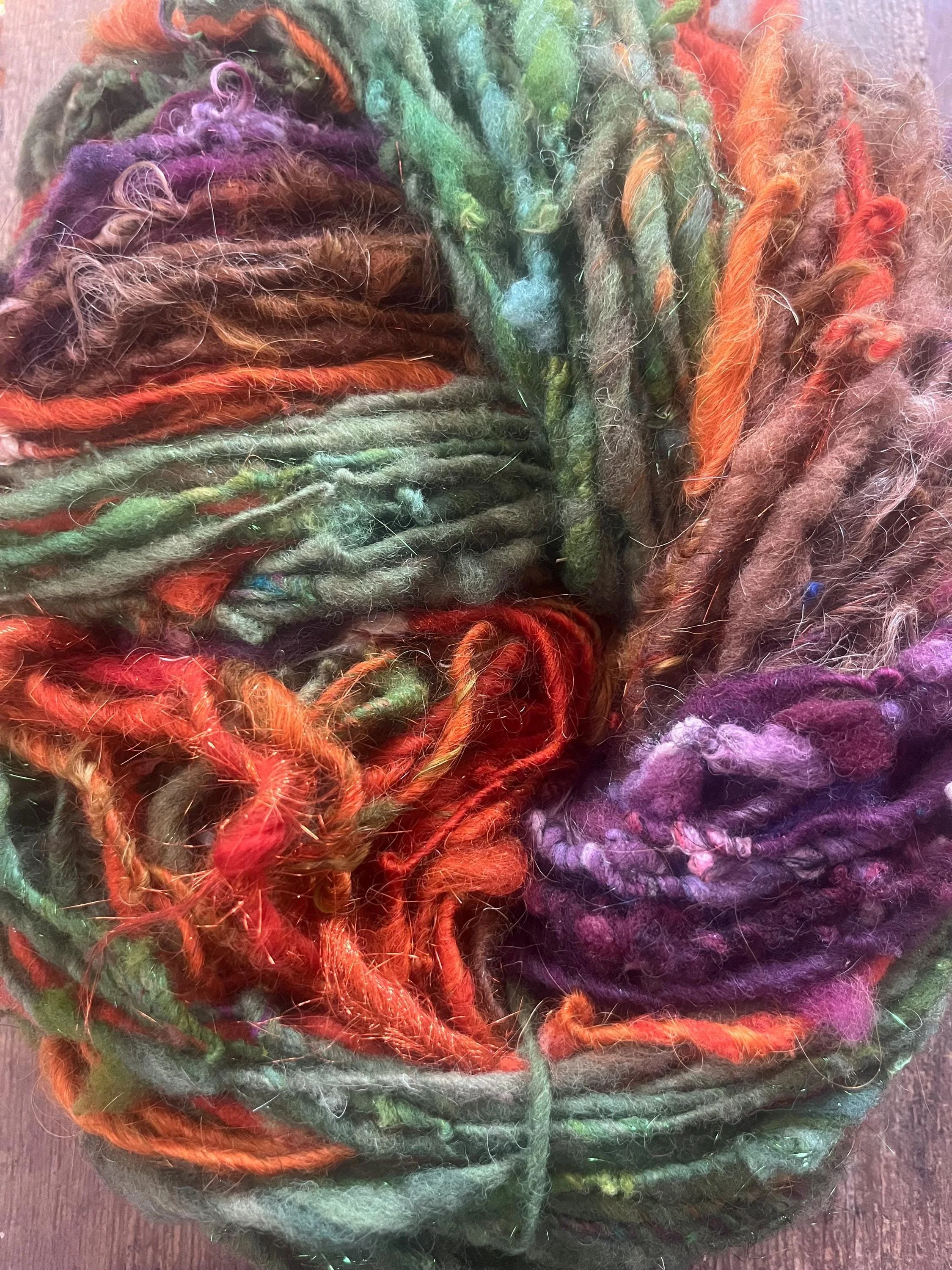 Twilight Carnival, handspun nubbly squishy chunky handspun Southdown wool art yarn