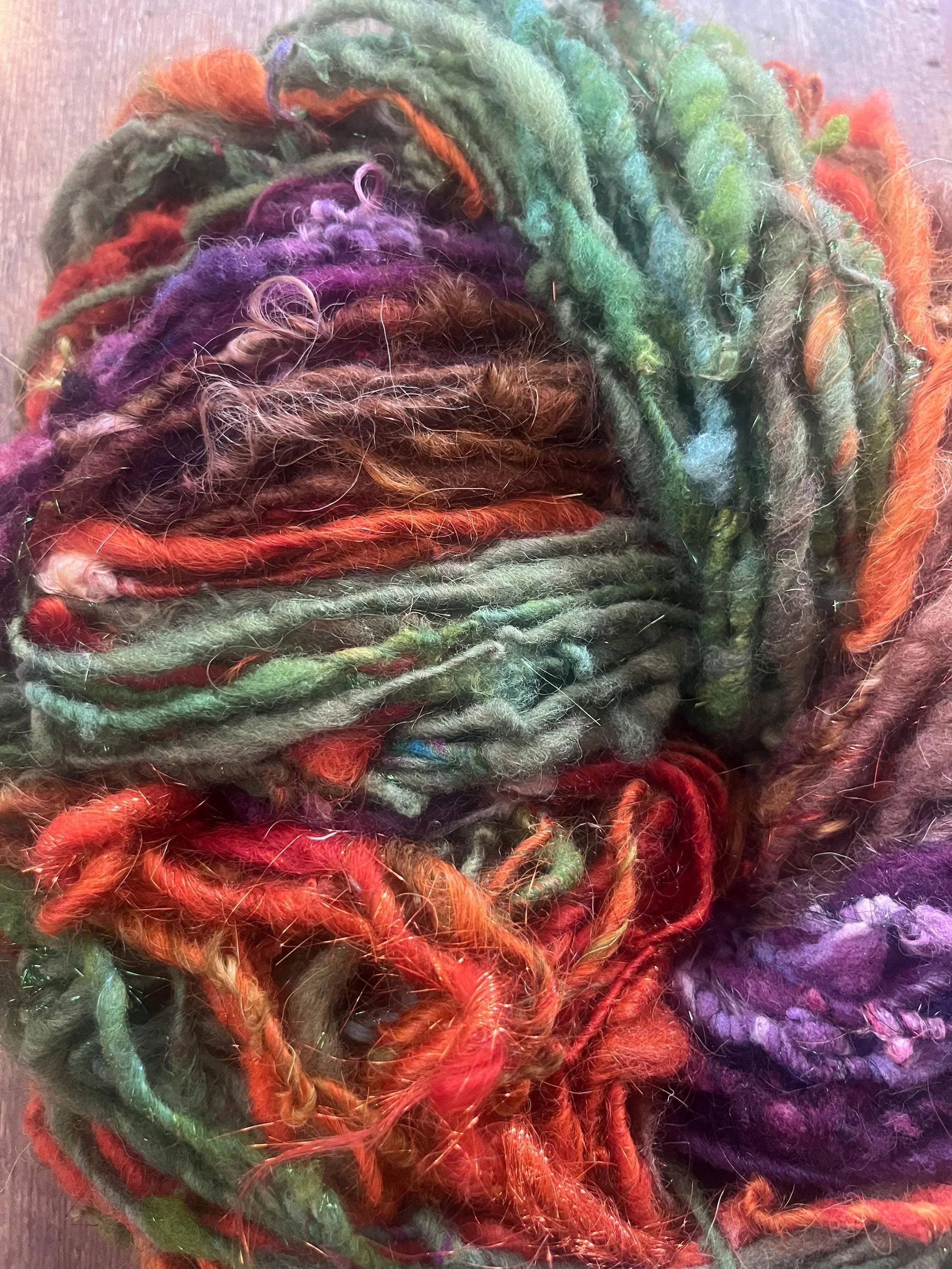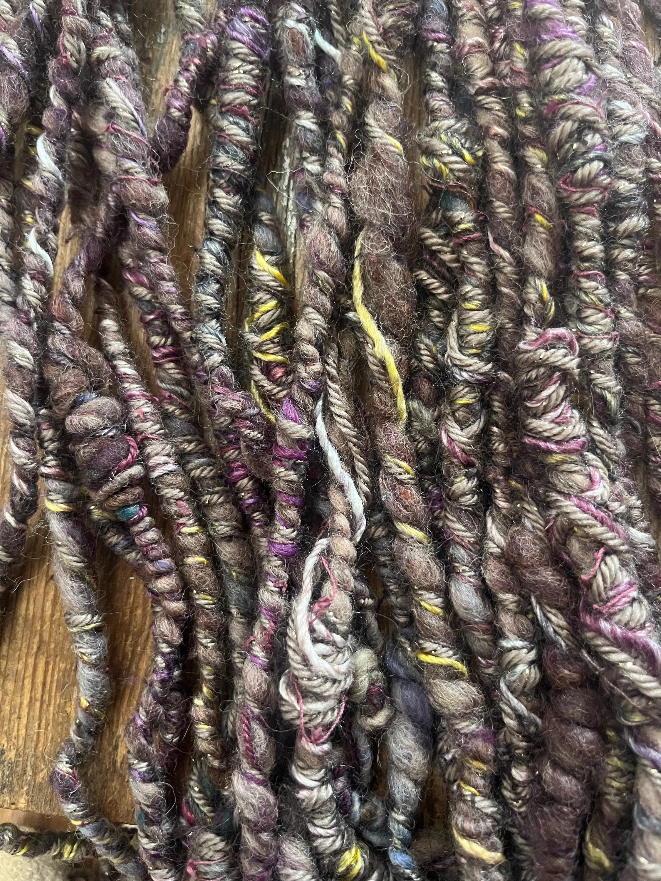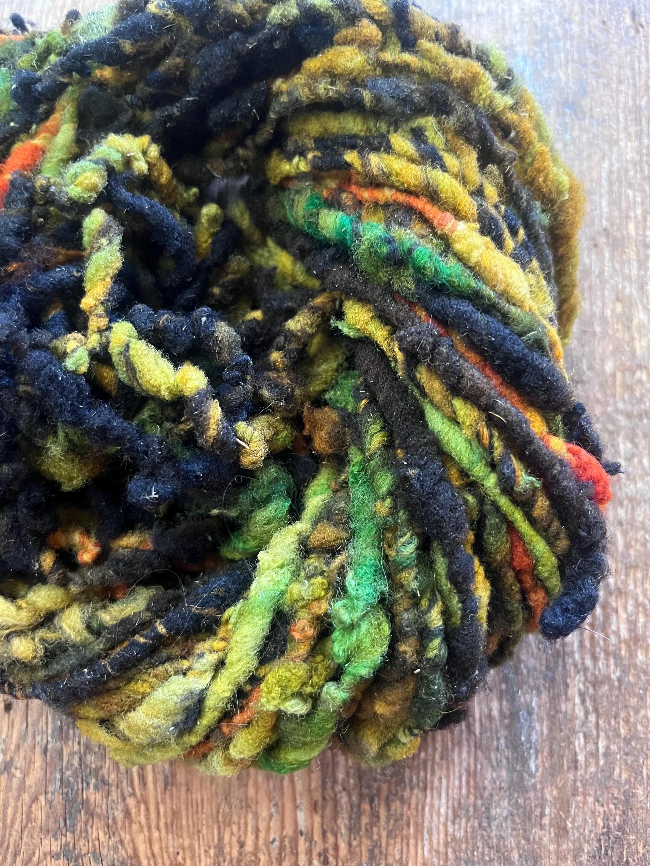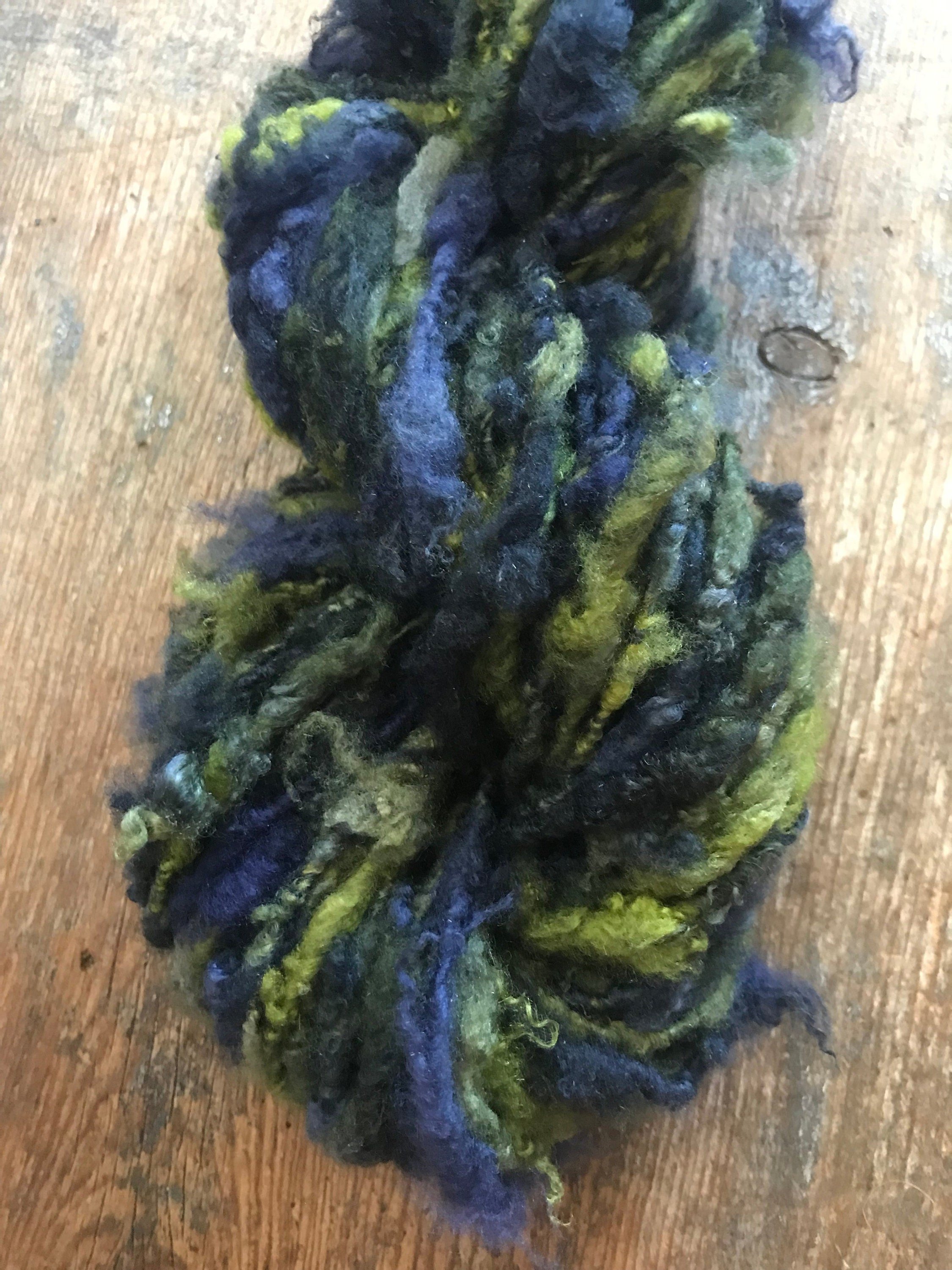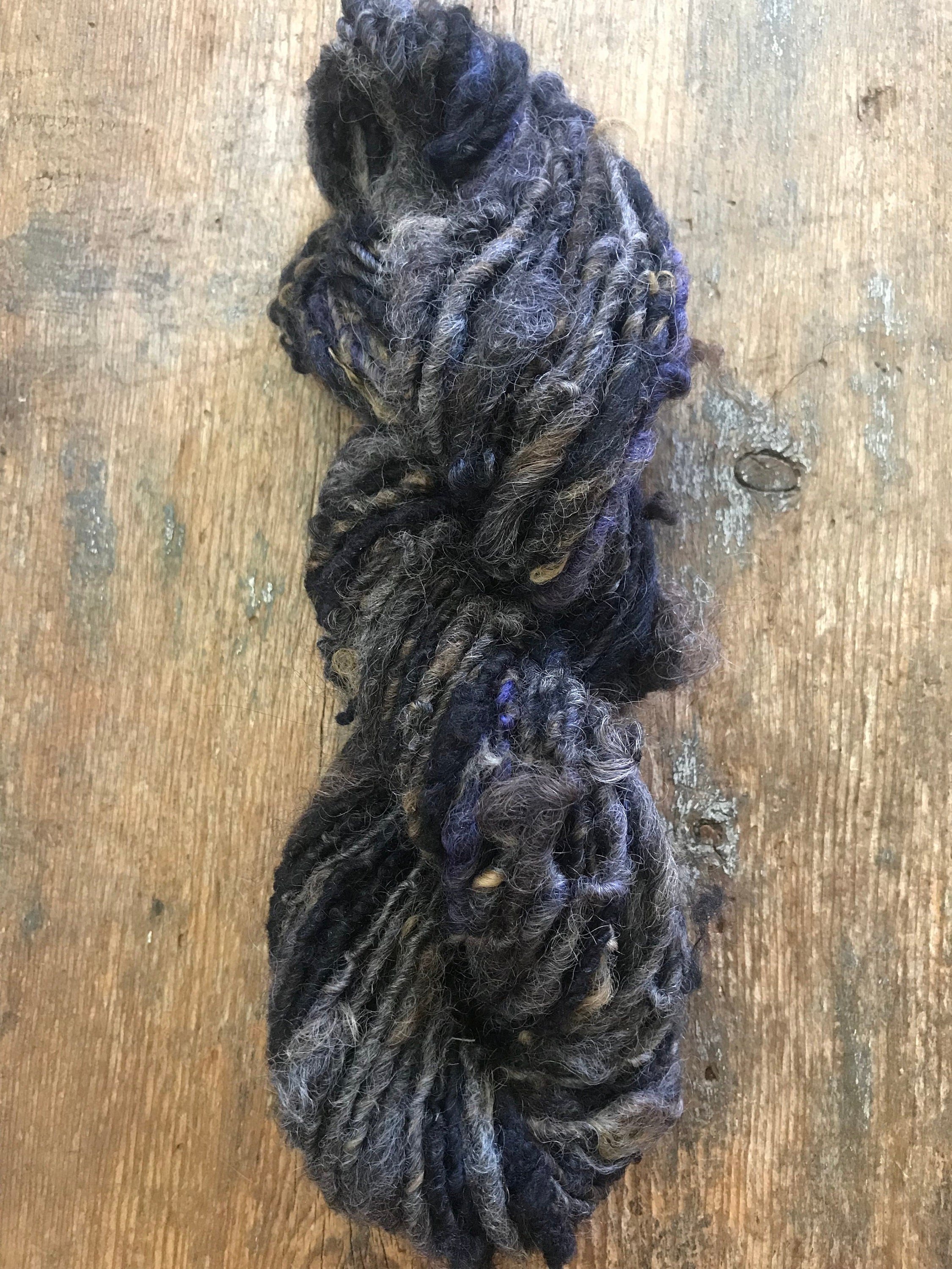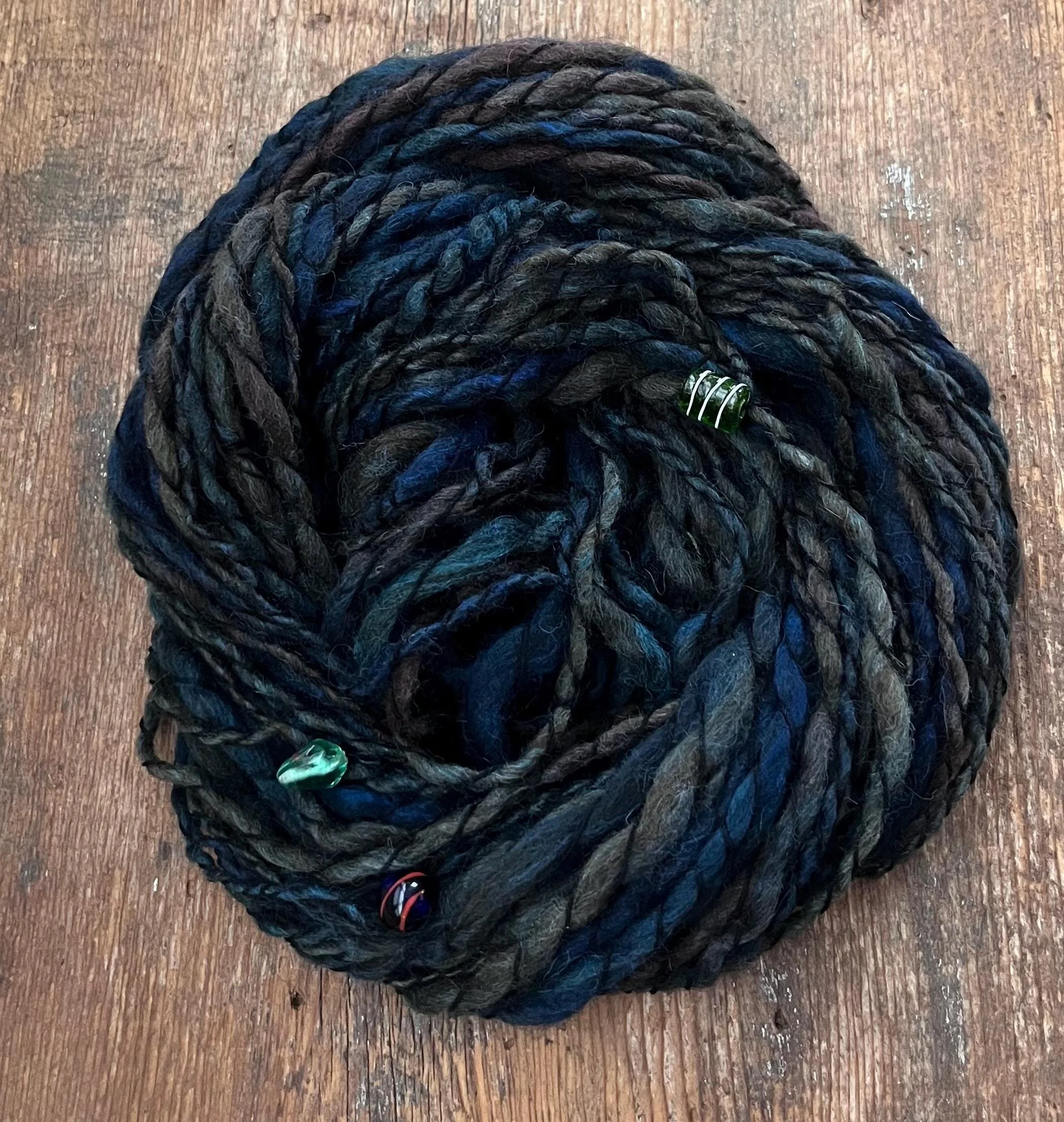 Twilight Carnival, handspun nubbly squishy chunky handspun Southdown wool art yarn