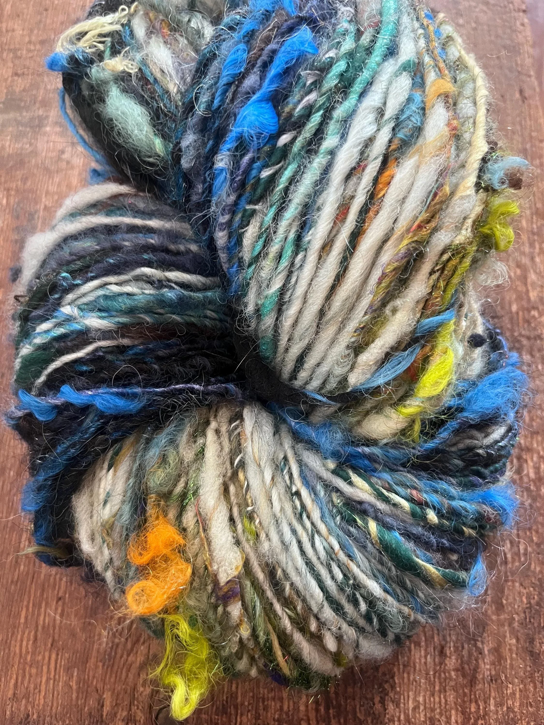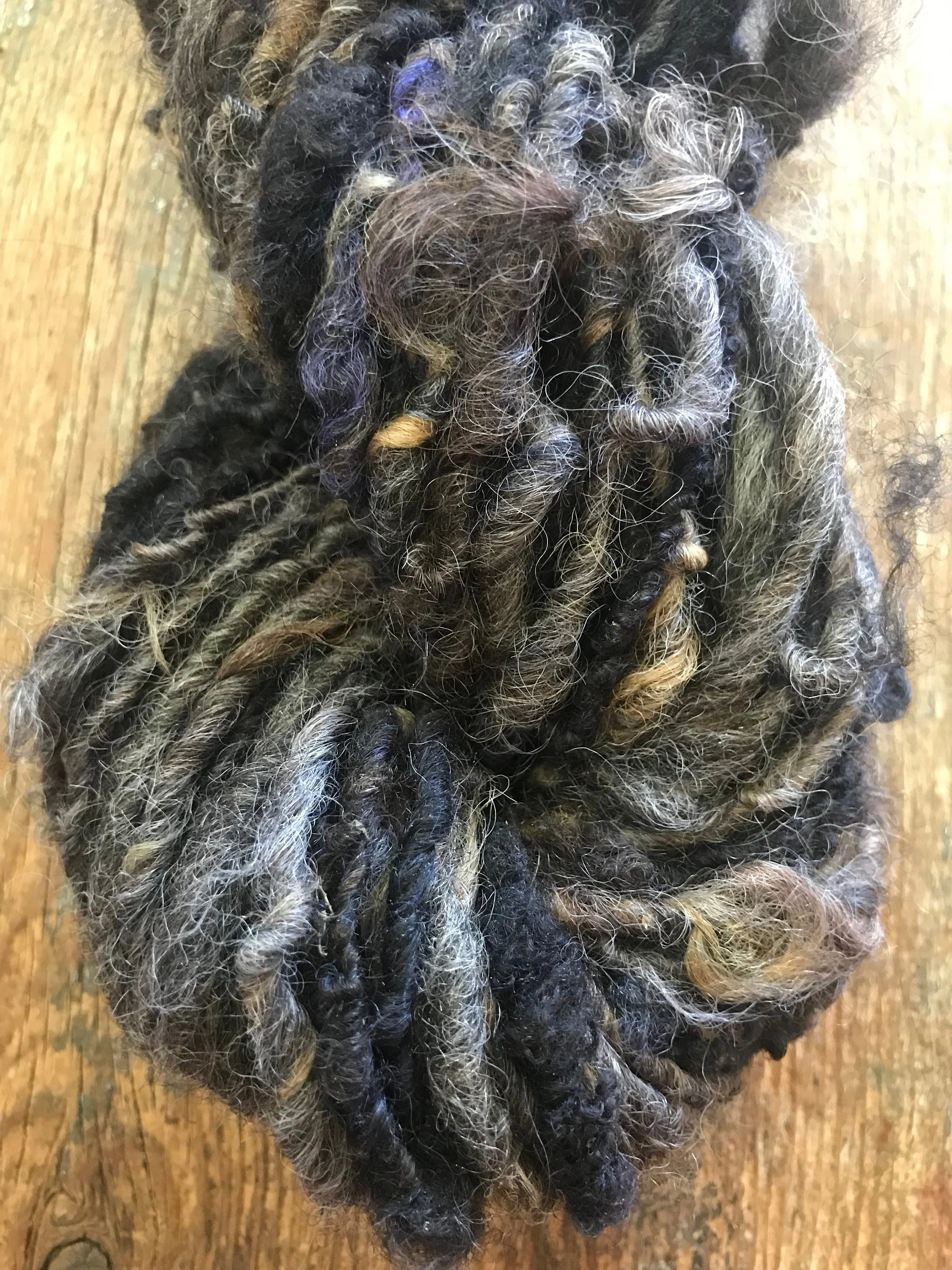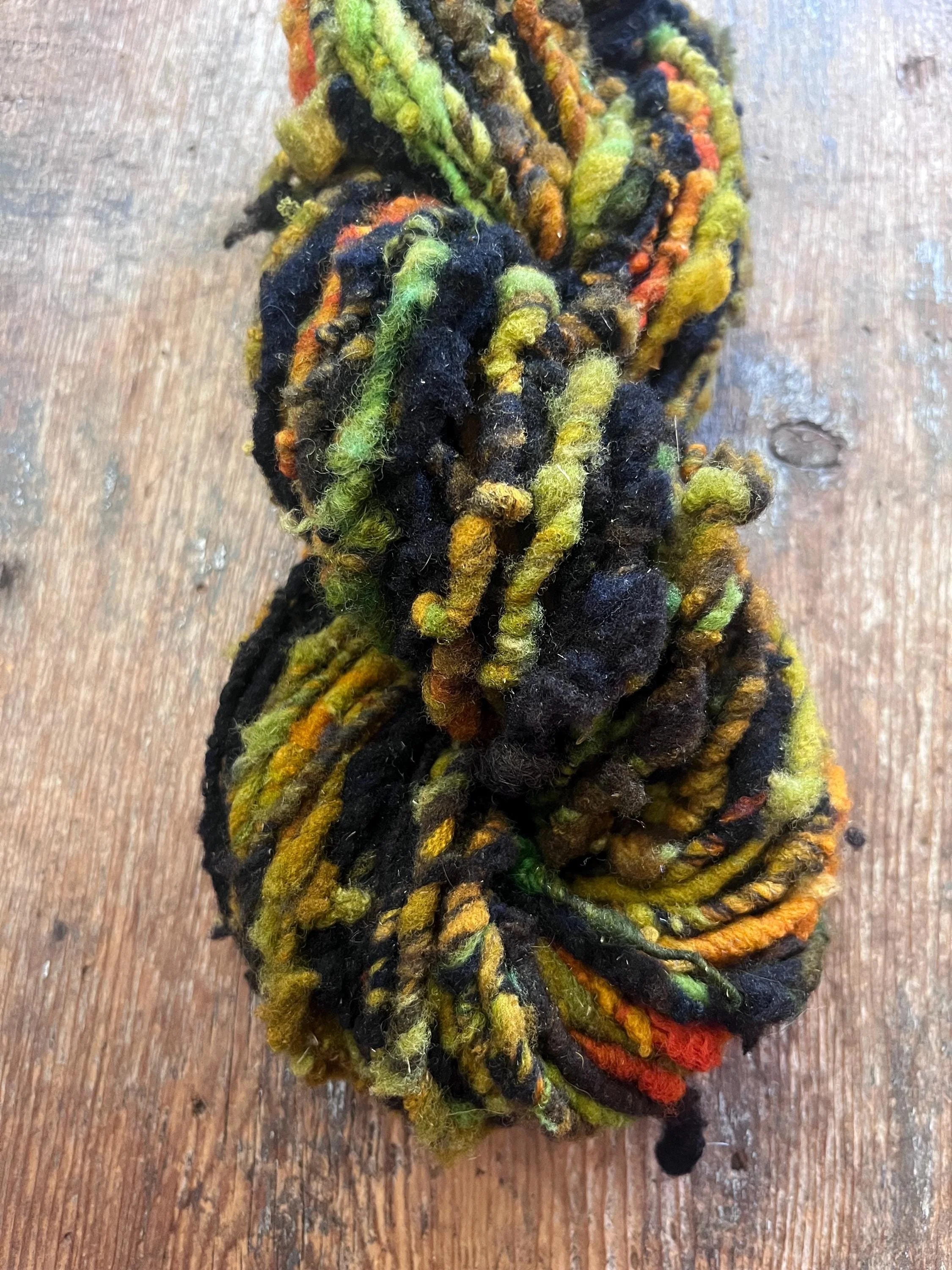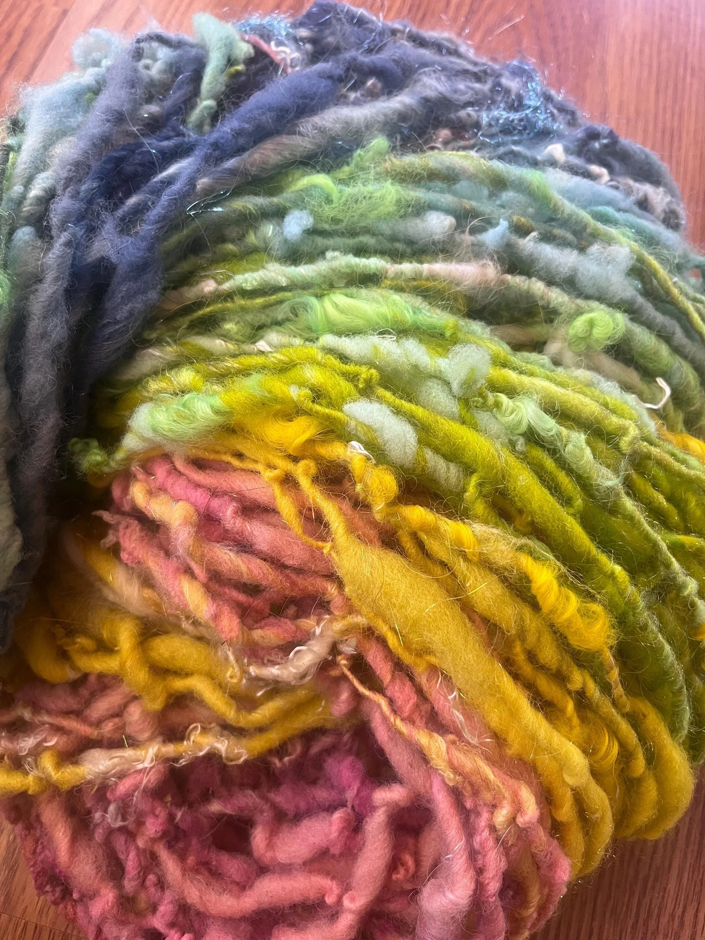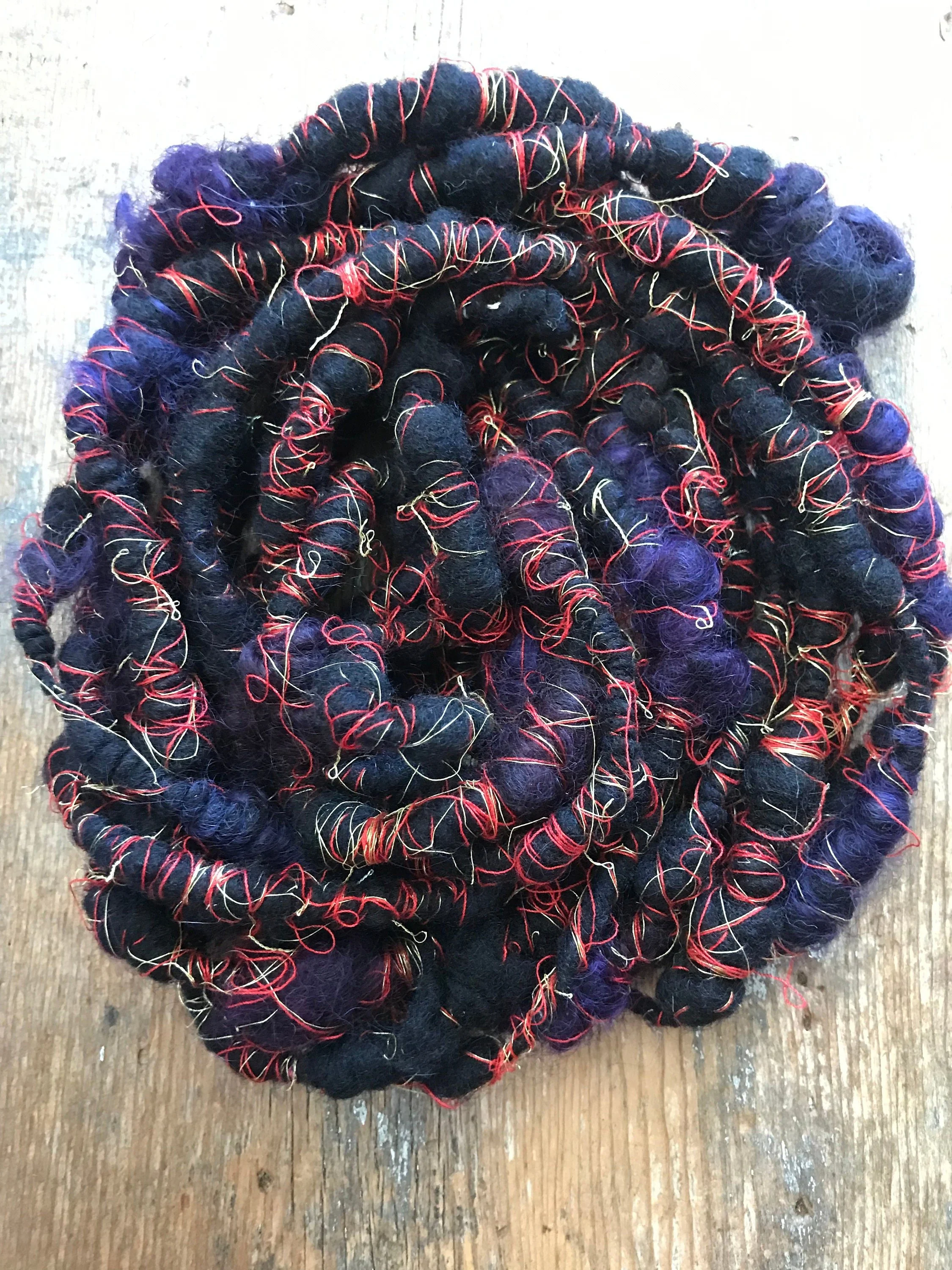 Twilight Carnival, handspun nubbly squishy chunky handspun Southdown wool art yarn