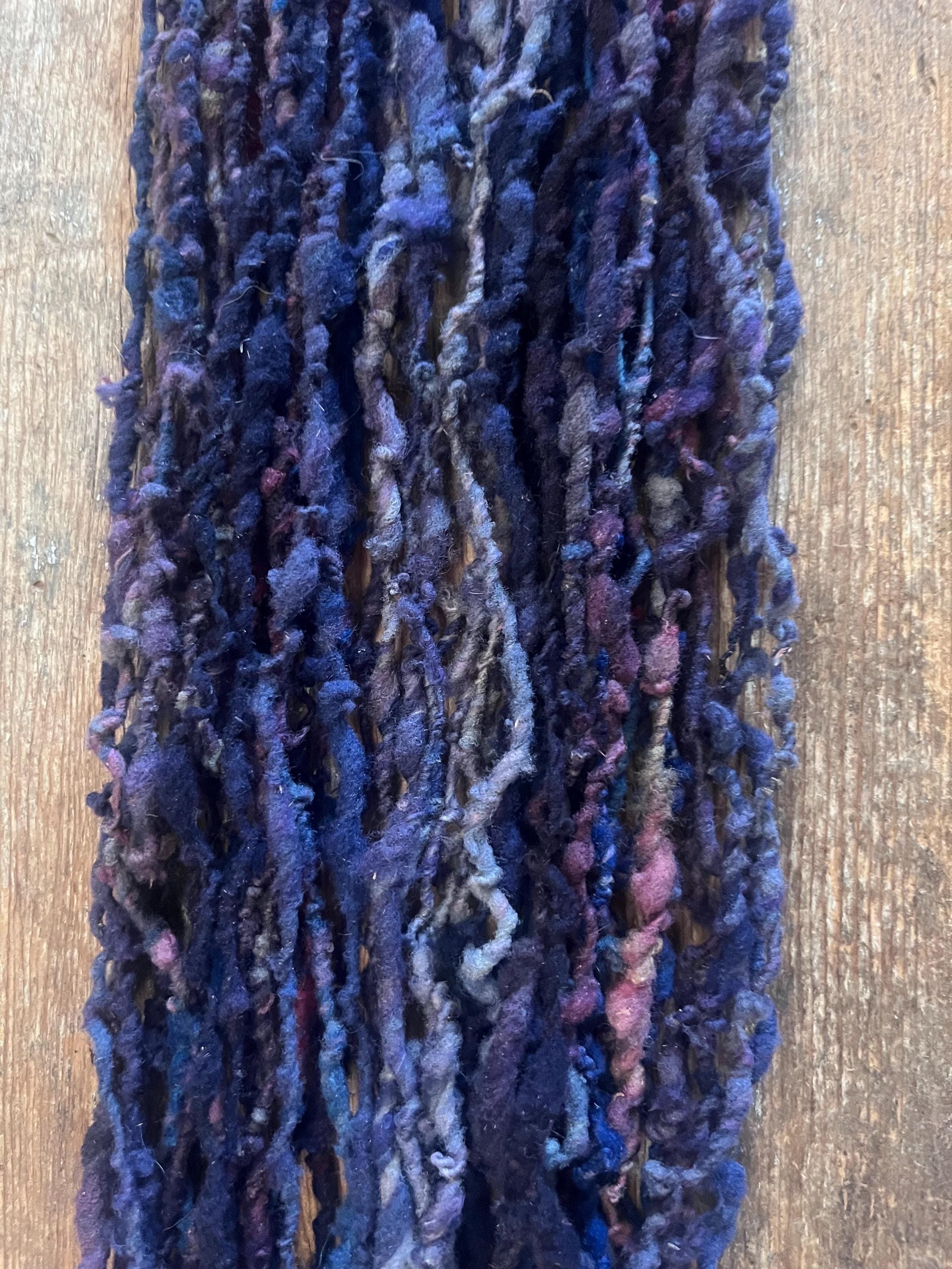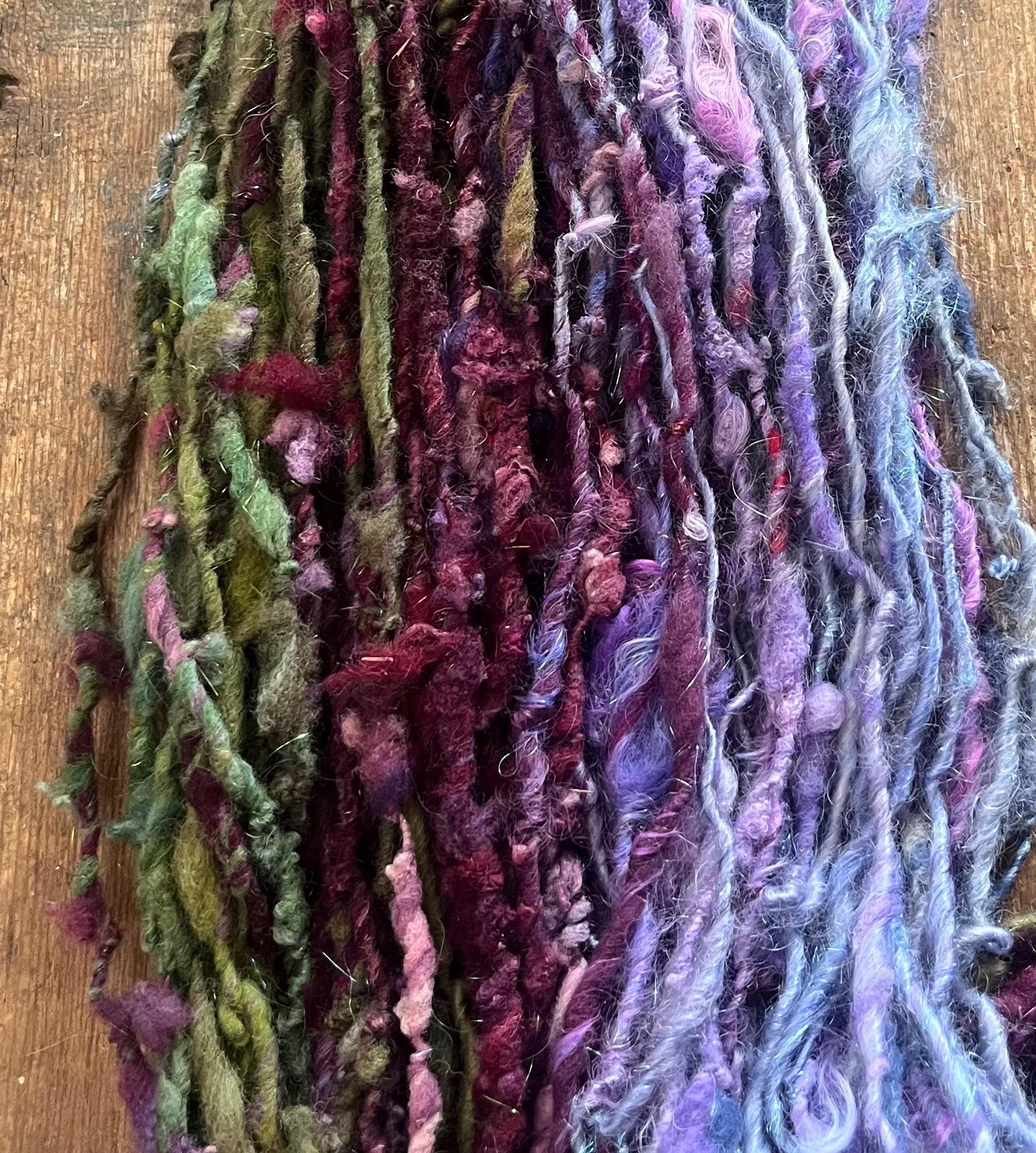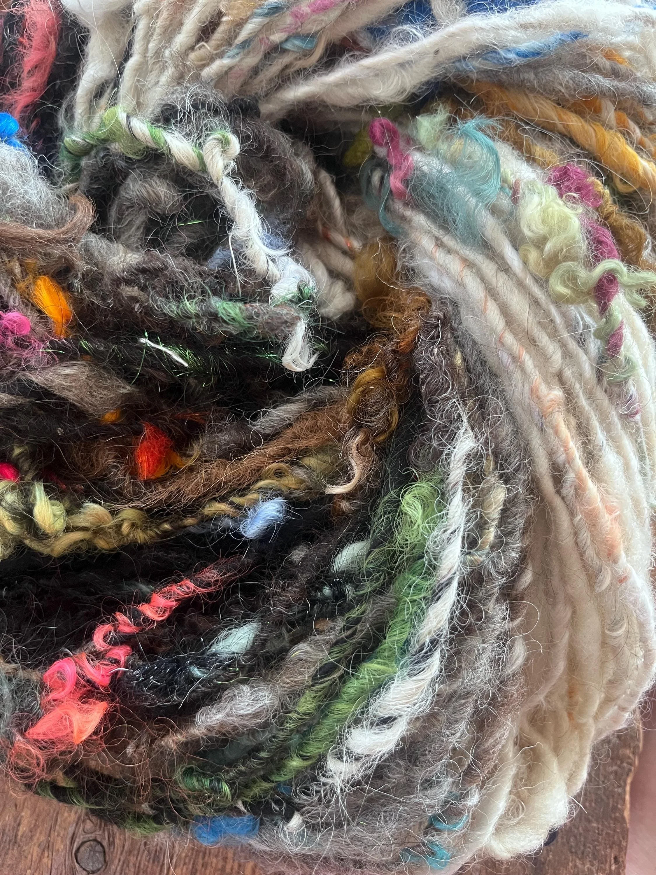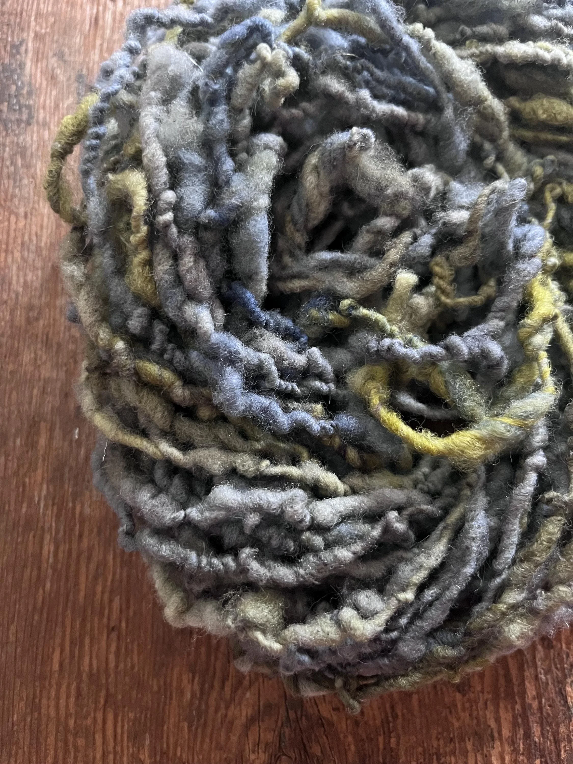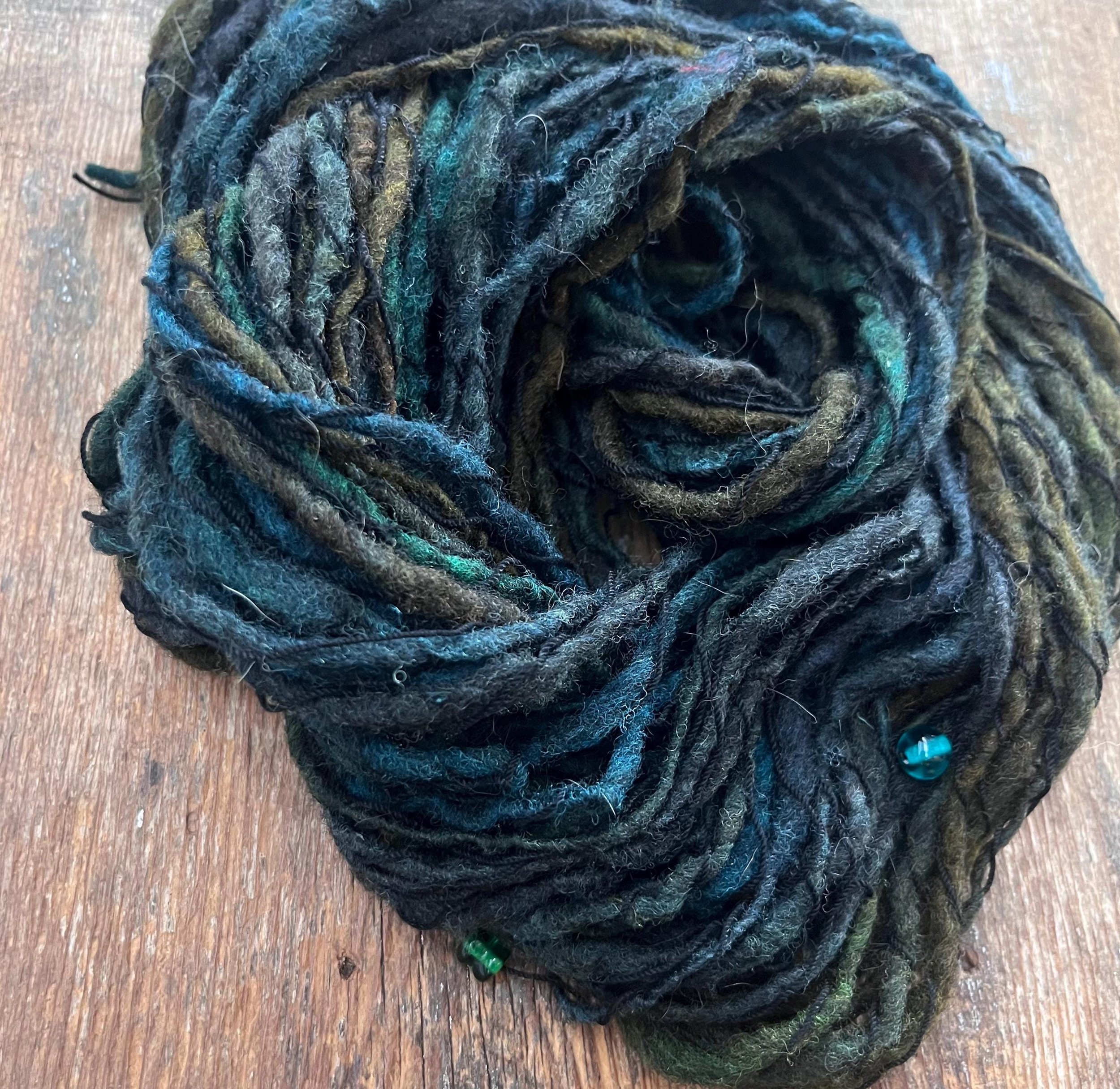 Twilight Carnival, handspun nubbly squishy chunky handspun Southdown wool art yarn