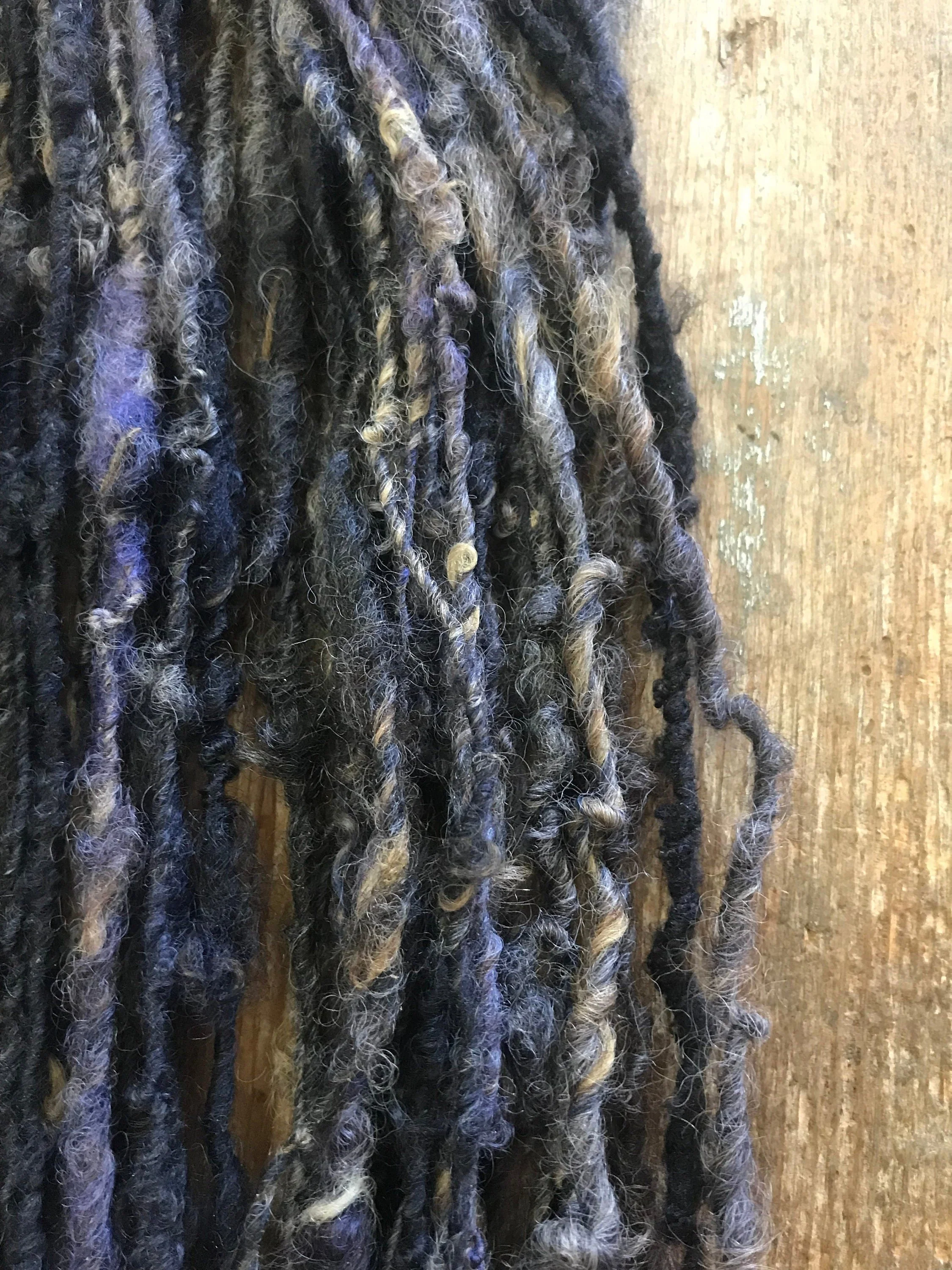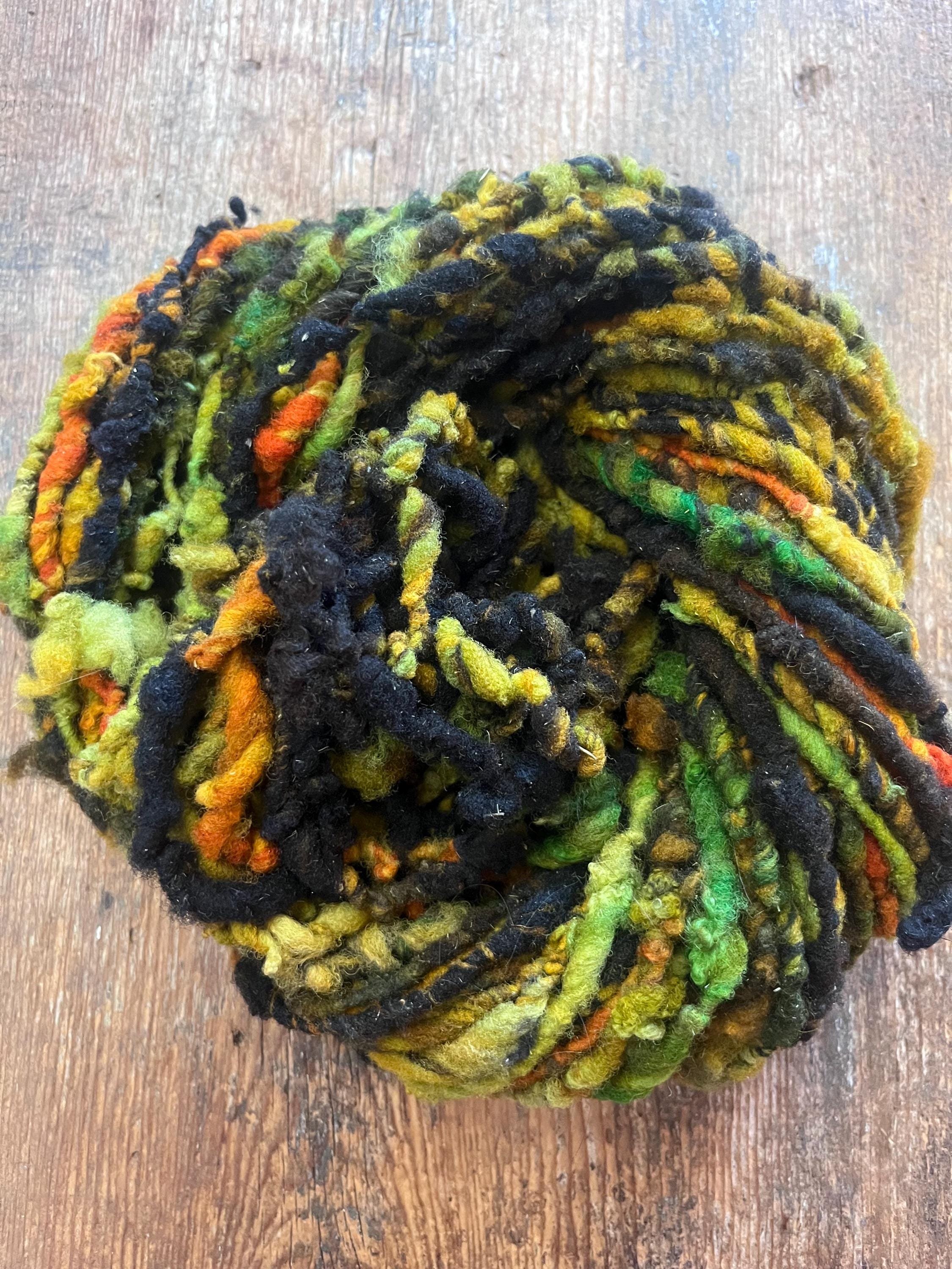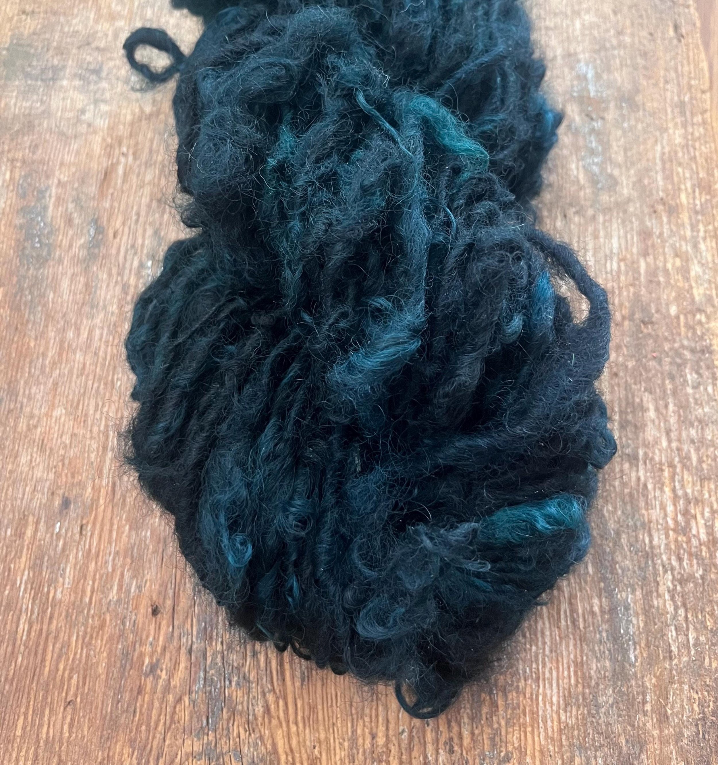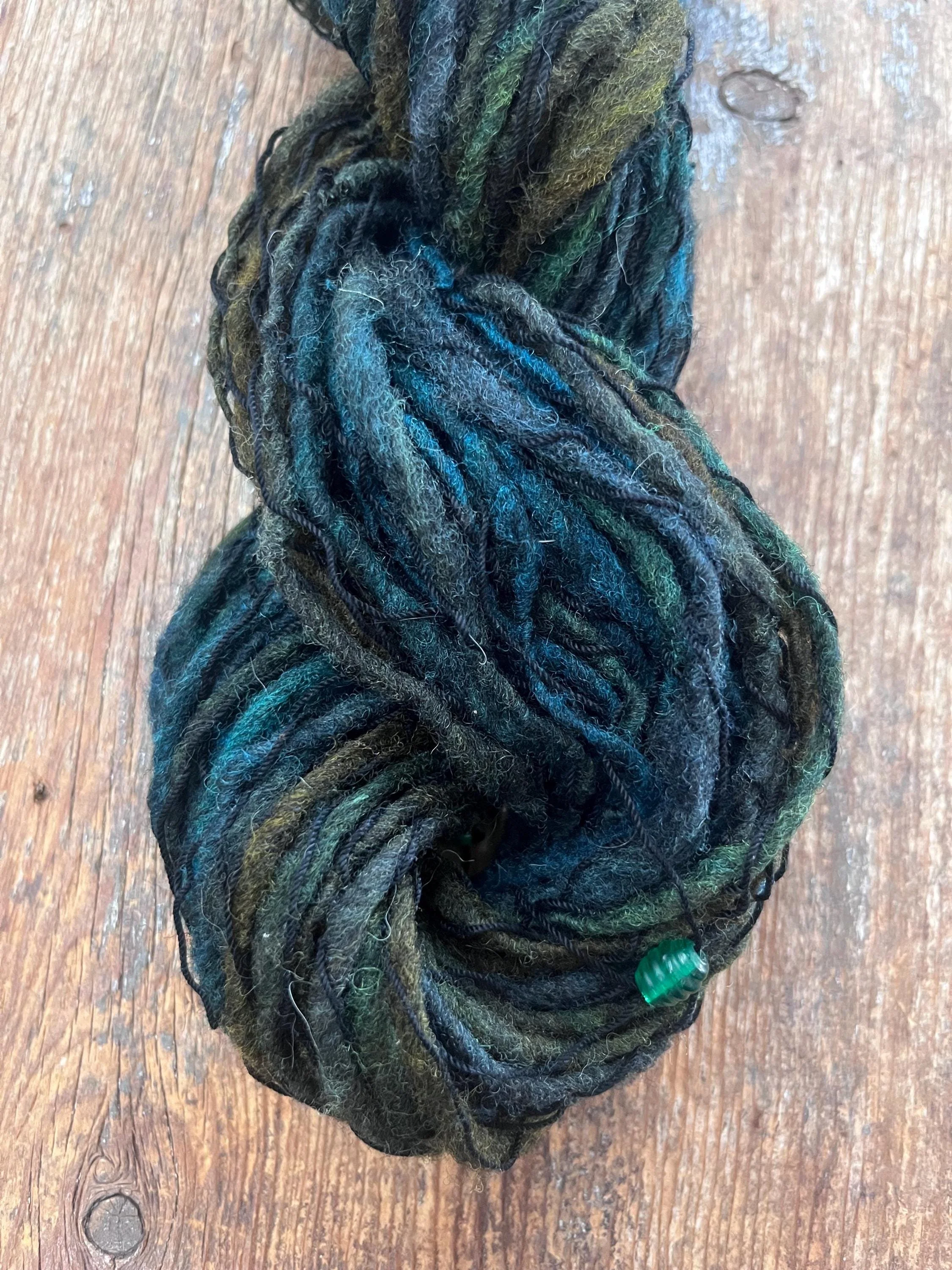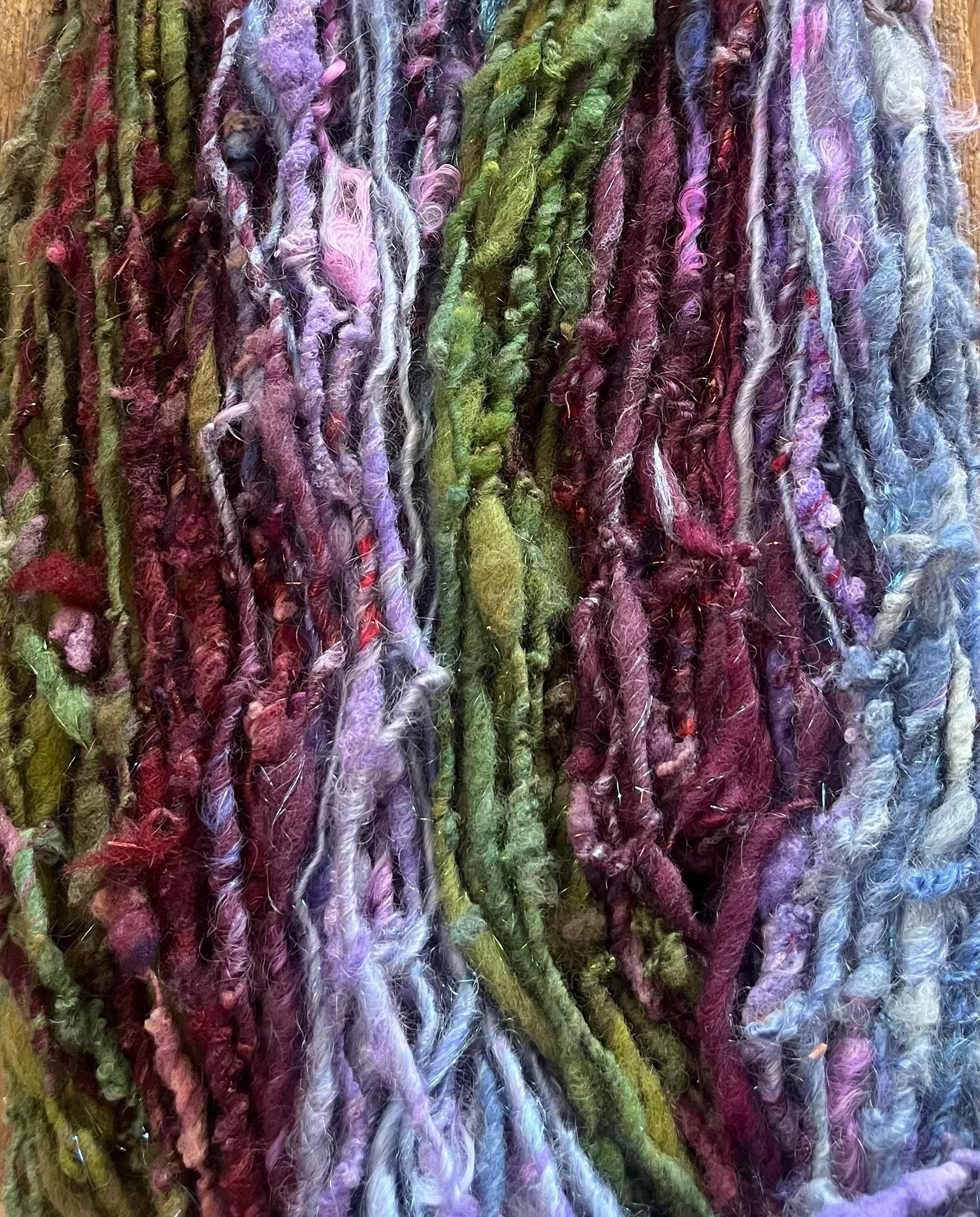 Twilight Carnival, handspun nubbly squishy chunky handspun Southdown wool art yarn