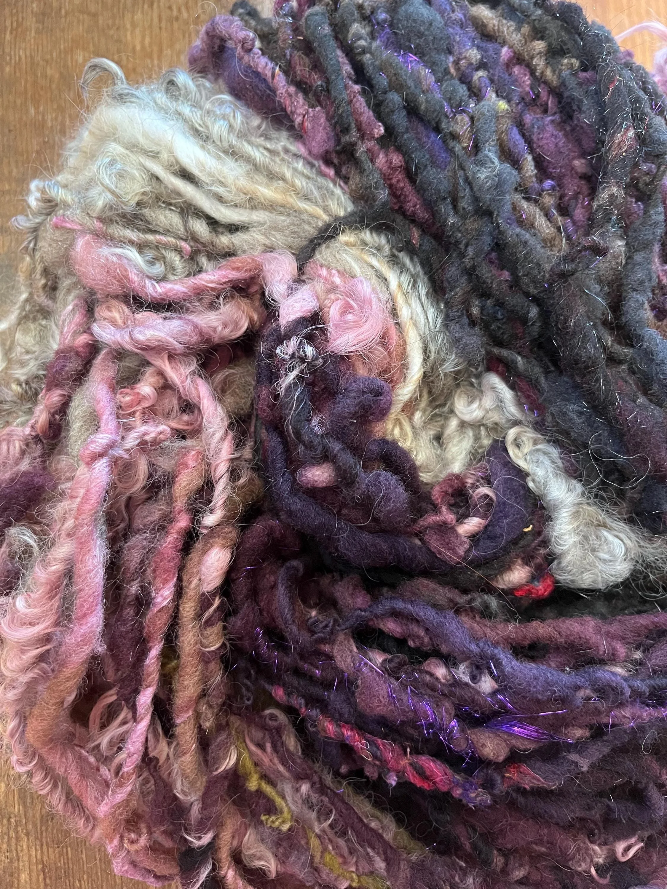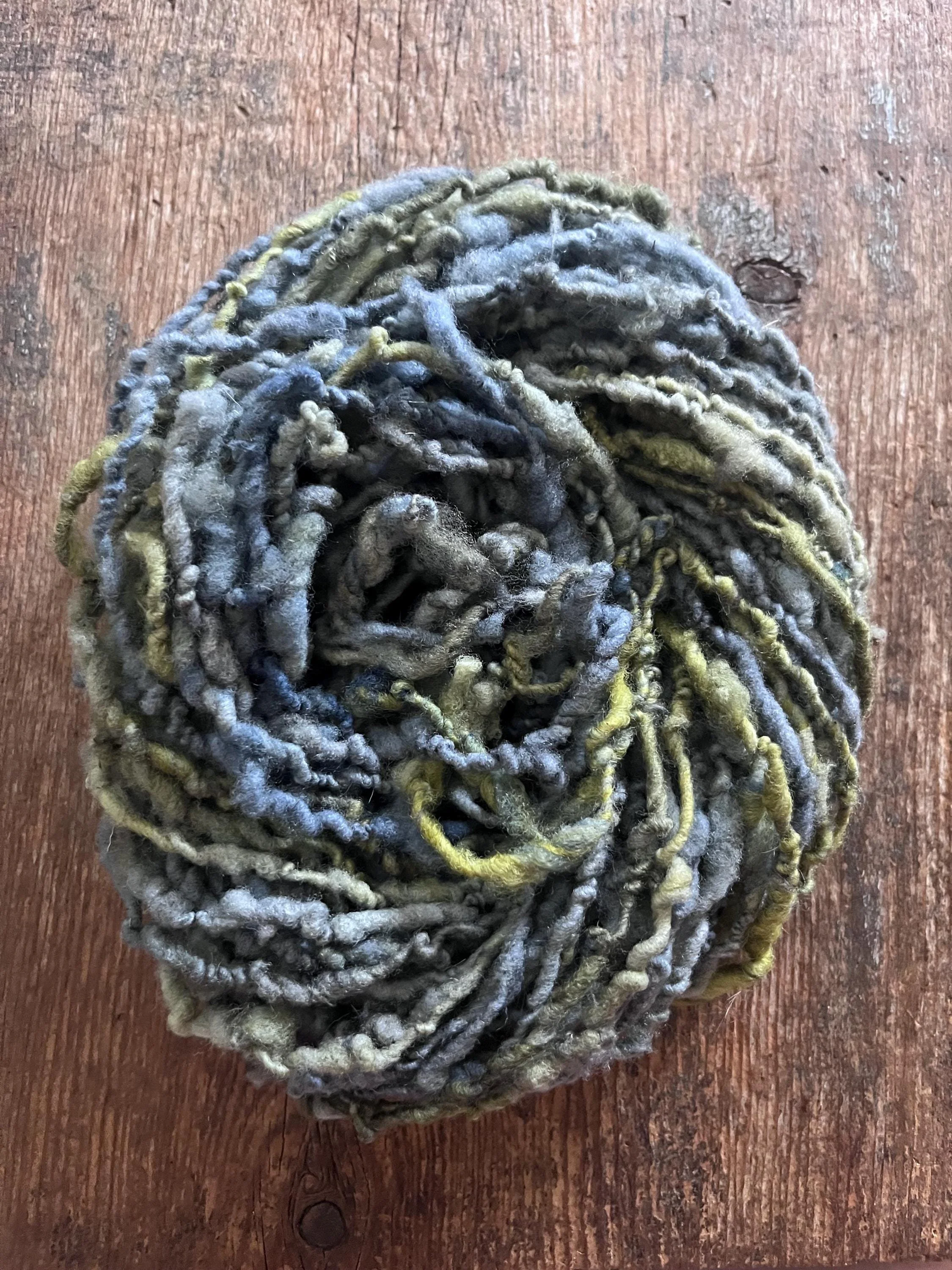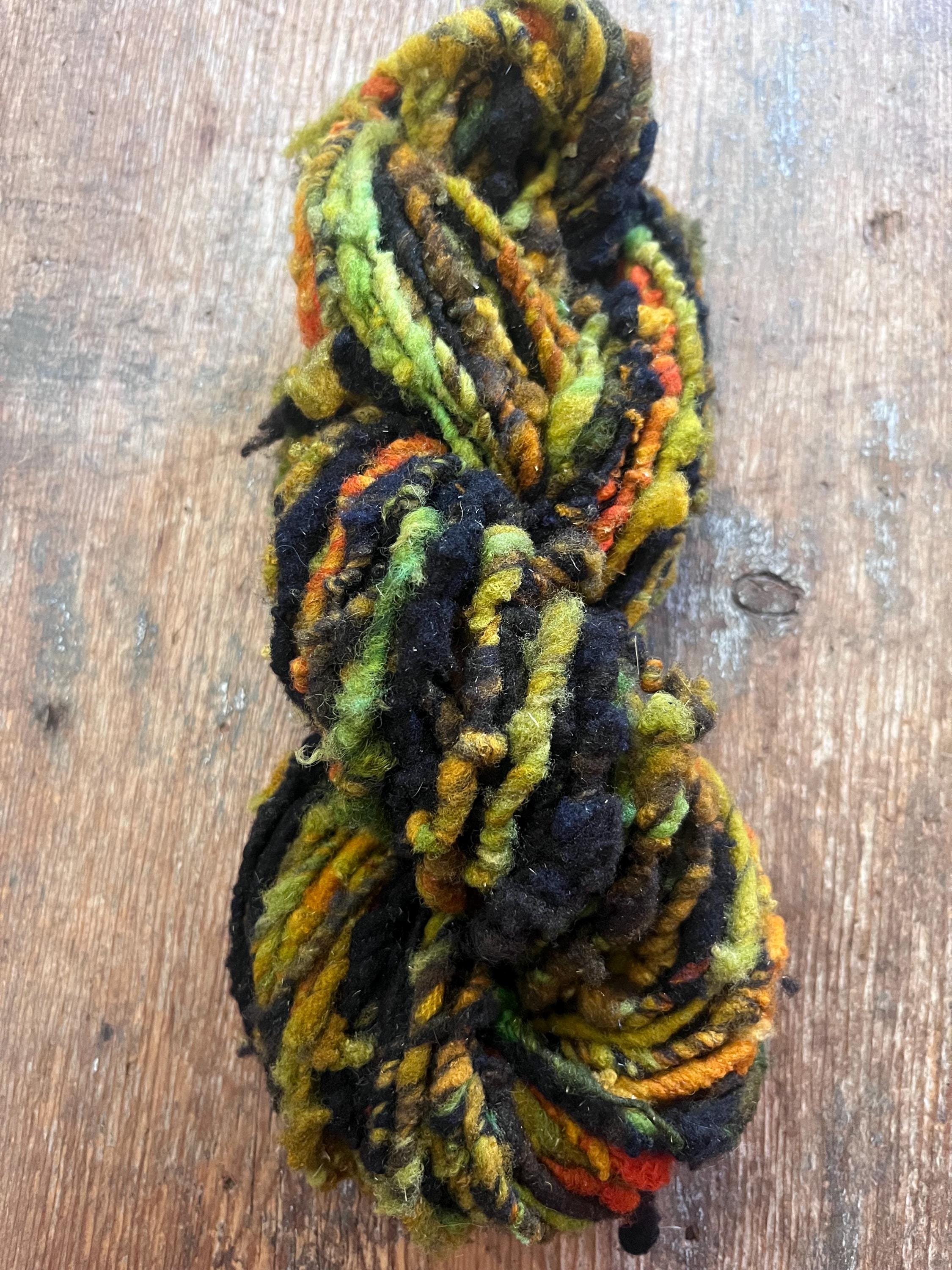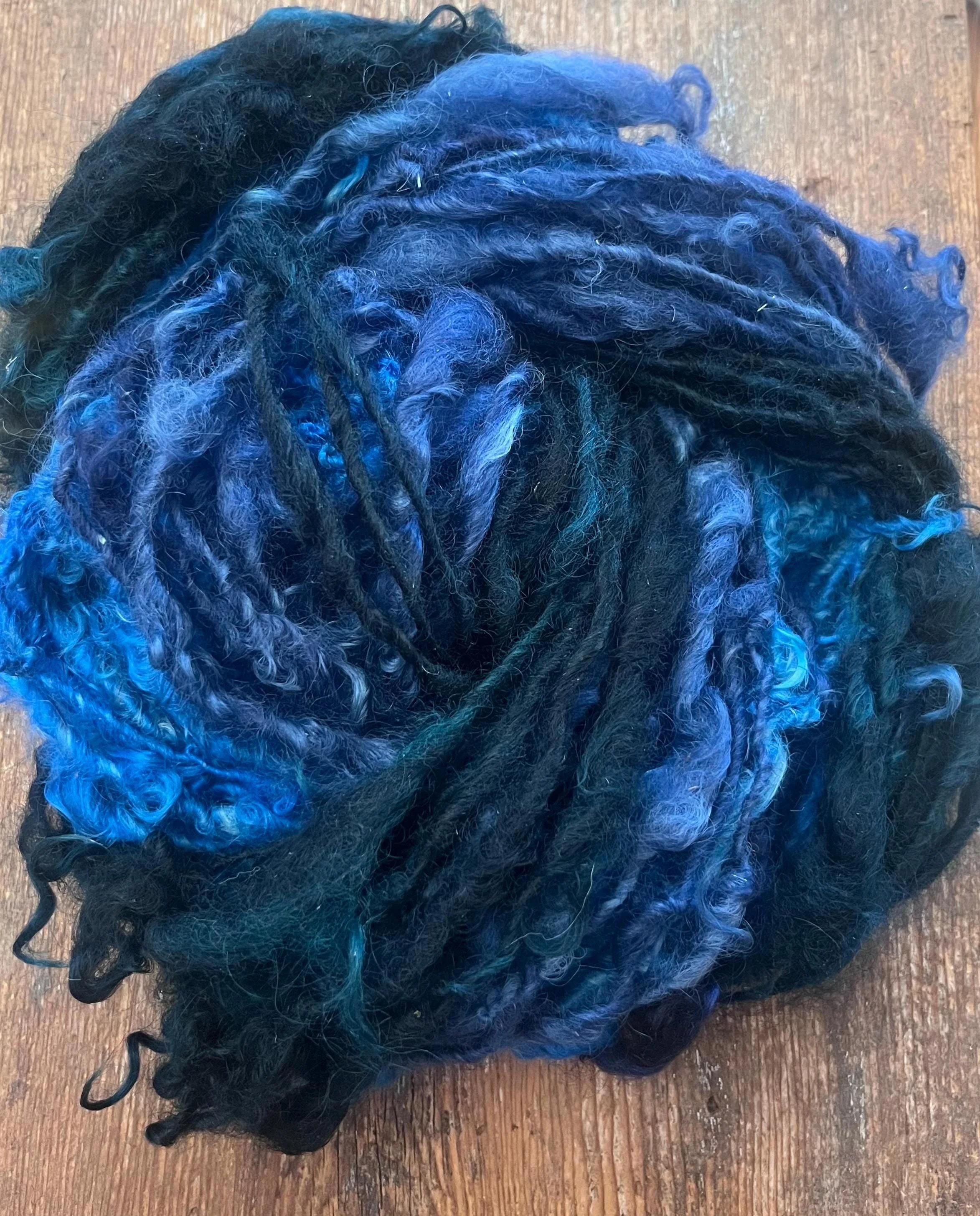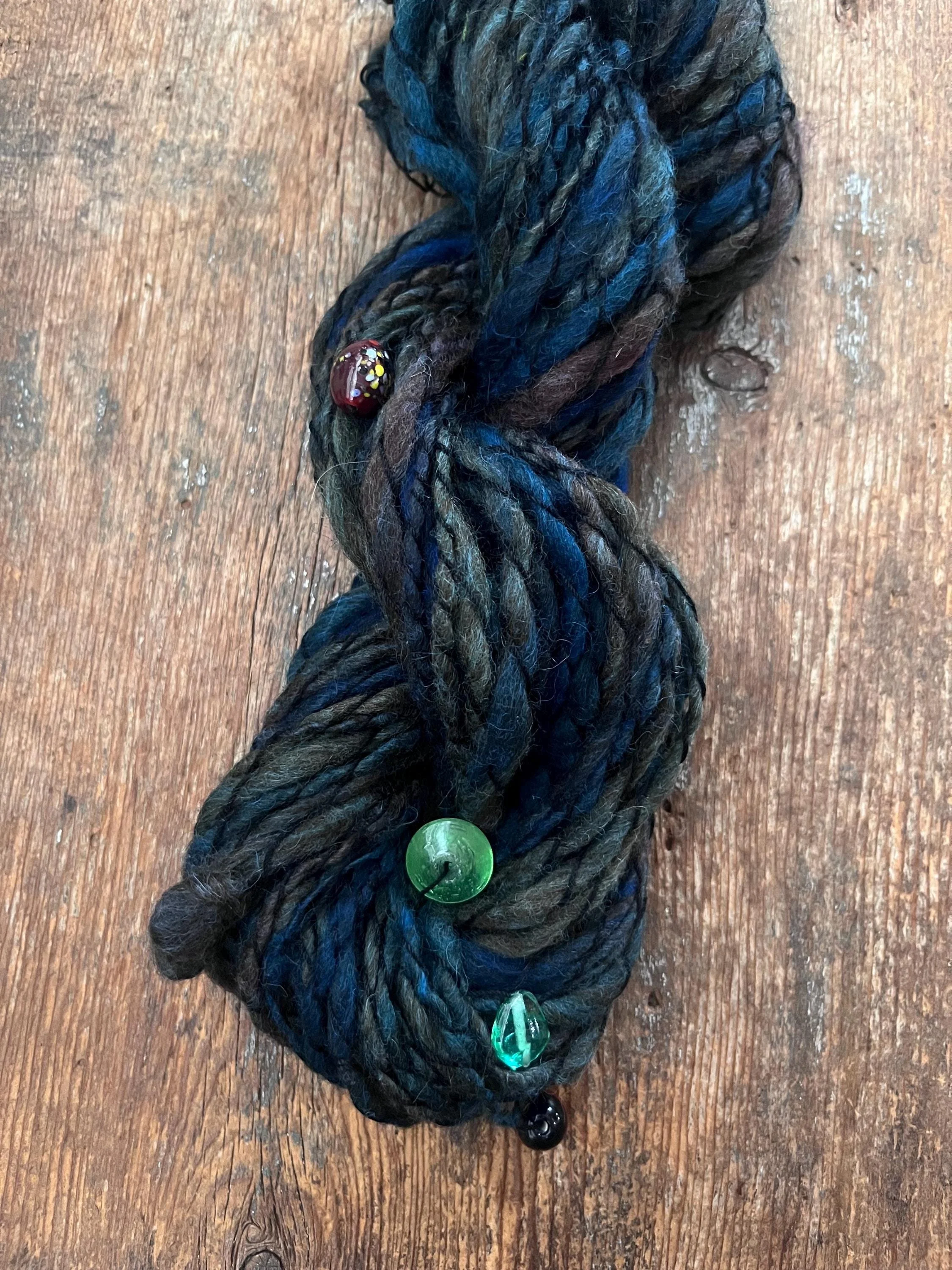 Twilight Carnival, handspun nubbly squishy chunky handspun Southdown wool art yarn