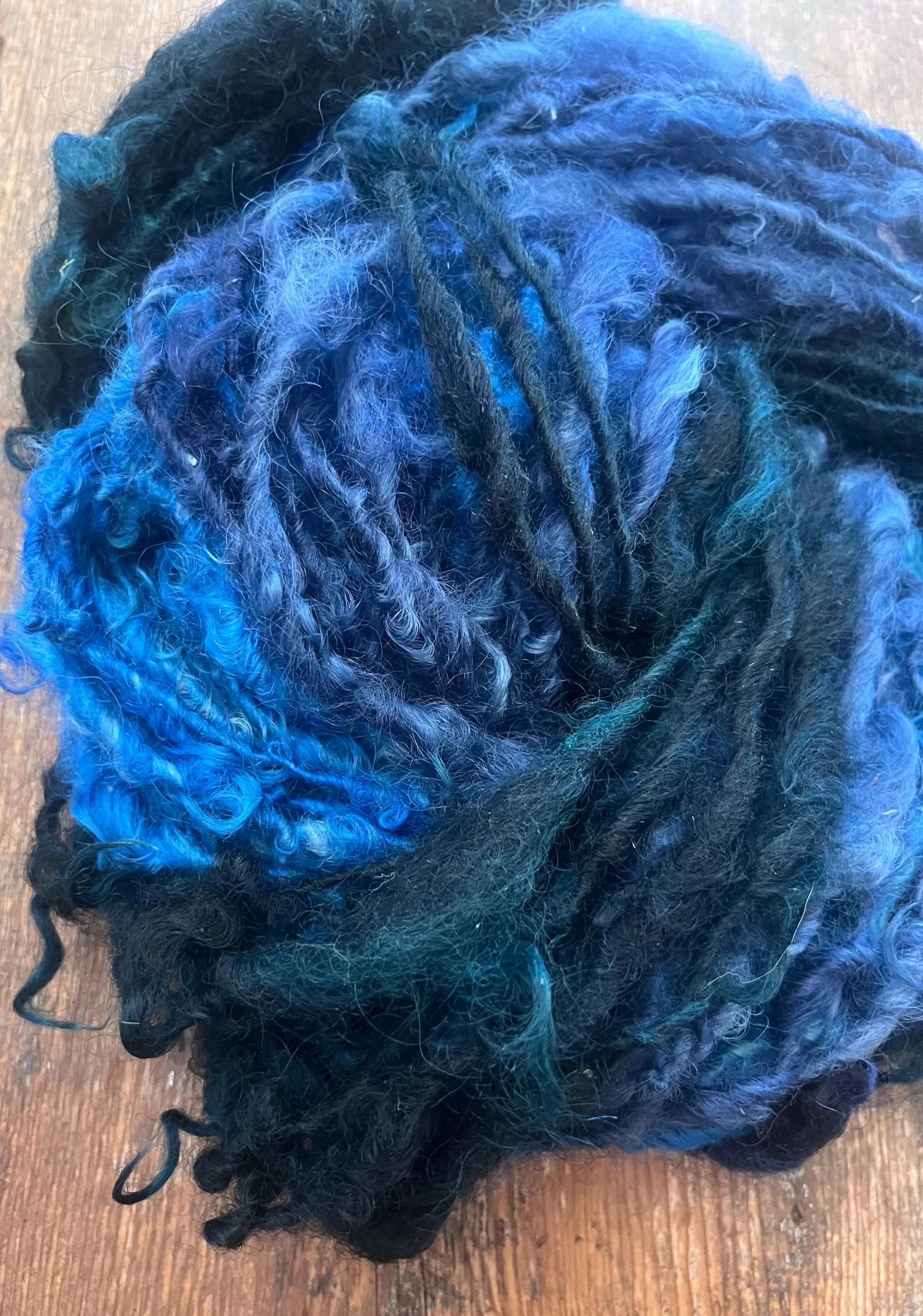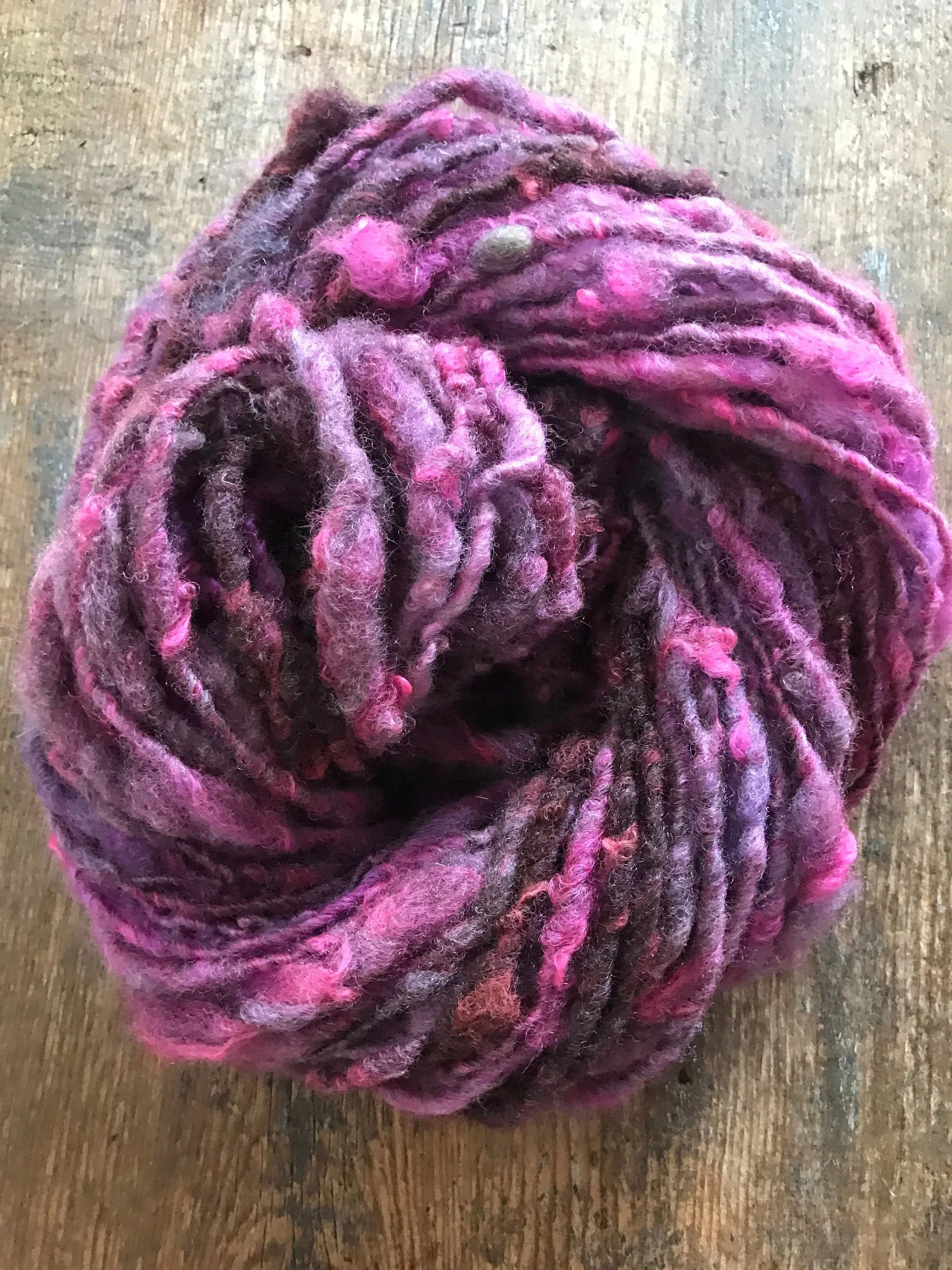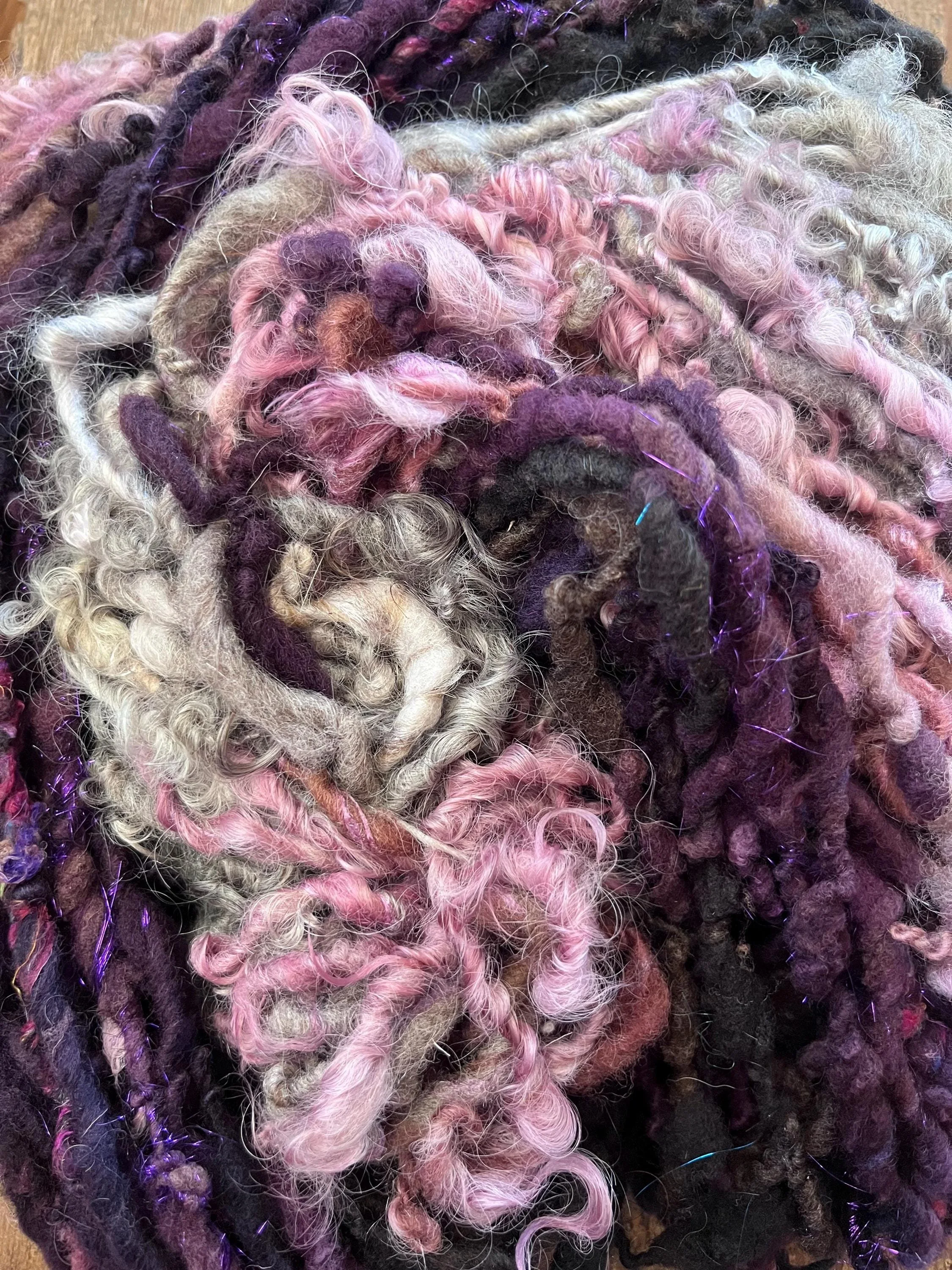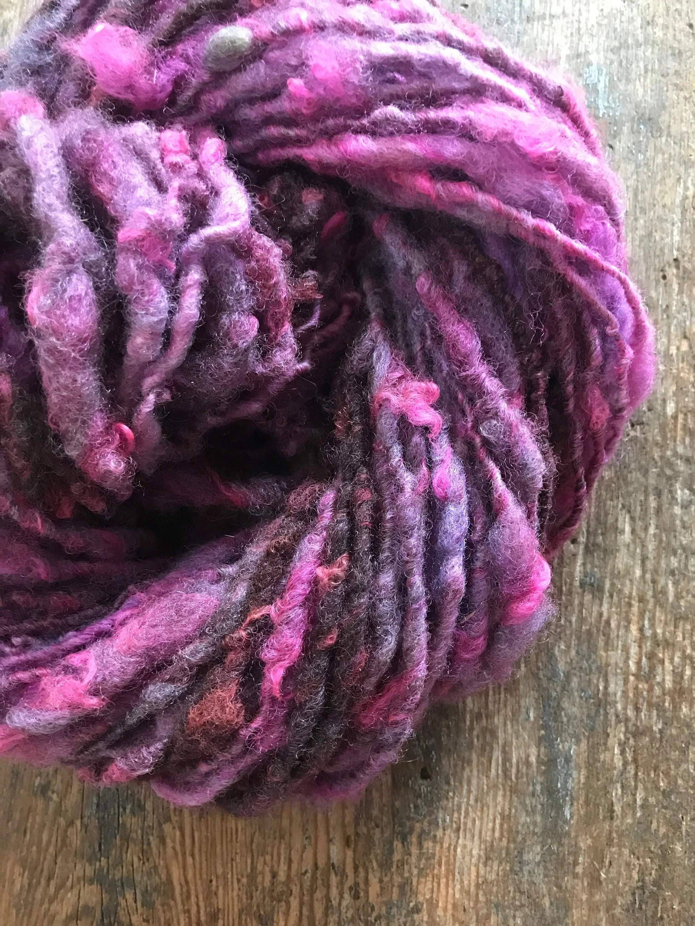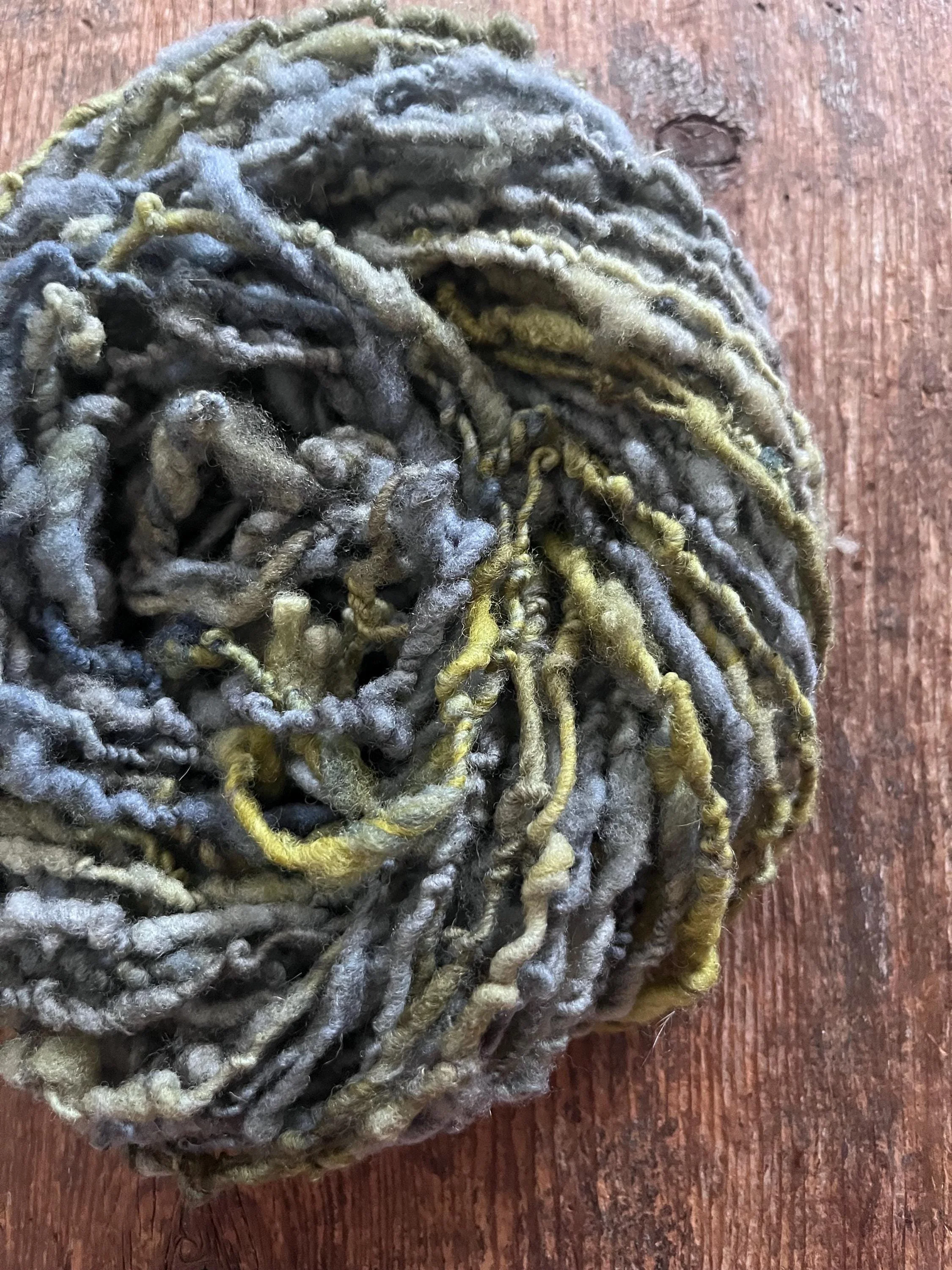 Twilight Carnival, handspun nubbly squishy chunky handspun Southdown wool art yarn
