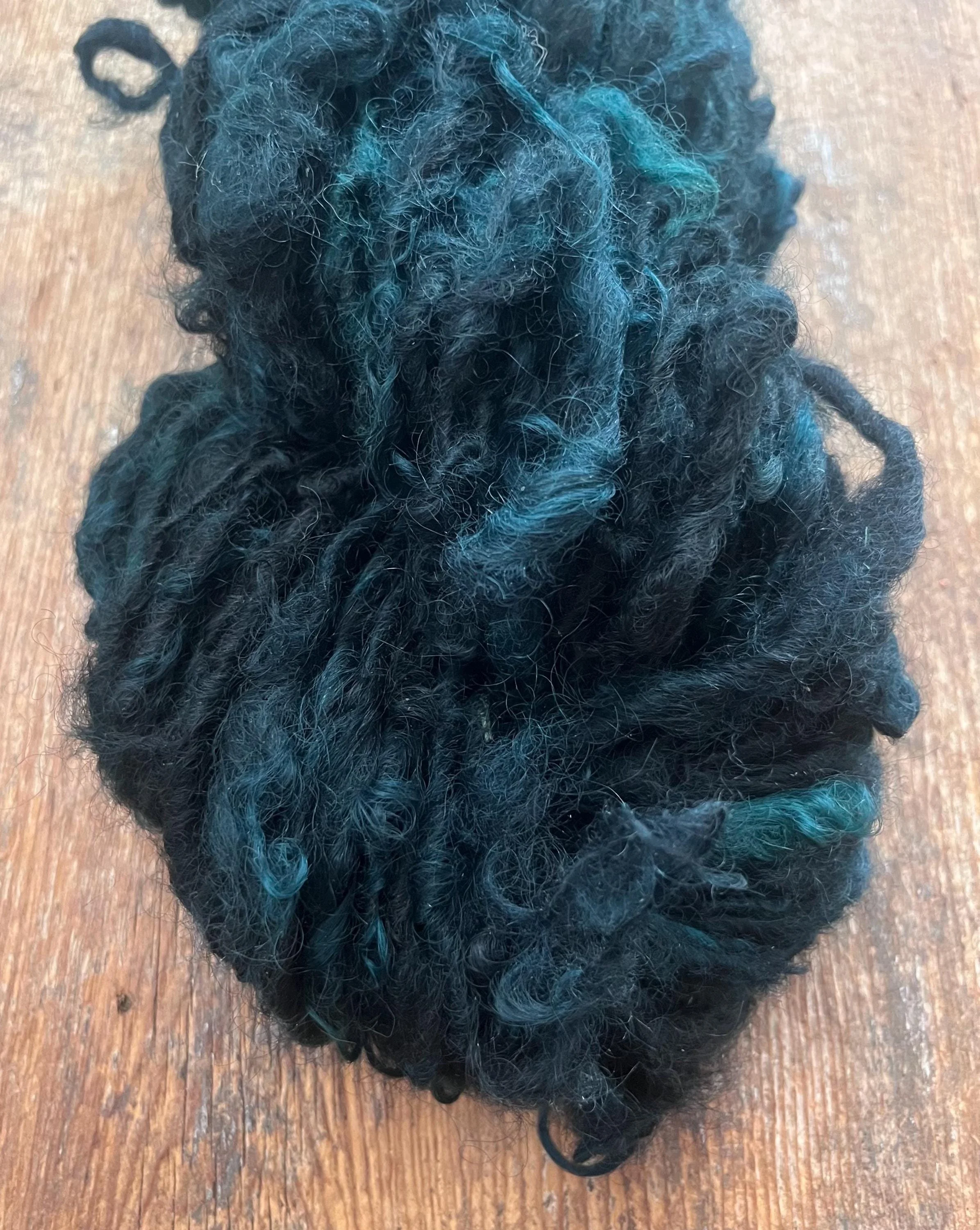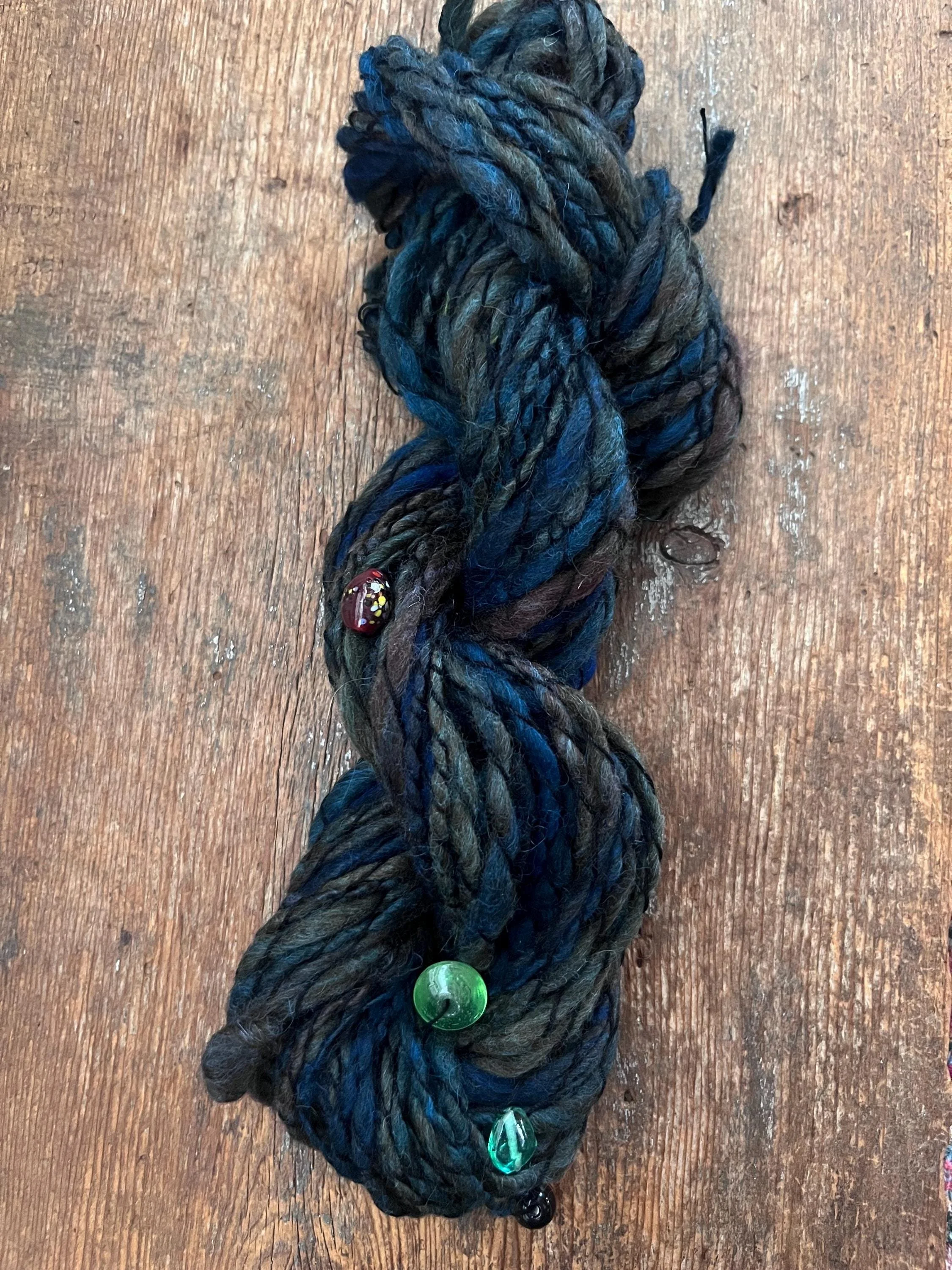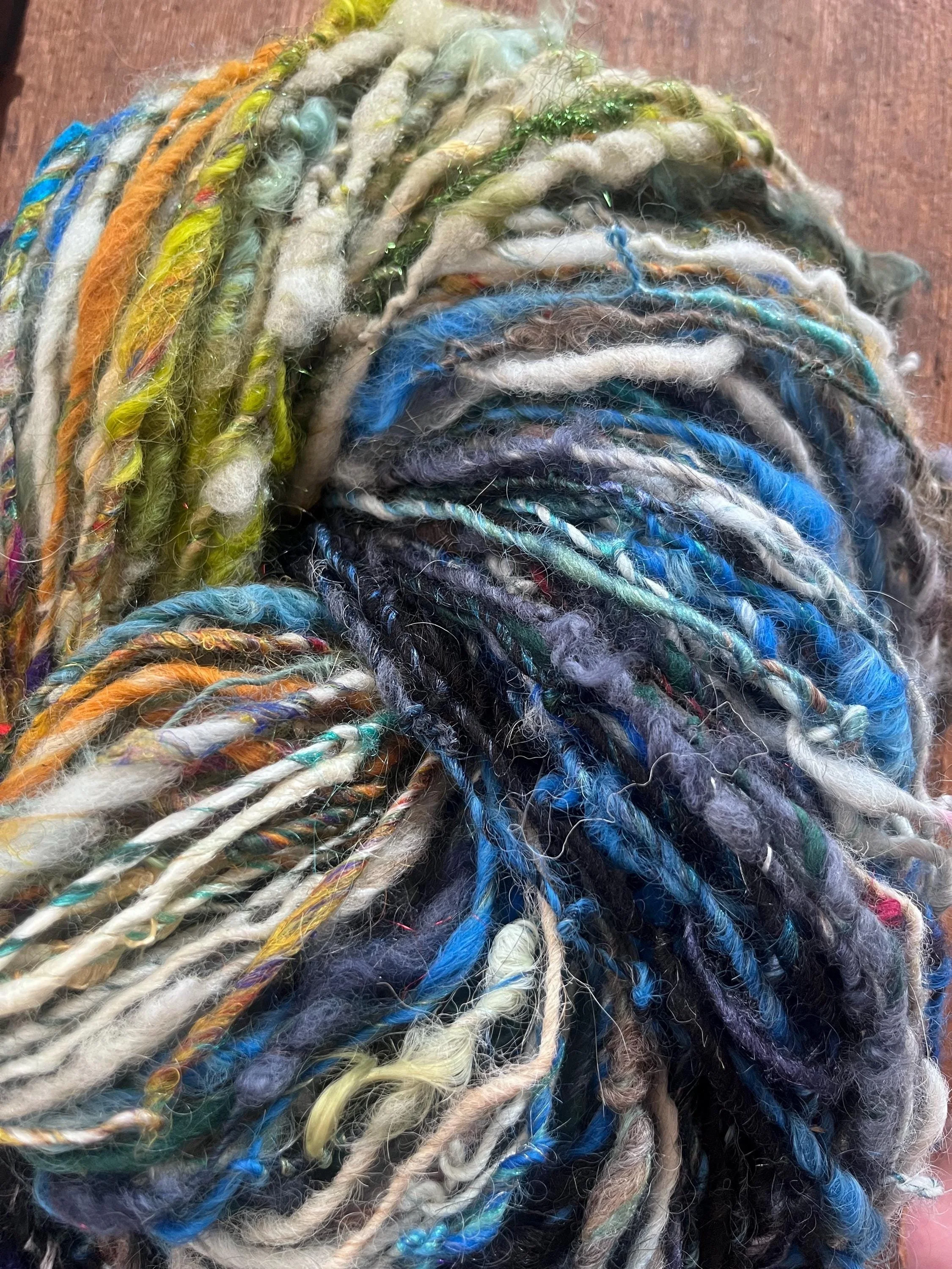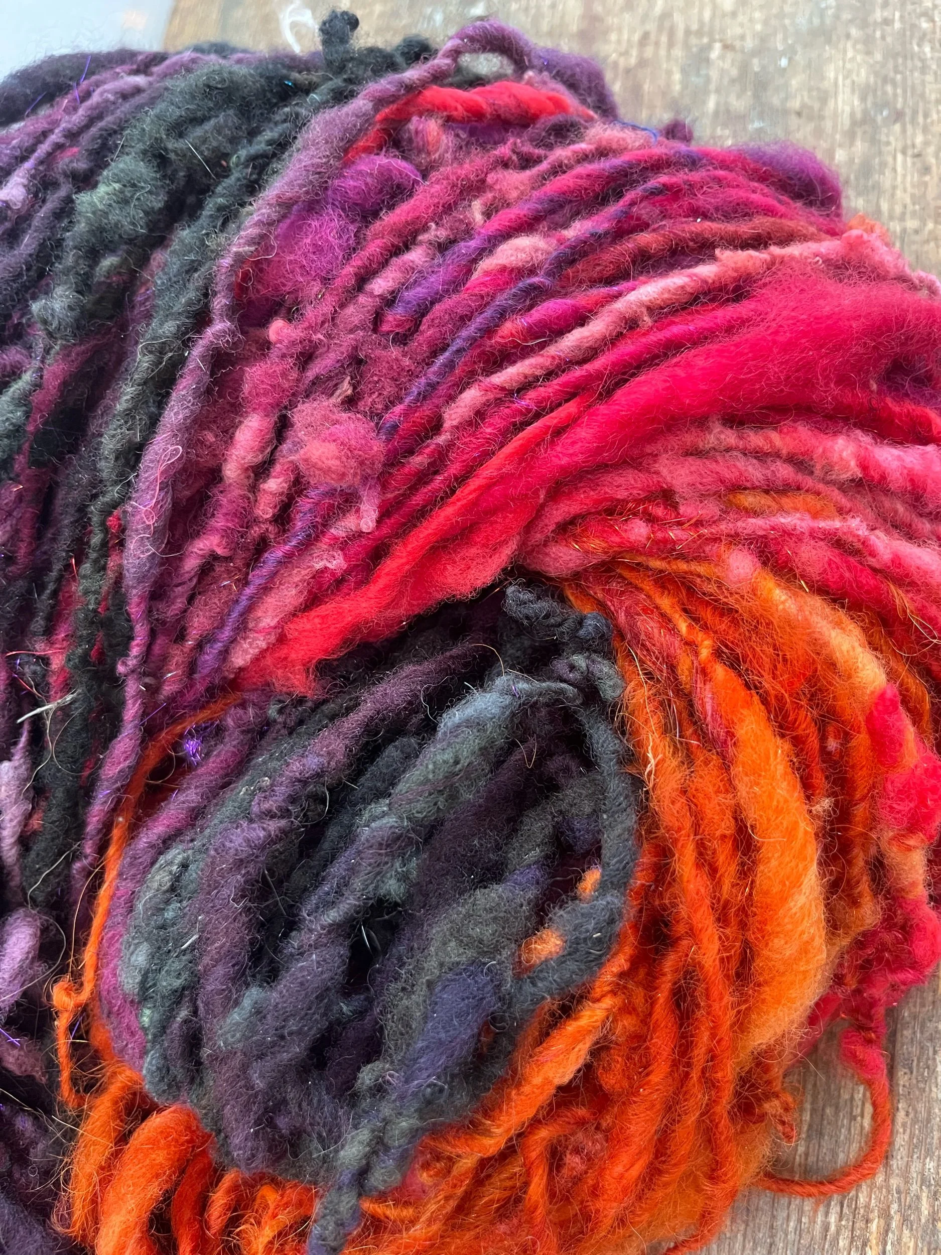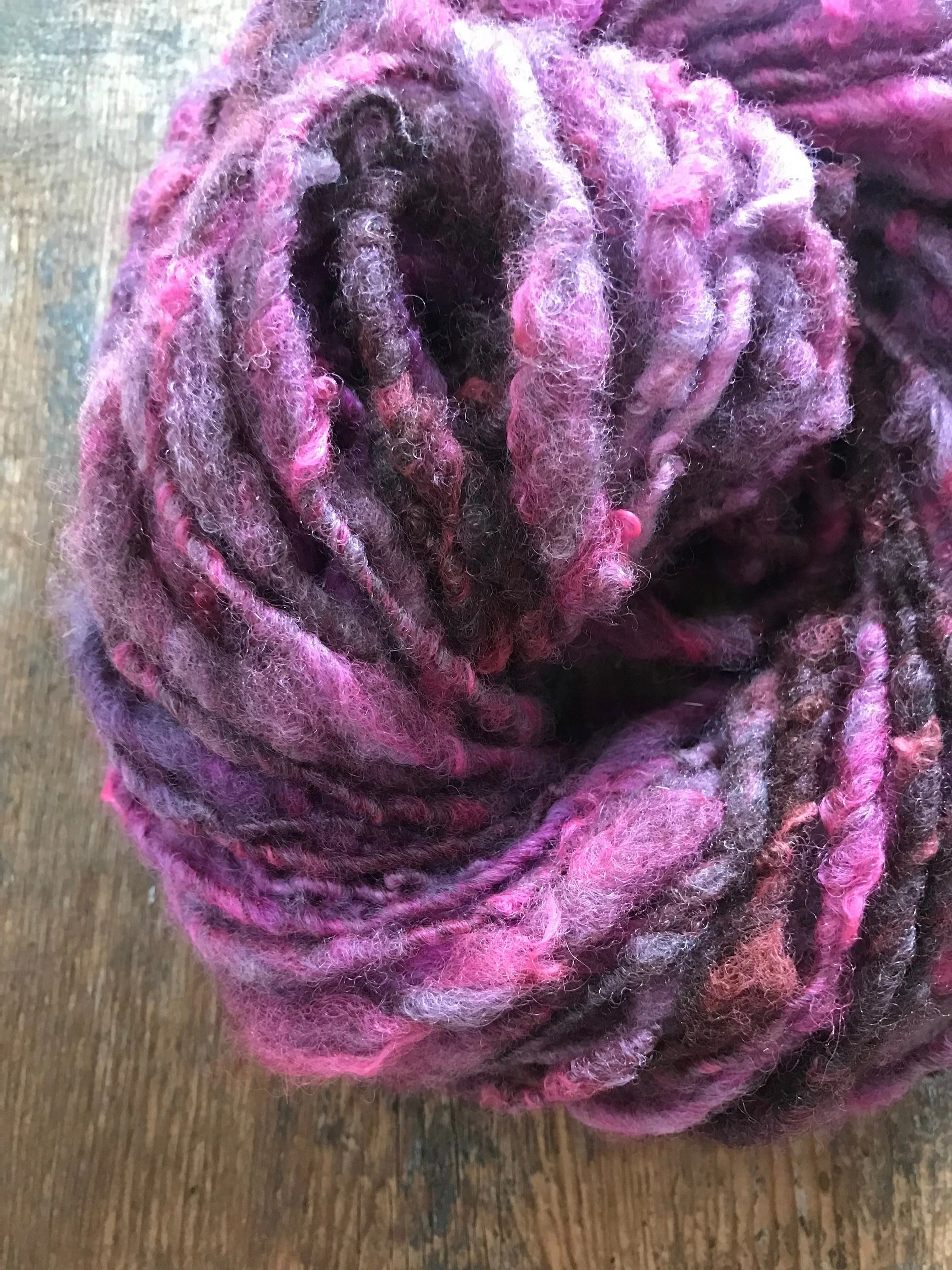 Twilight Carnival, handspun nubbly squishy chunky handspun Southdown wool art yarn