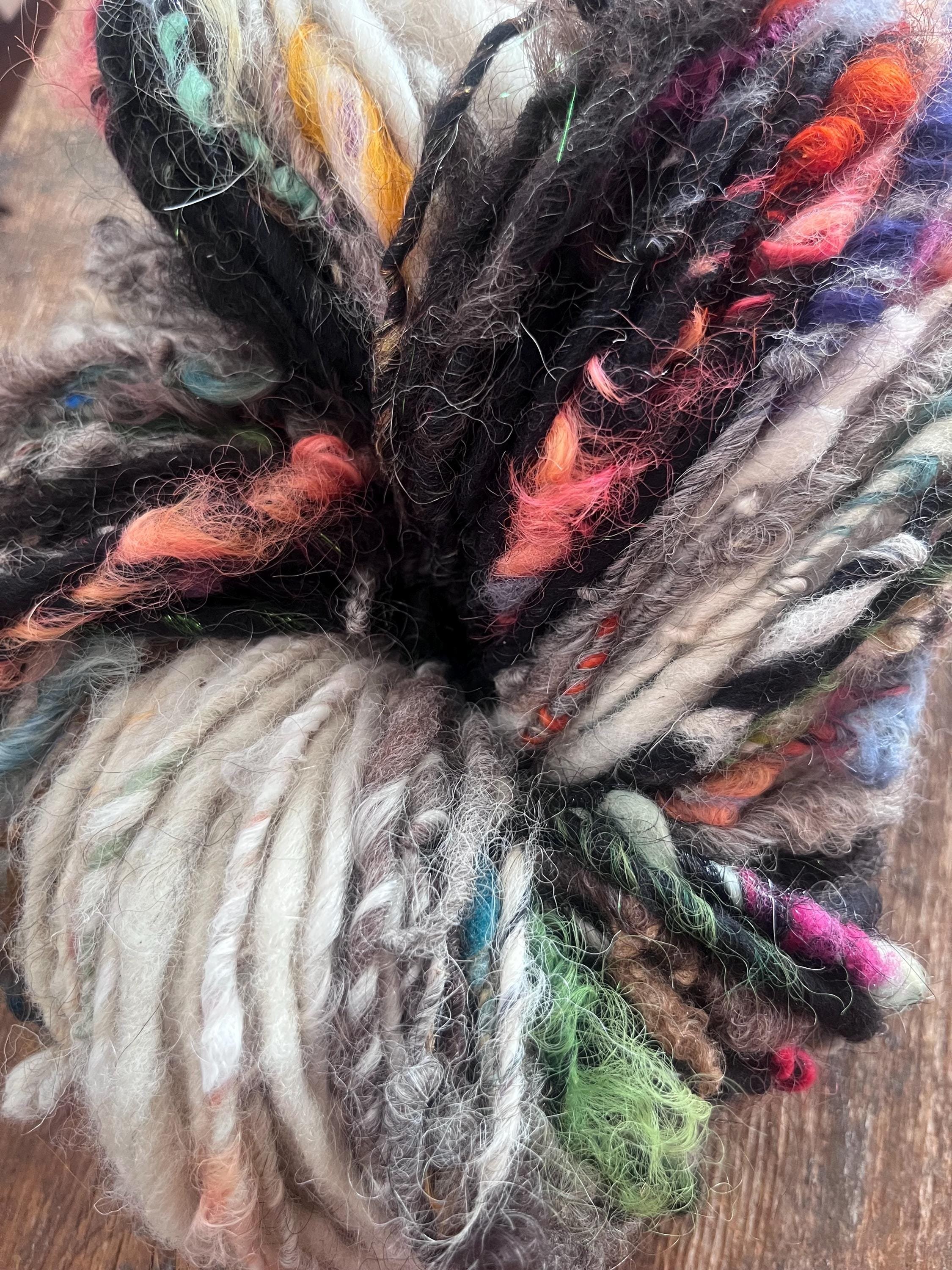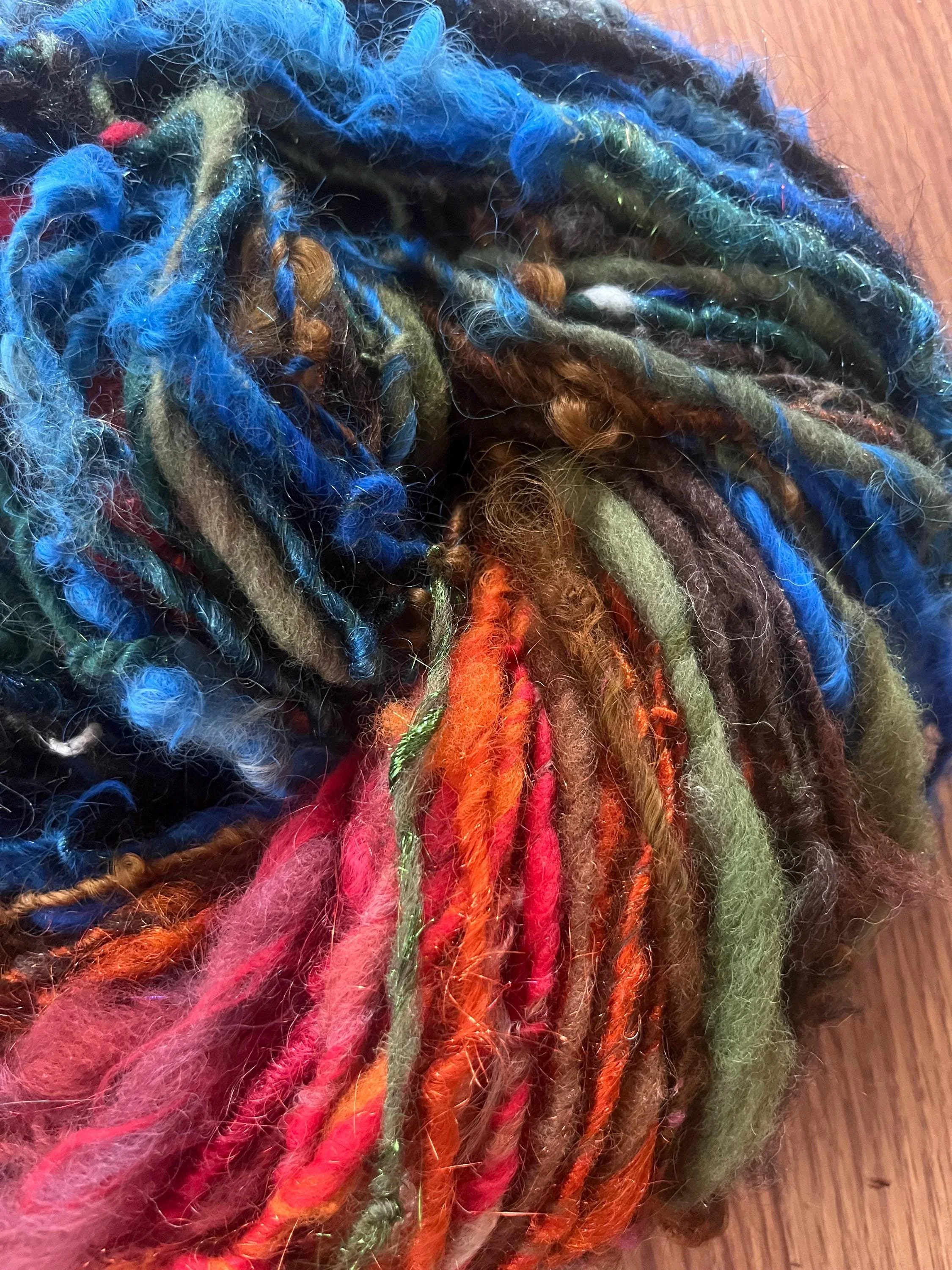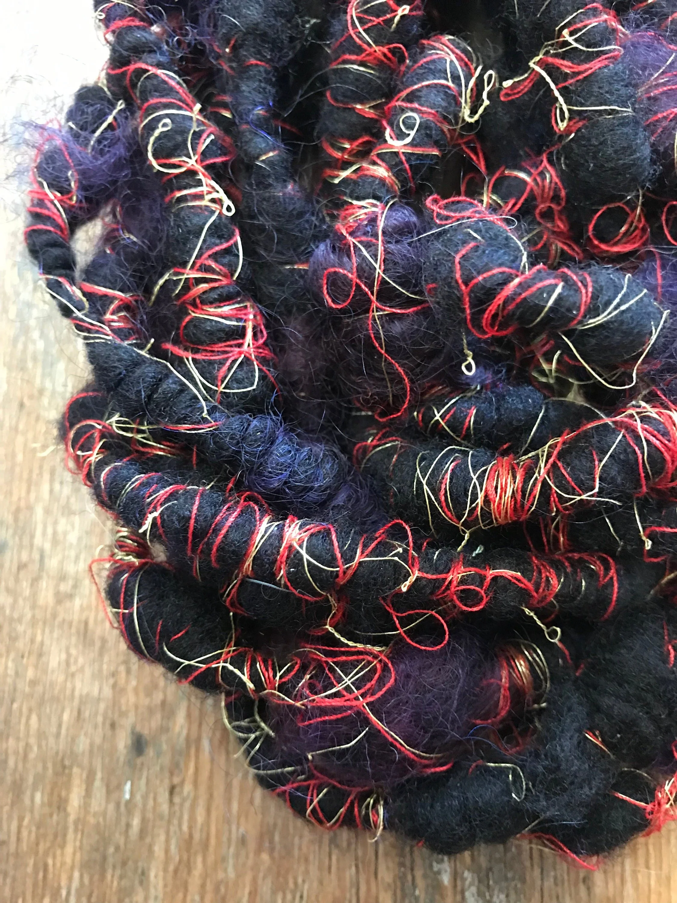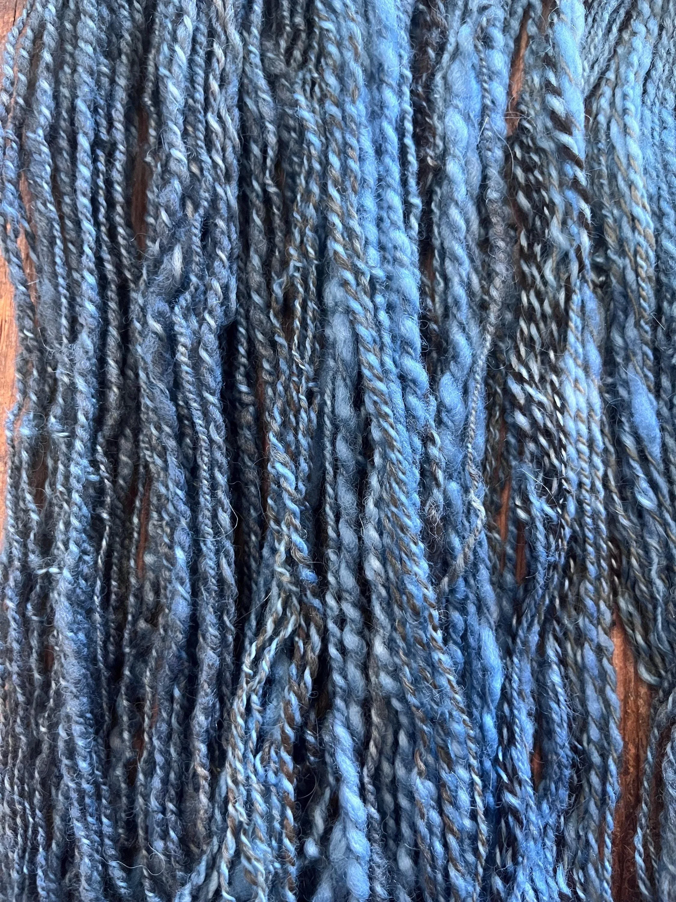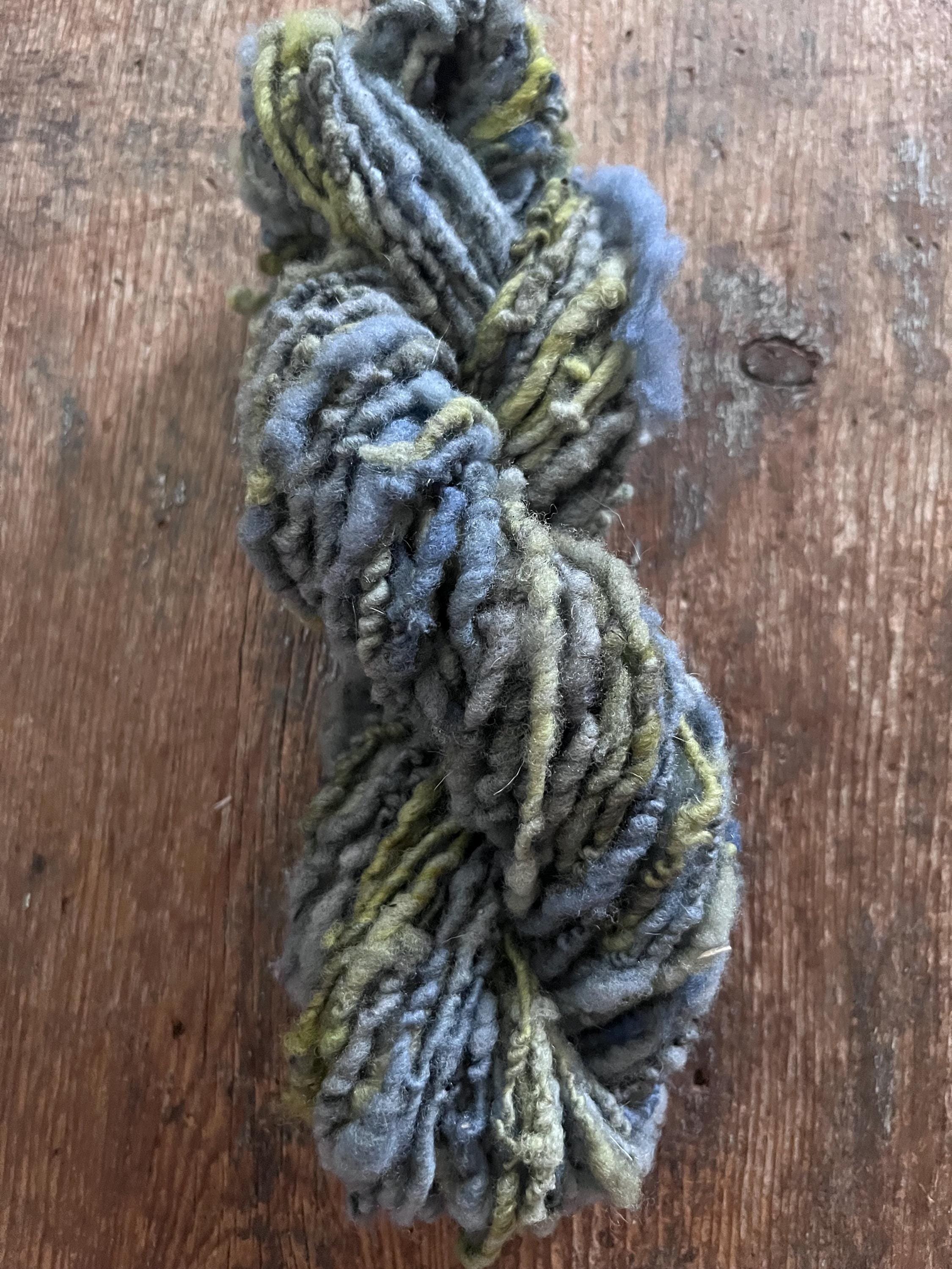 Twilight Carnival, handspun nubbly squishy chunky handspun Southdown wool art yarn