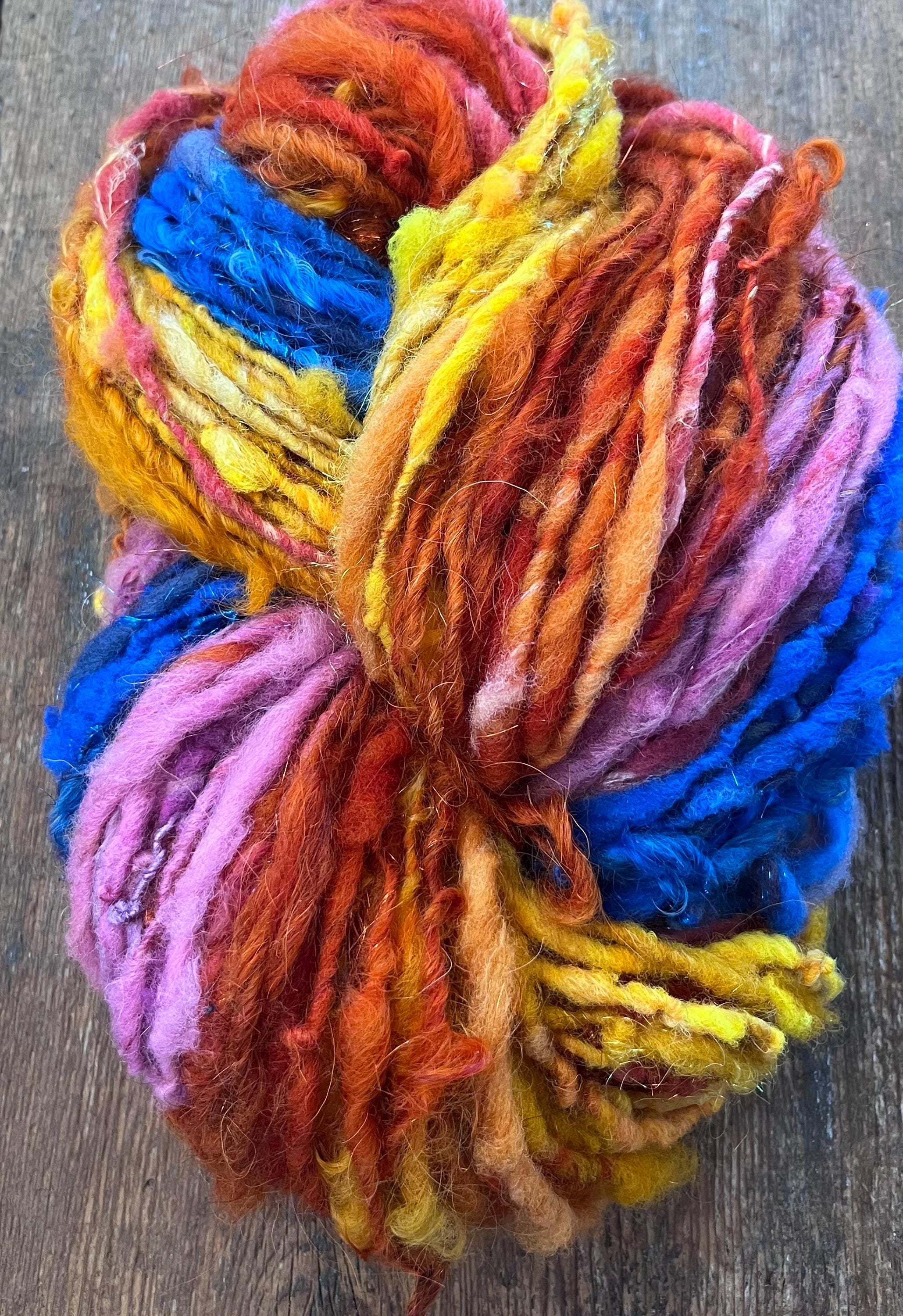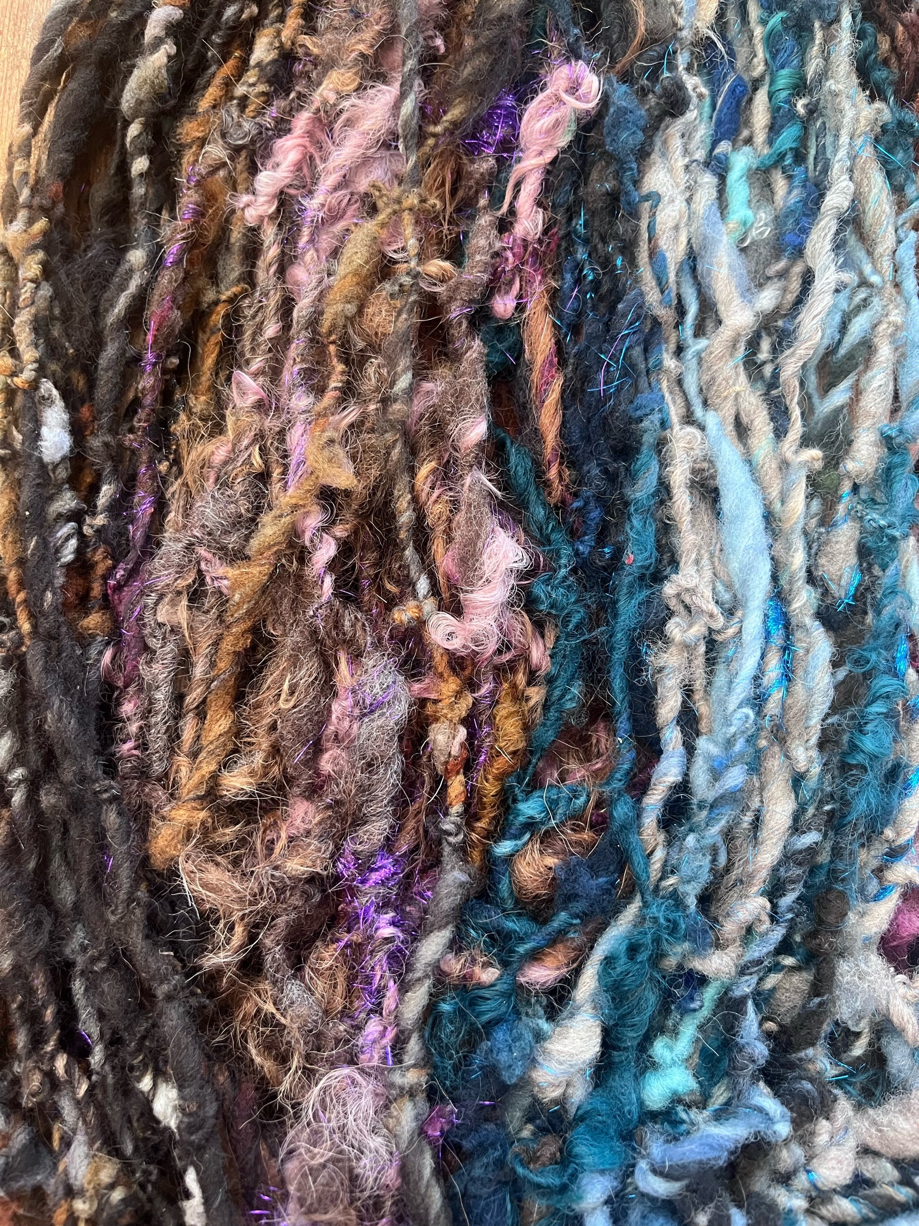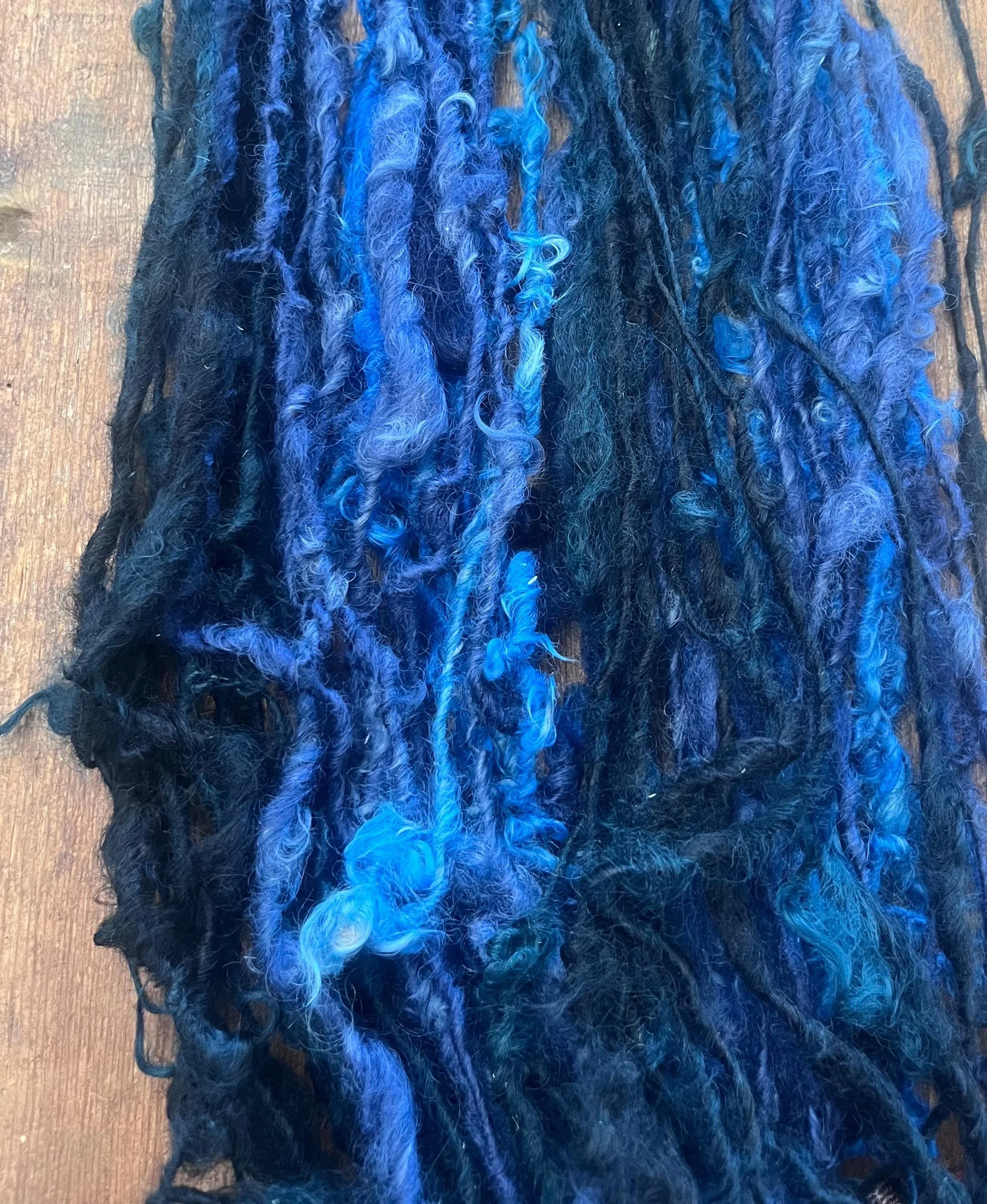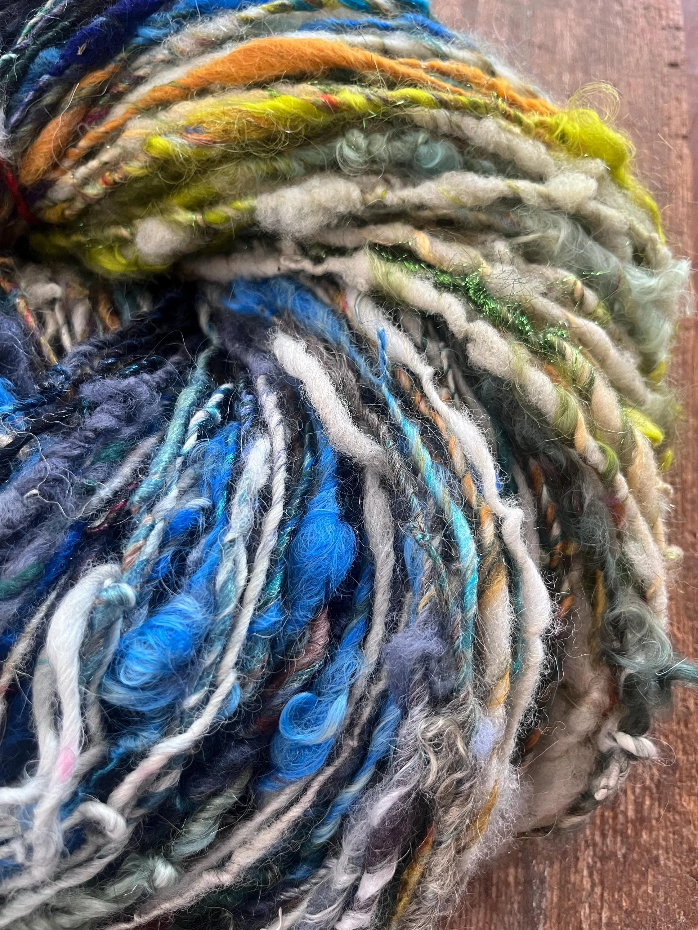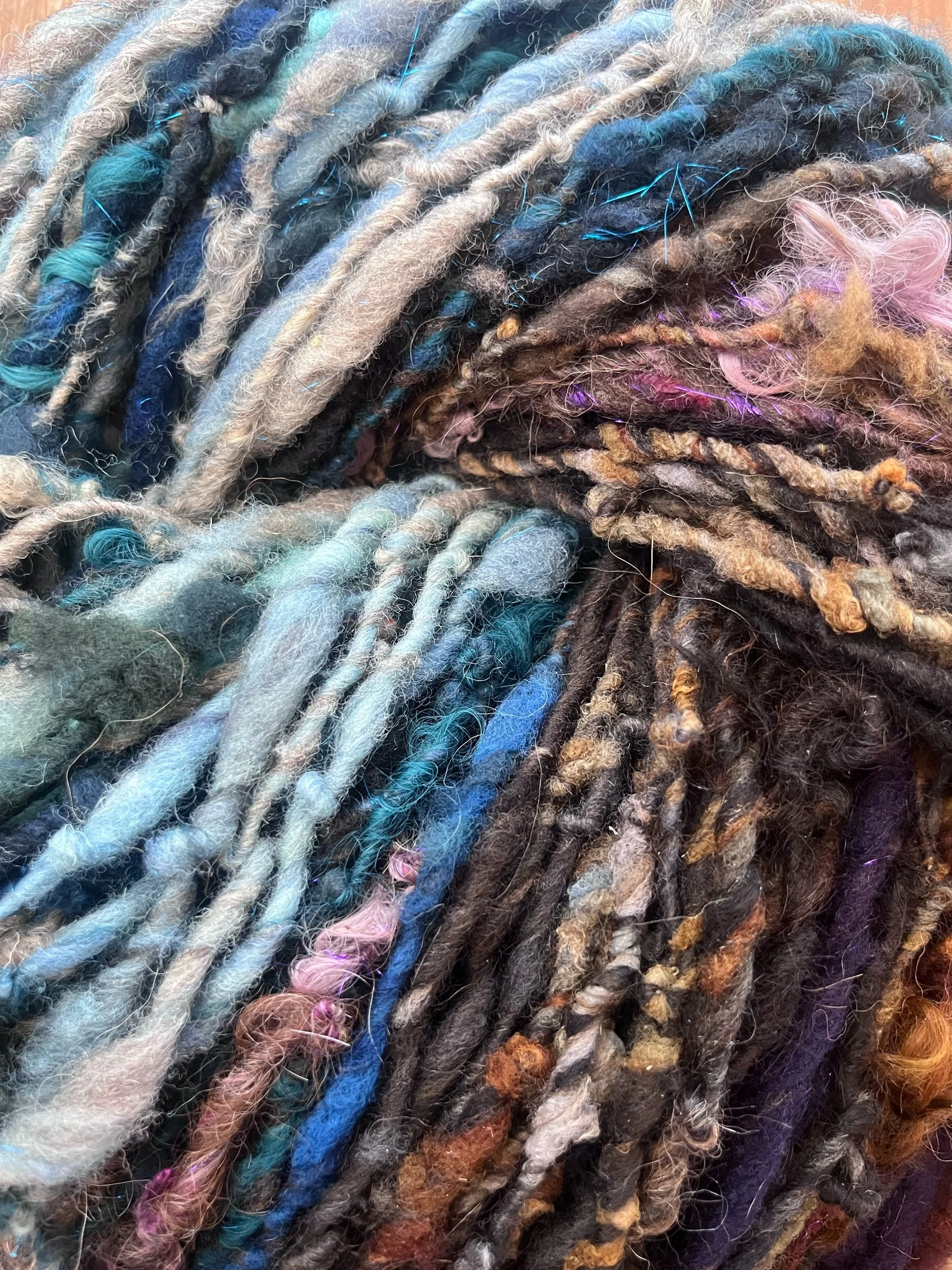 Twilight Carnival, handspun nubbly squishy chunky handspun Southdown wool art yarn