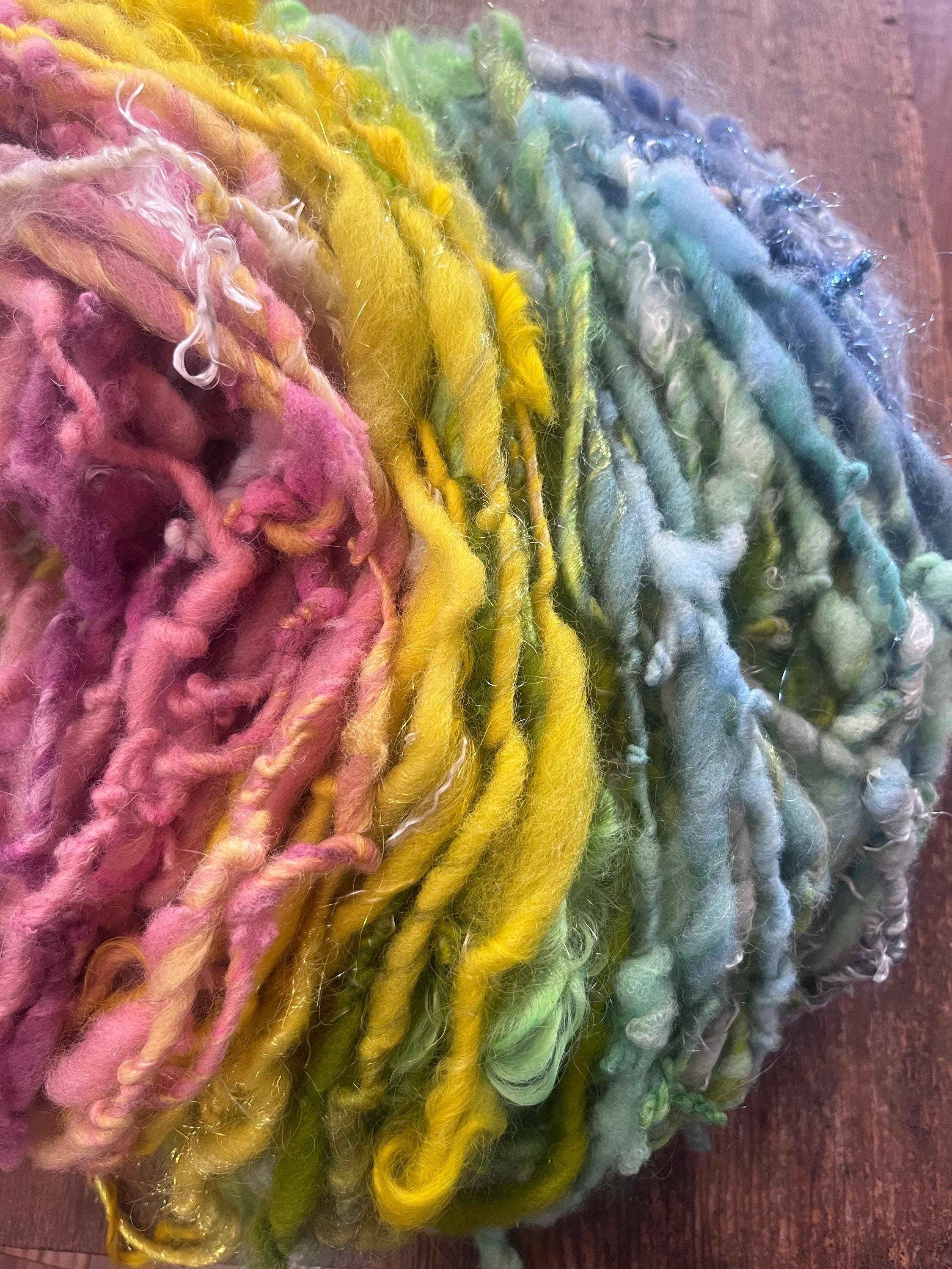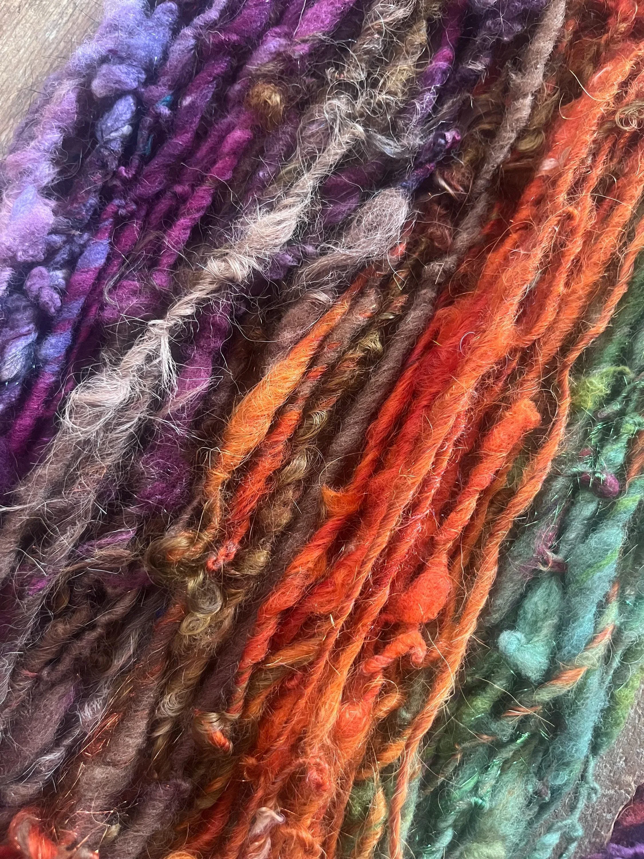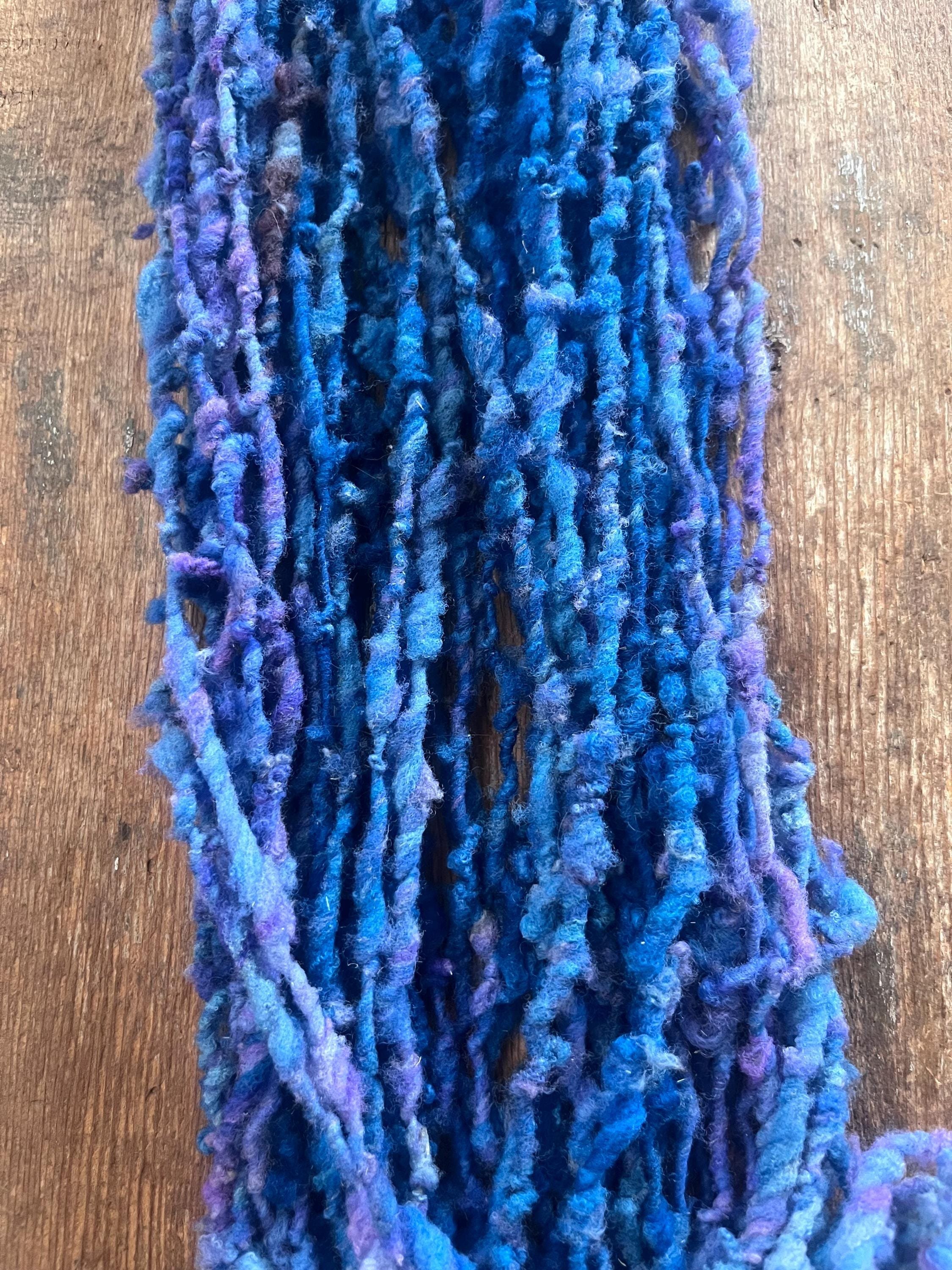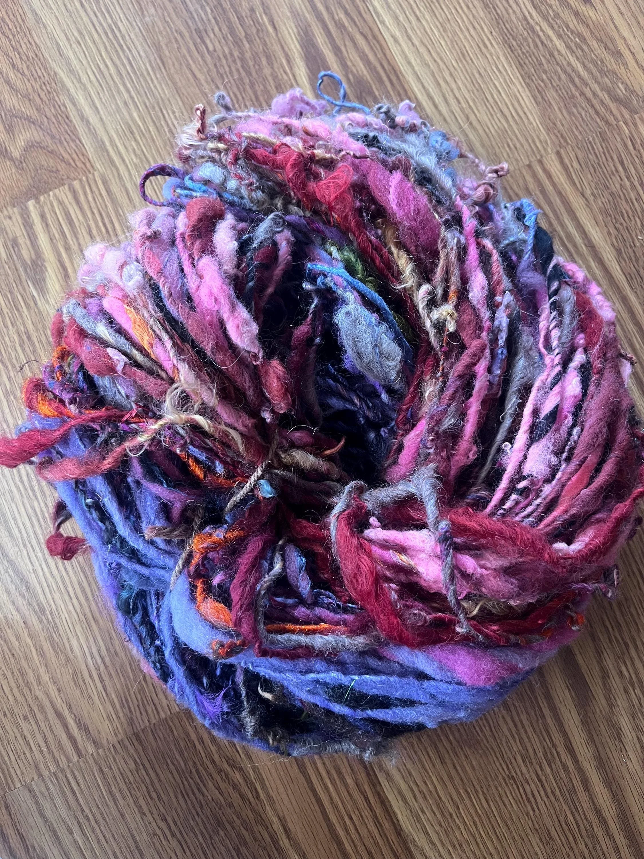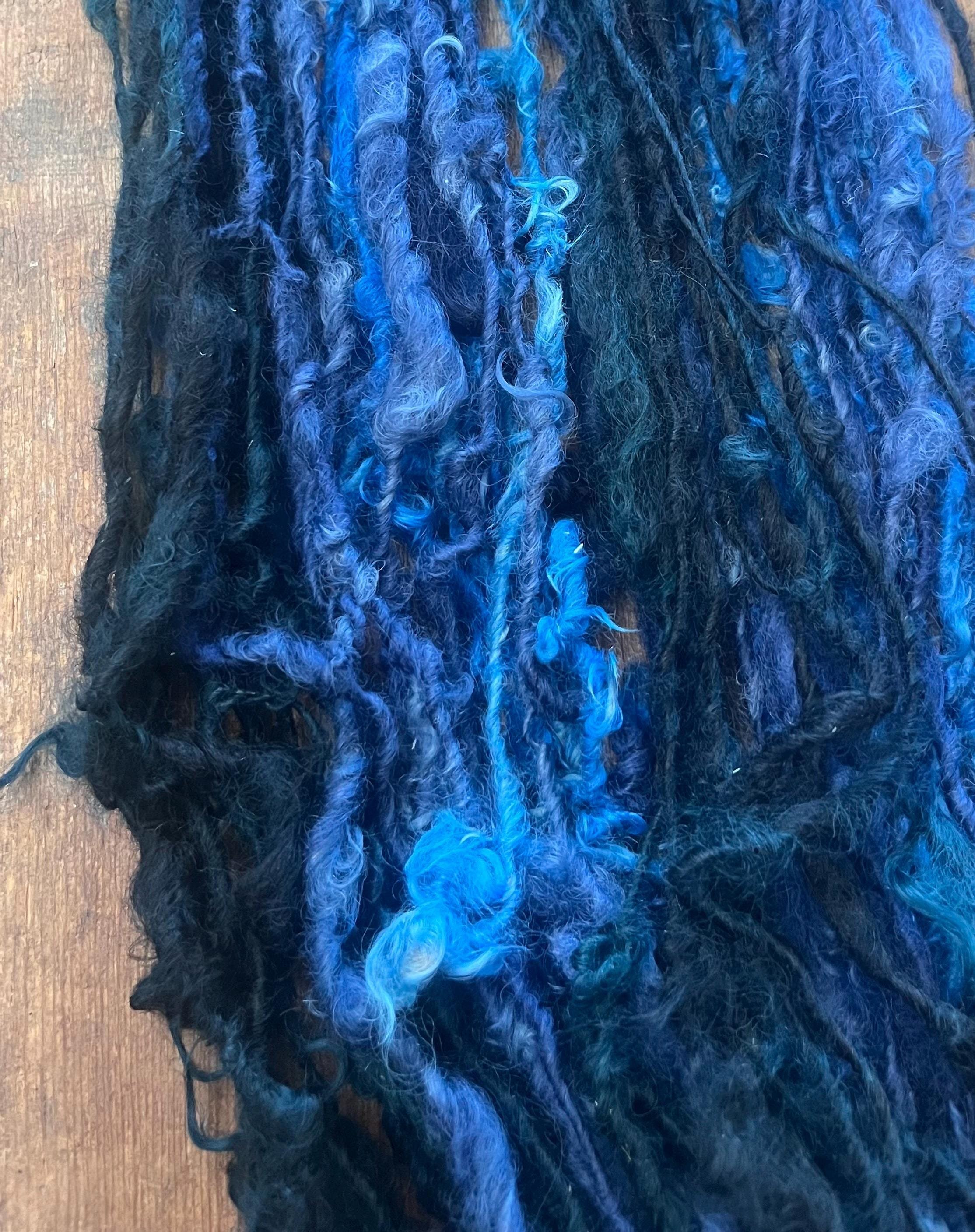 Twilight Carnival, handspun nubbly squishy chunky handspun Southdown wool art yarn