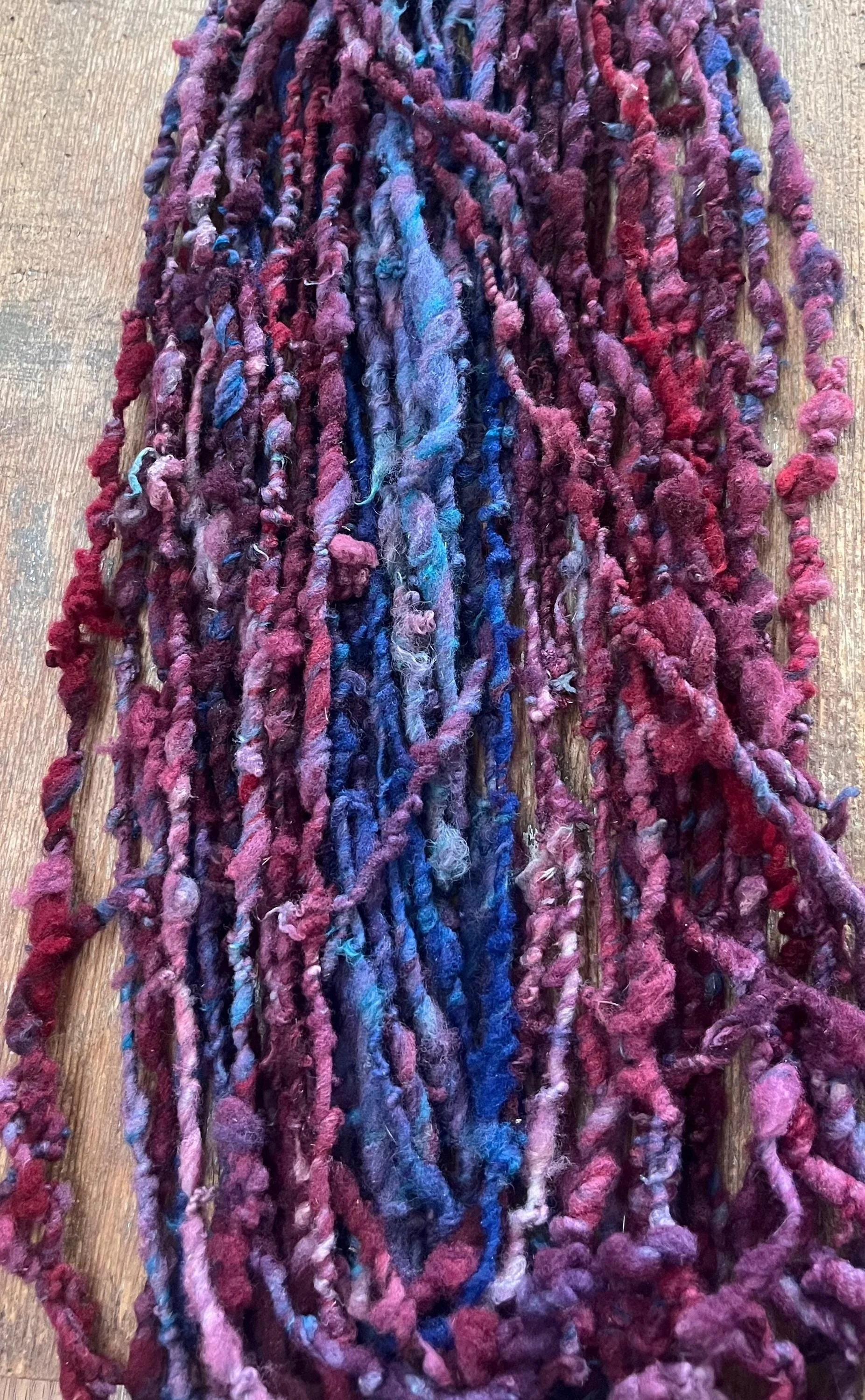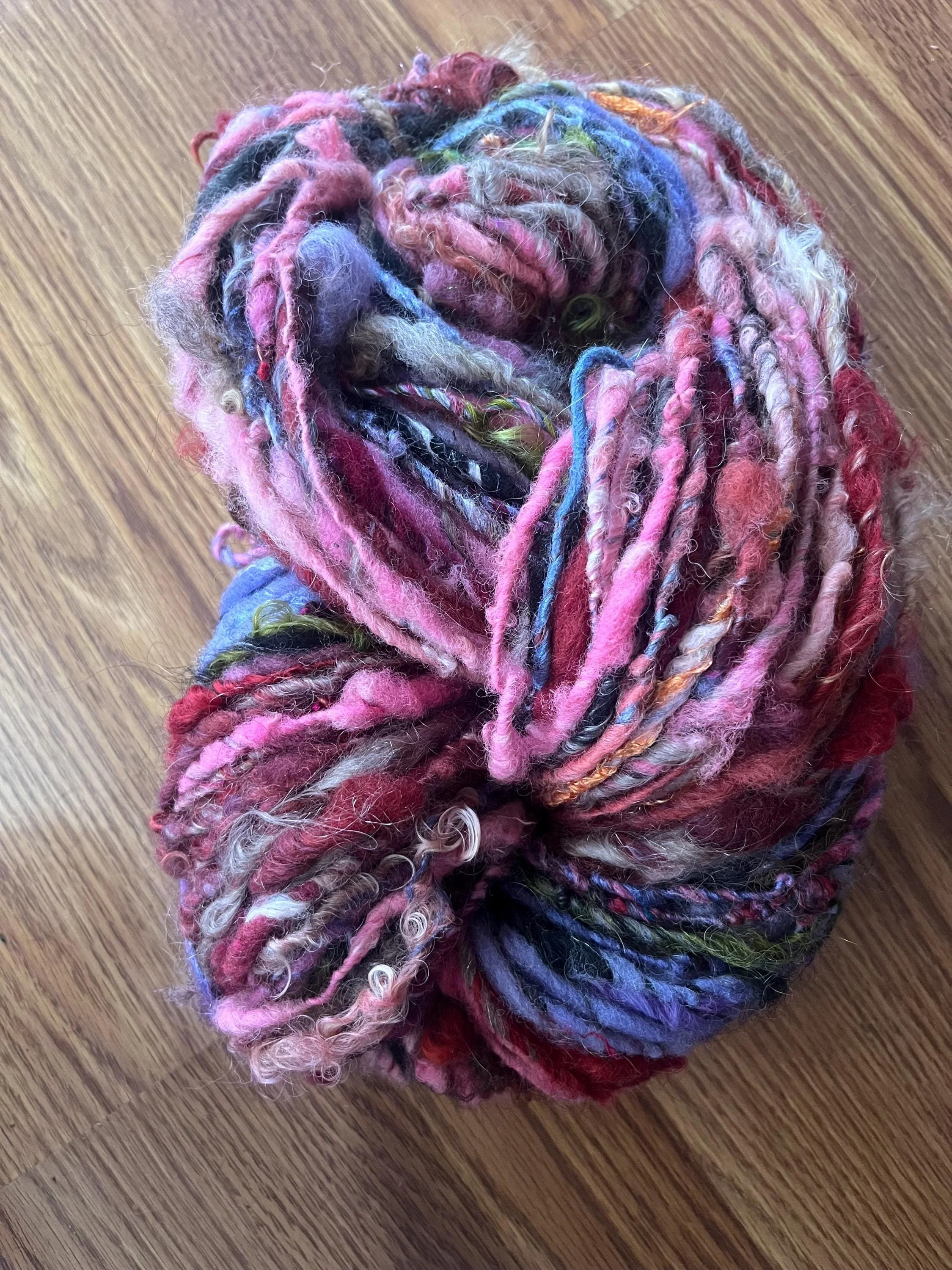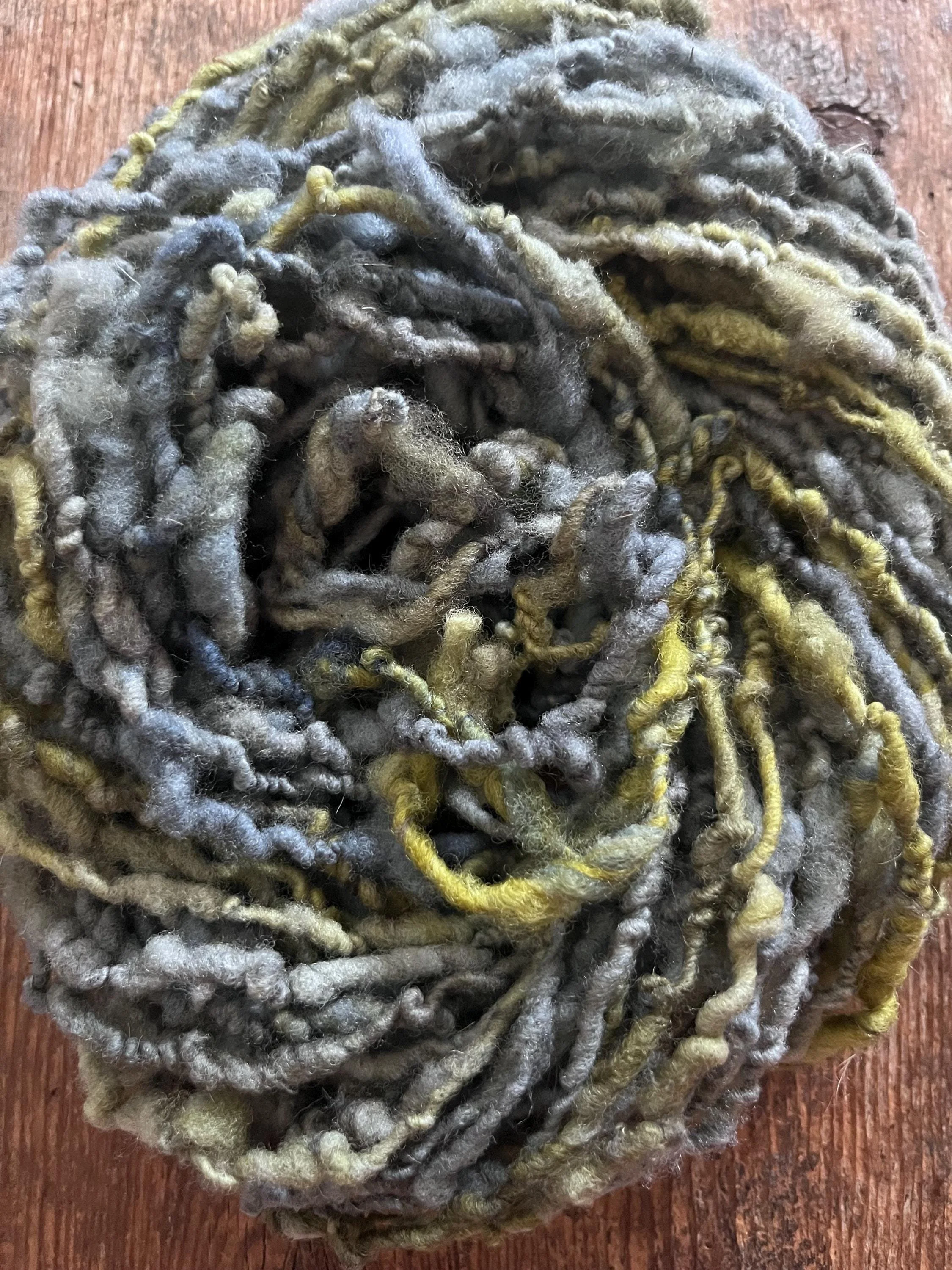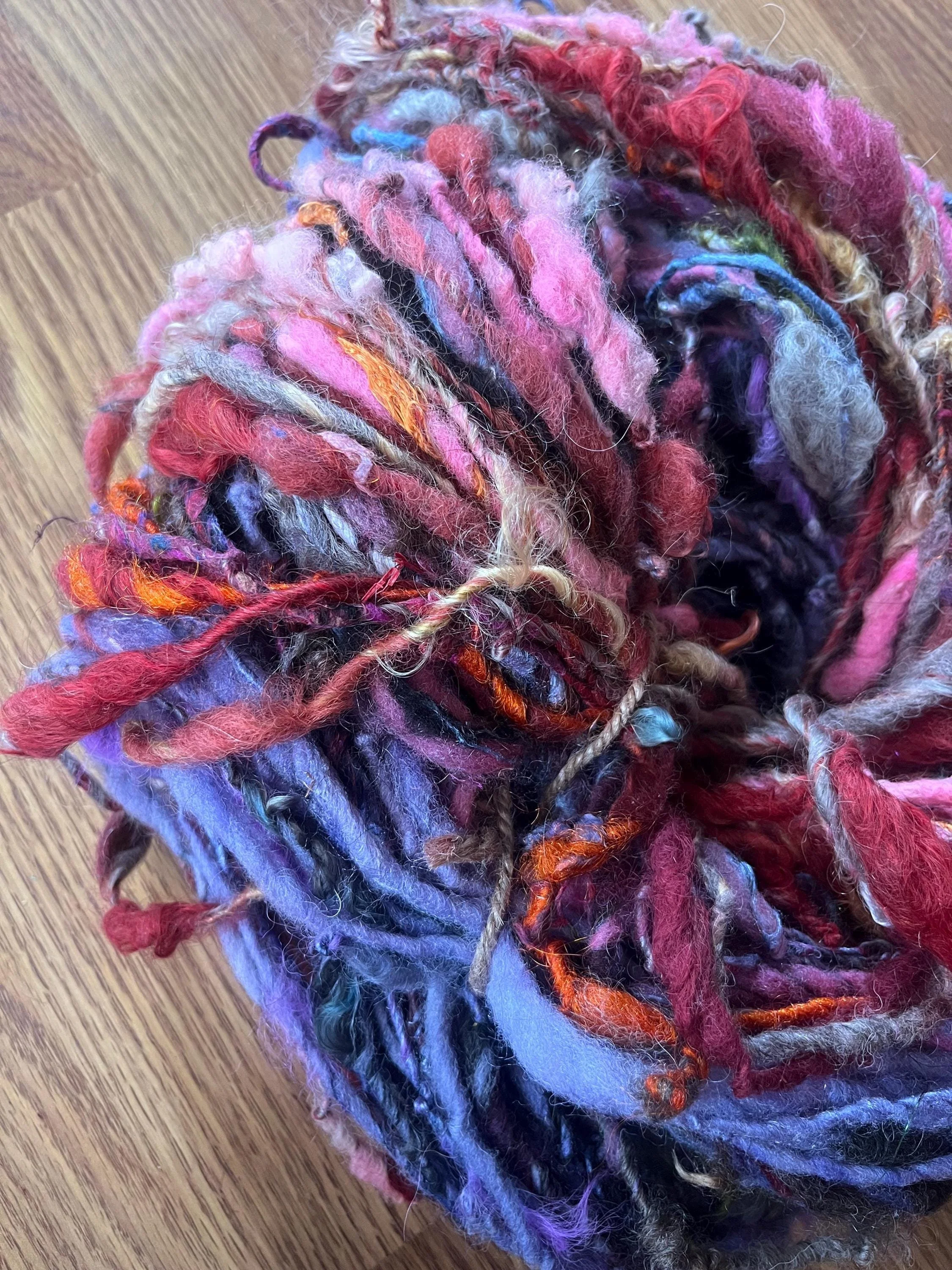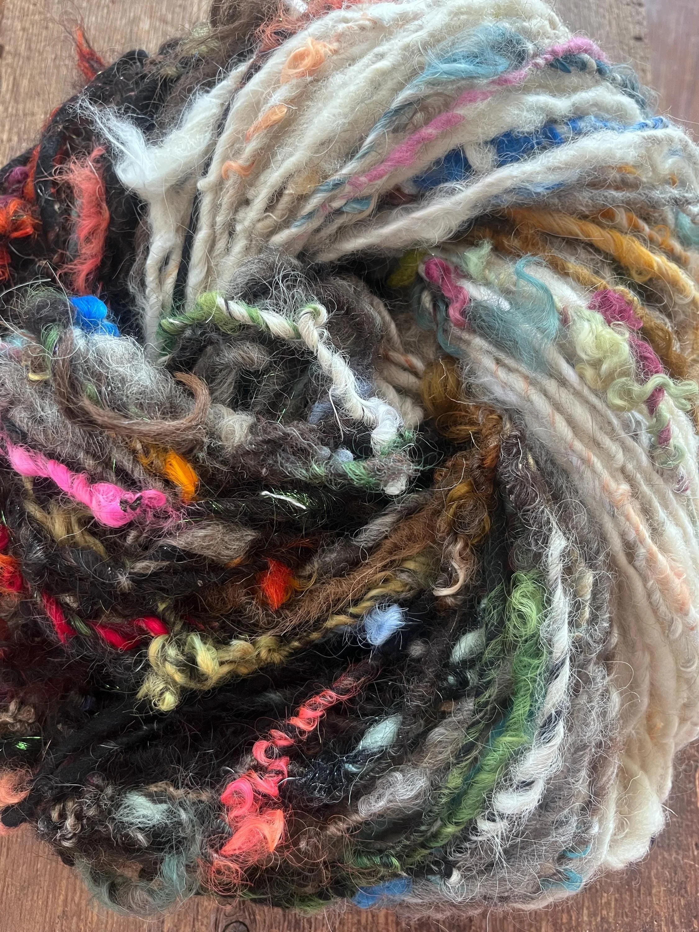 Twilight Carnival, handspun nubbly squishy chunky handspun Southdown wool art yarn