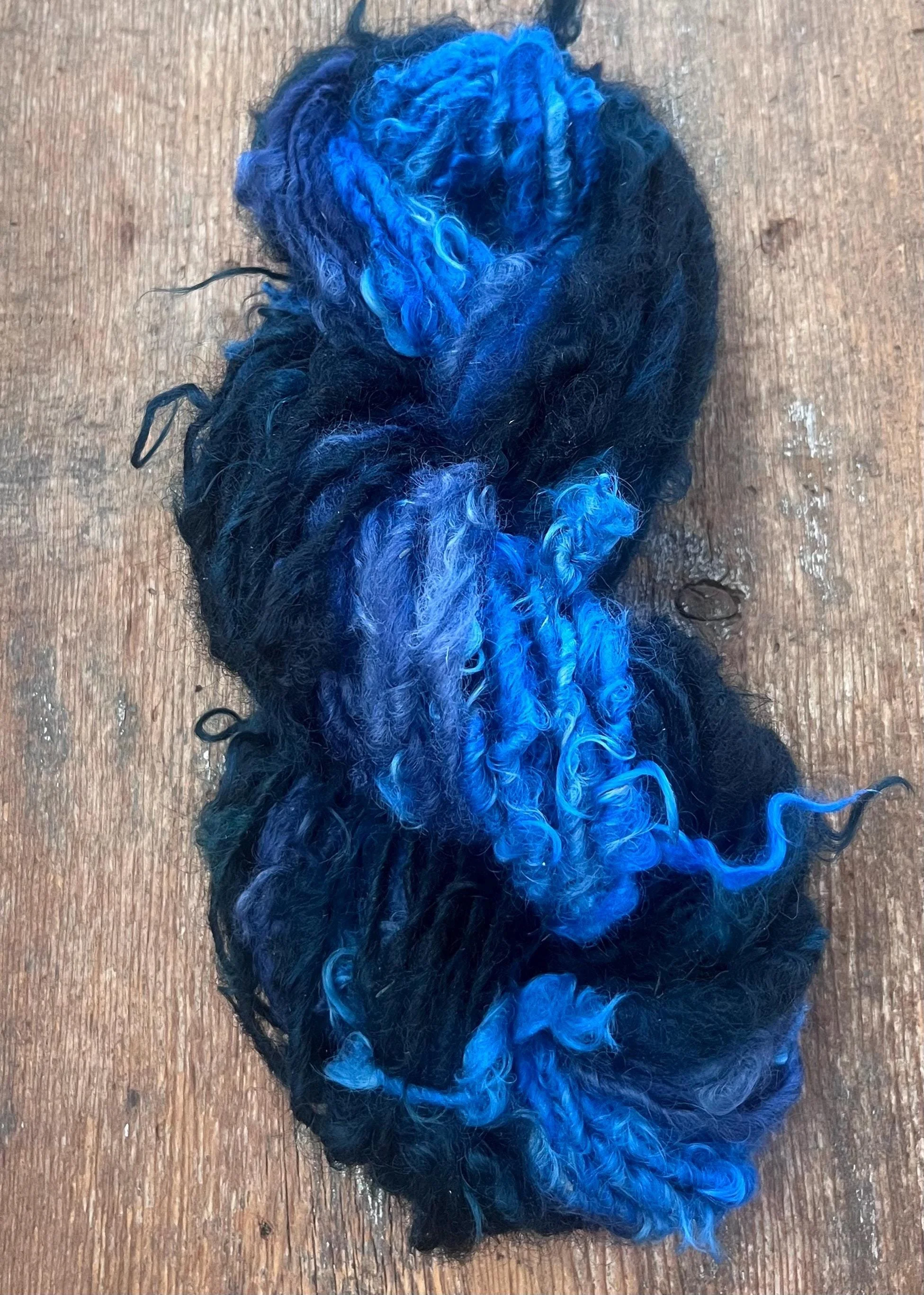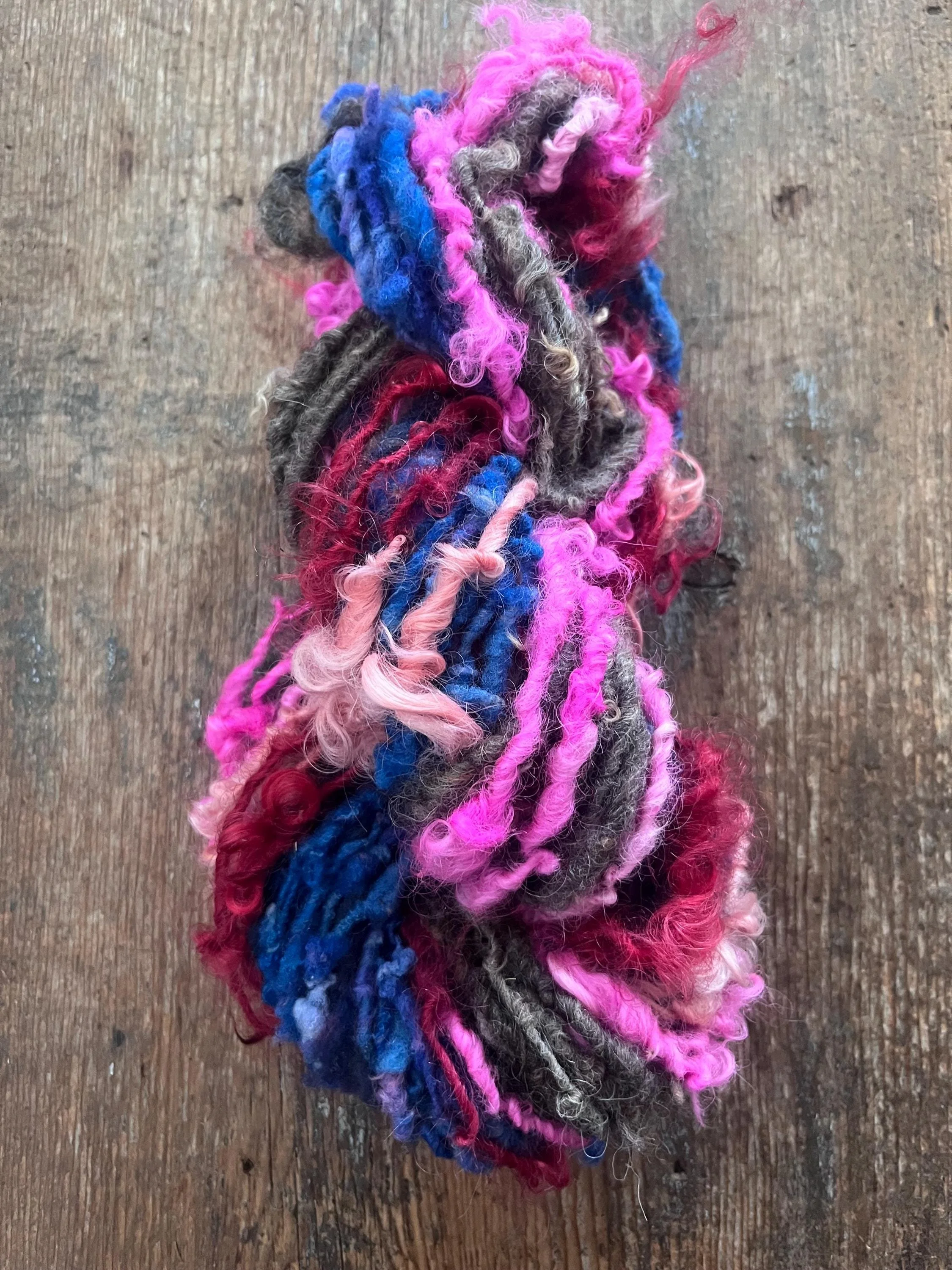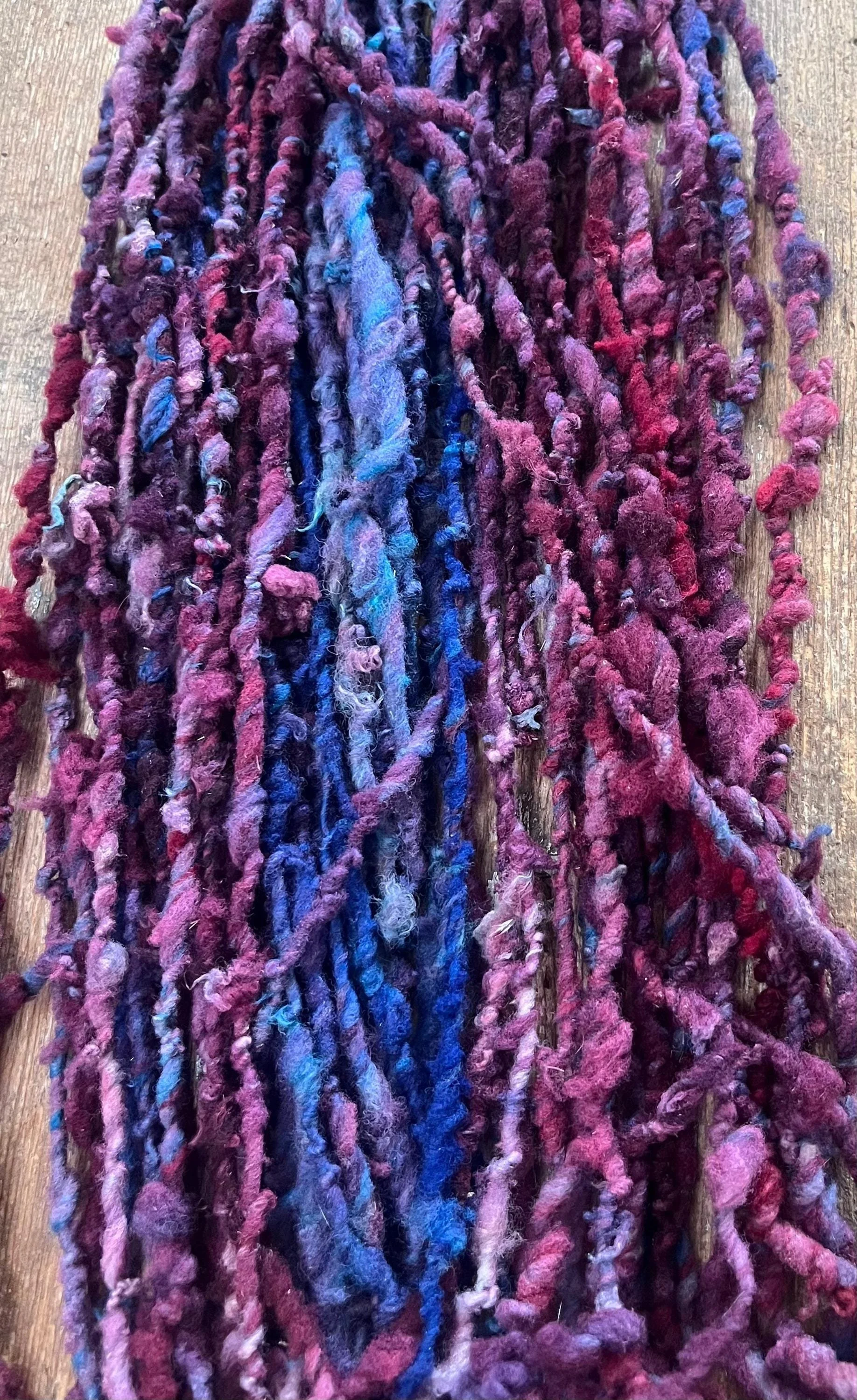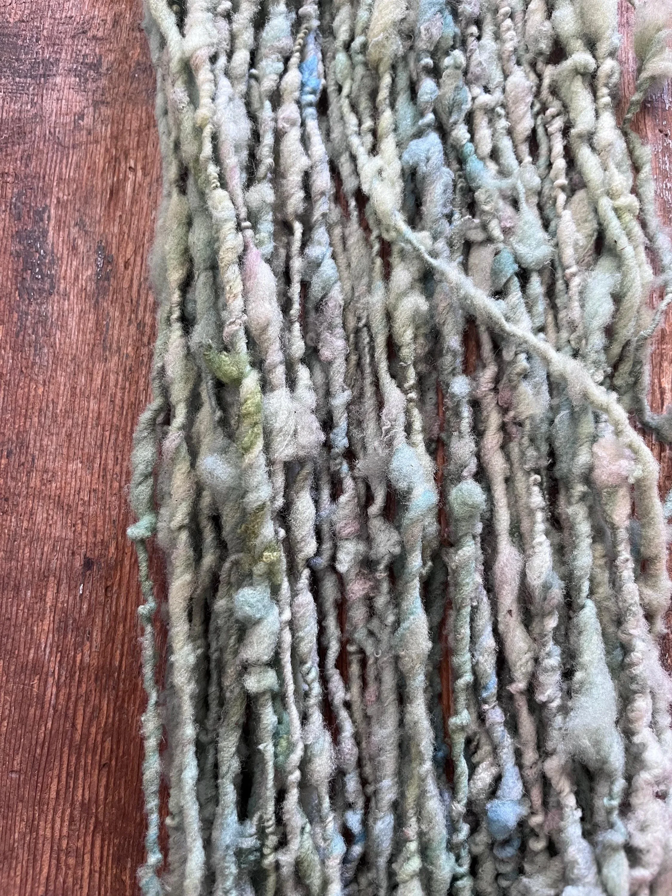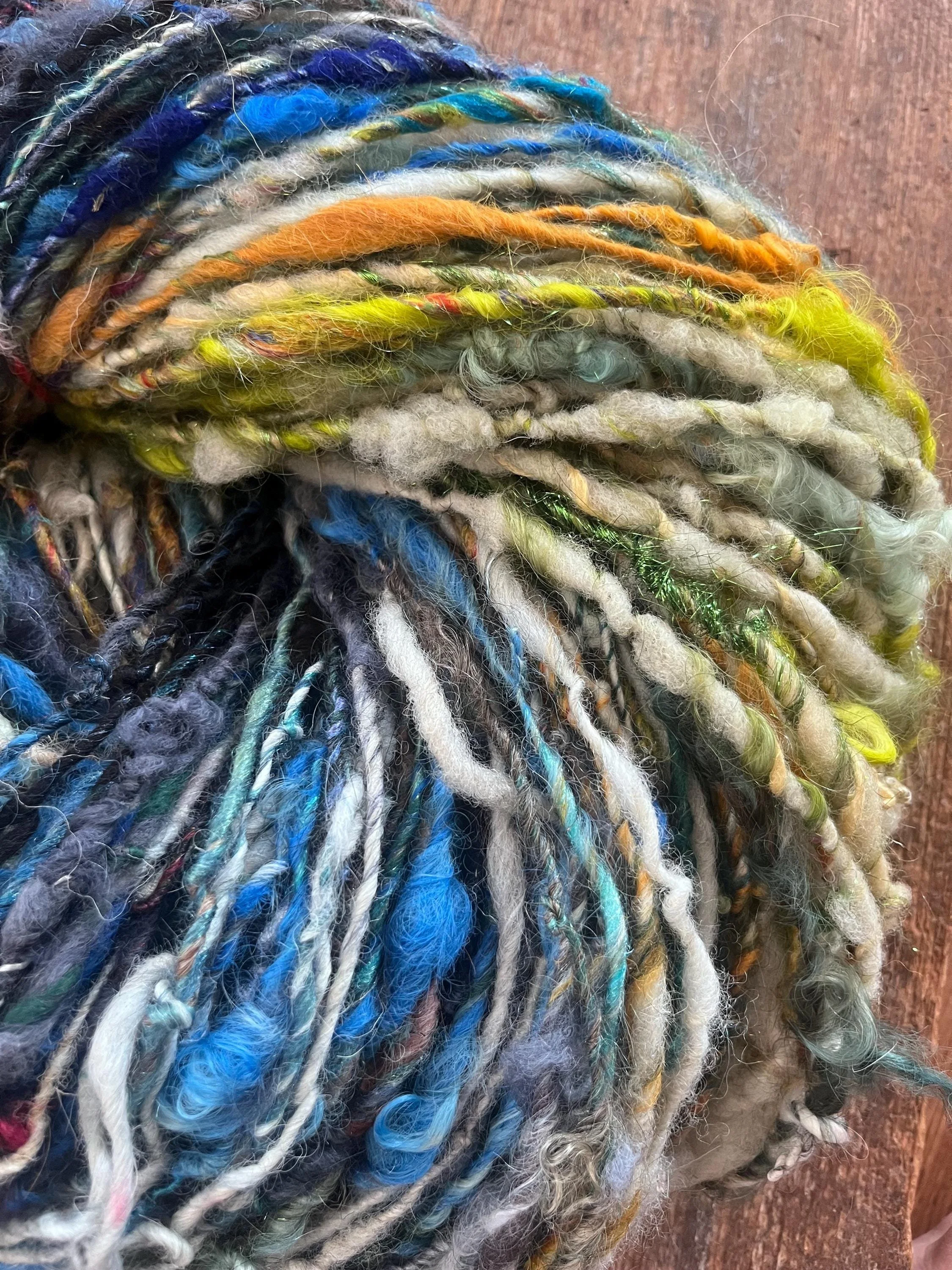 Twilight Carnival, handspun nubbly squishy chunky handspun Southdown wool art yarn