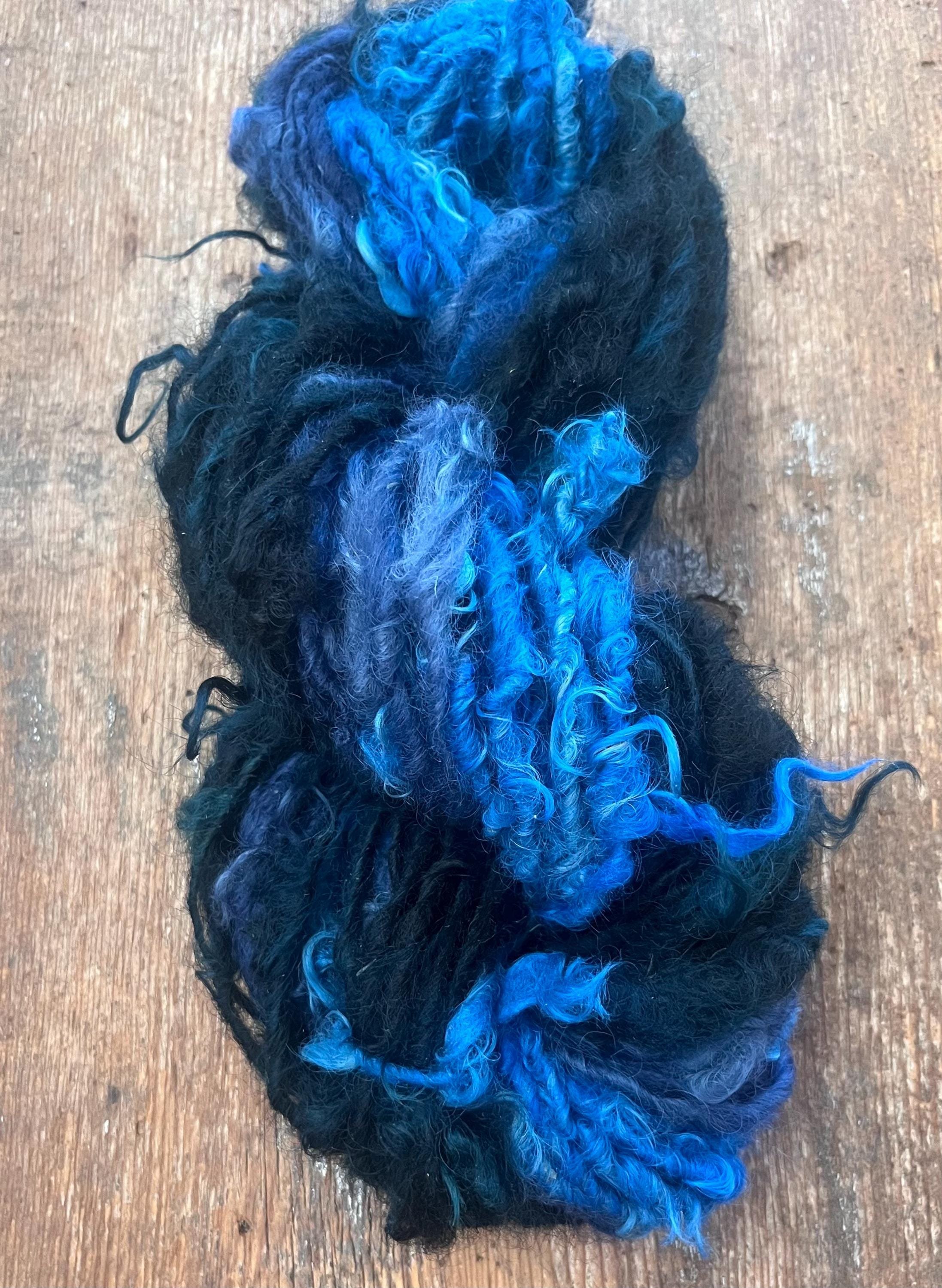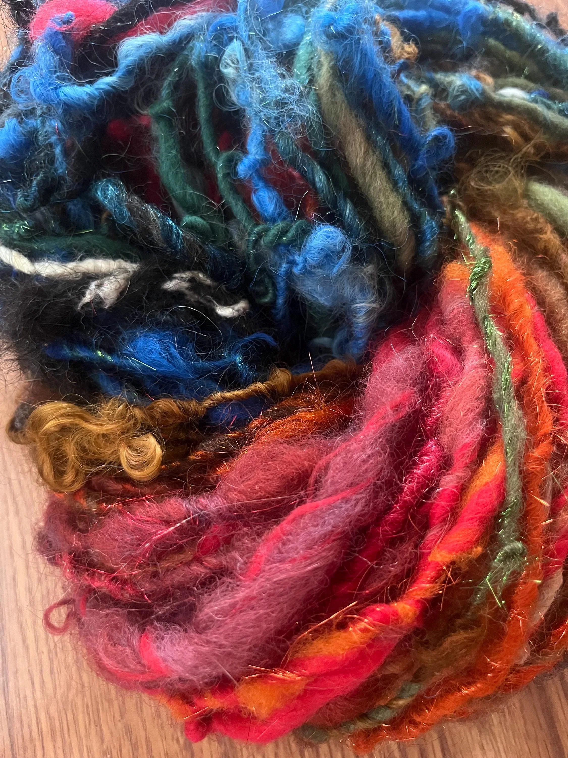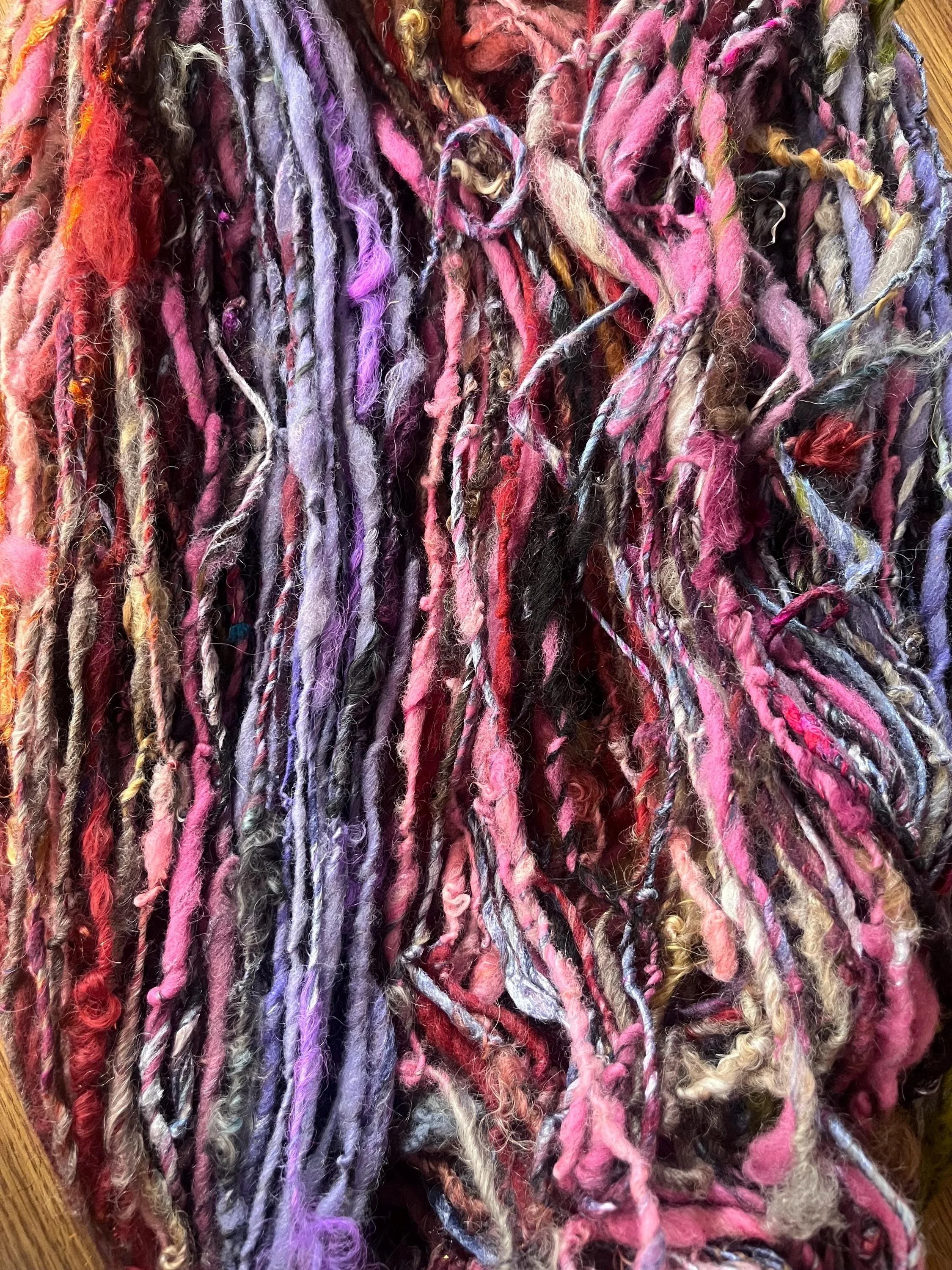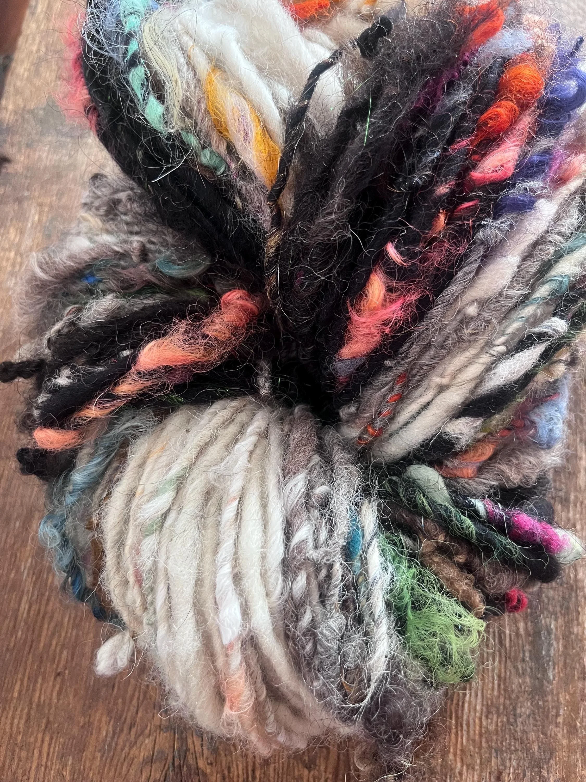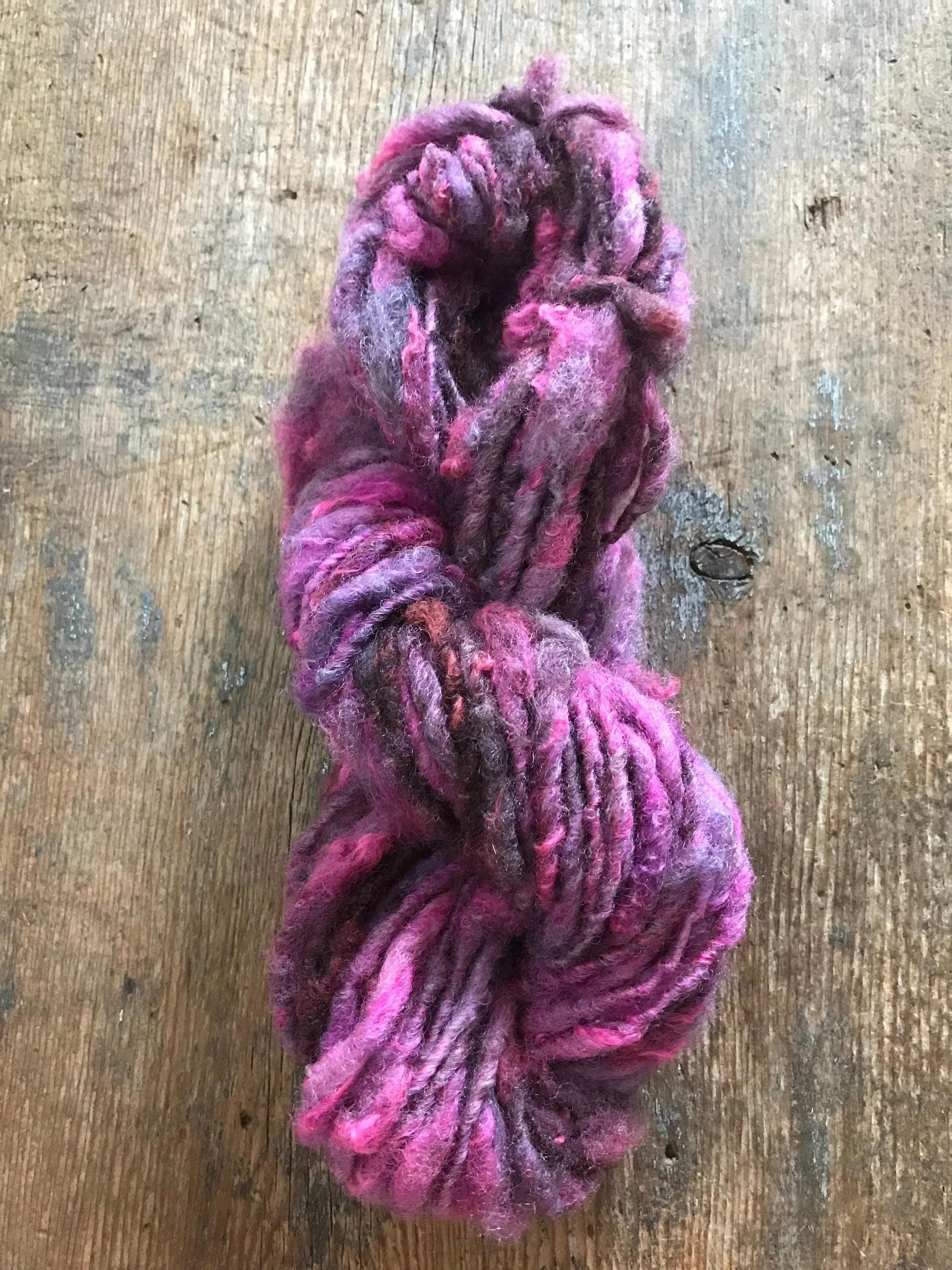 Twilight Carnival, handspun nubbly squishy chunky handspun Southdown wool art yarn