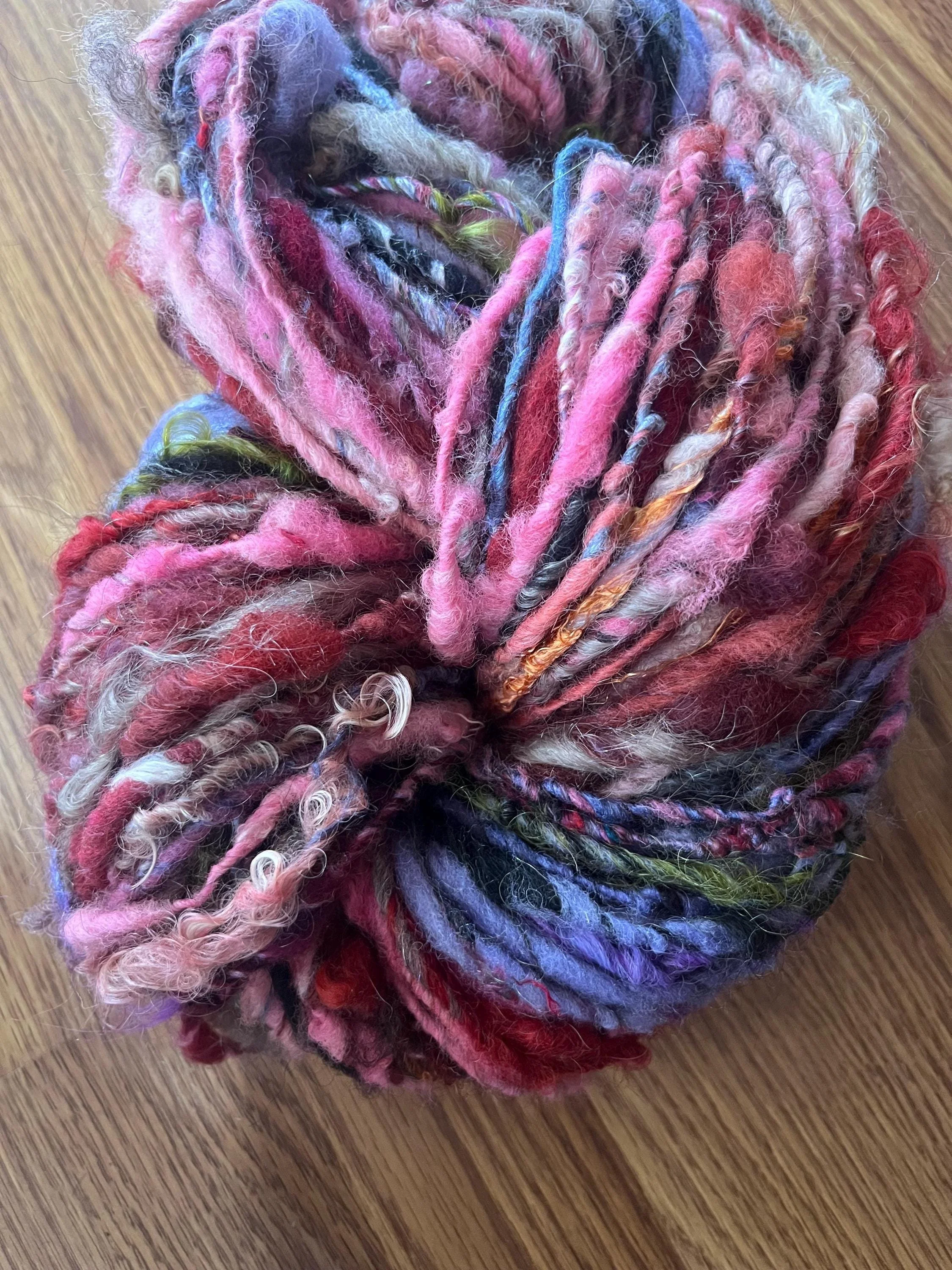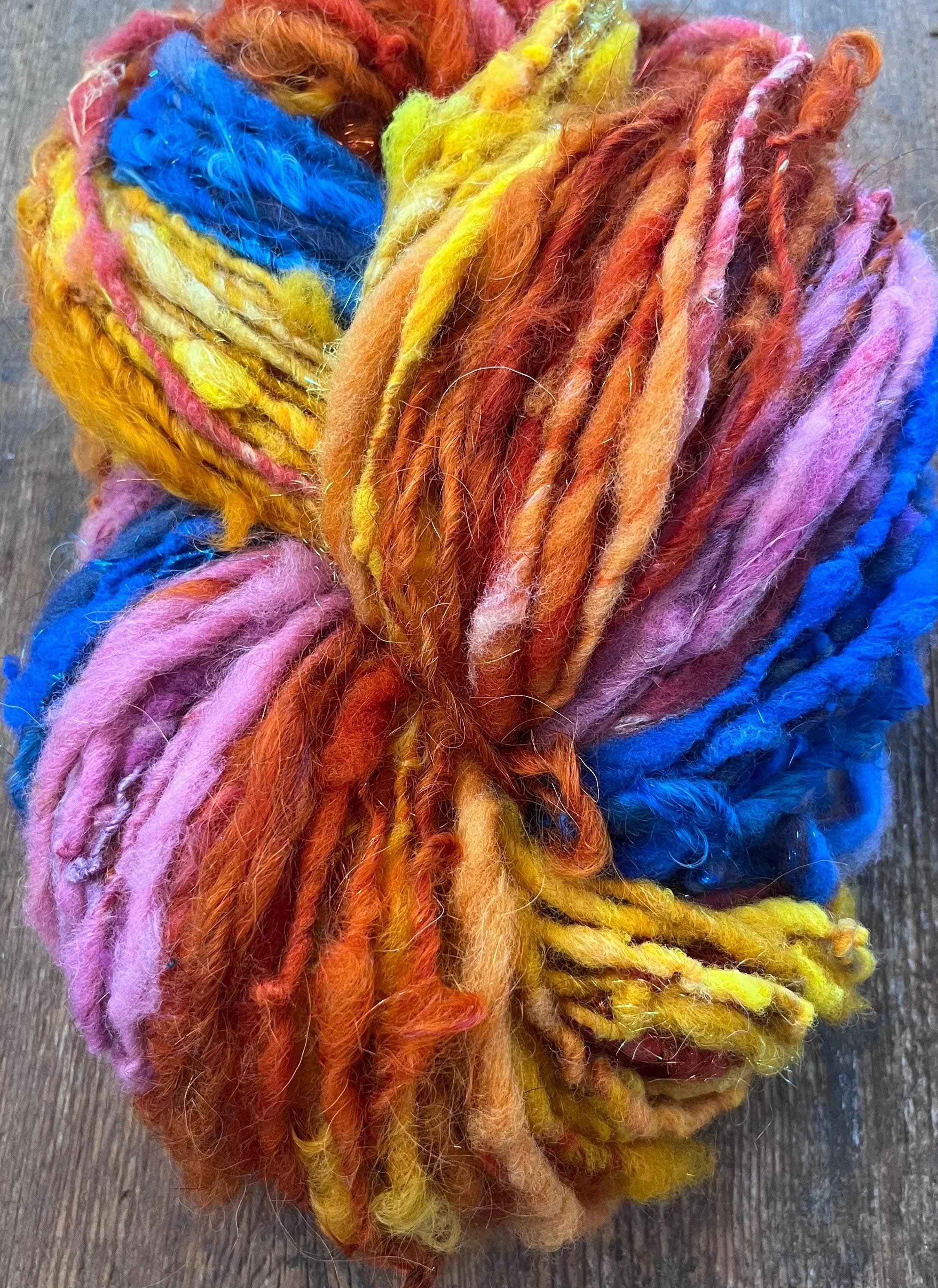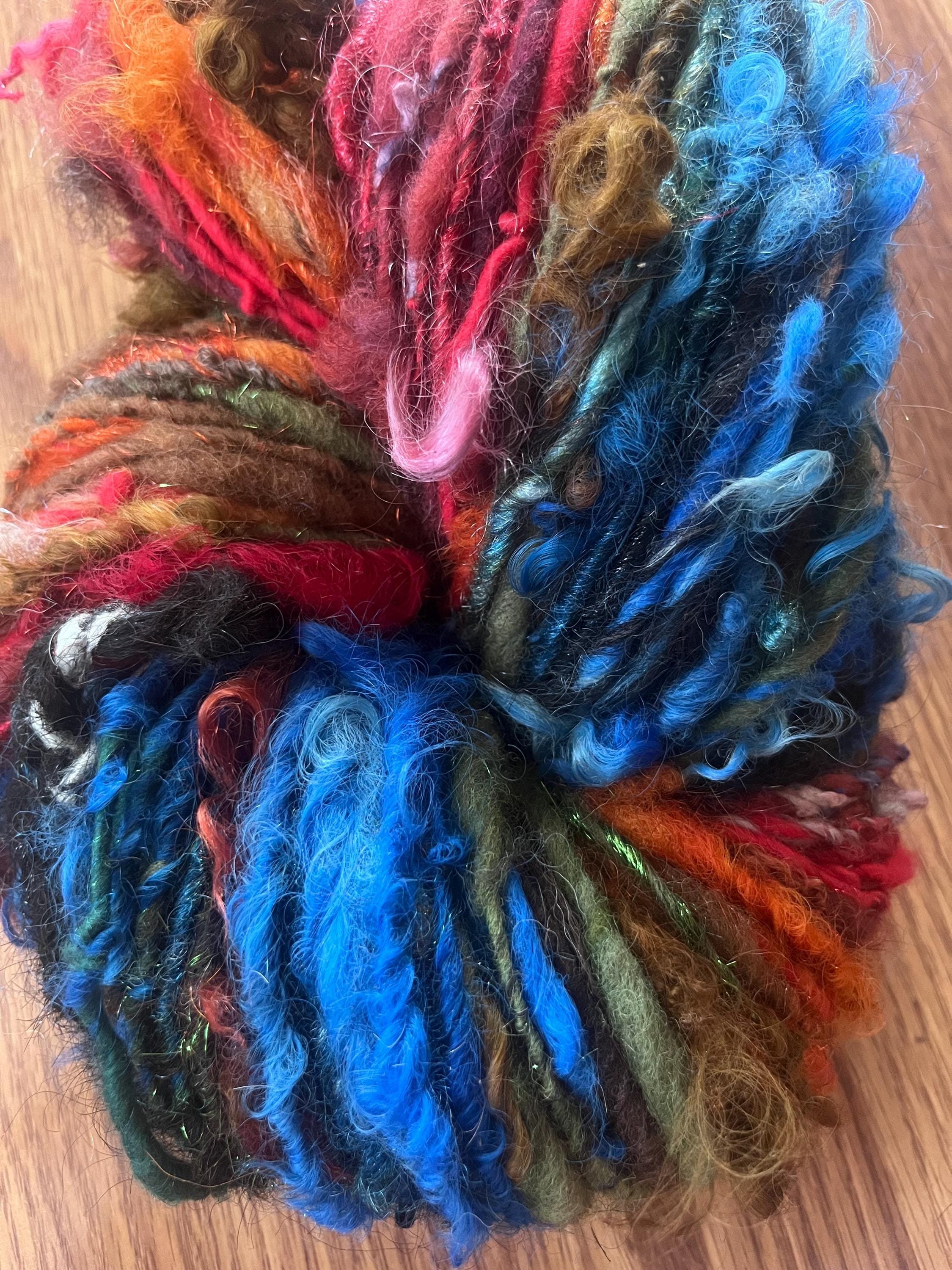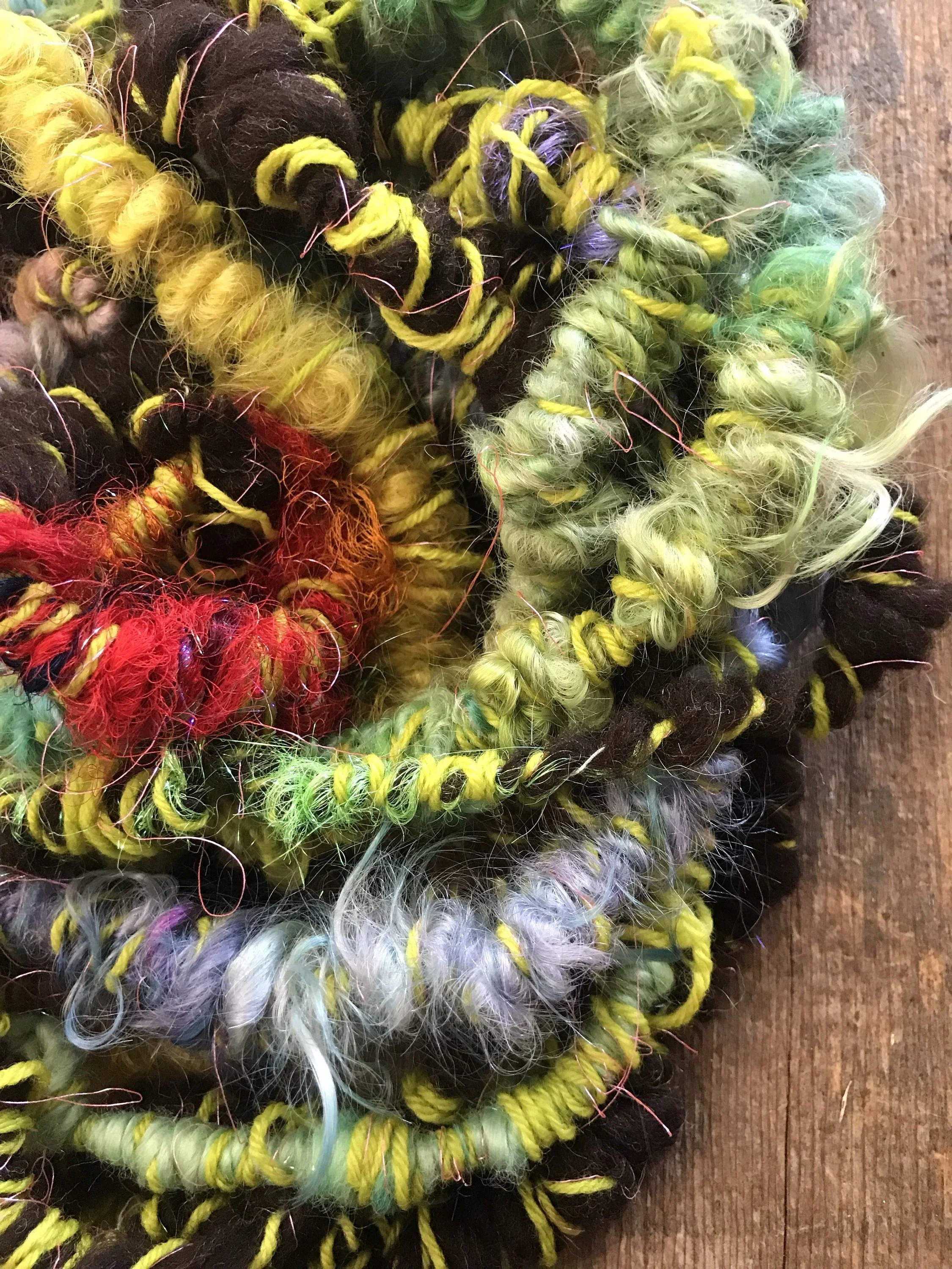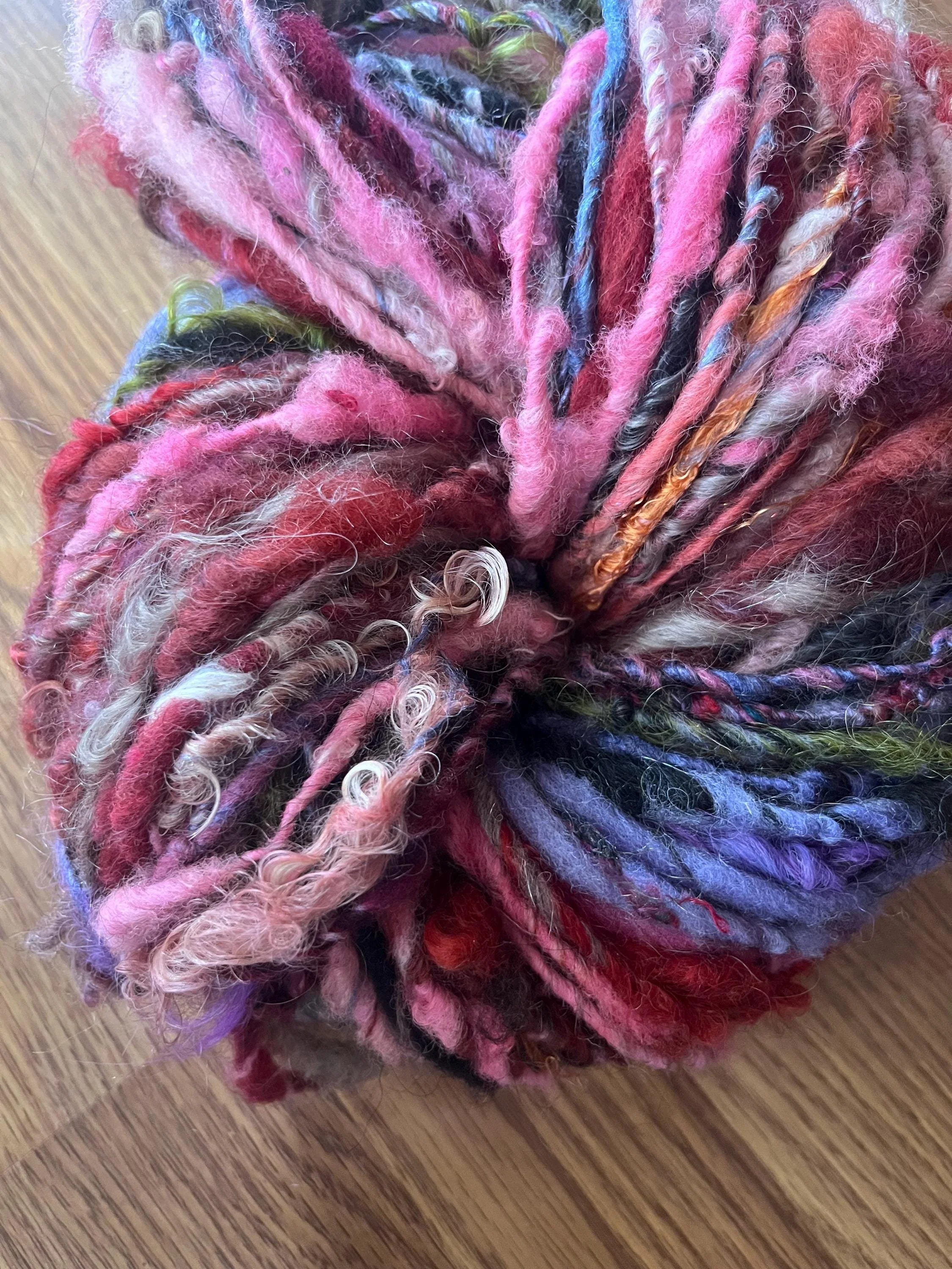 Twilight Carnival, handspun nubbly squishy chunky handspun Southdown wool art yarn