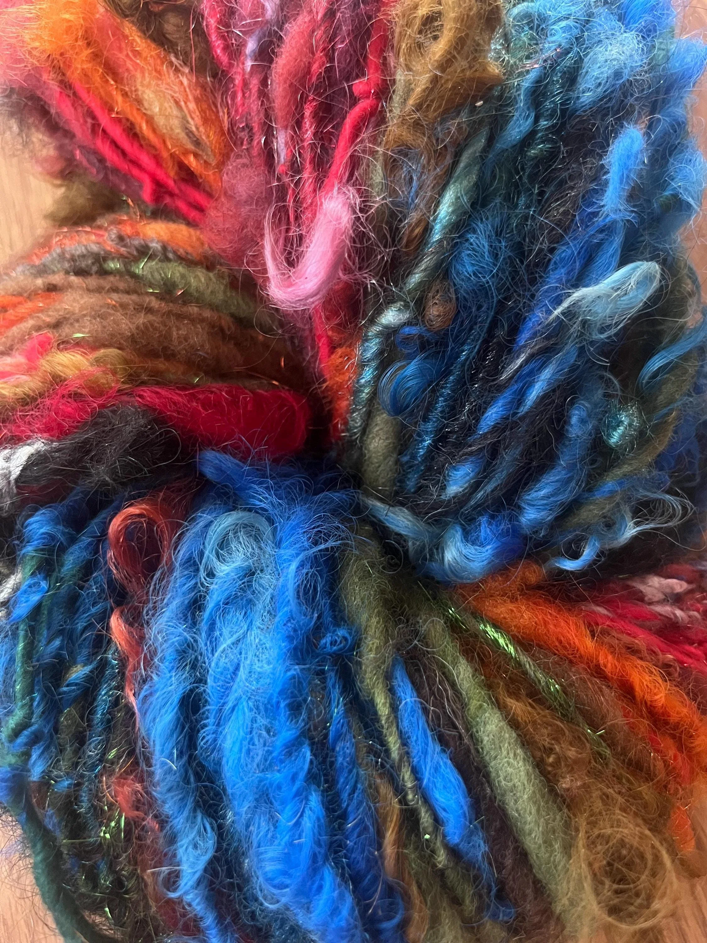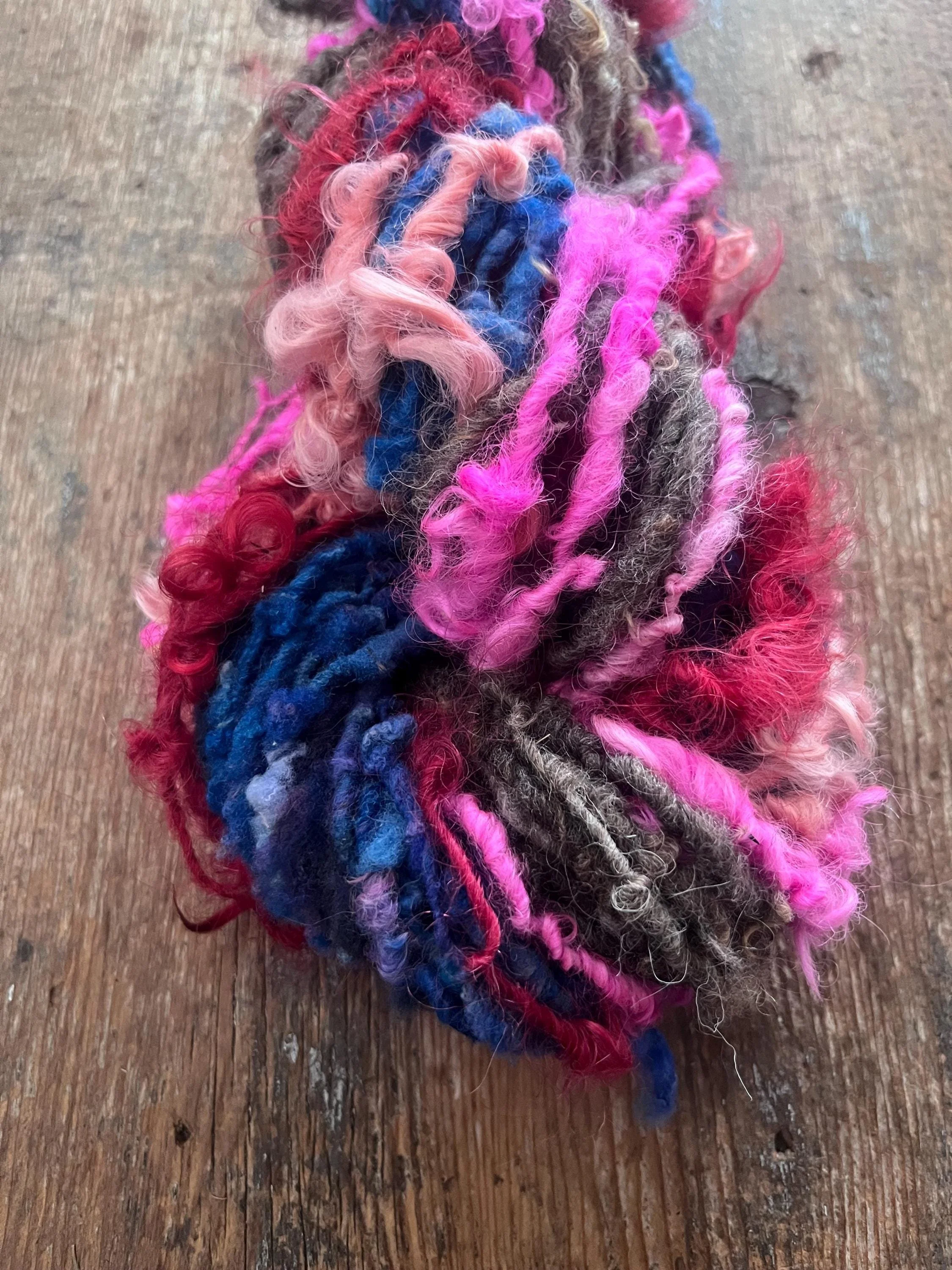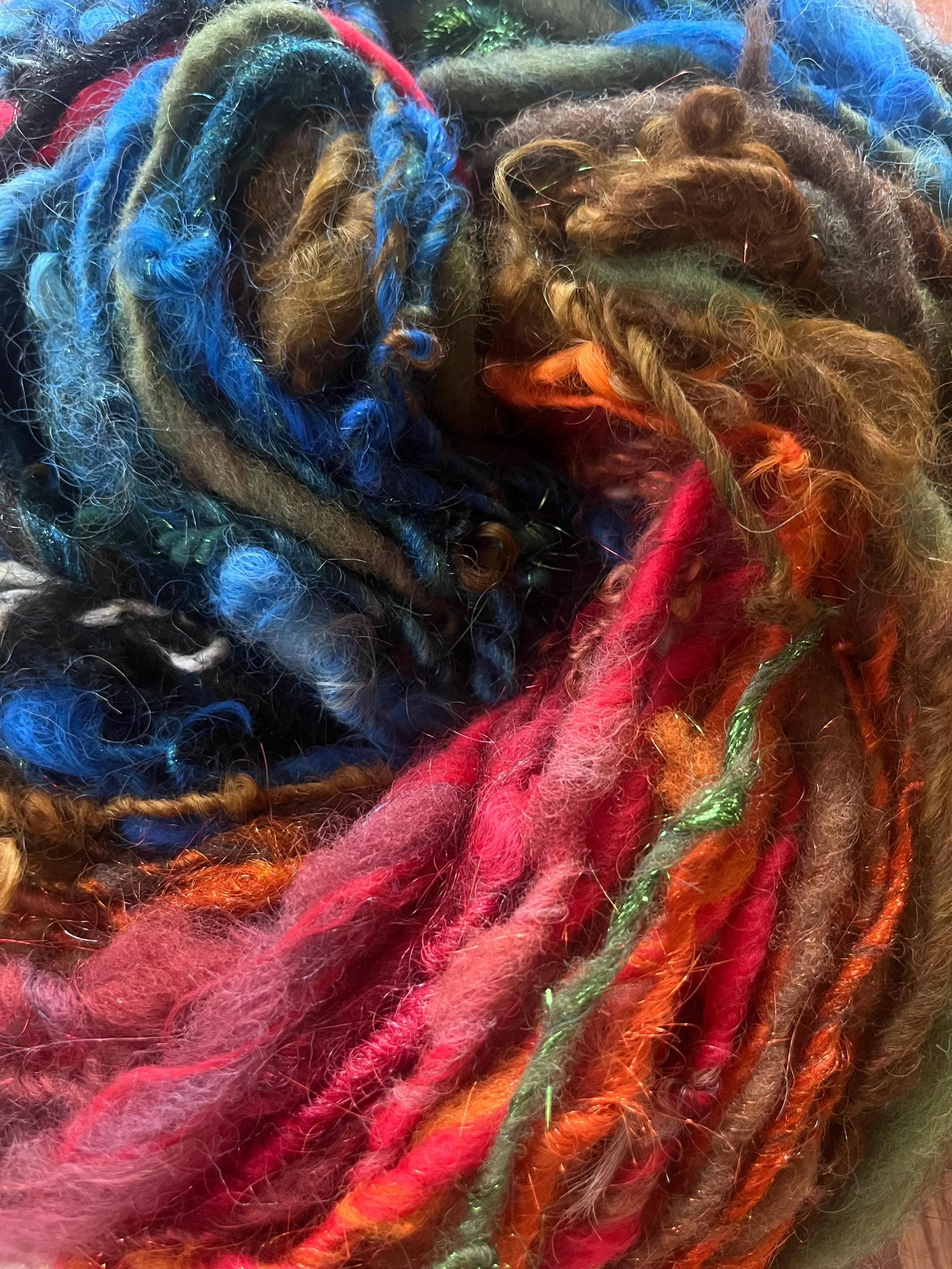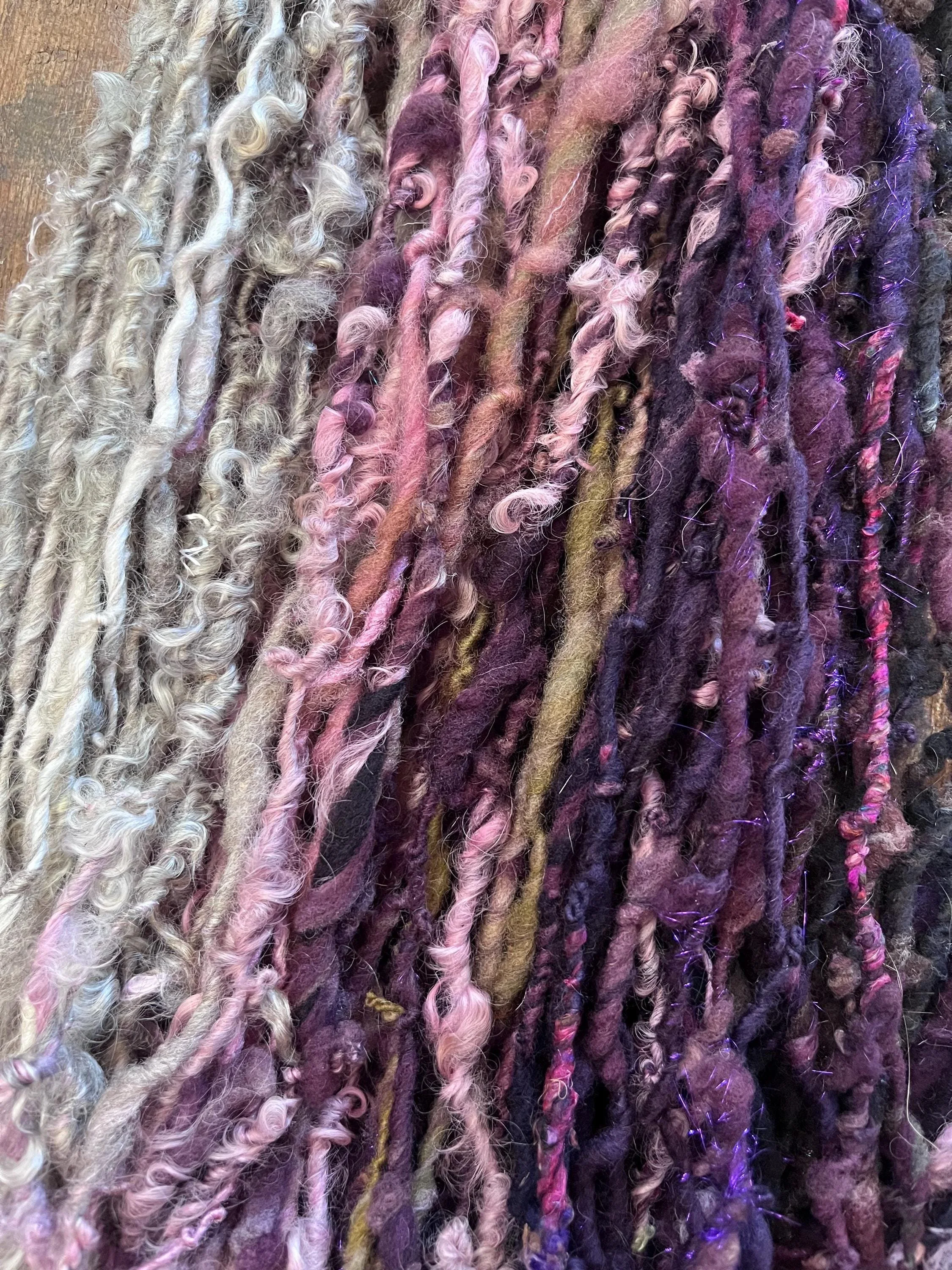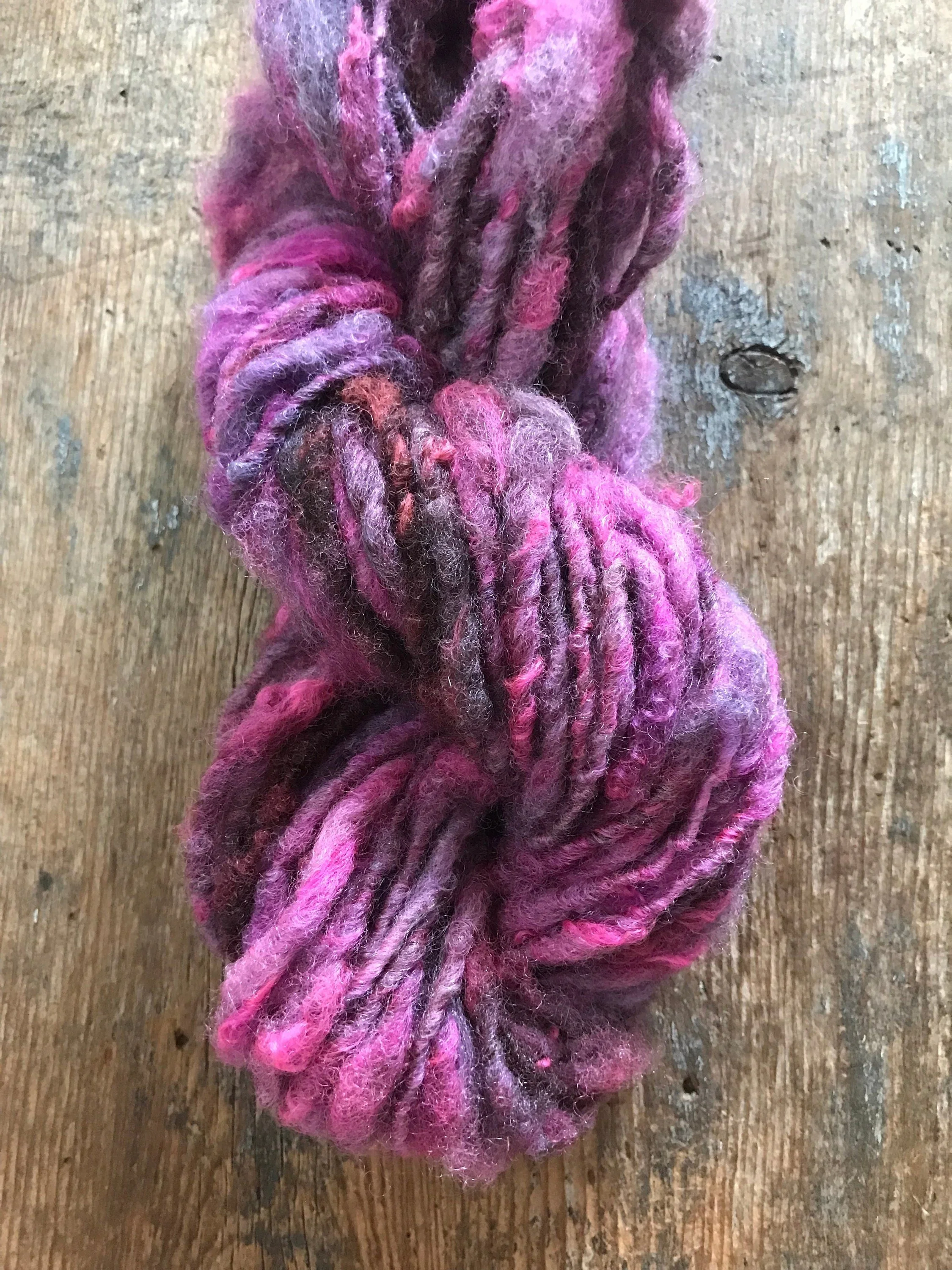 Twilight Carnival, handspun nubbly squishy chunky handspun Southdown wool art yarn
