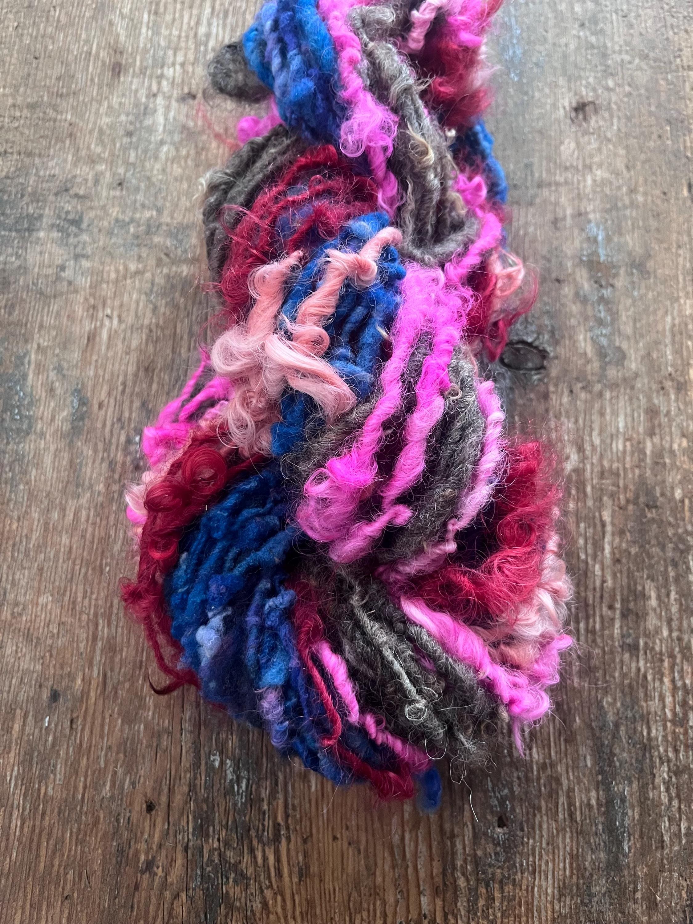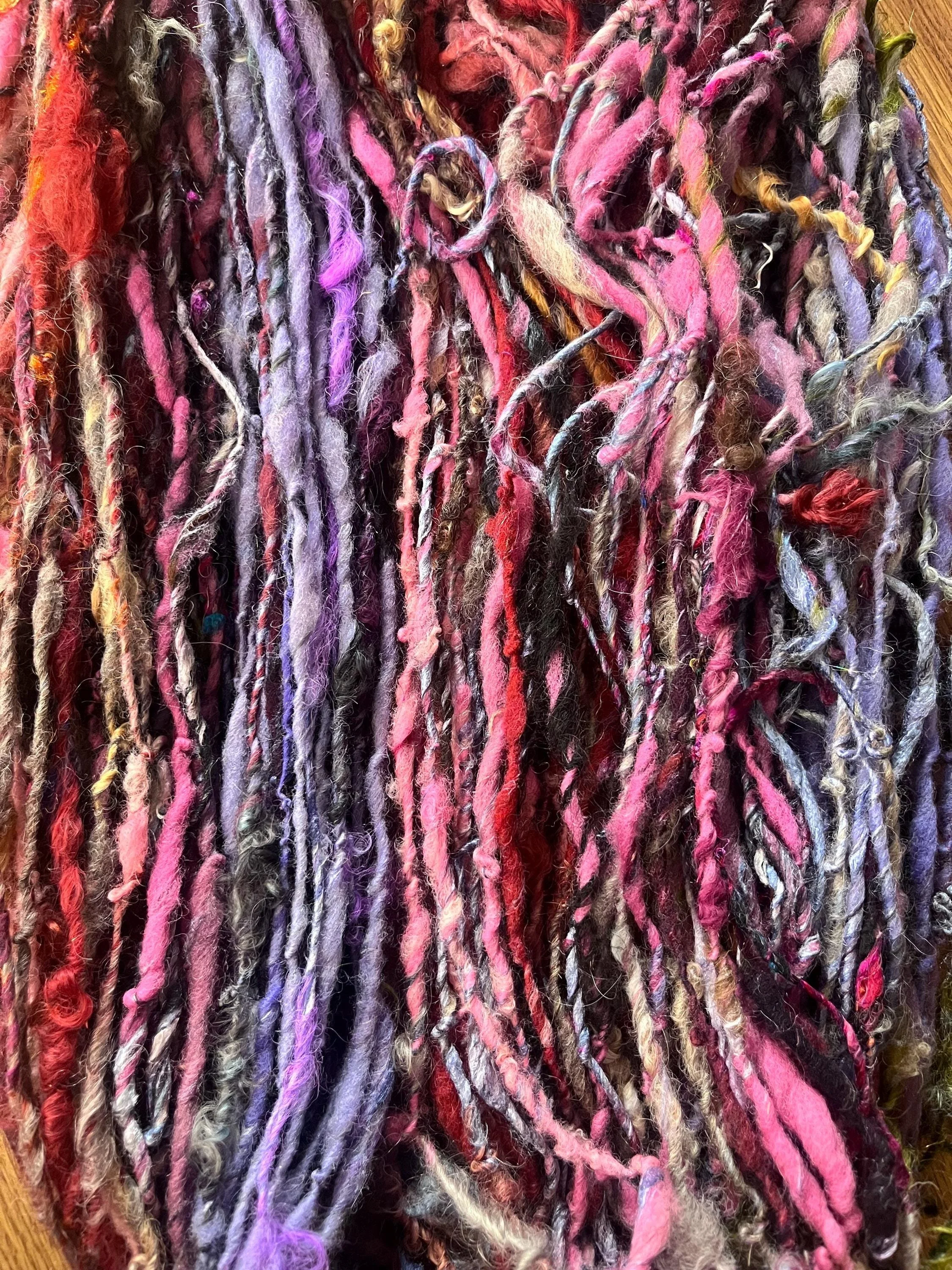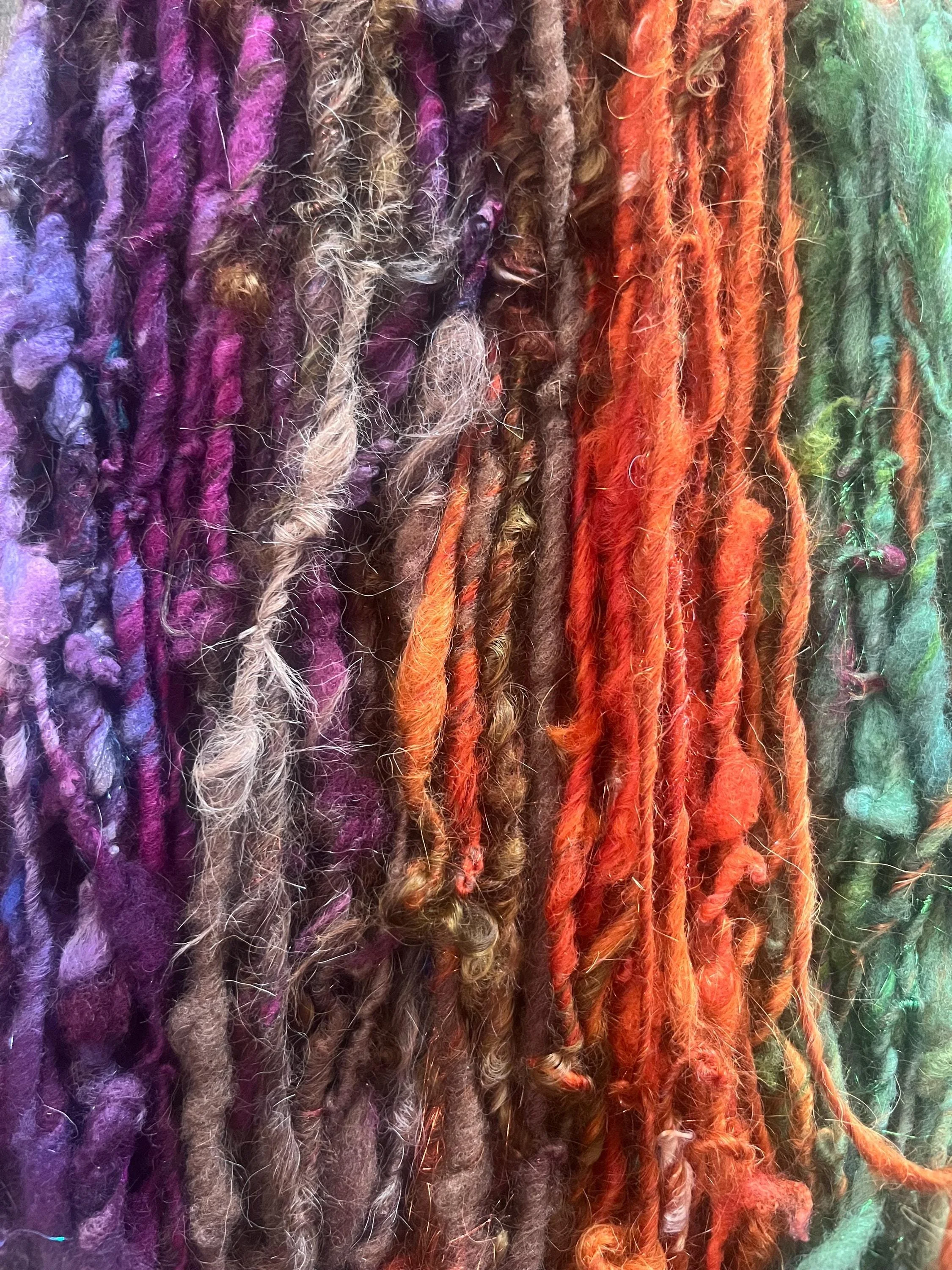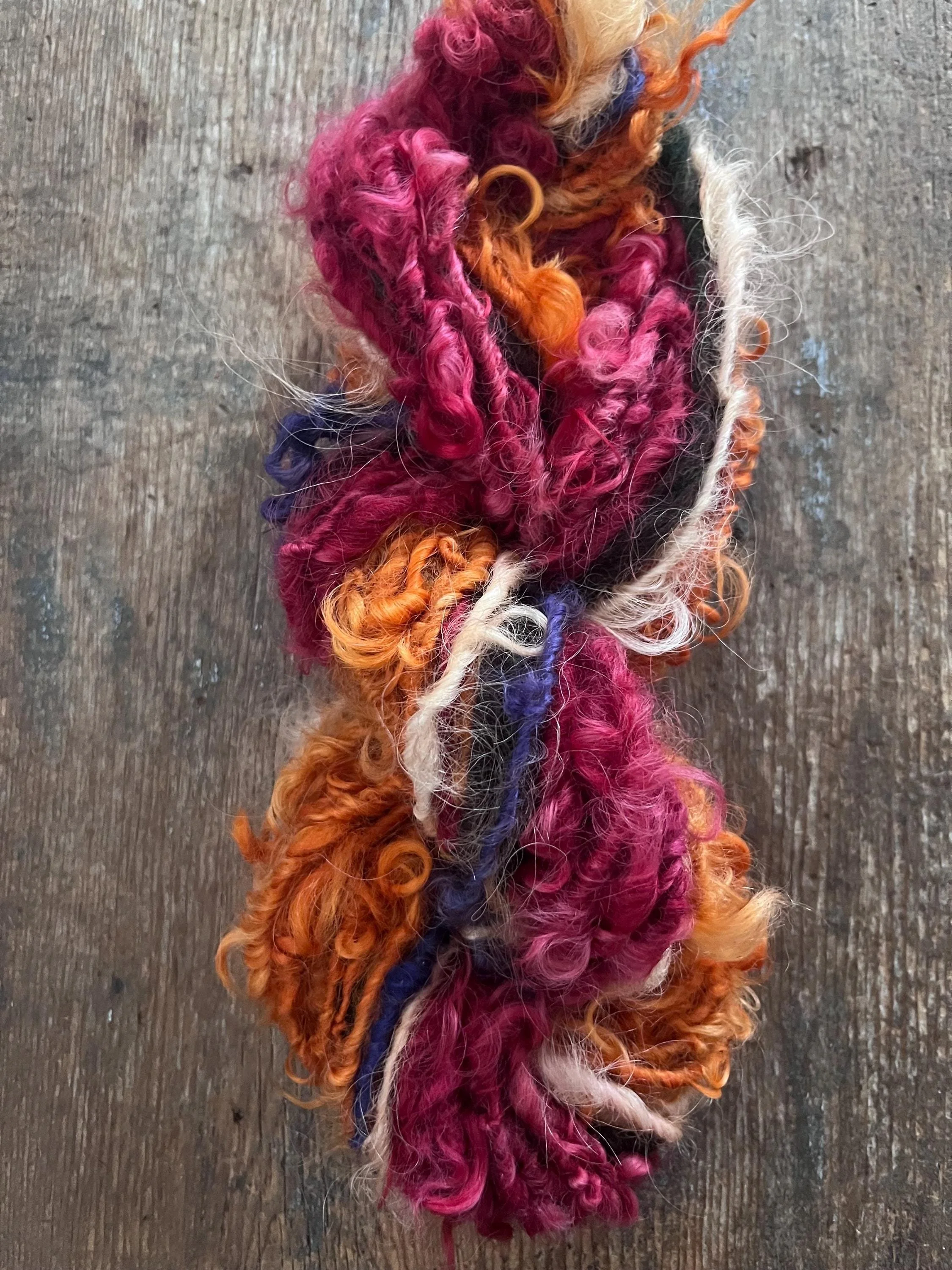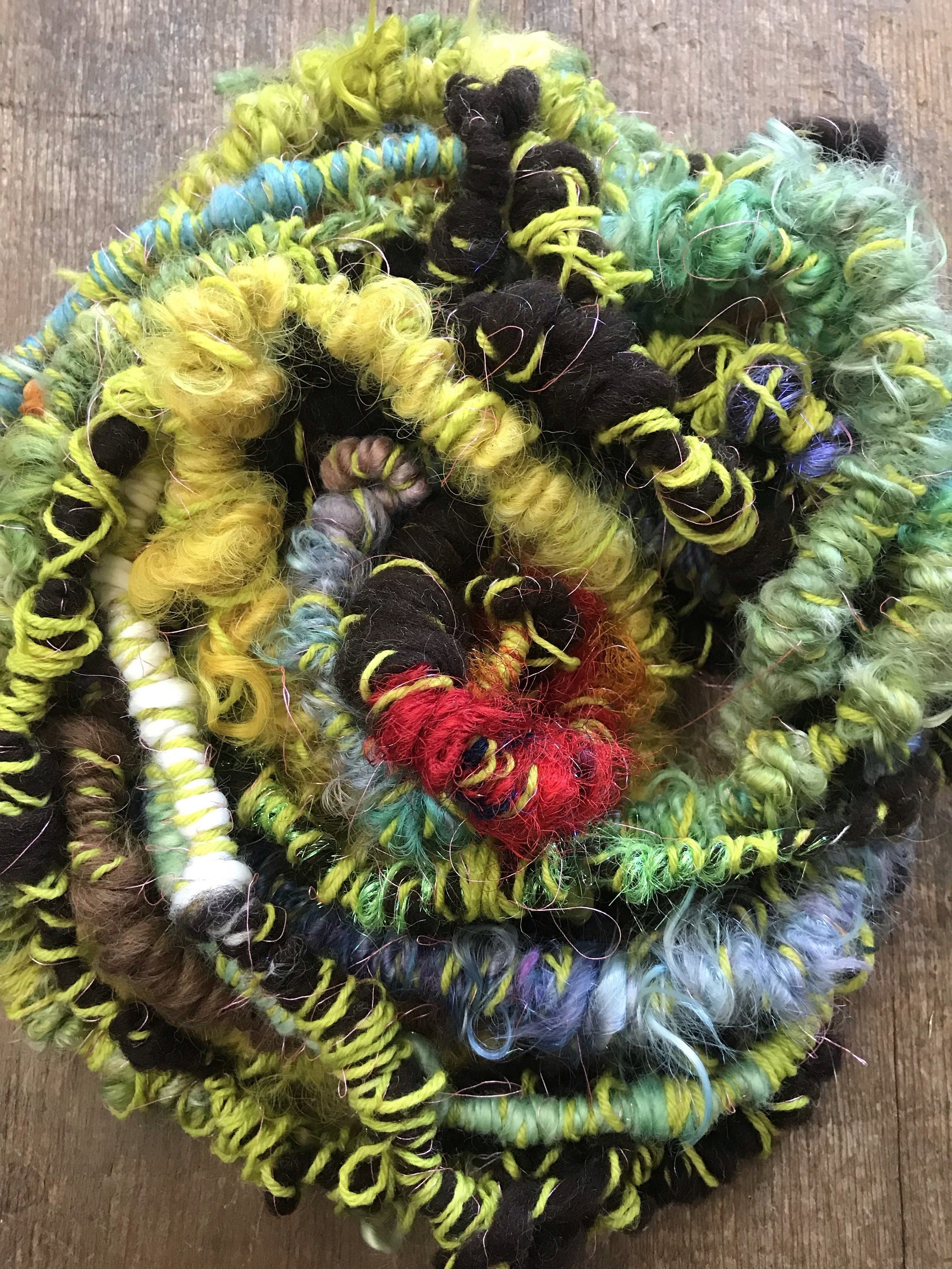 Twilight Carnival, handspun nubbly squishy chunky handspun Southdown wool art yarn
