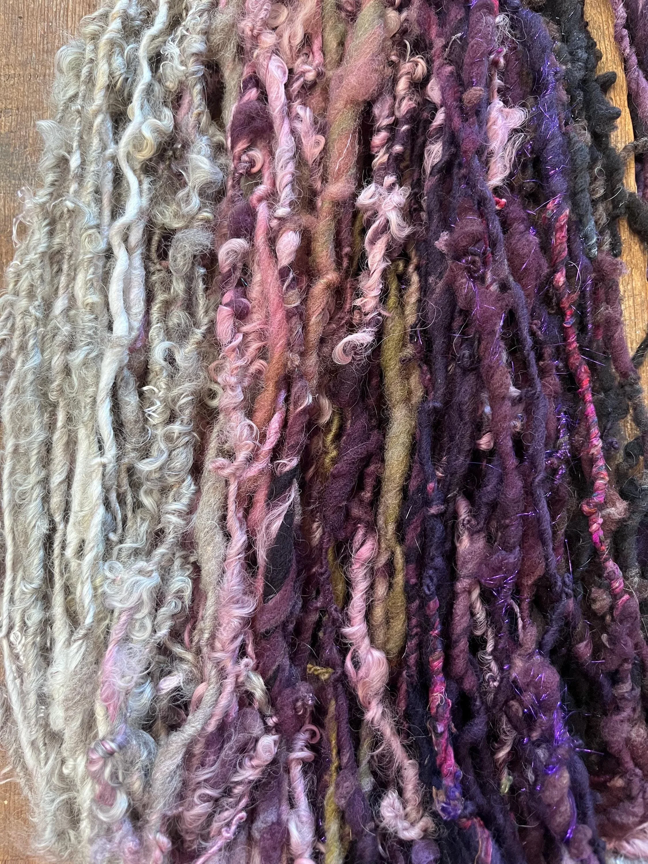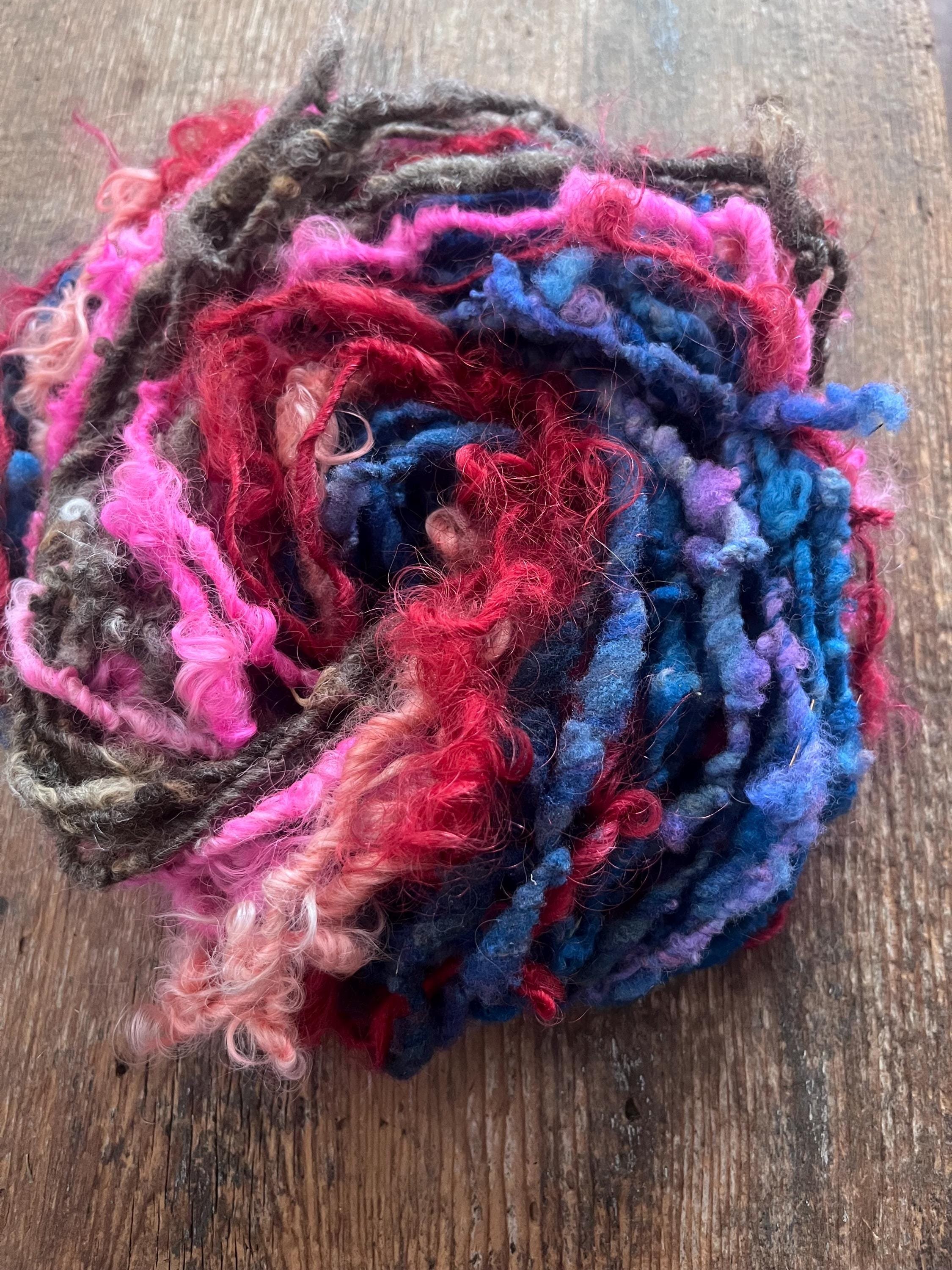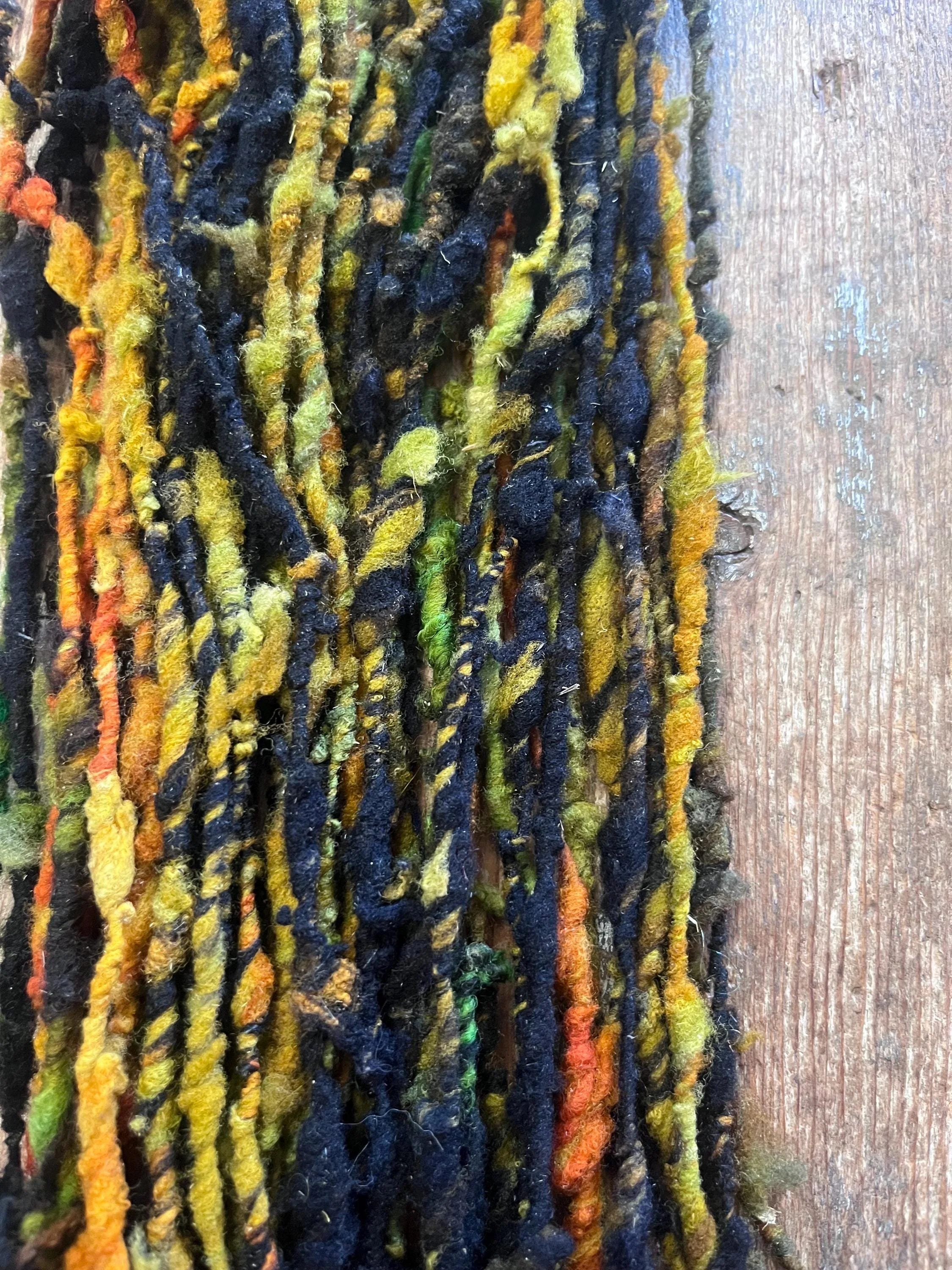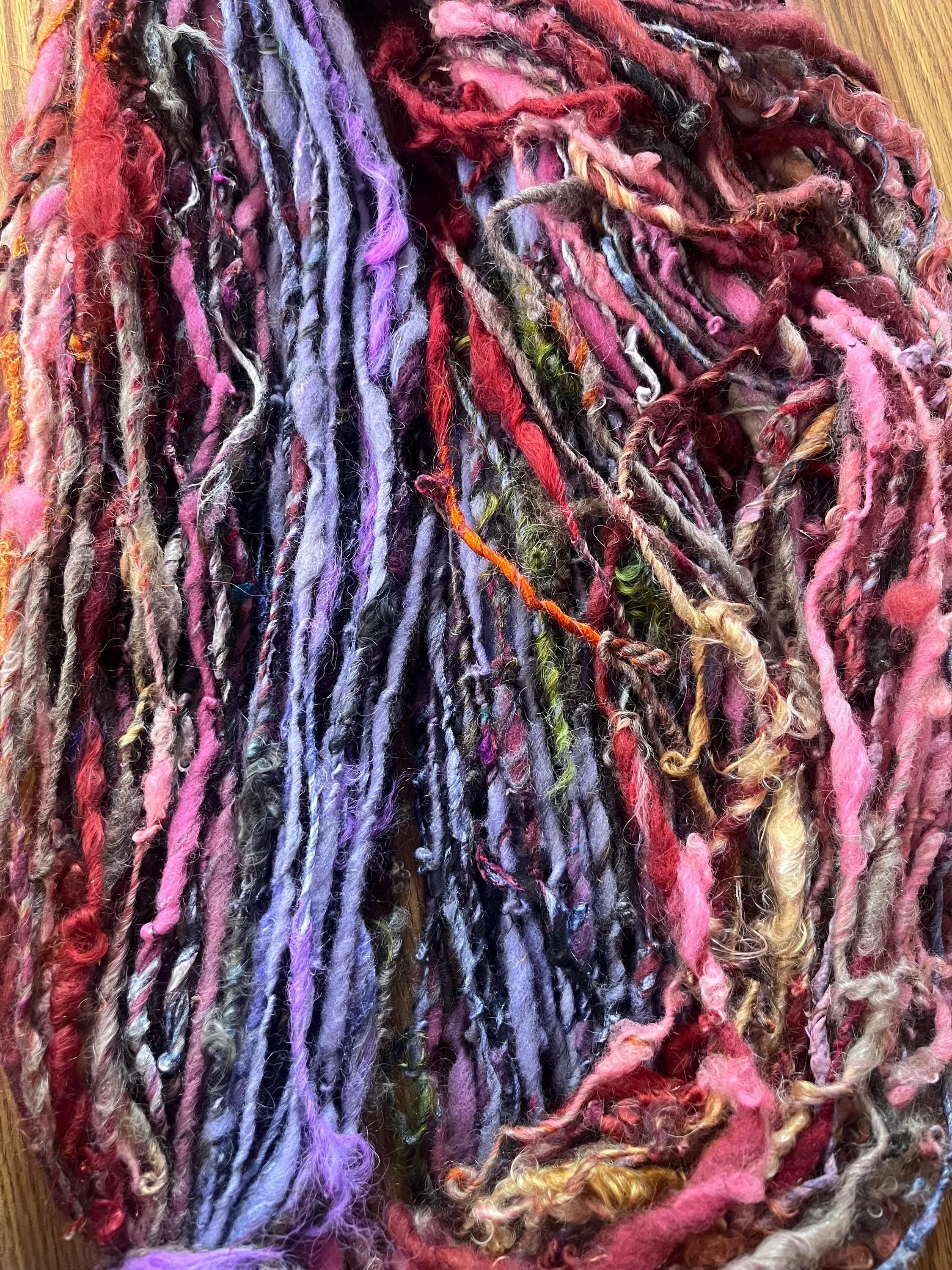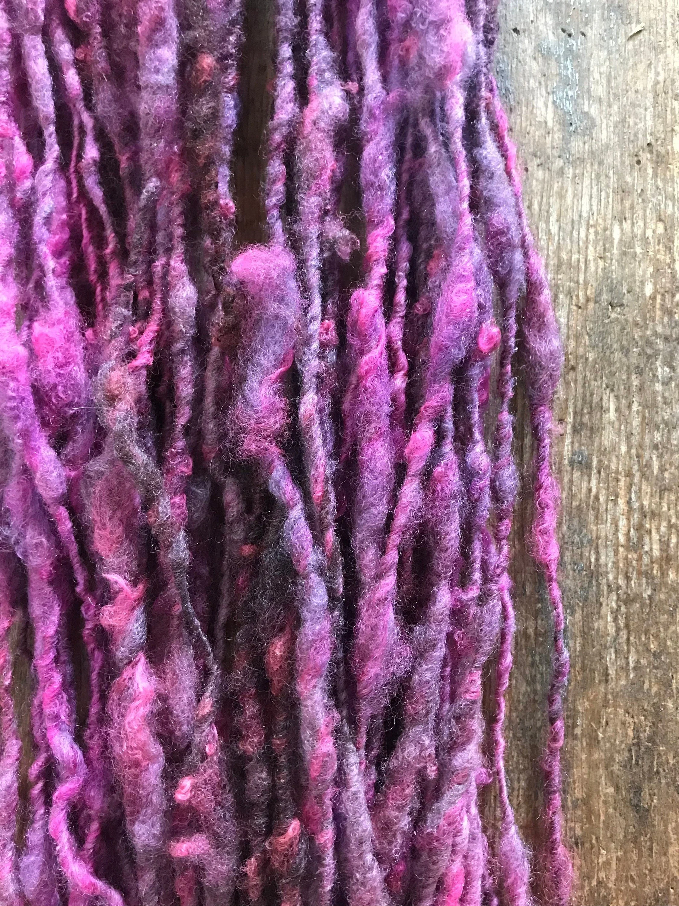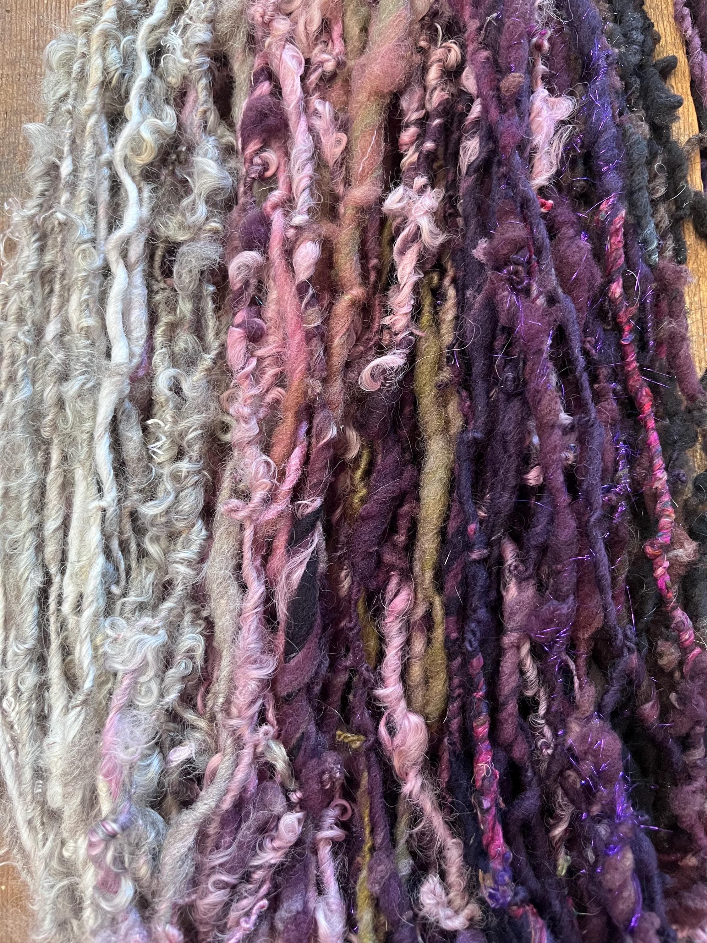 Twilight Carnival, handspun nubbly squishy chunky handspun Southdown wool art yarn