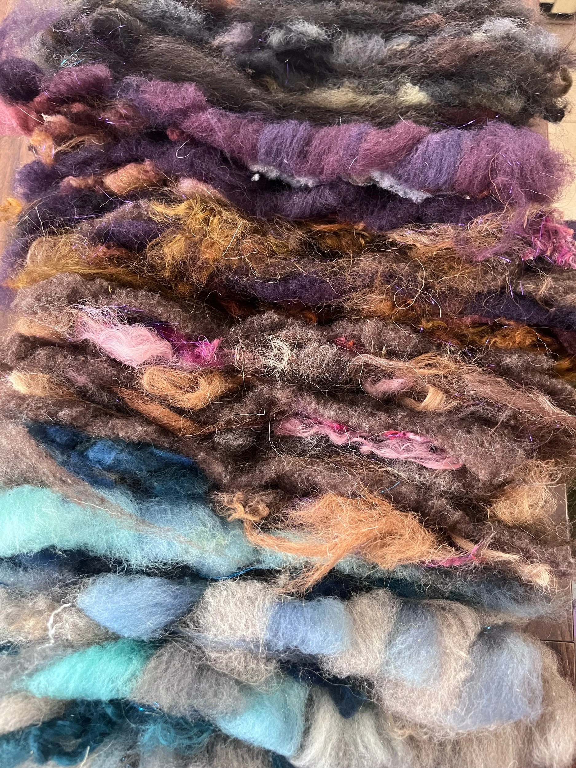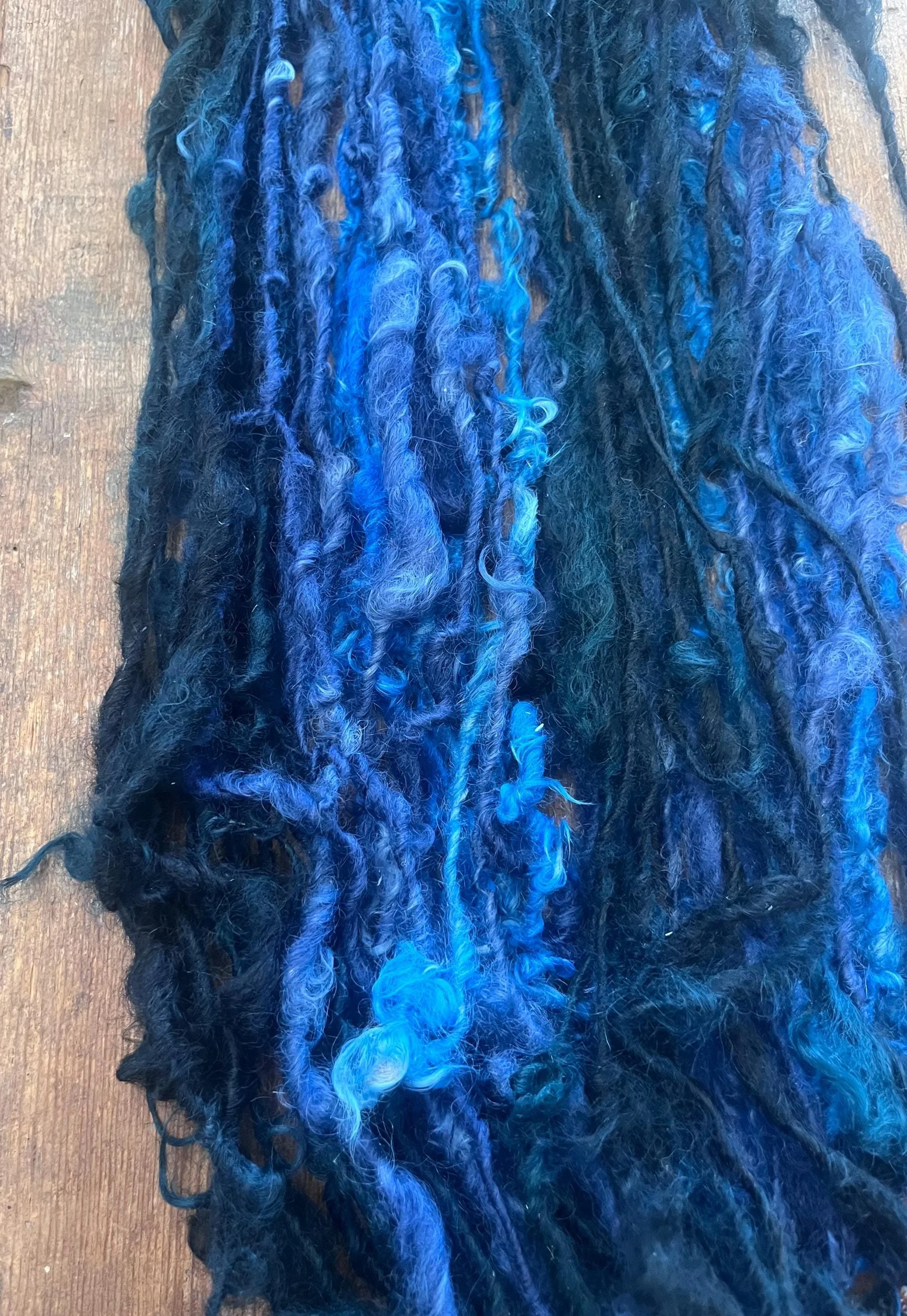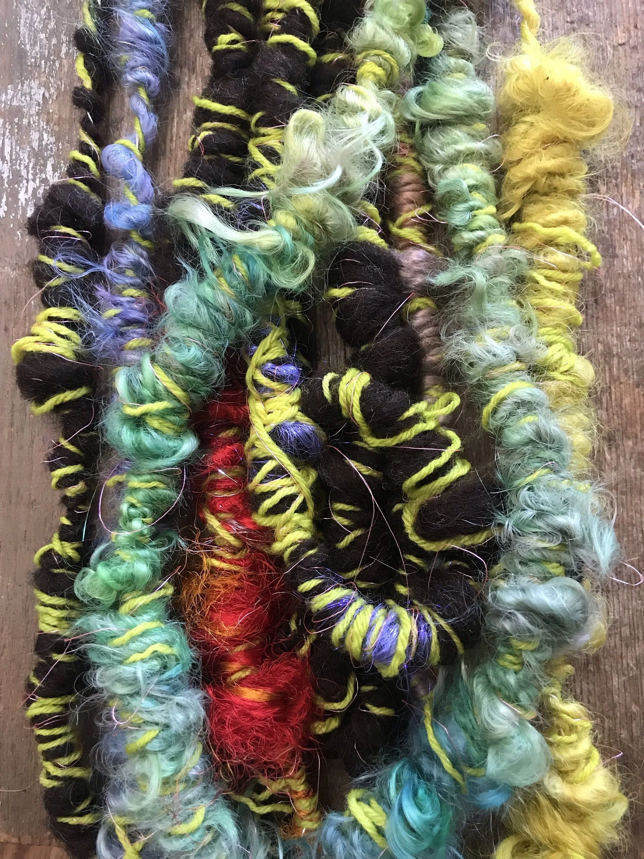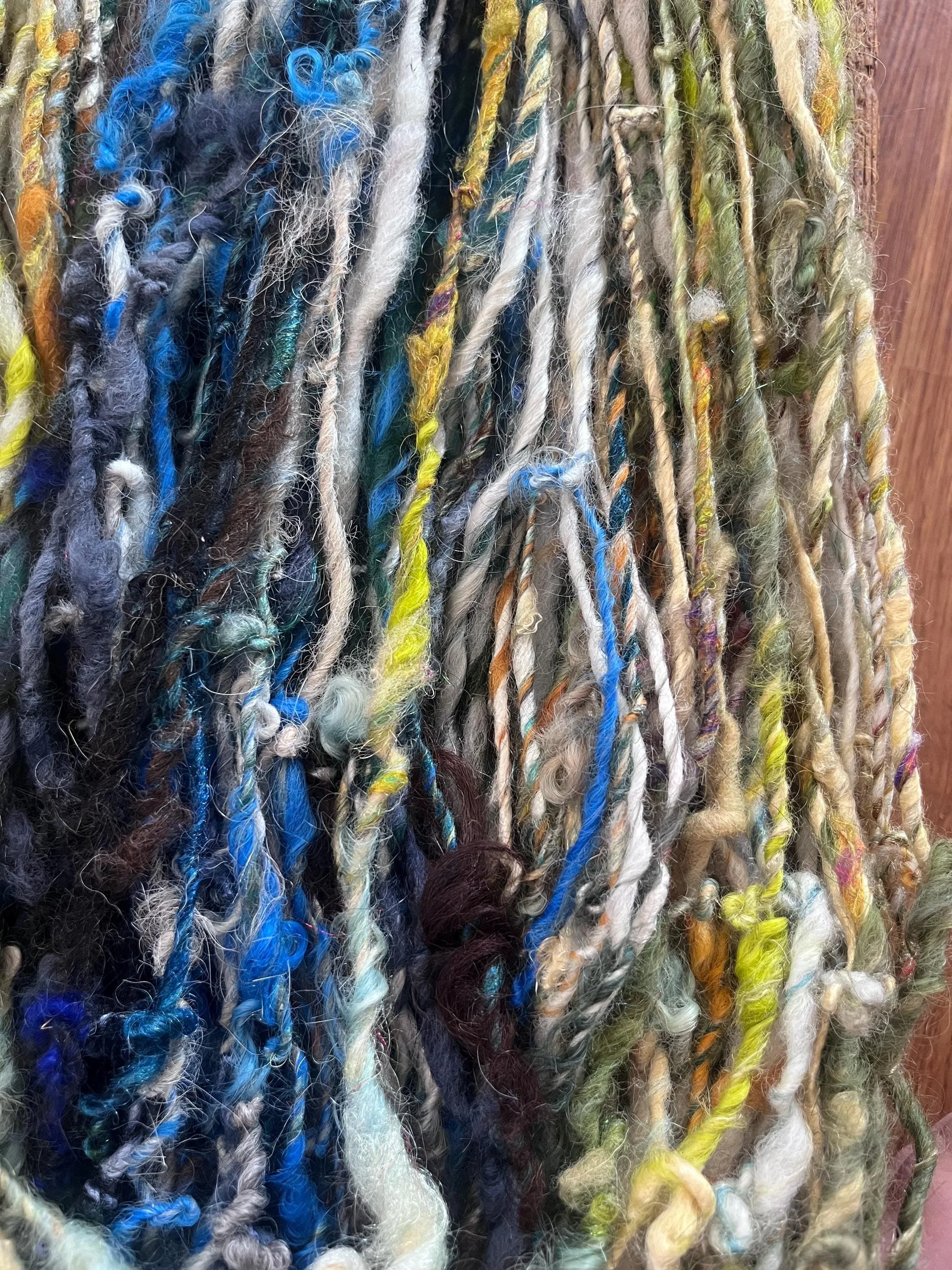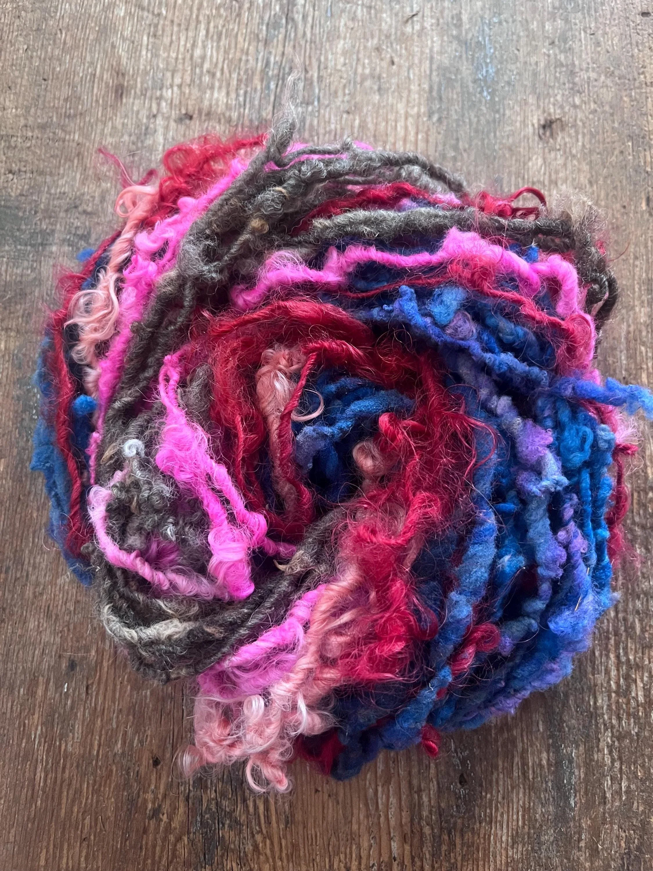 Twilight Carnival, handspun nubbly squishy chunky handspun Southdown wool art yarn