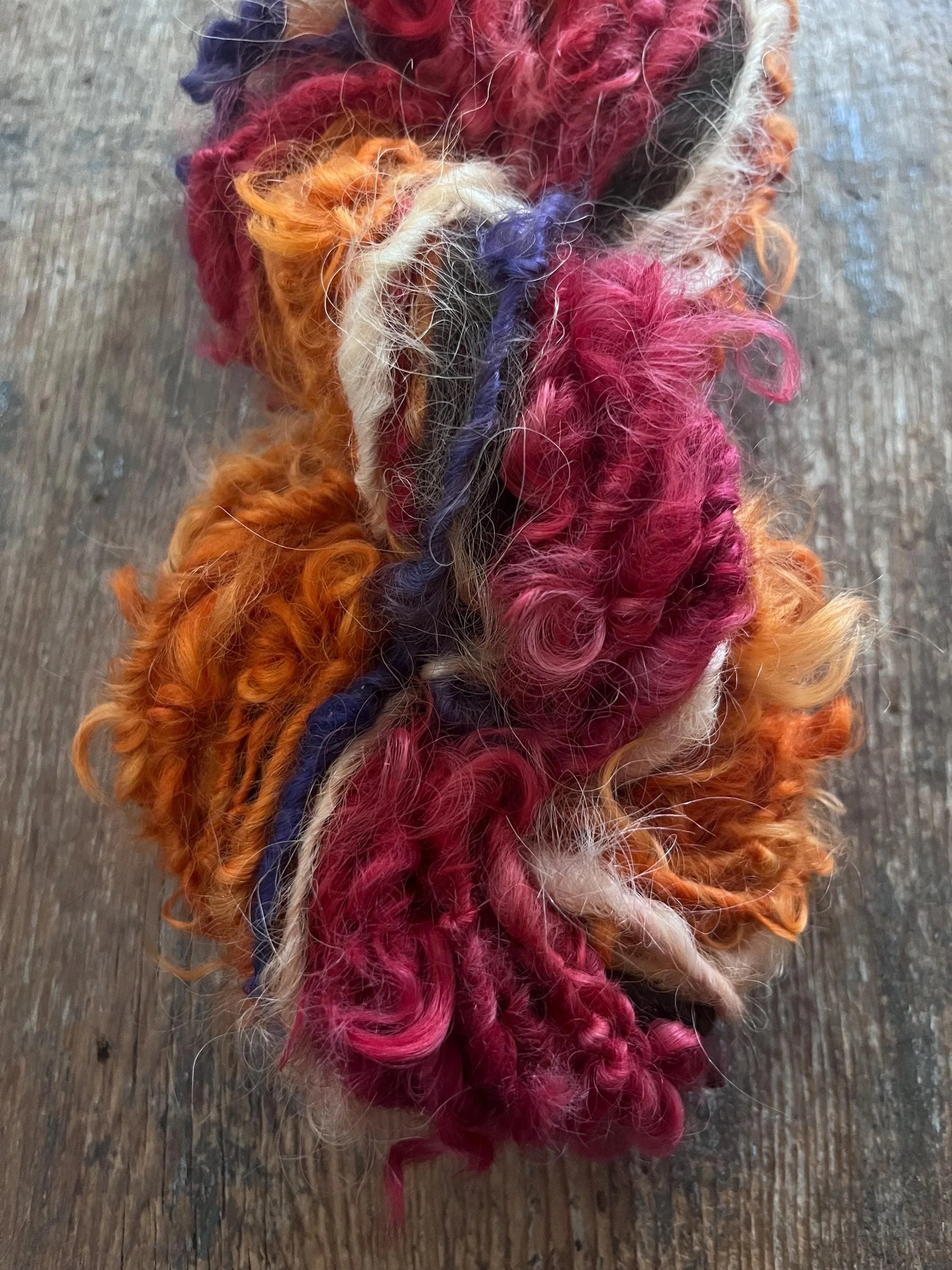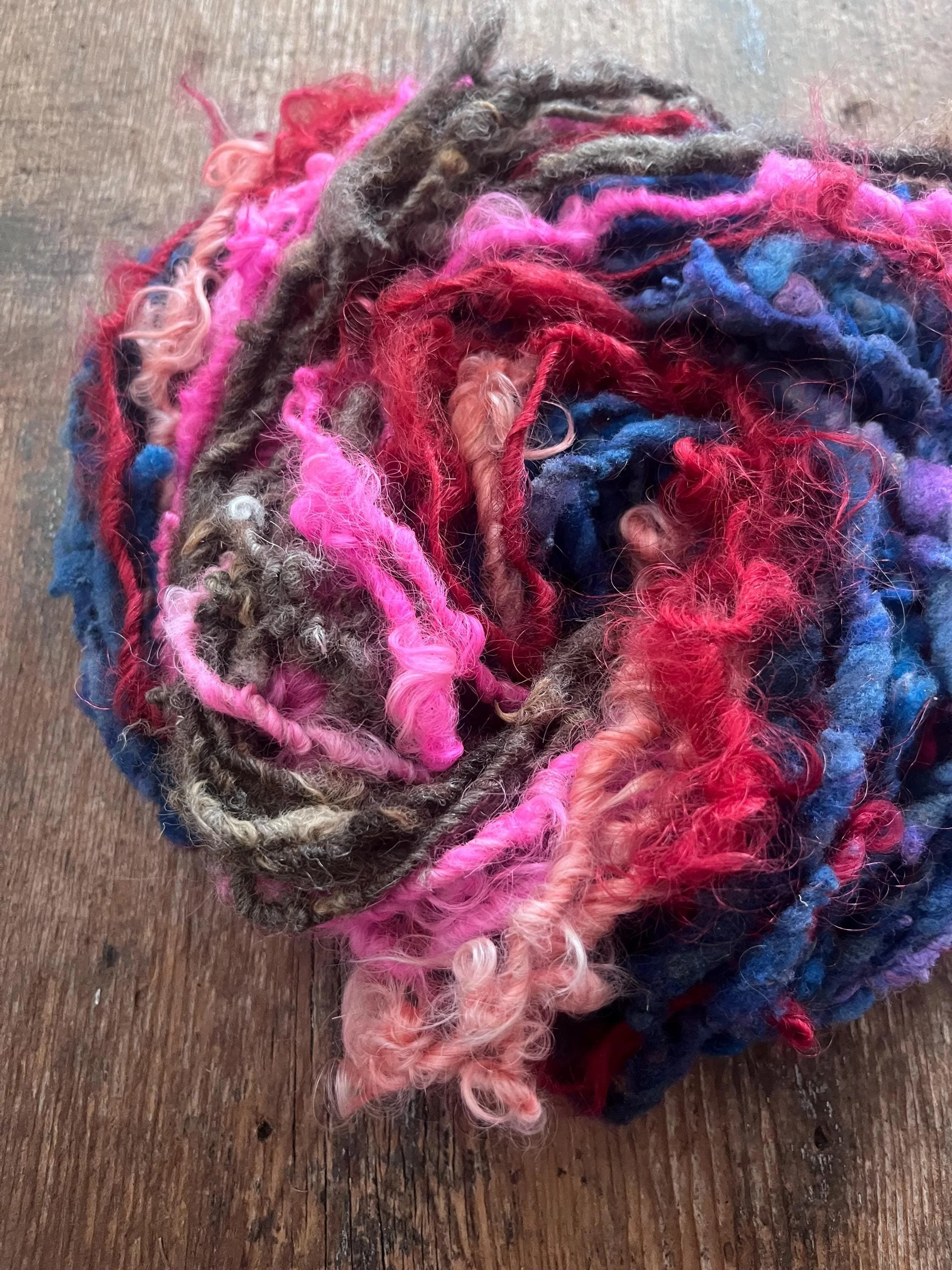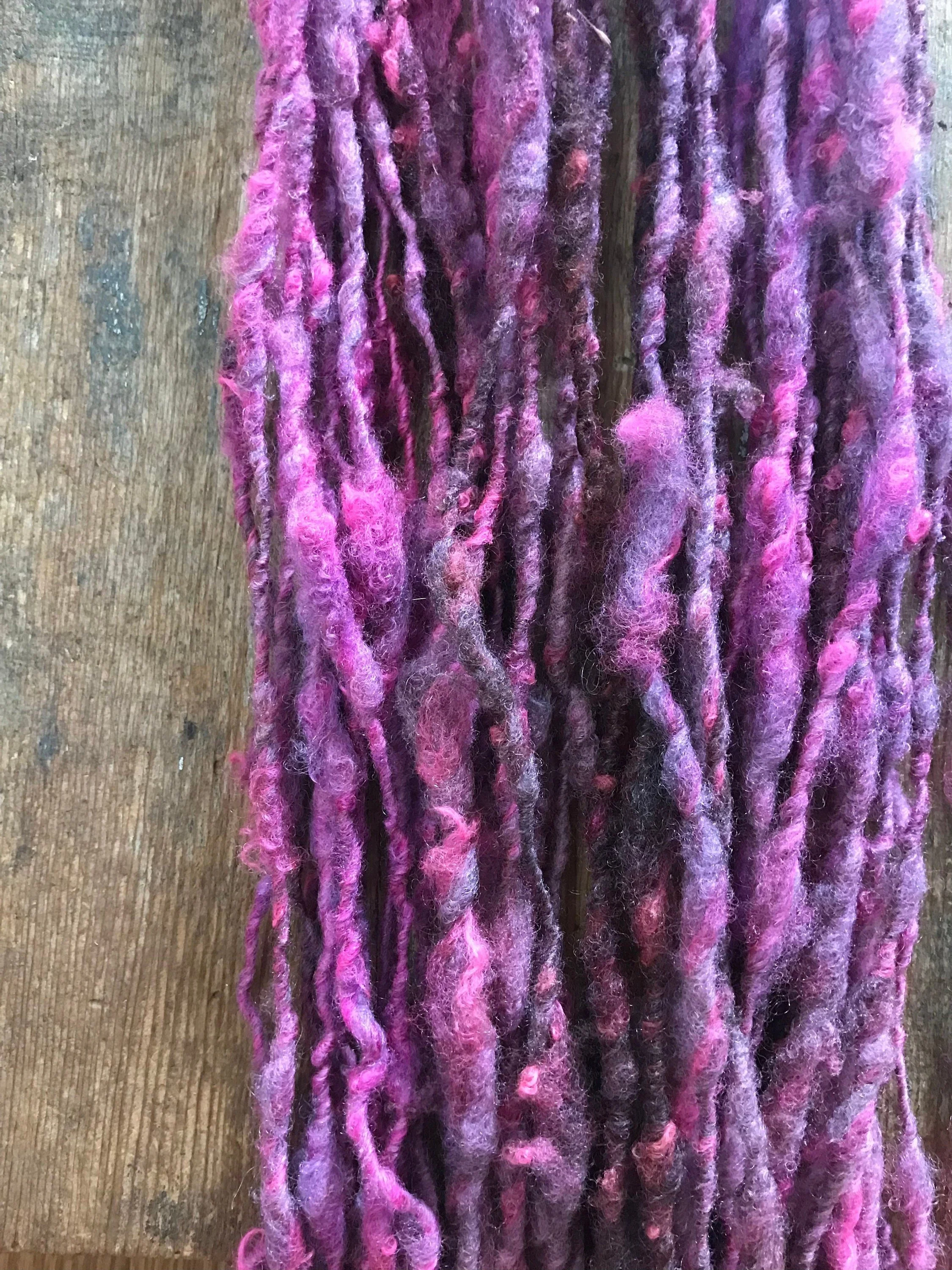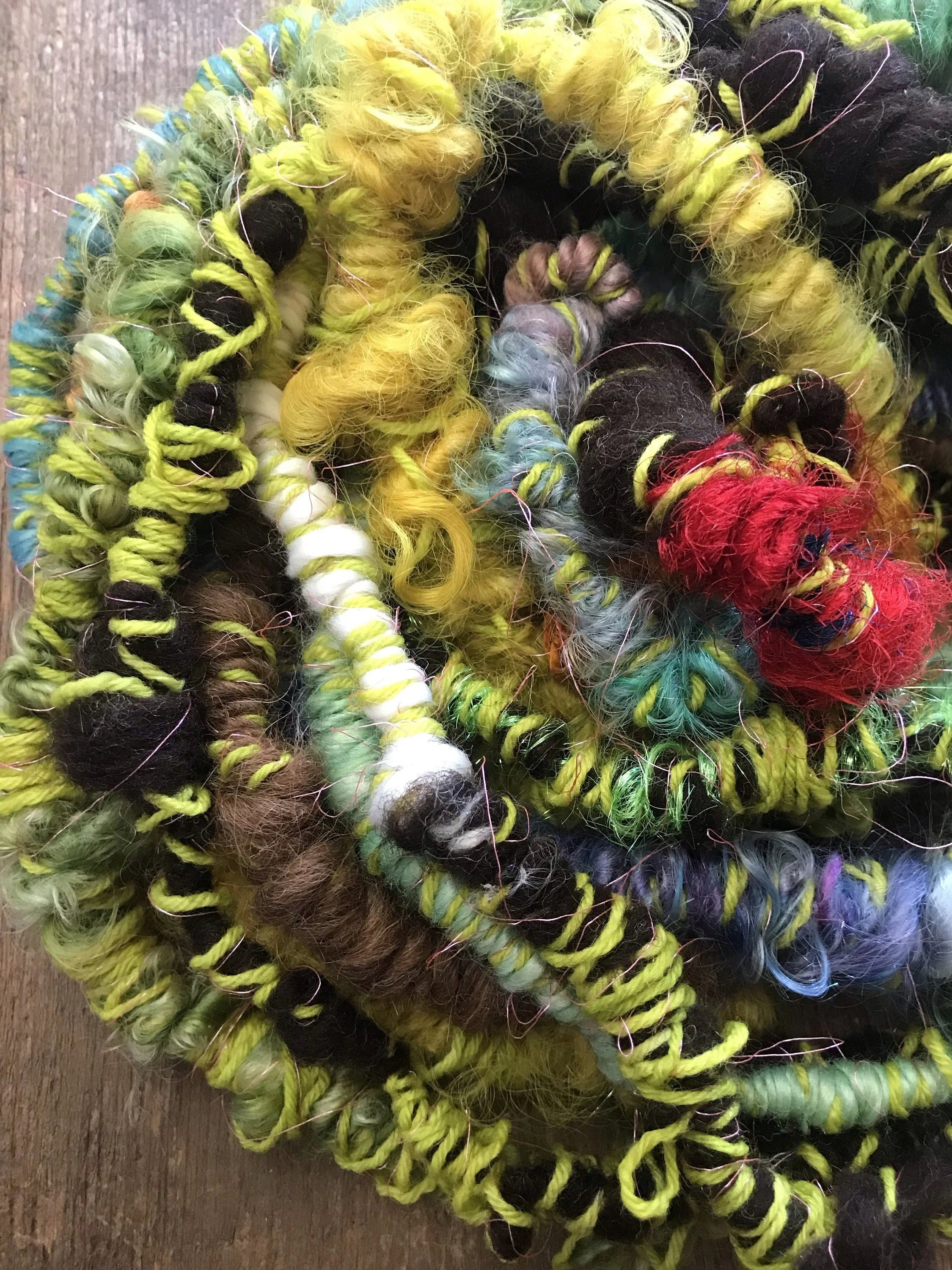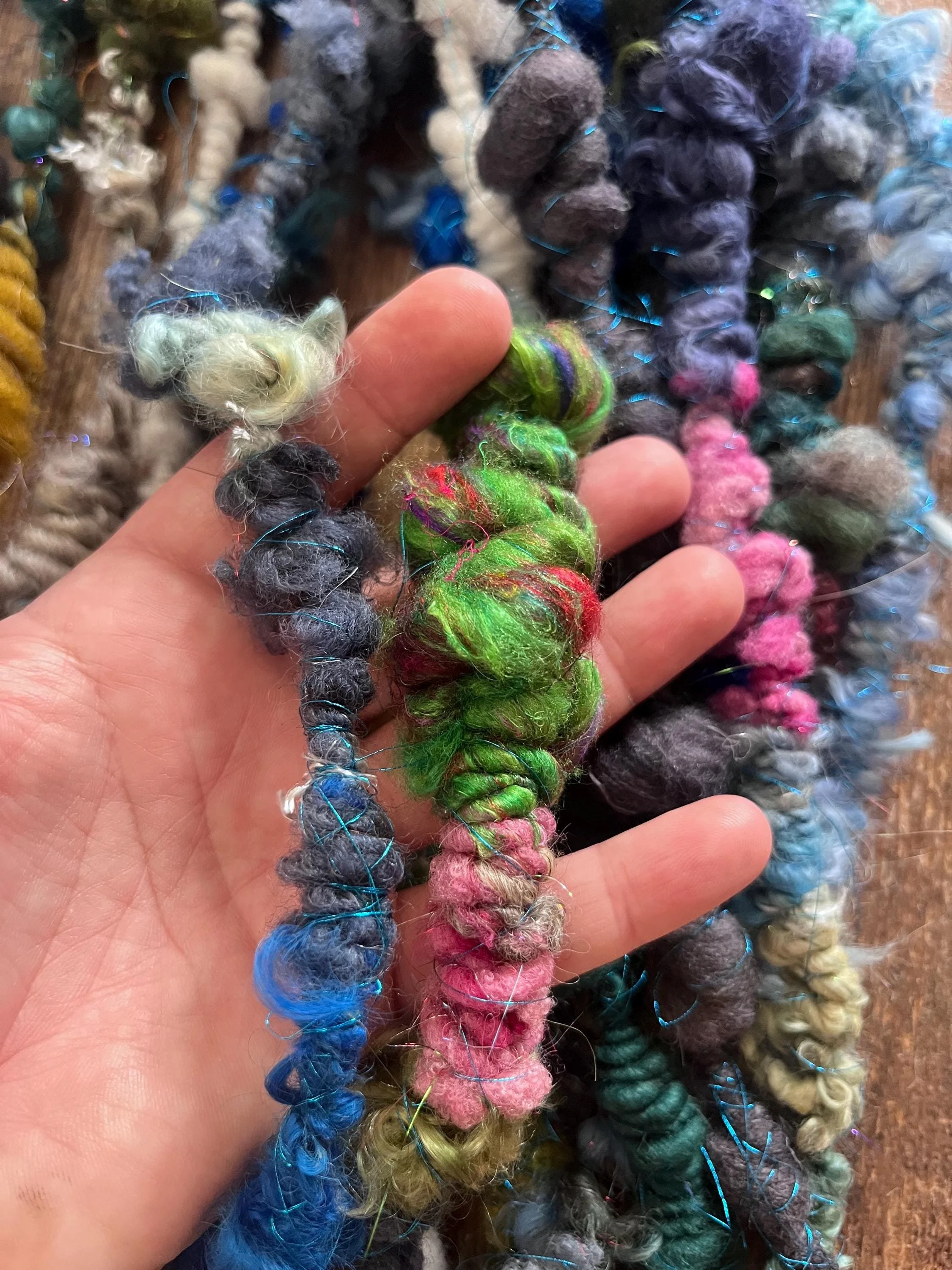 Twilight Carnival, handspun nubbly squishy chunky handspun Southdown wool art yarn