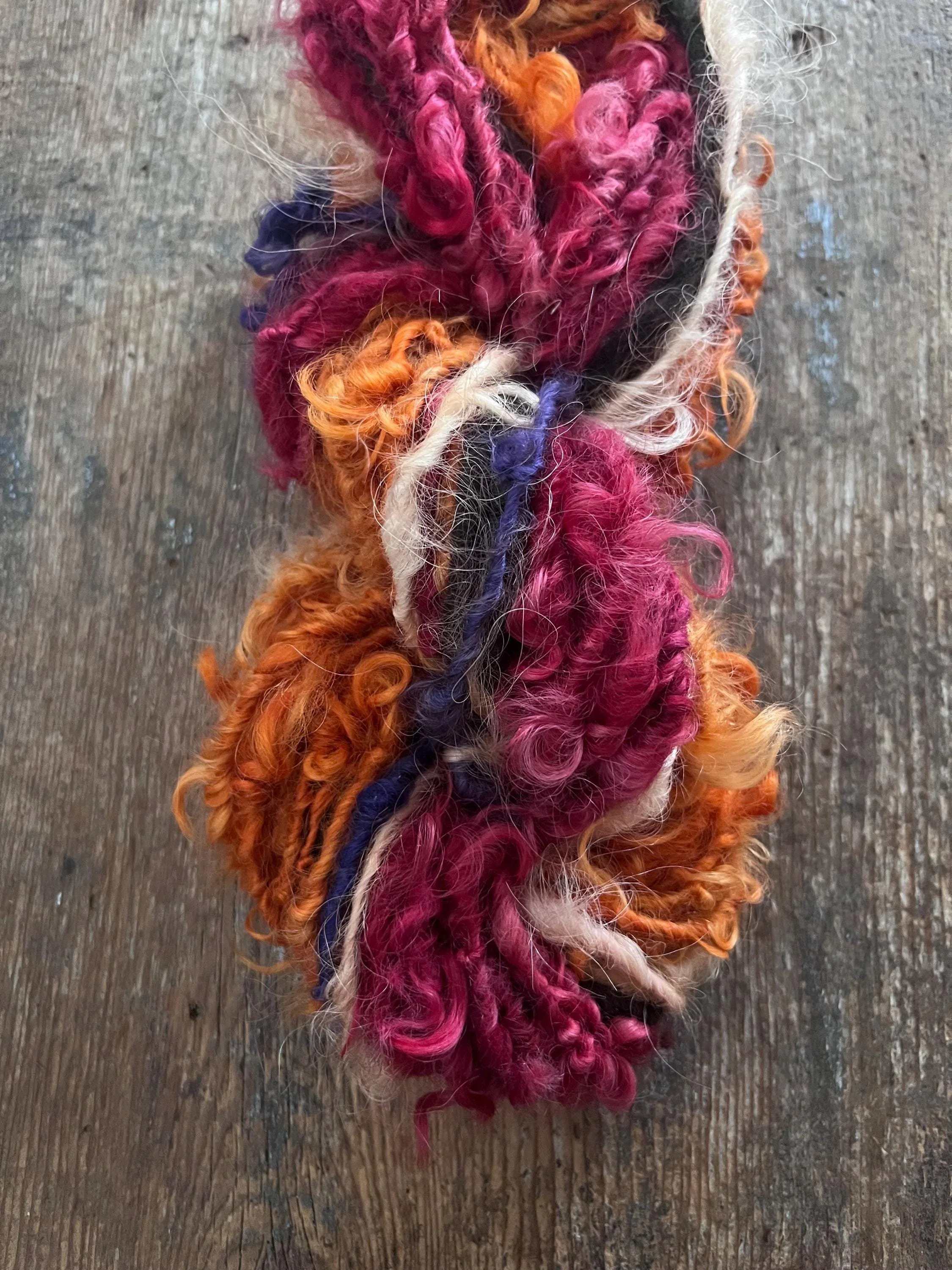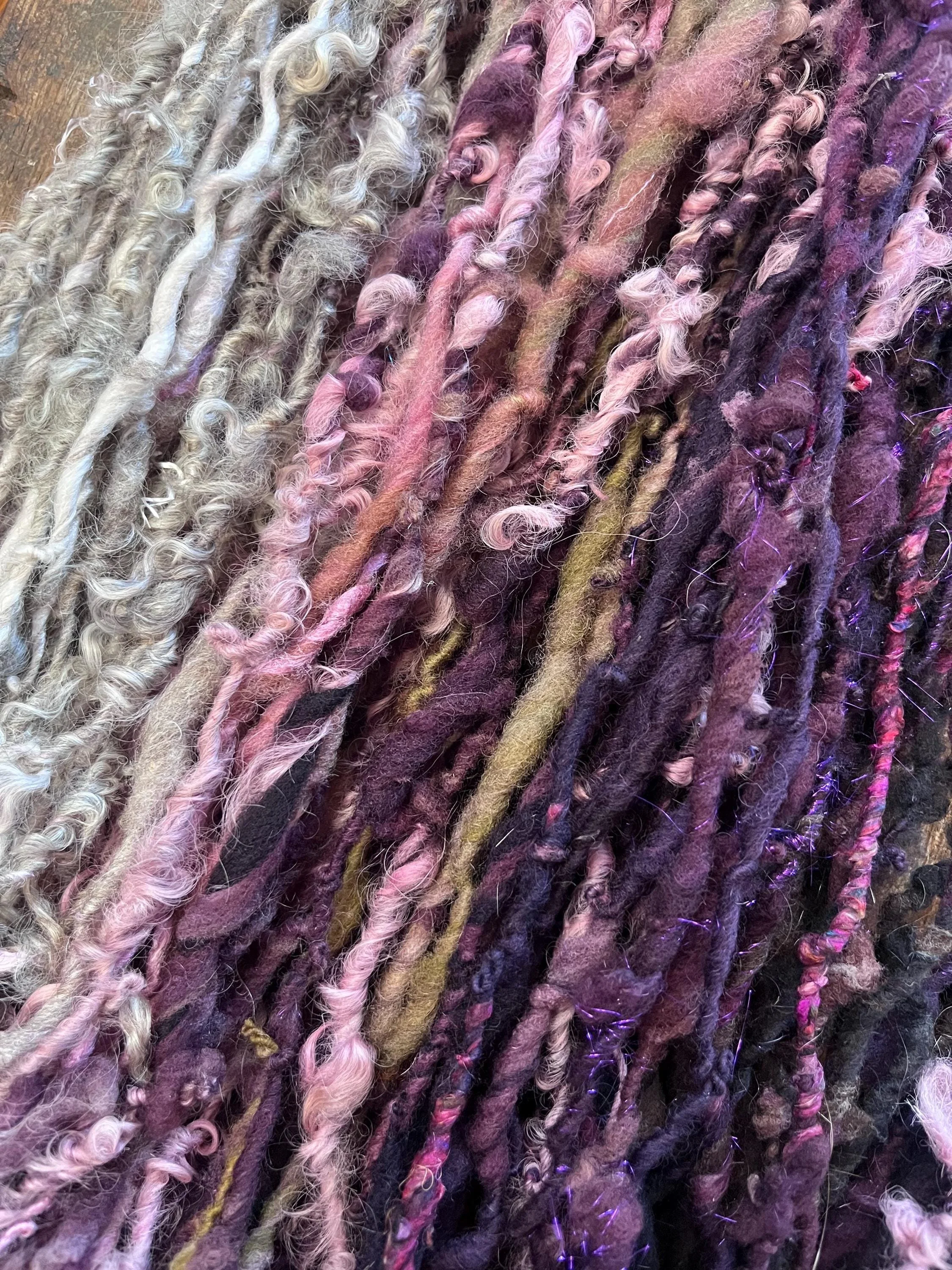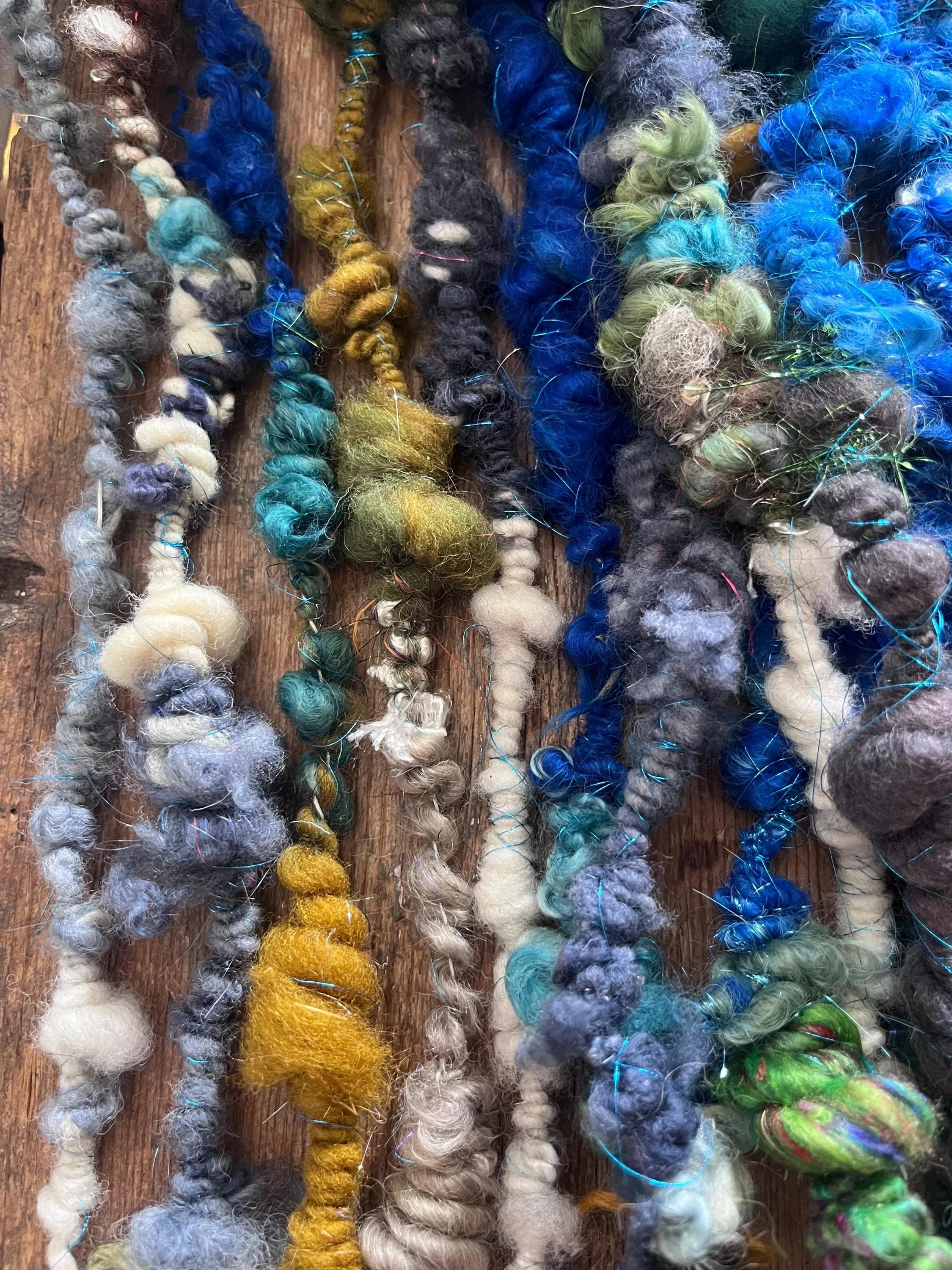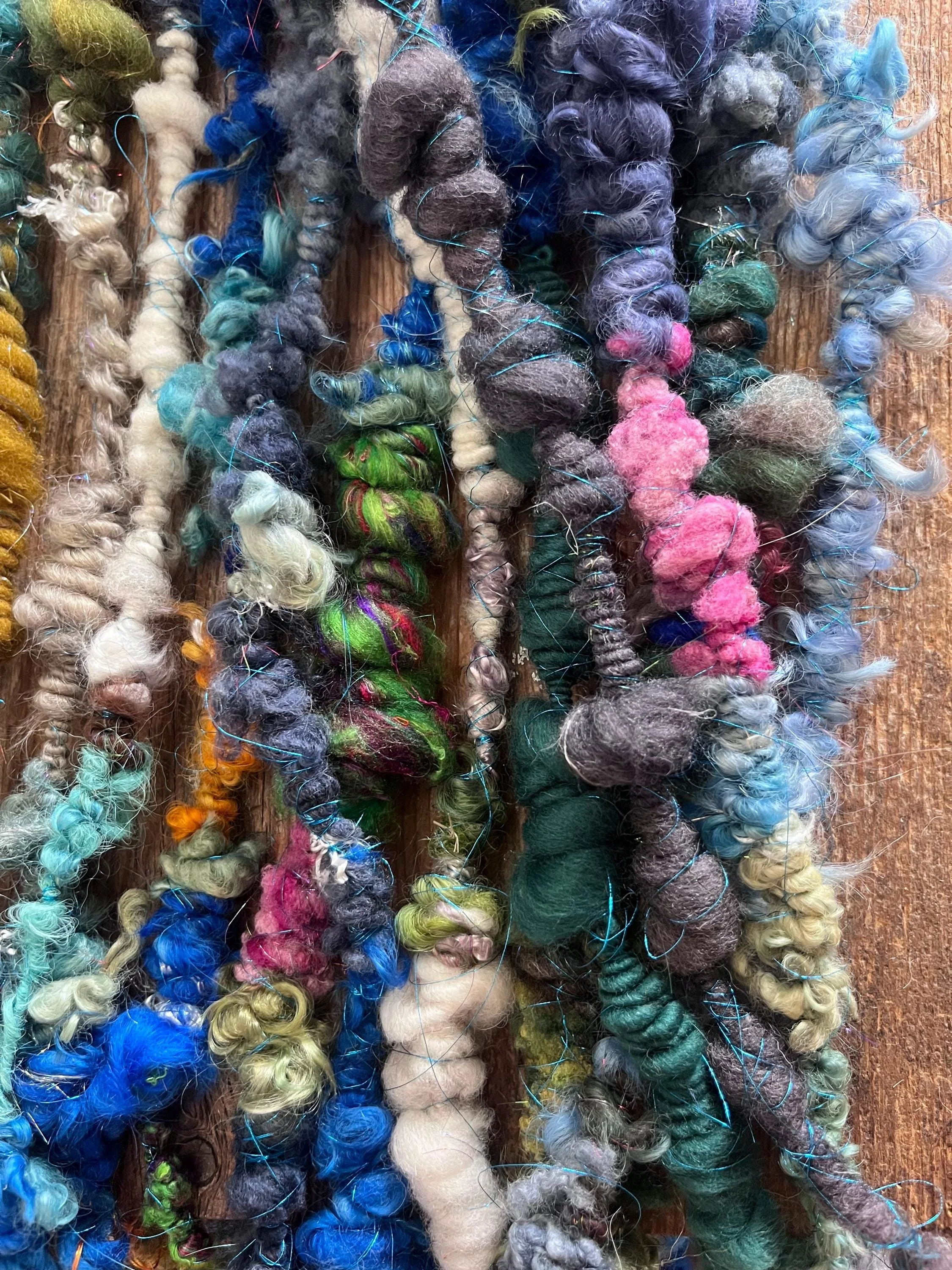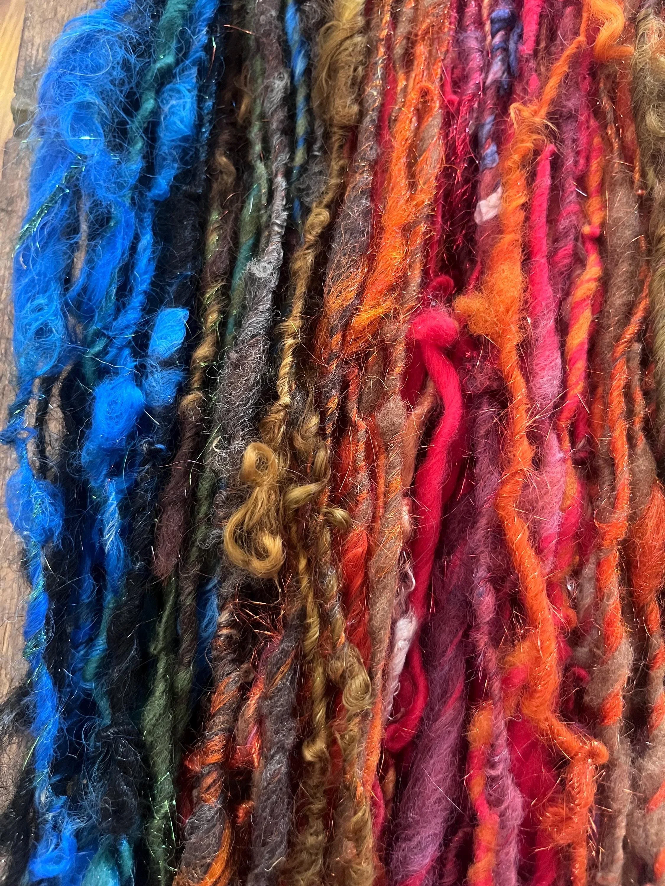 Twilight Carnival, handspun nubbly squishy chunky handspun Southdown wool art yarn