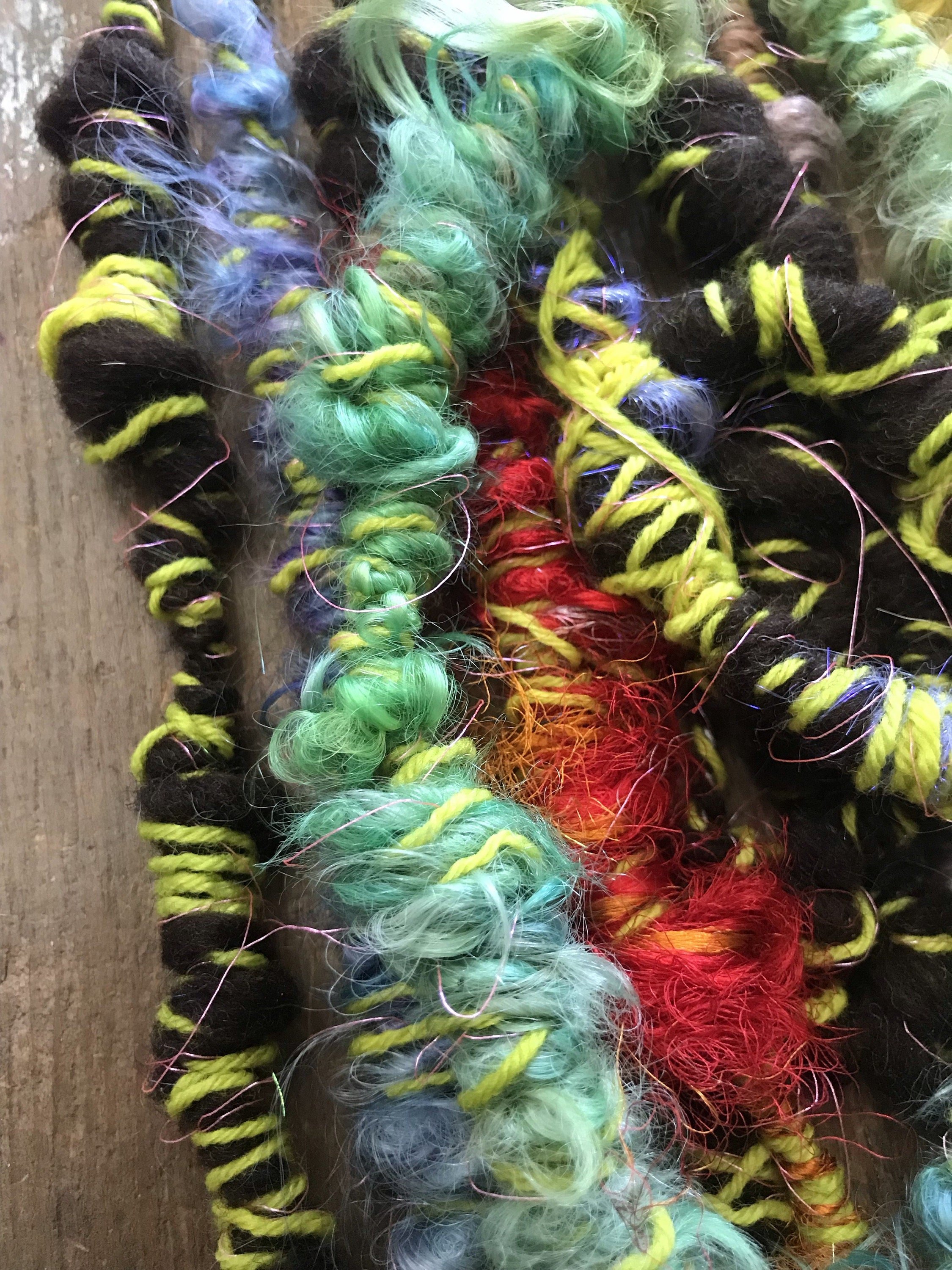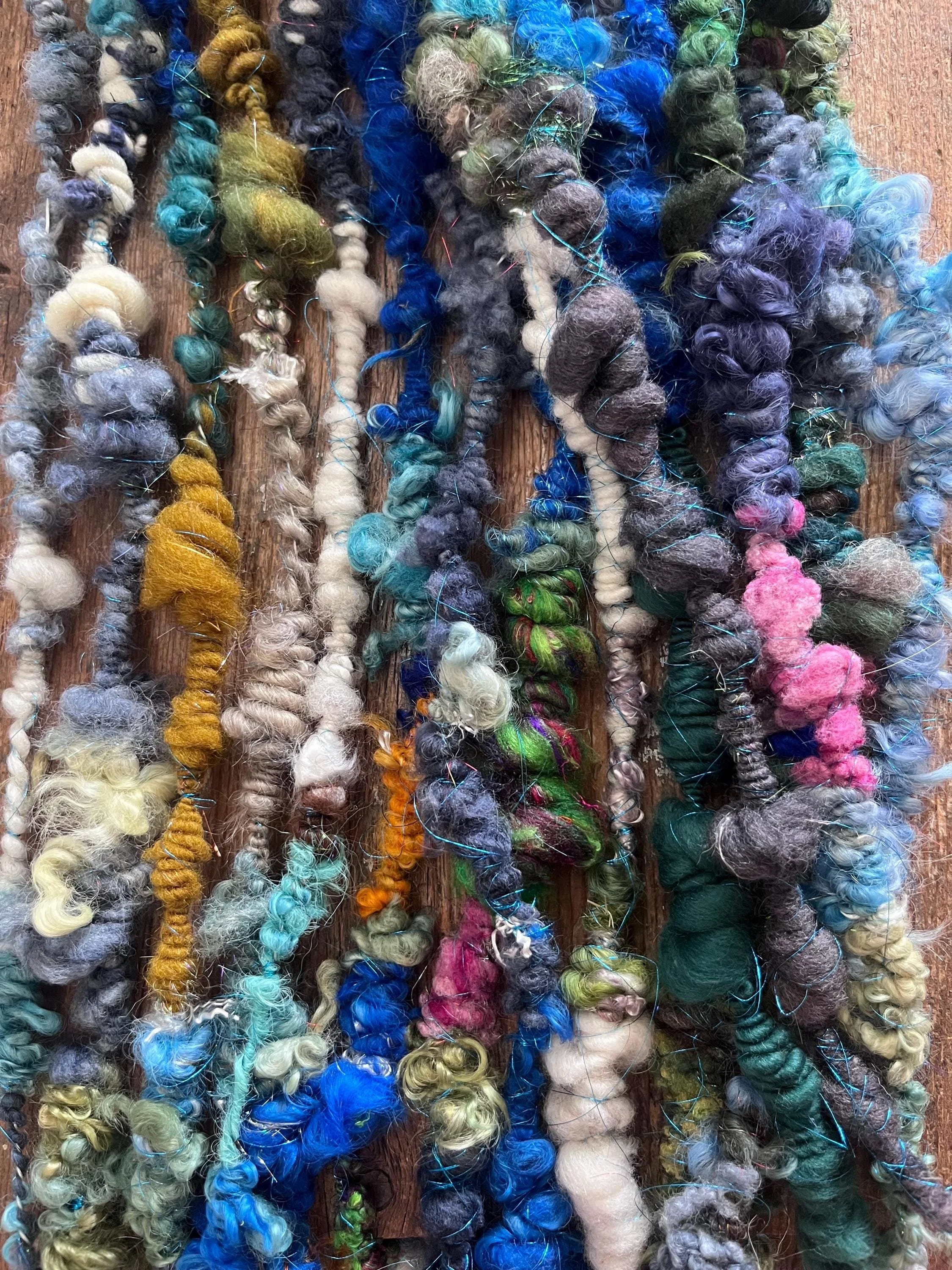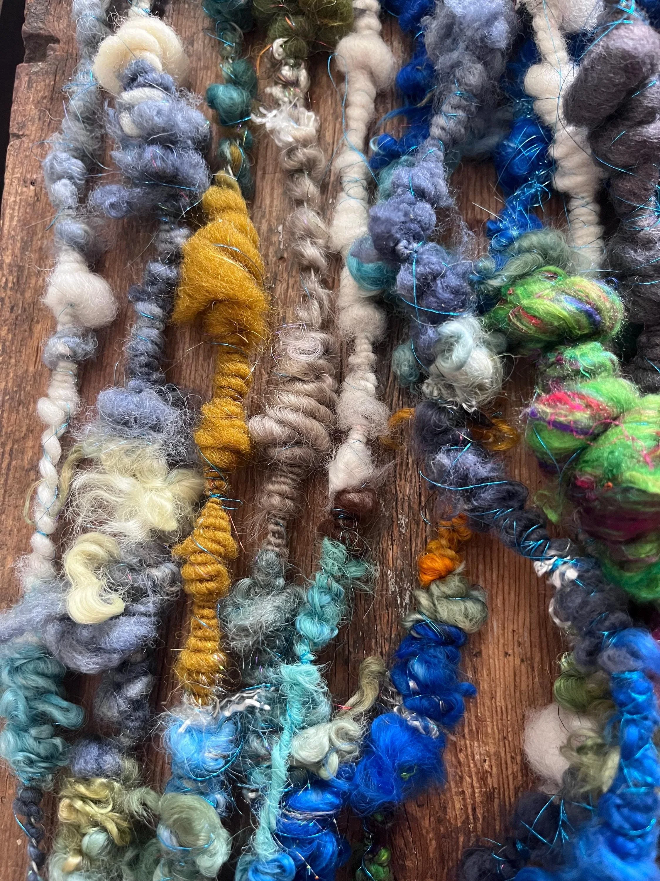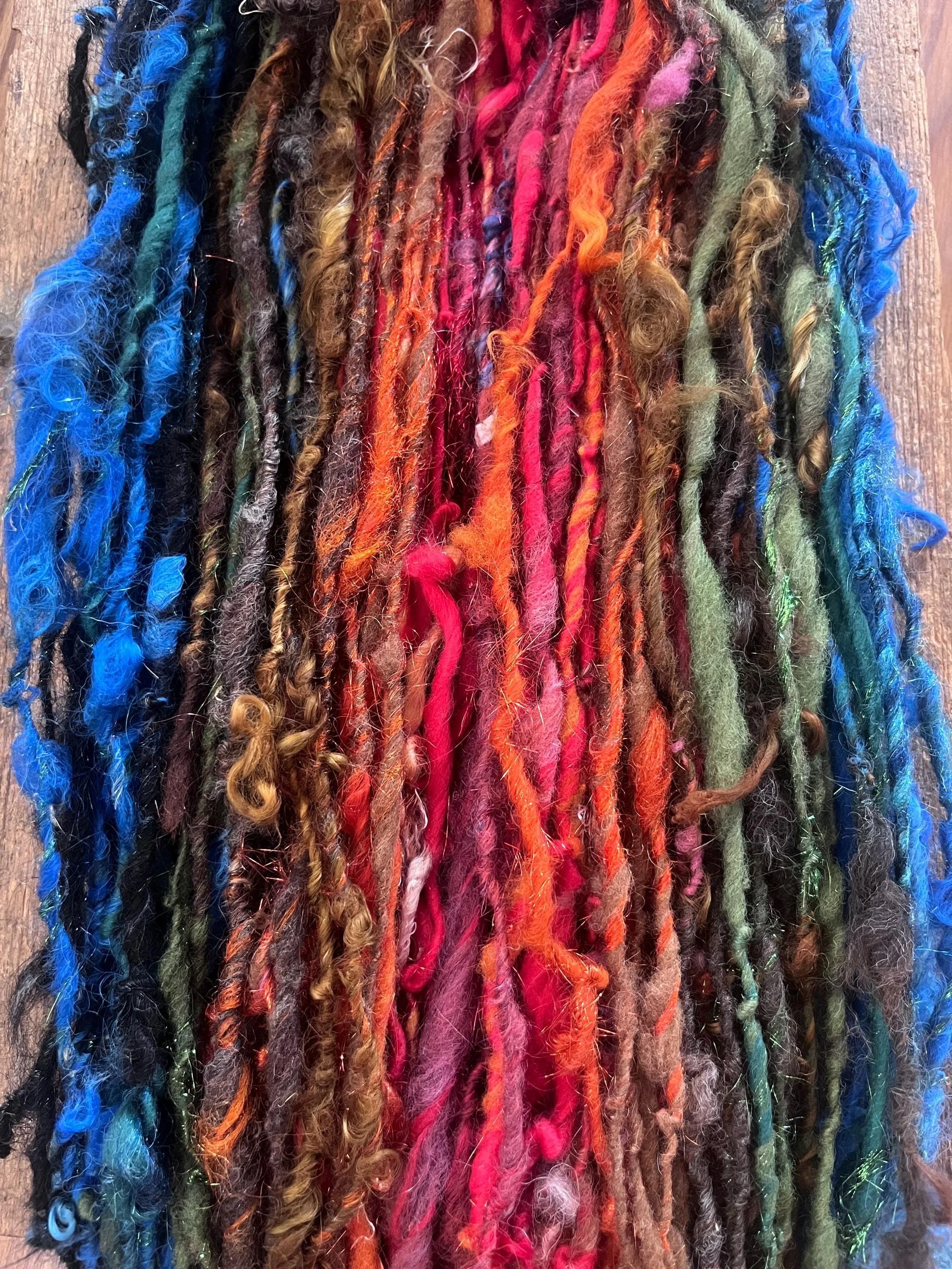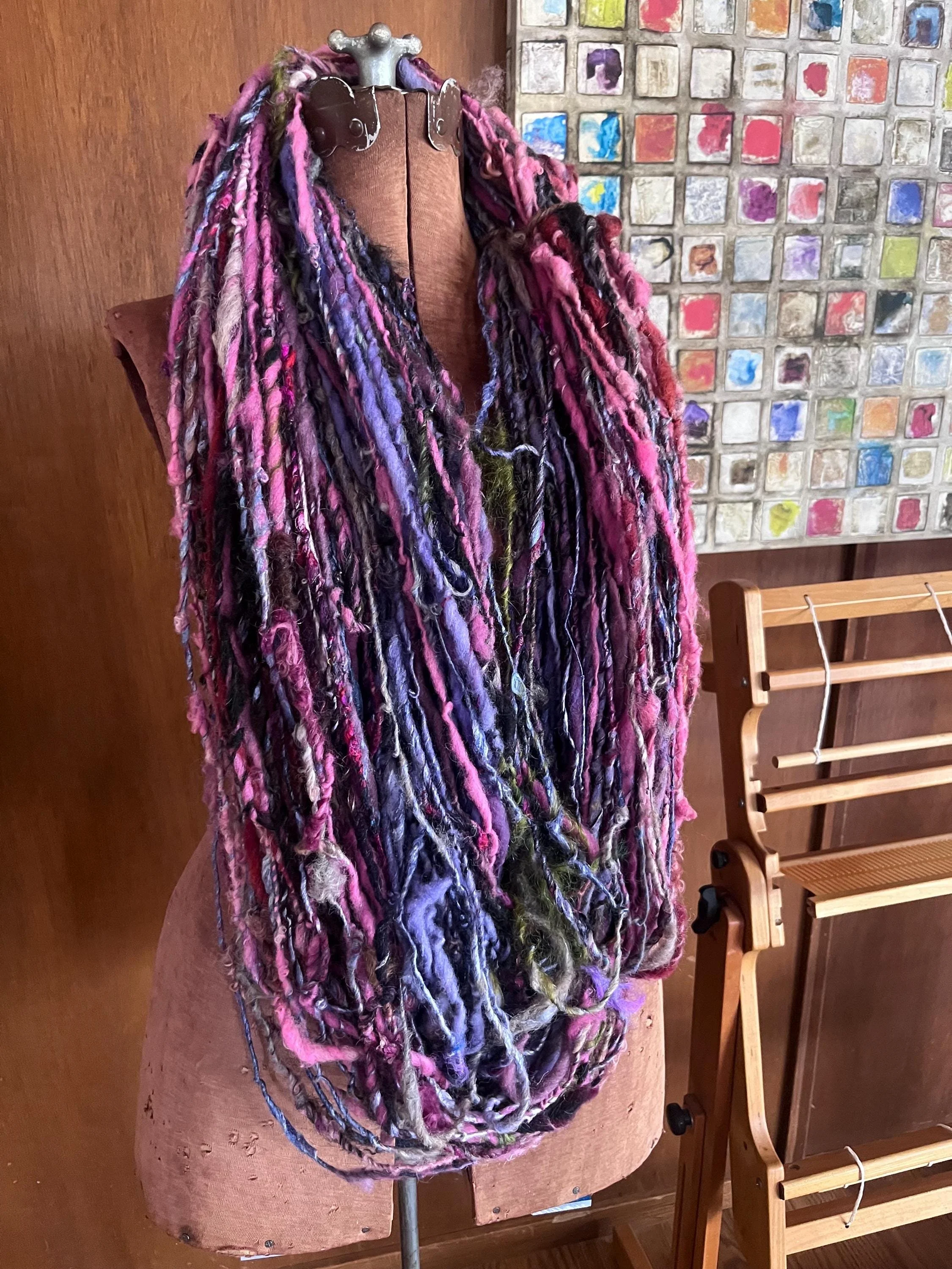 Twilight Carnival, handspun nubbly squishy chunky handspun Southdown wool art yarn