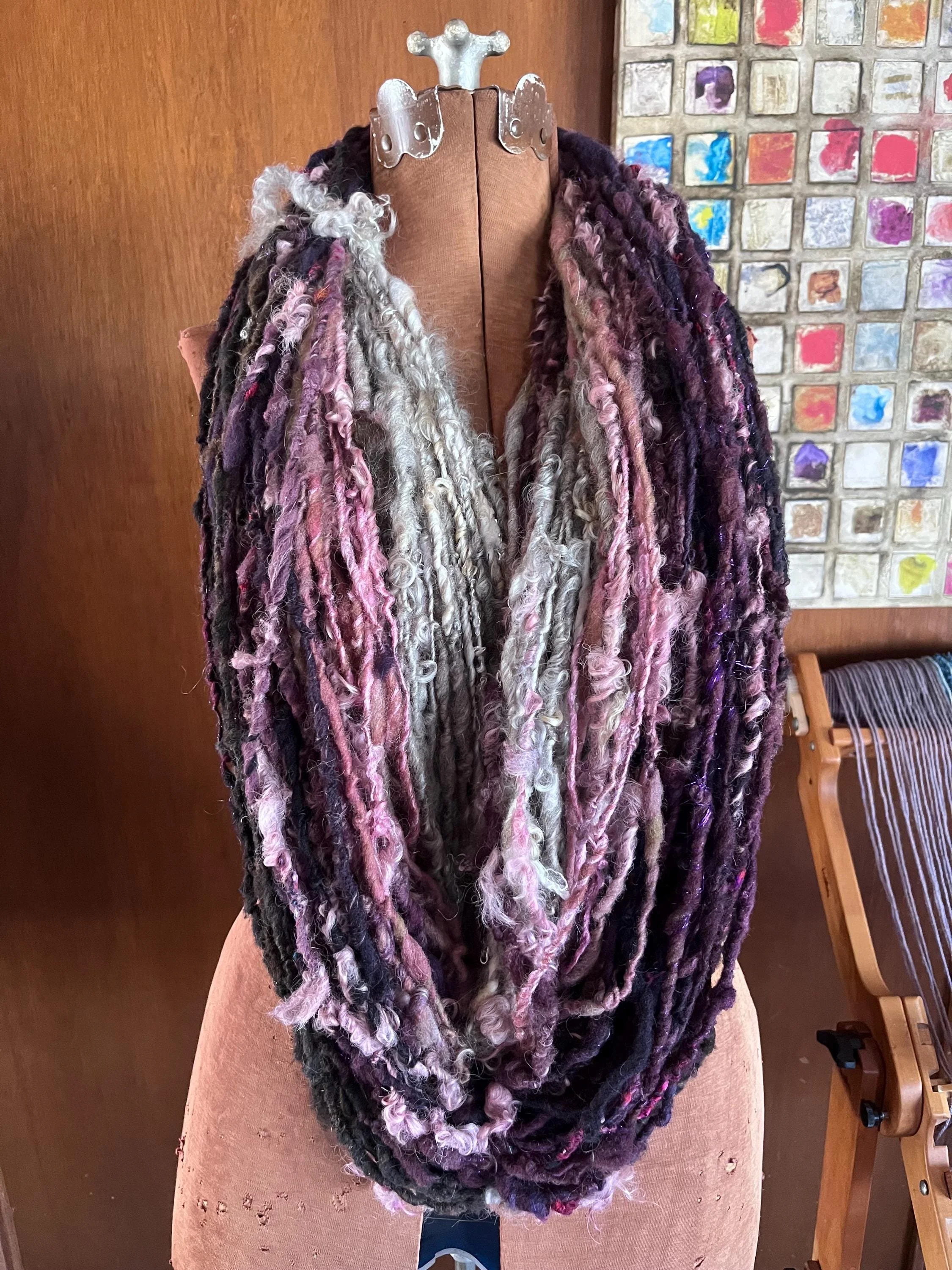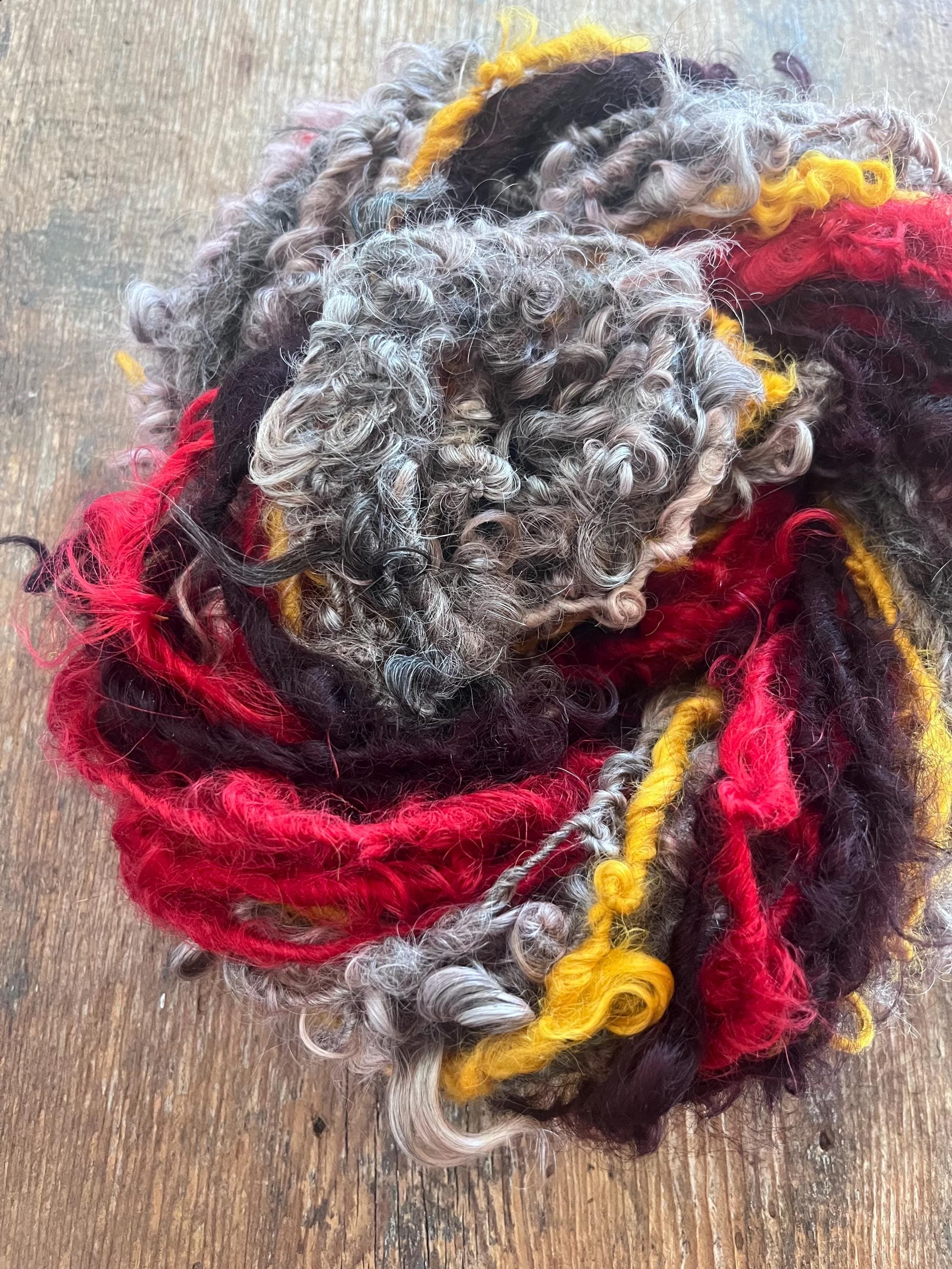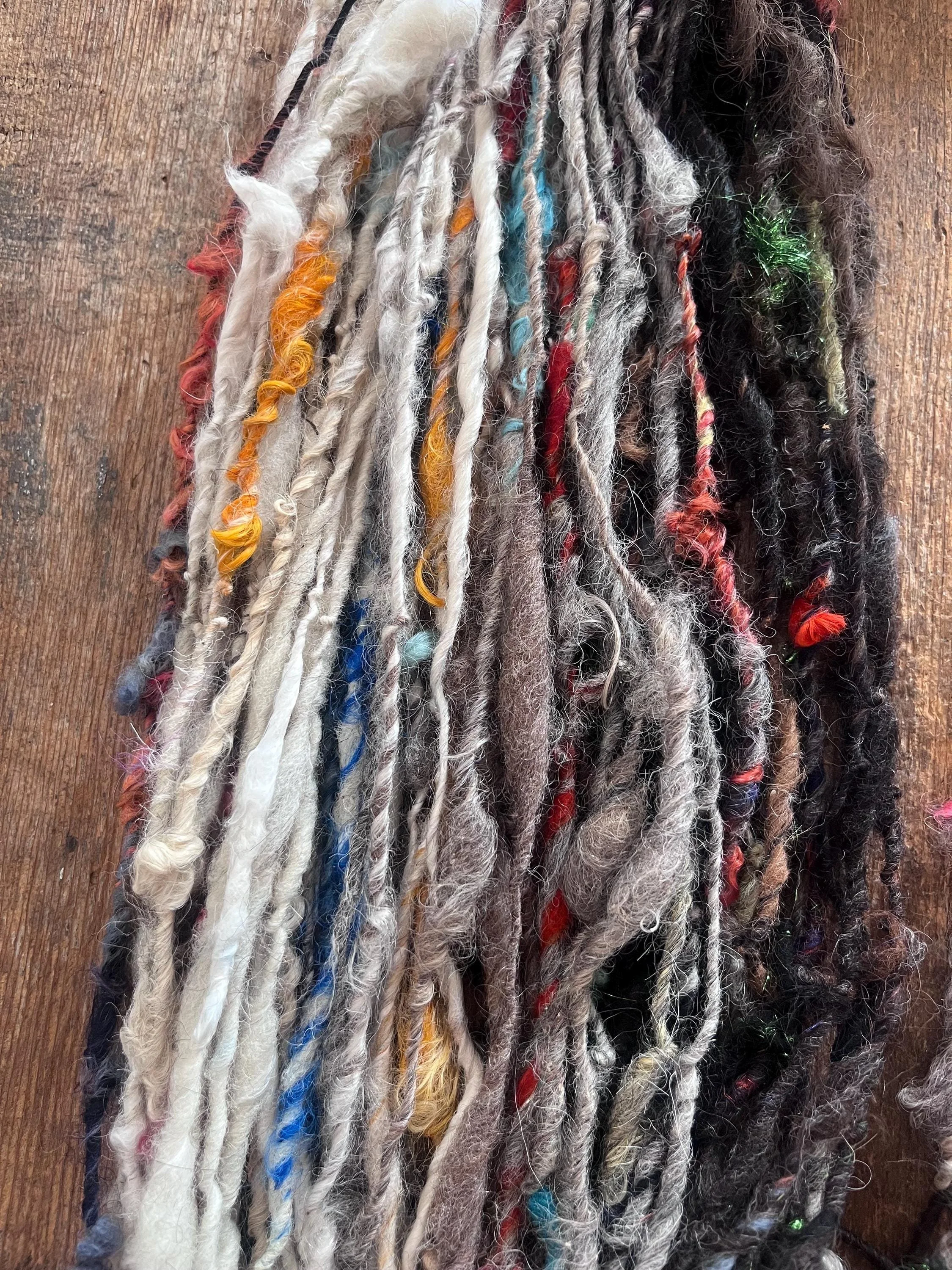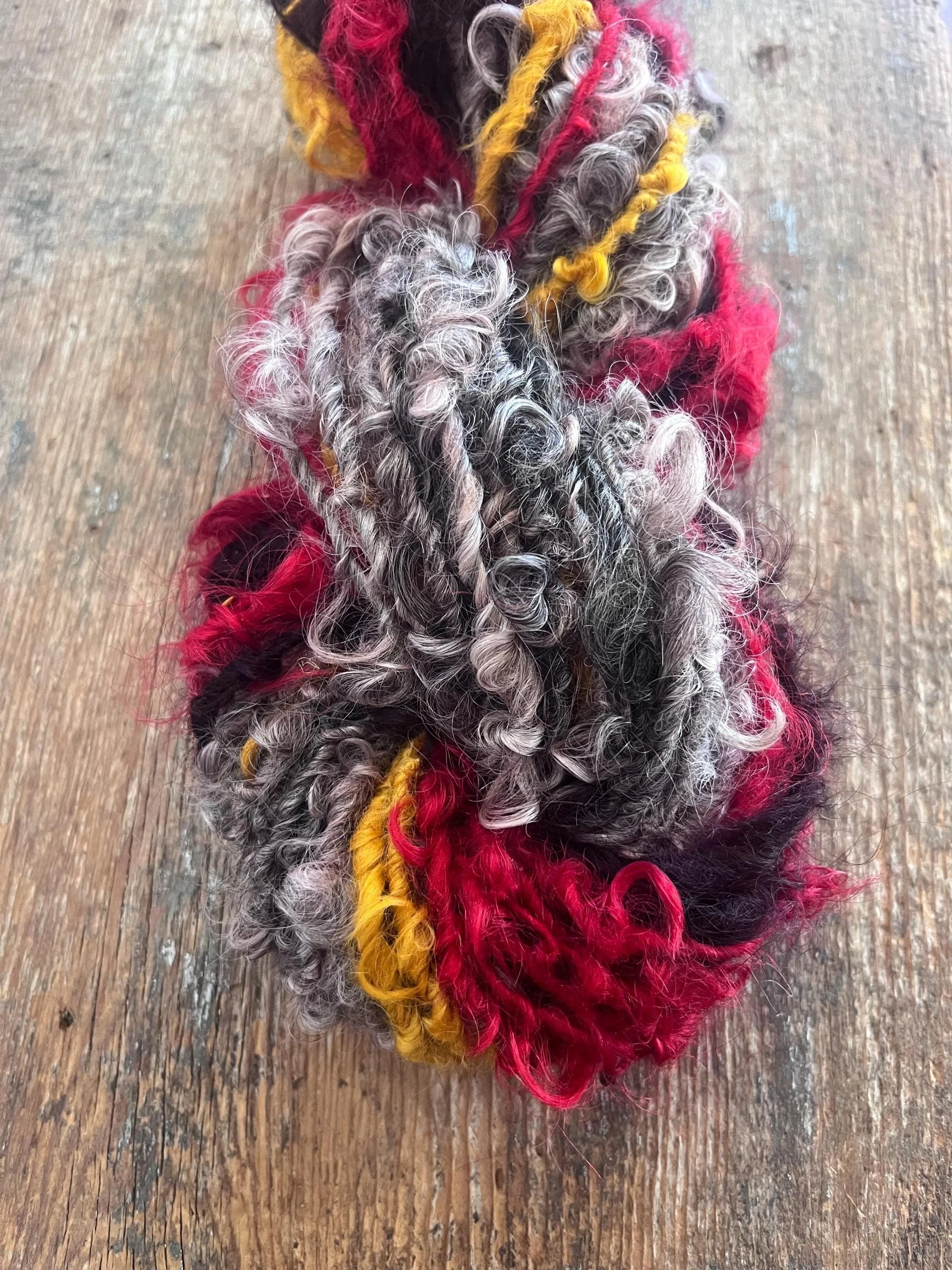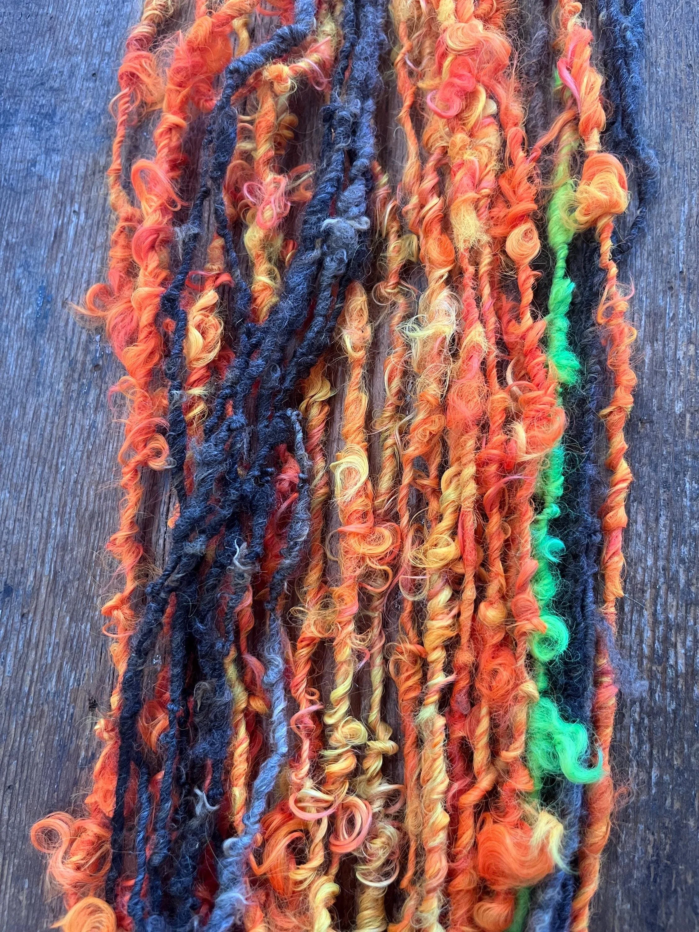 Twilight Carnival, handspun nubbly squishy chunky handspun Southdown wool art yarn