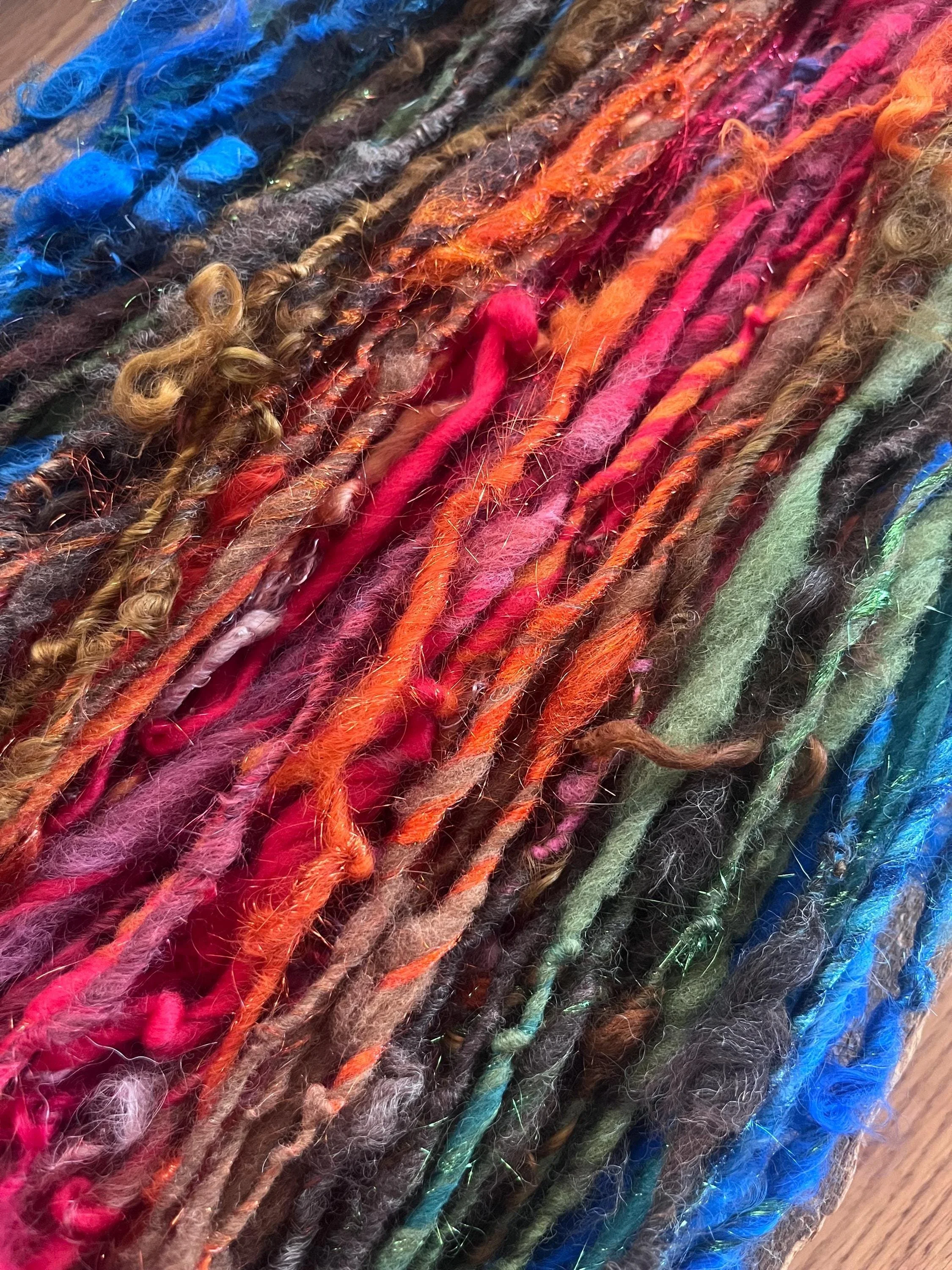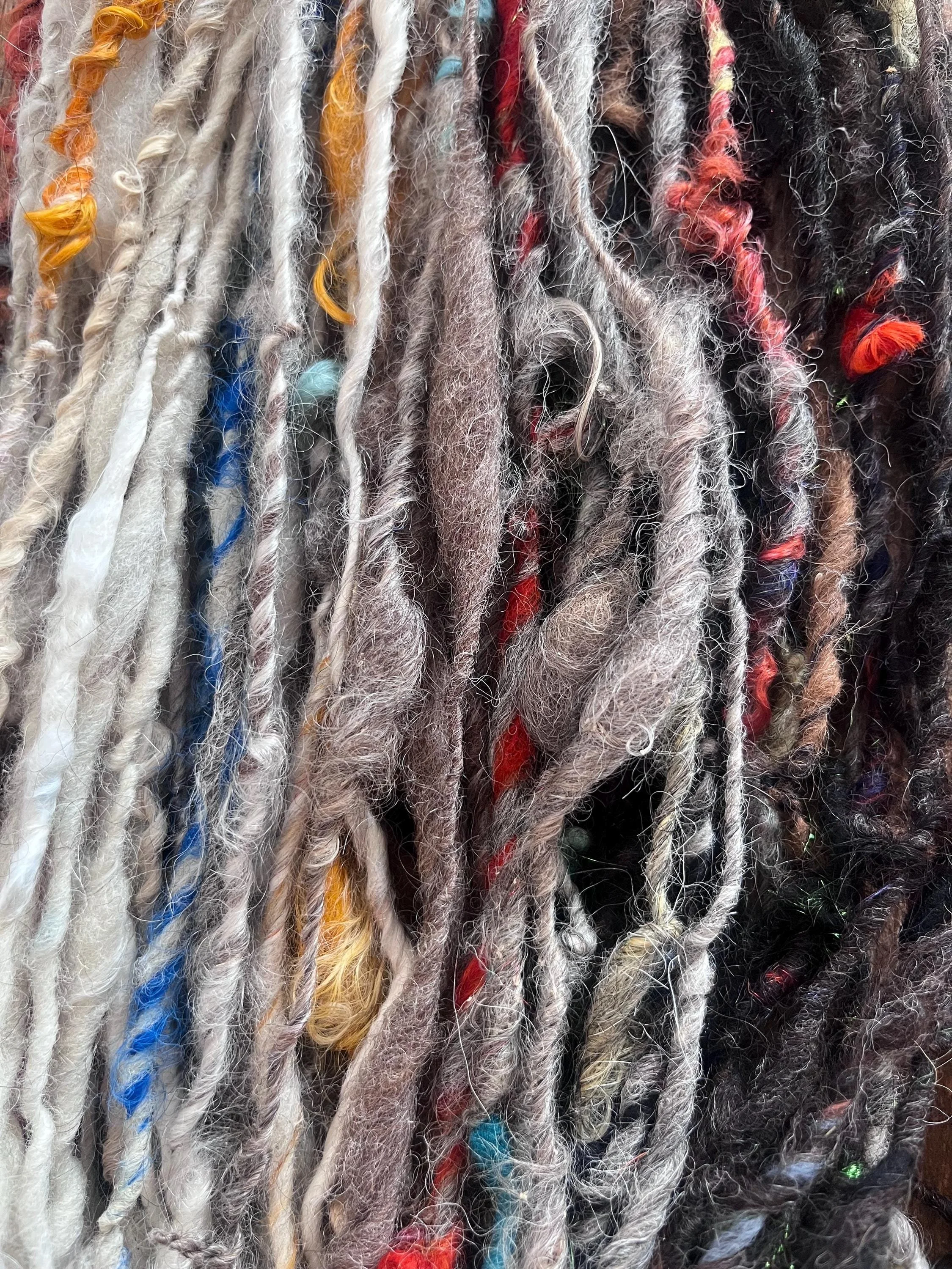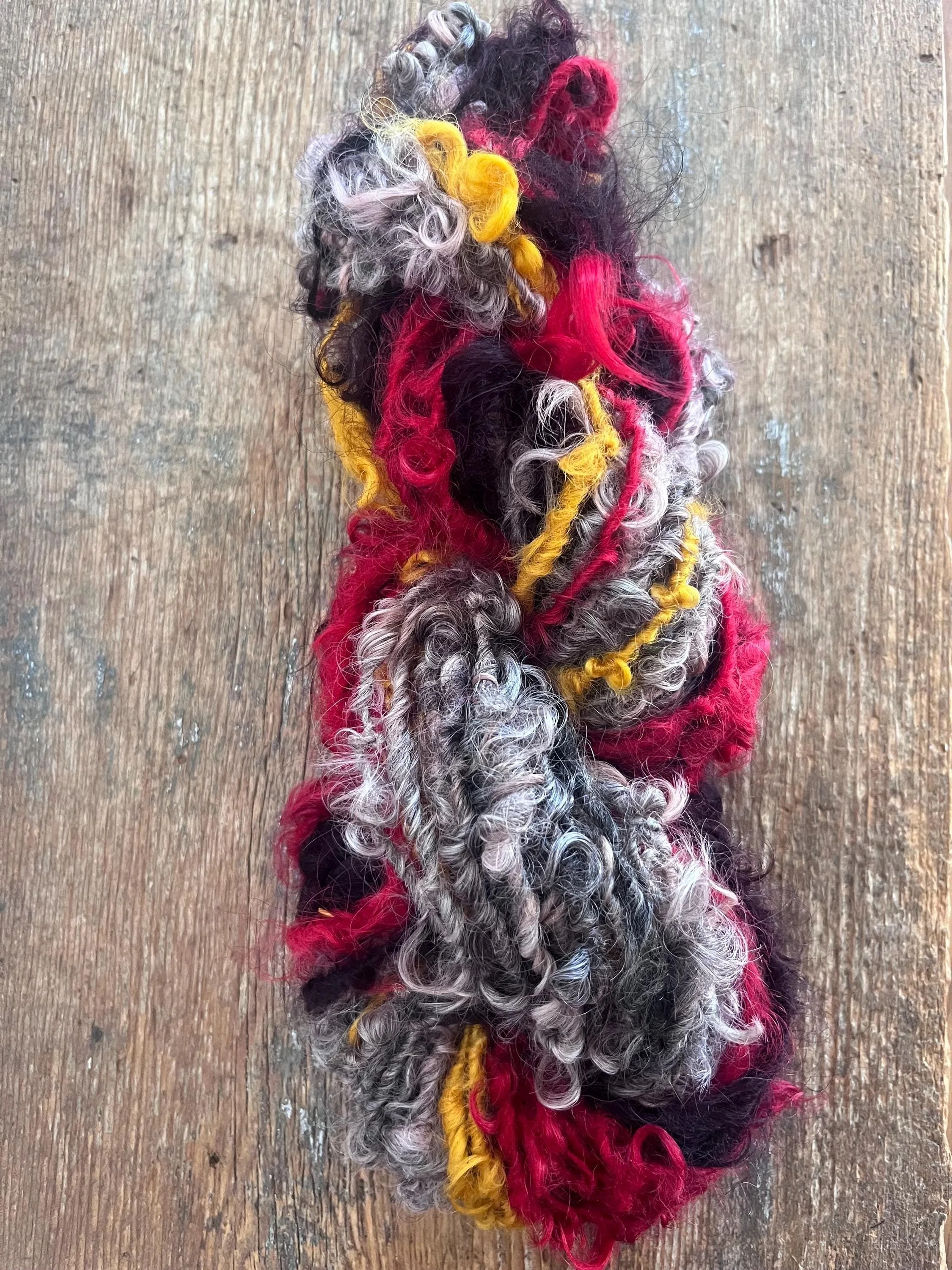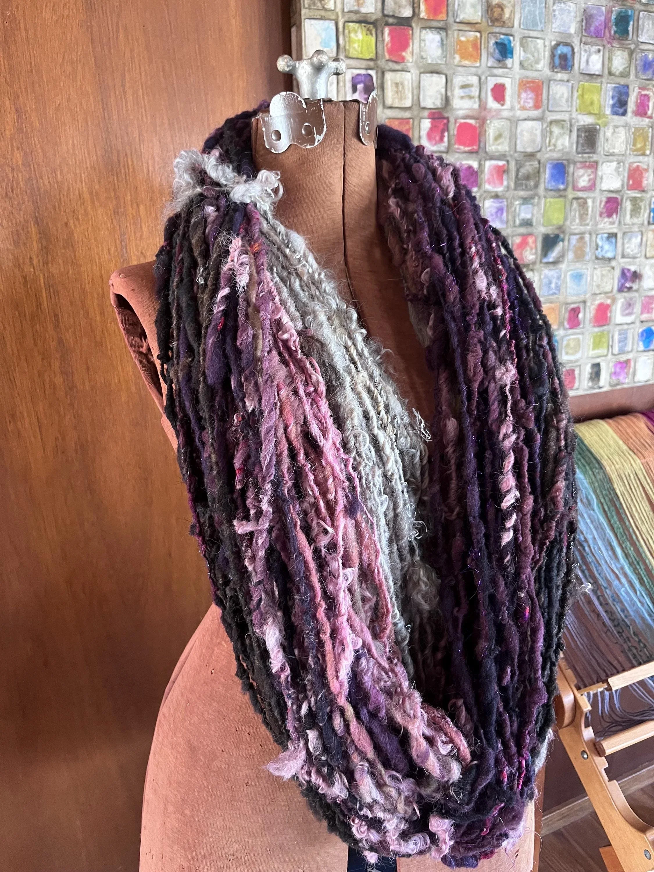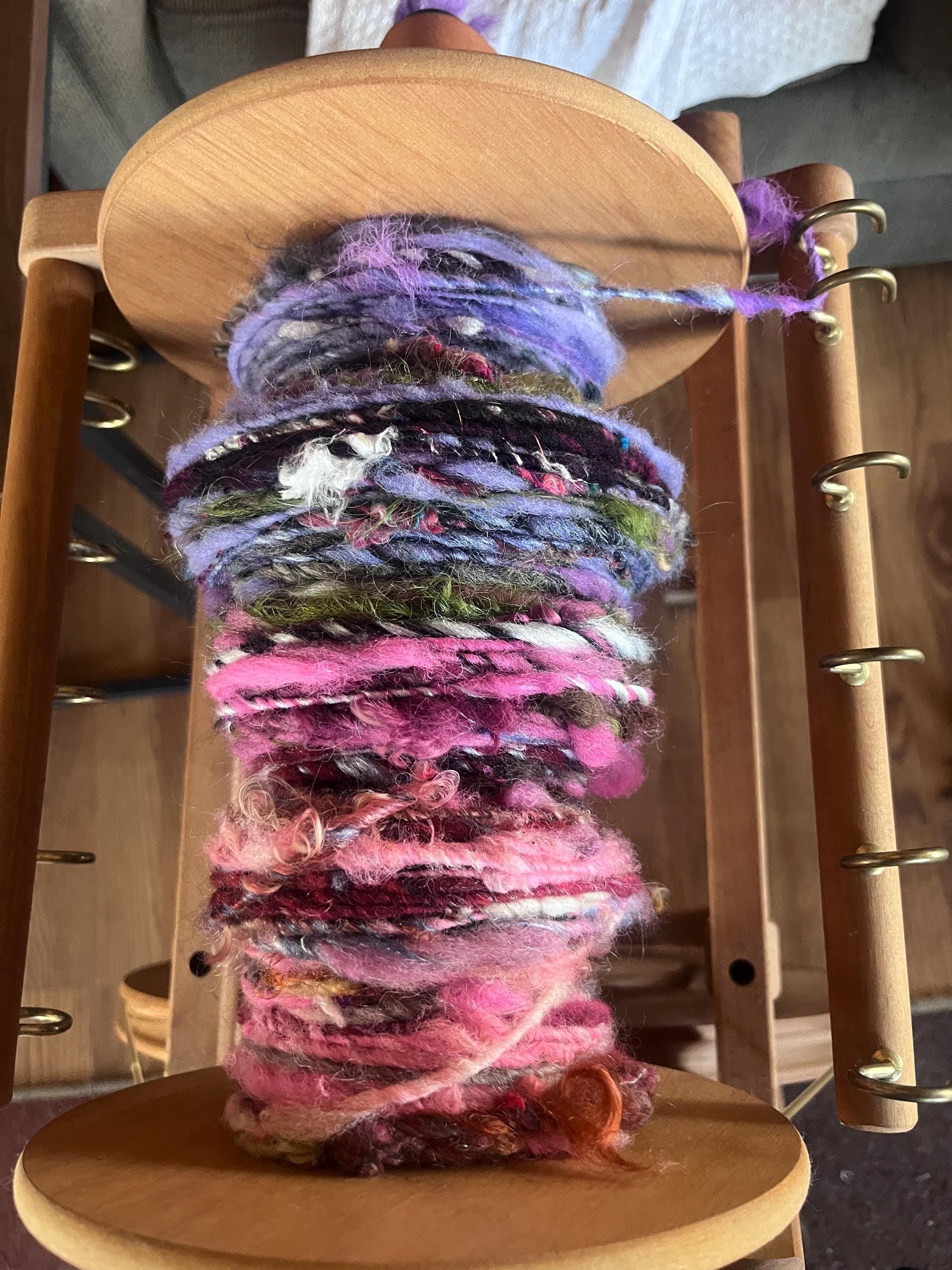 Twilight Carnival, handspun nubbly squishy chunky handspun Southdown wool art yarn
