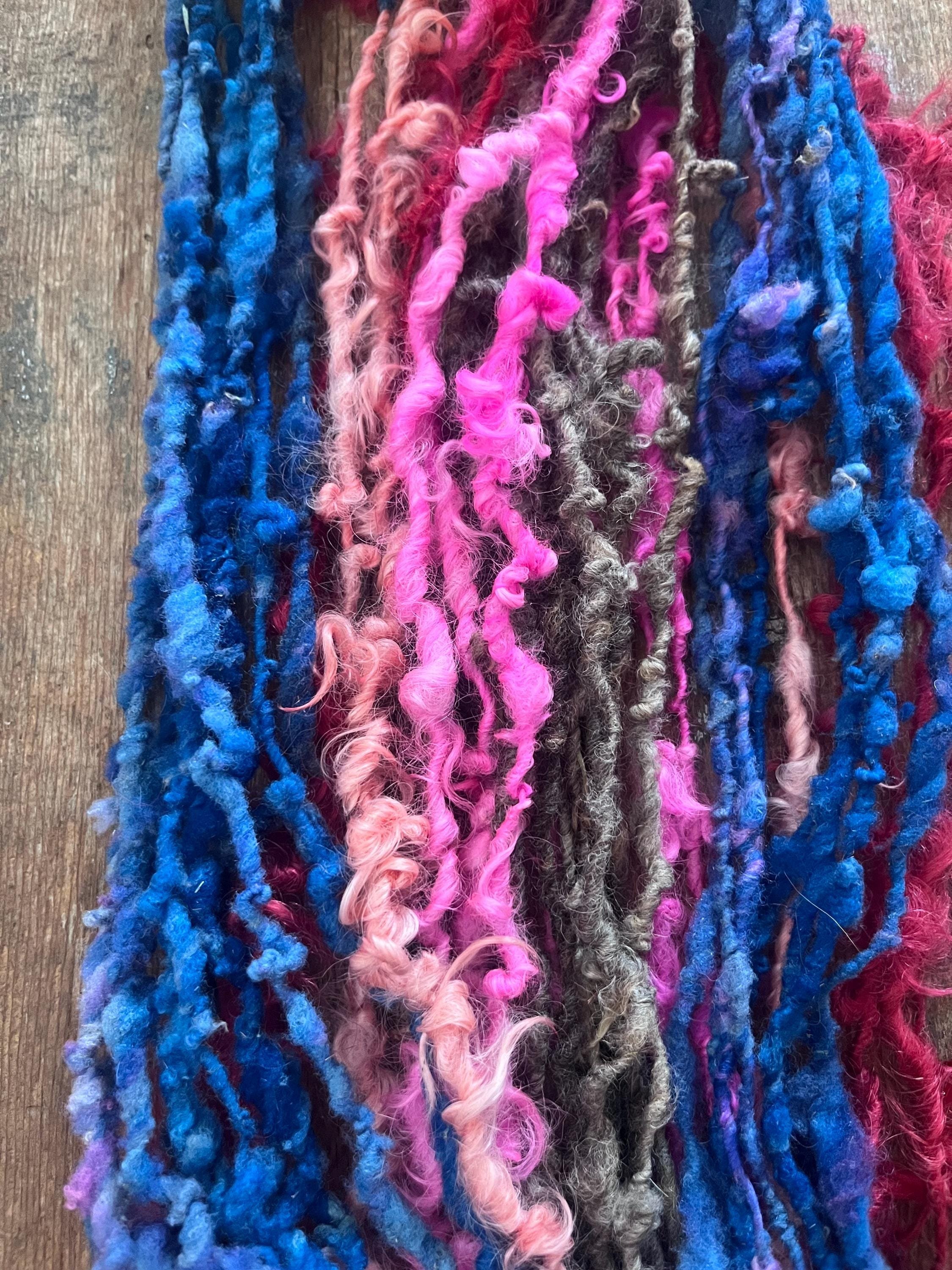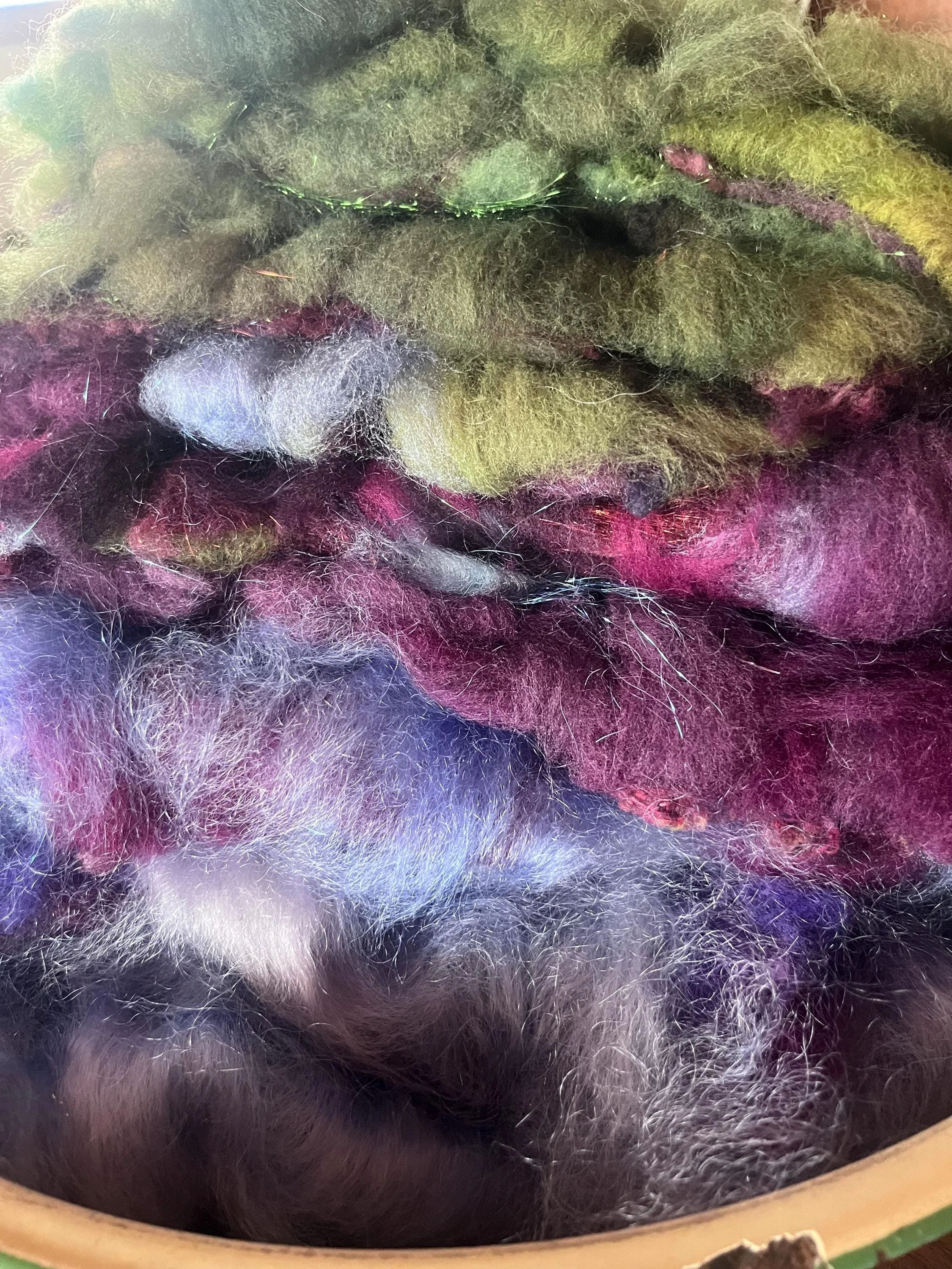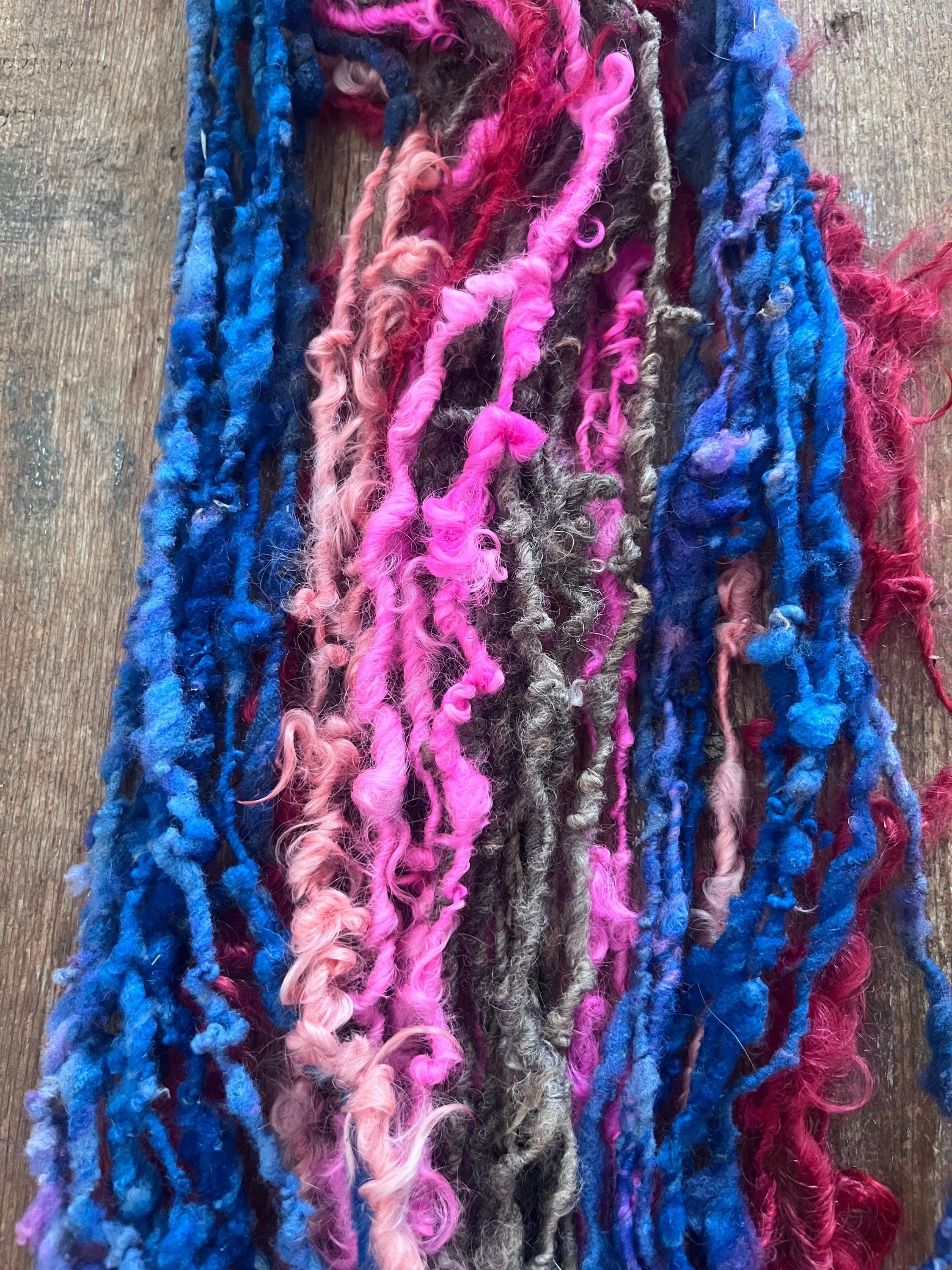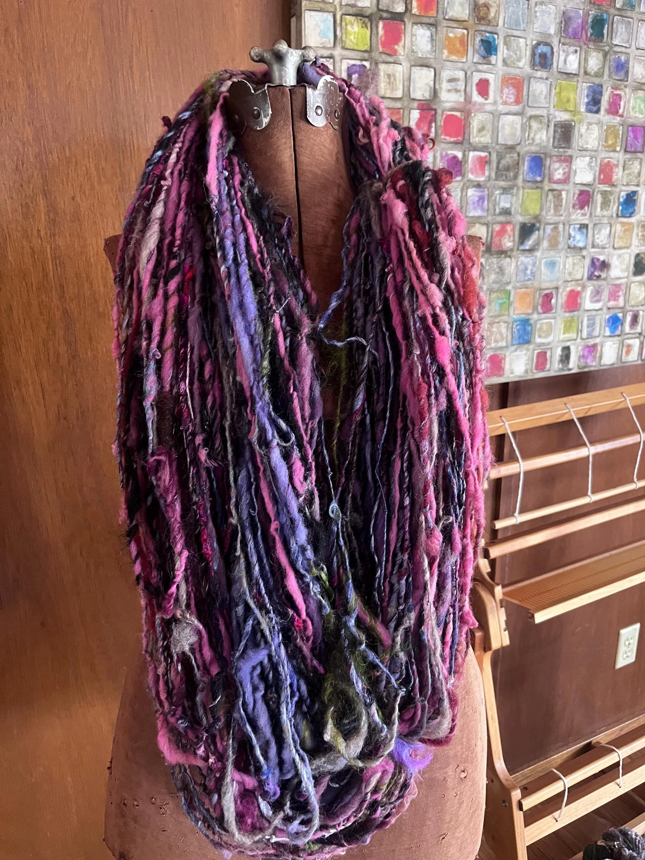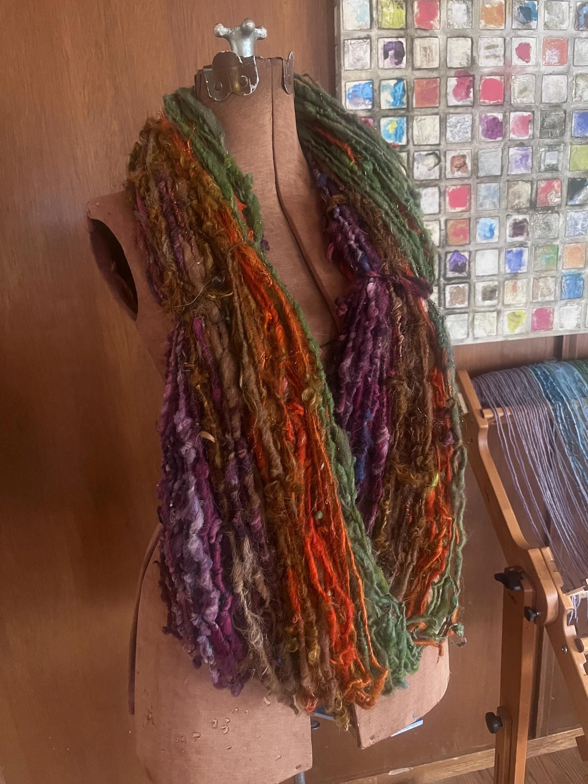 Twilight Carnival, handspun nubbly squishy chunky handspun Southdown wool art yarn