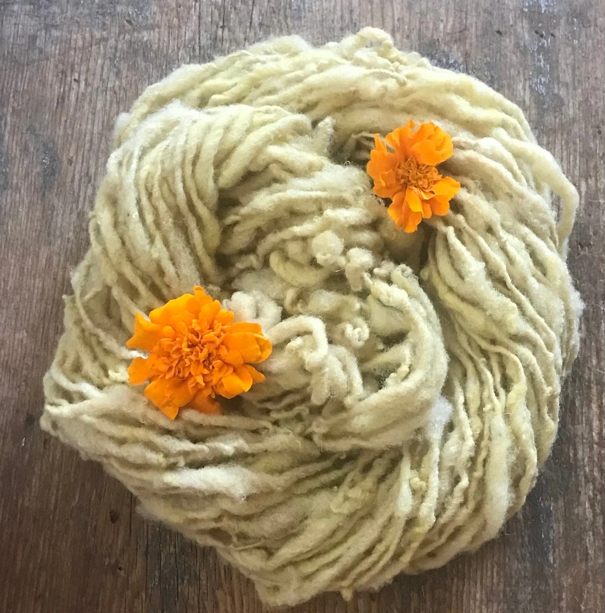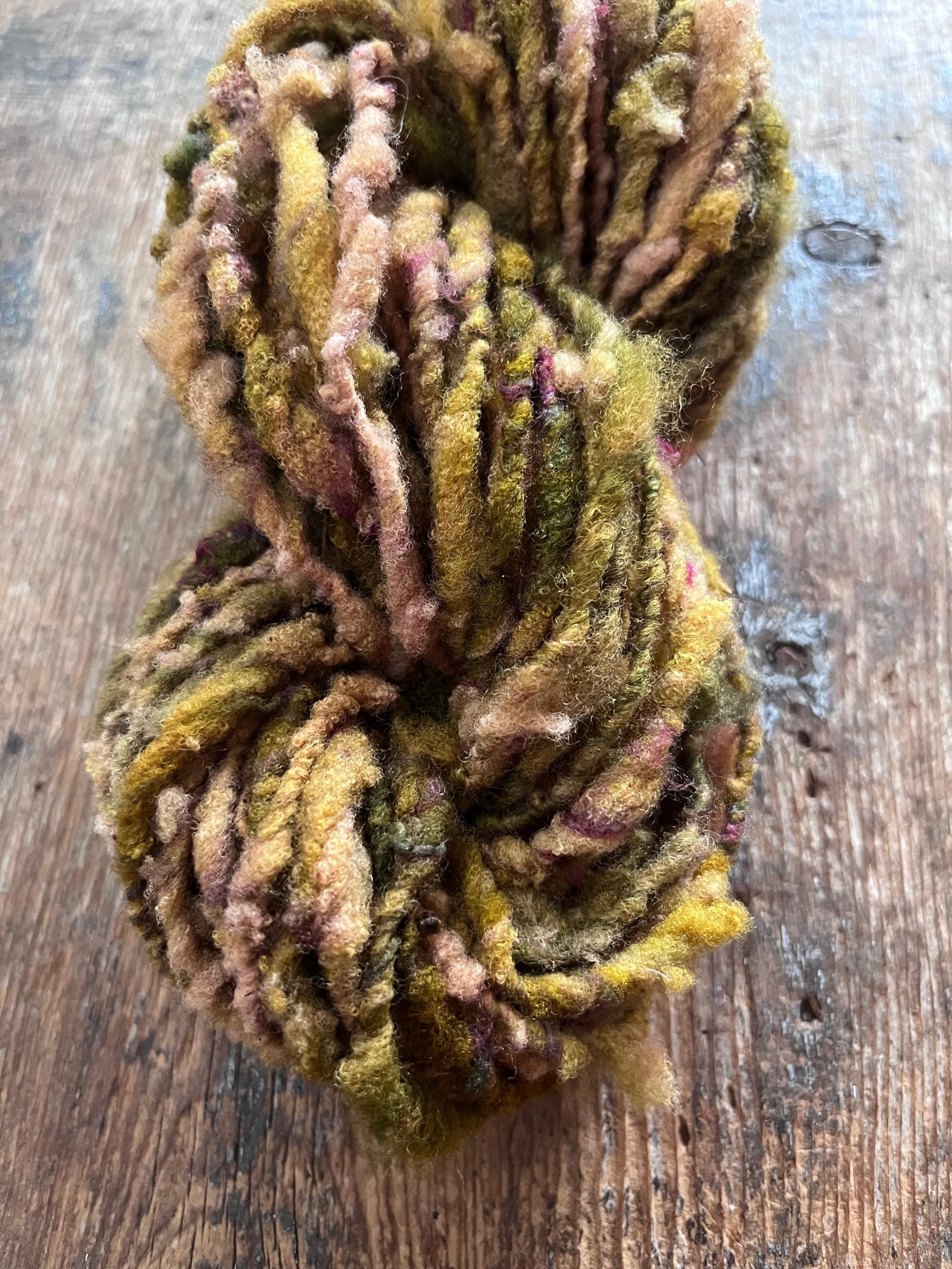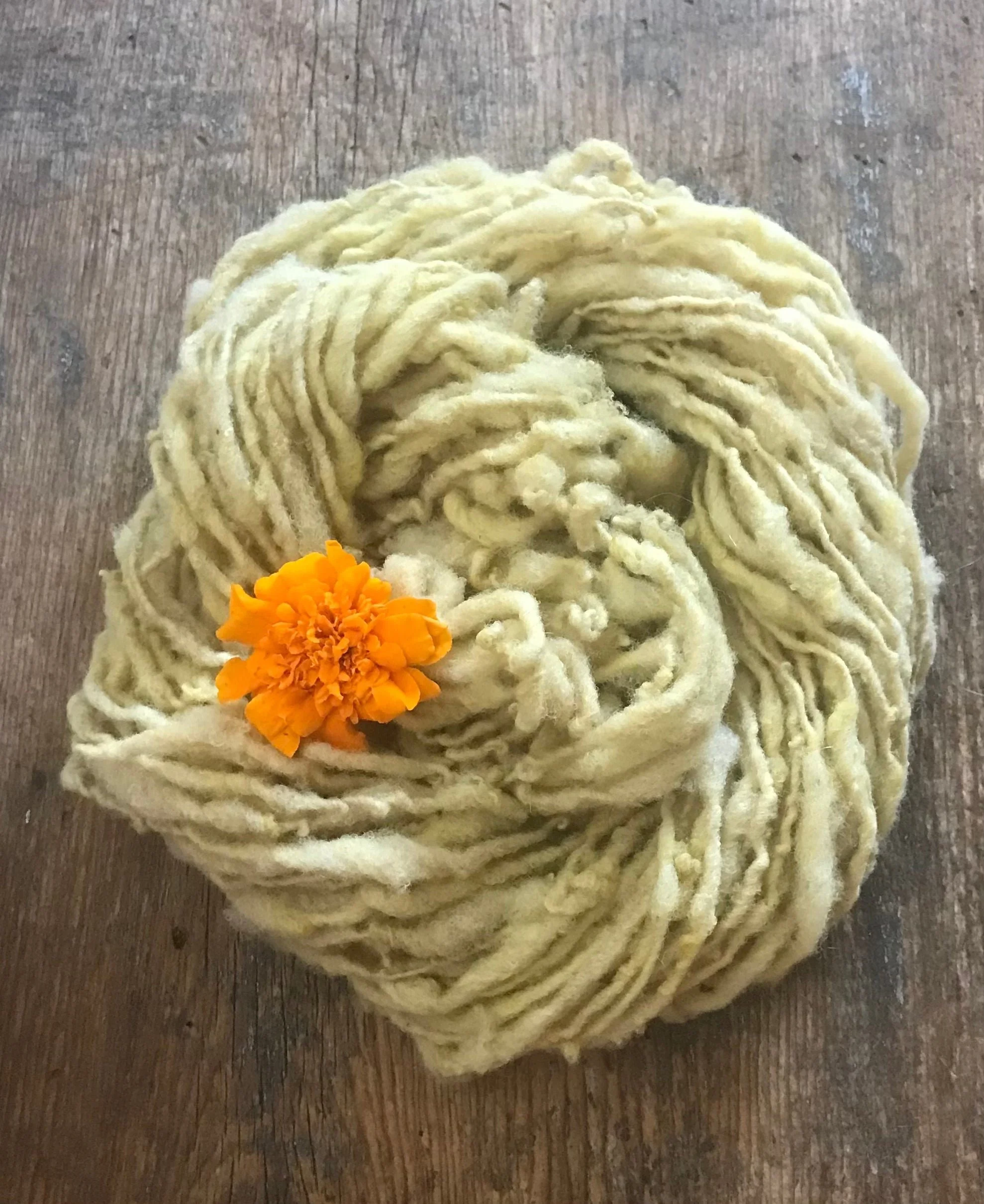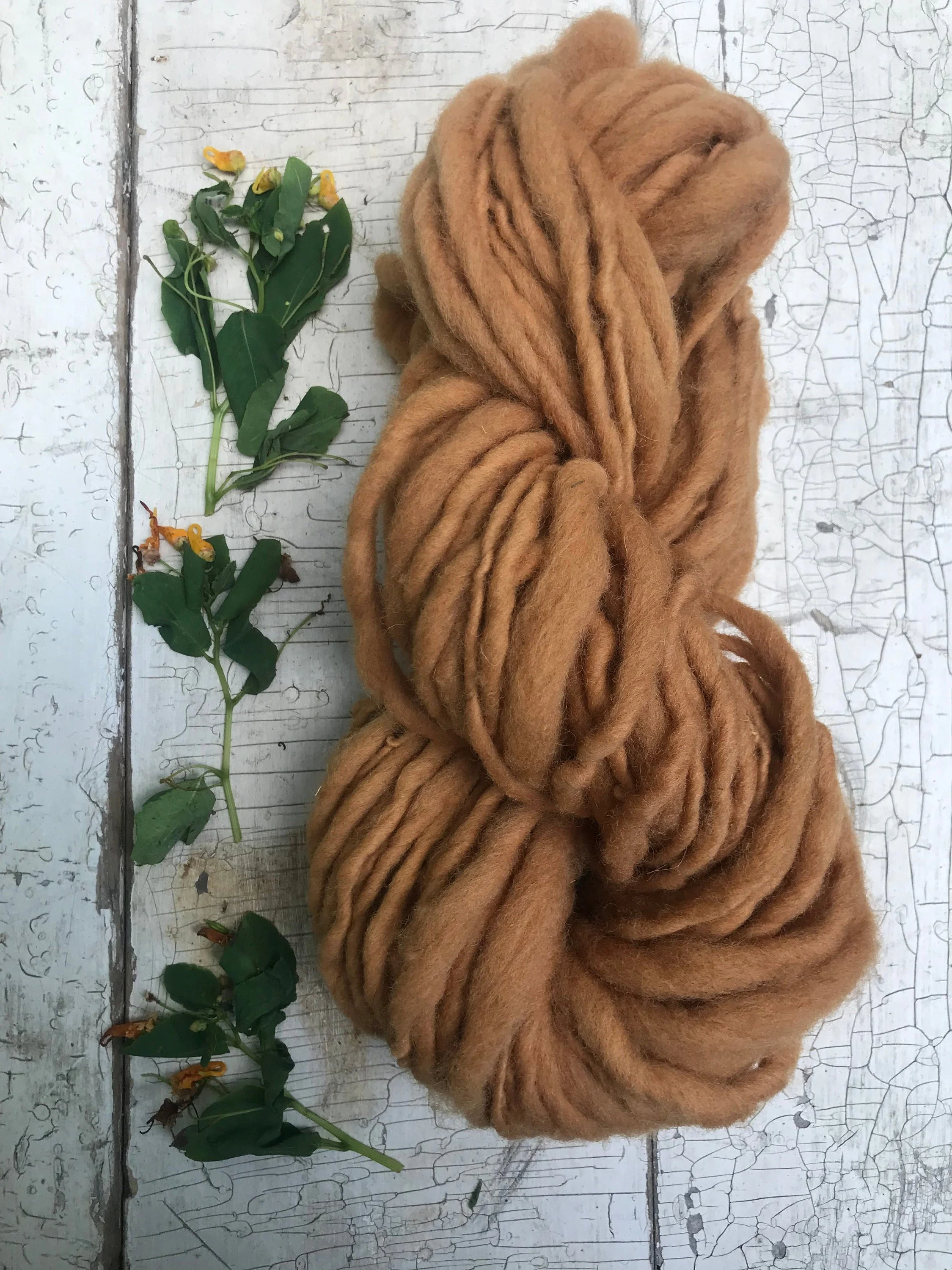 Jewelweed naturally dyed handspun yarn, bulky single ply art yarn