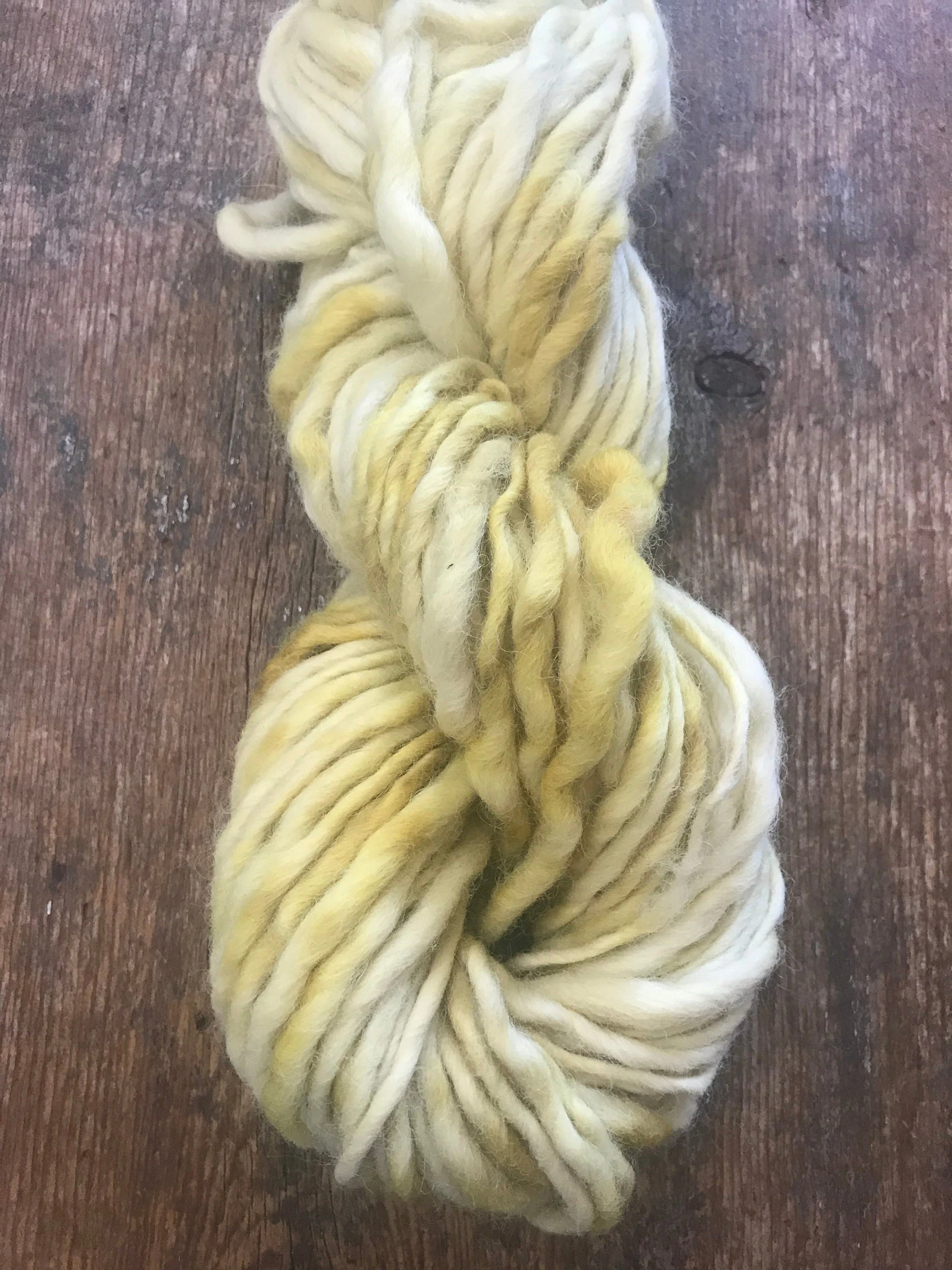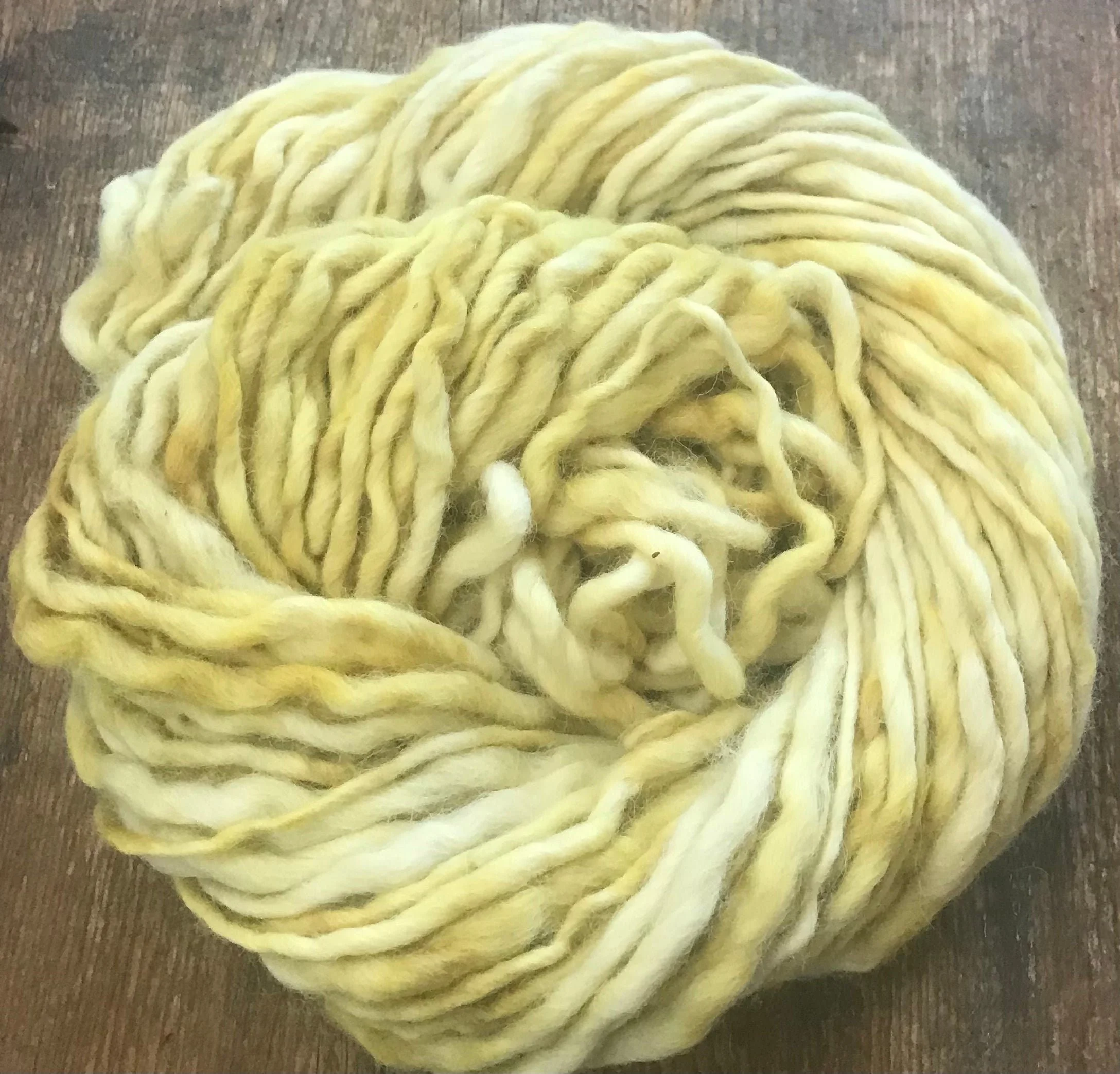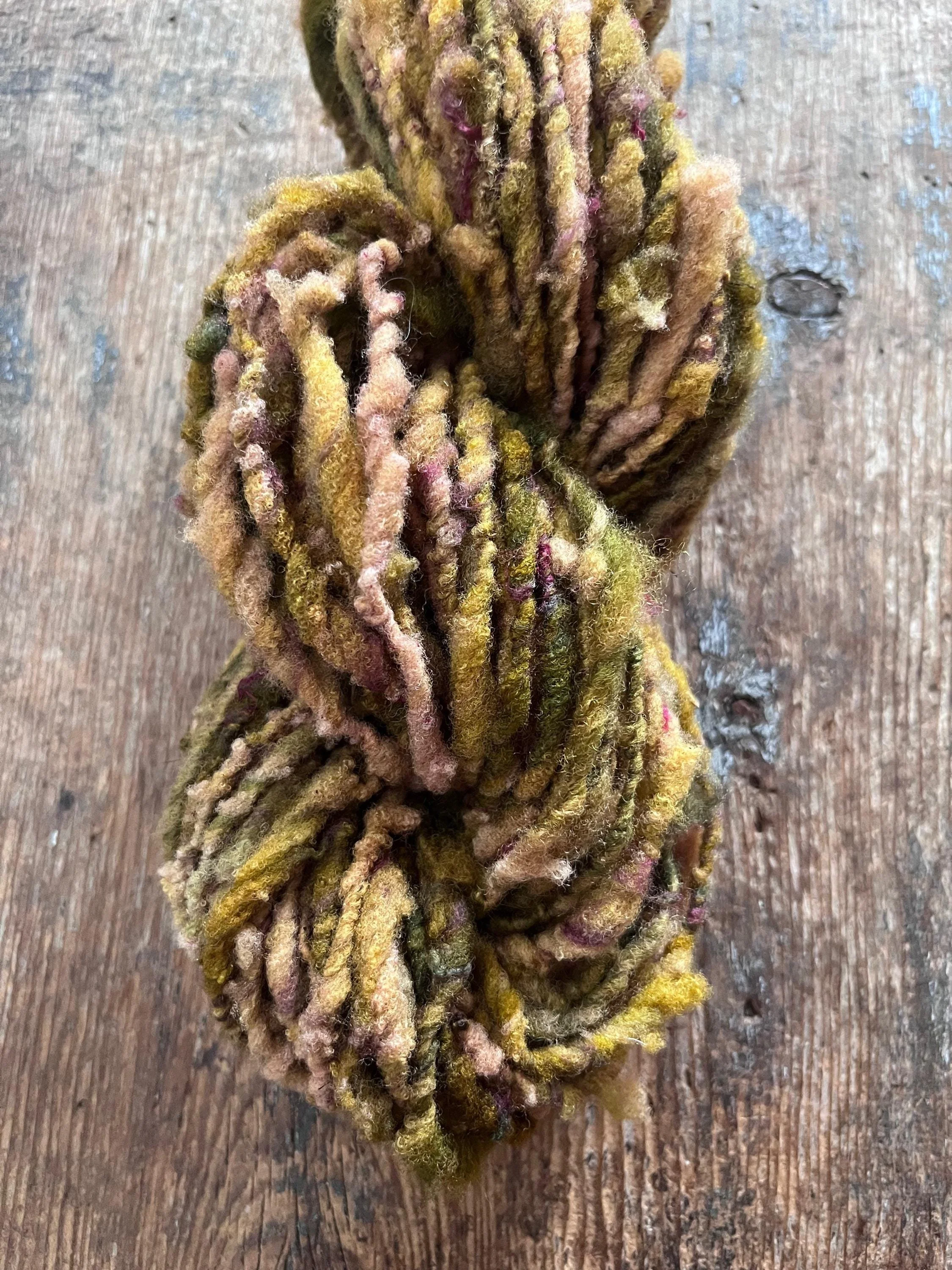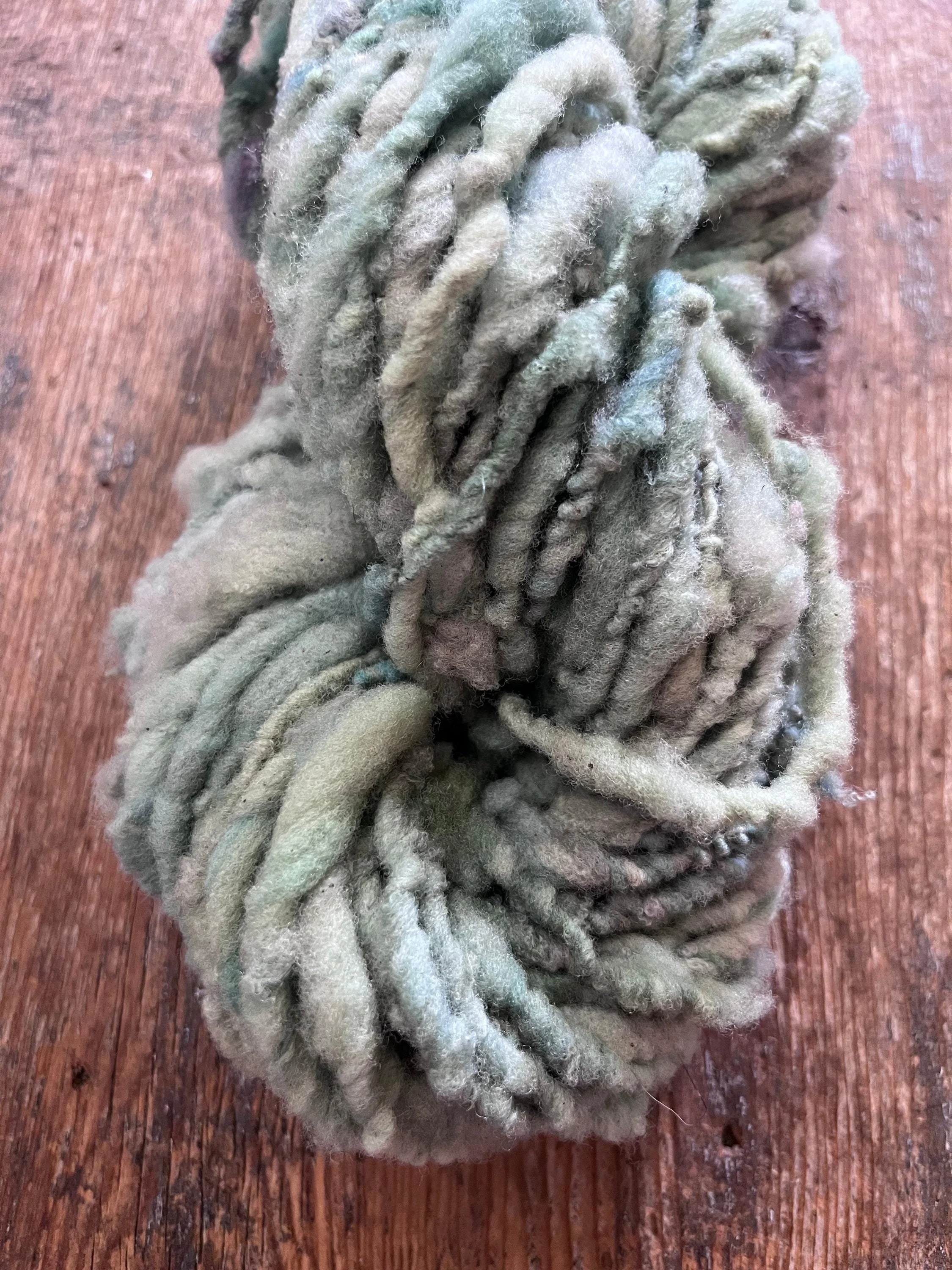Jewelweed naturally dyed handspun yarn, bulky single ply art yarn