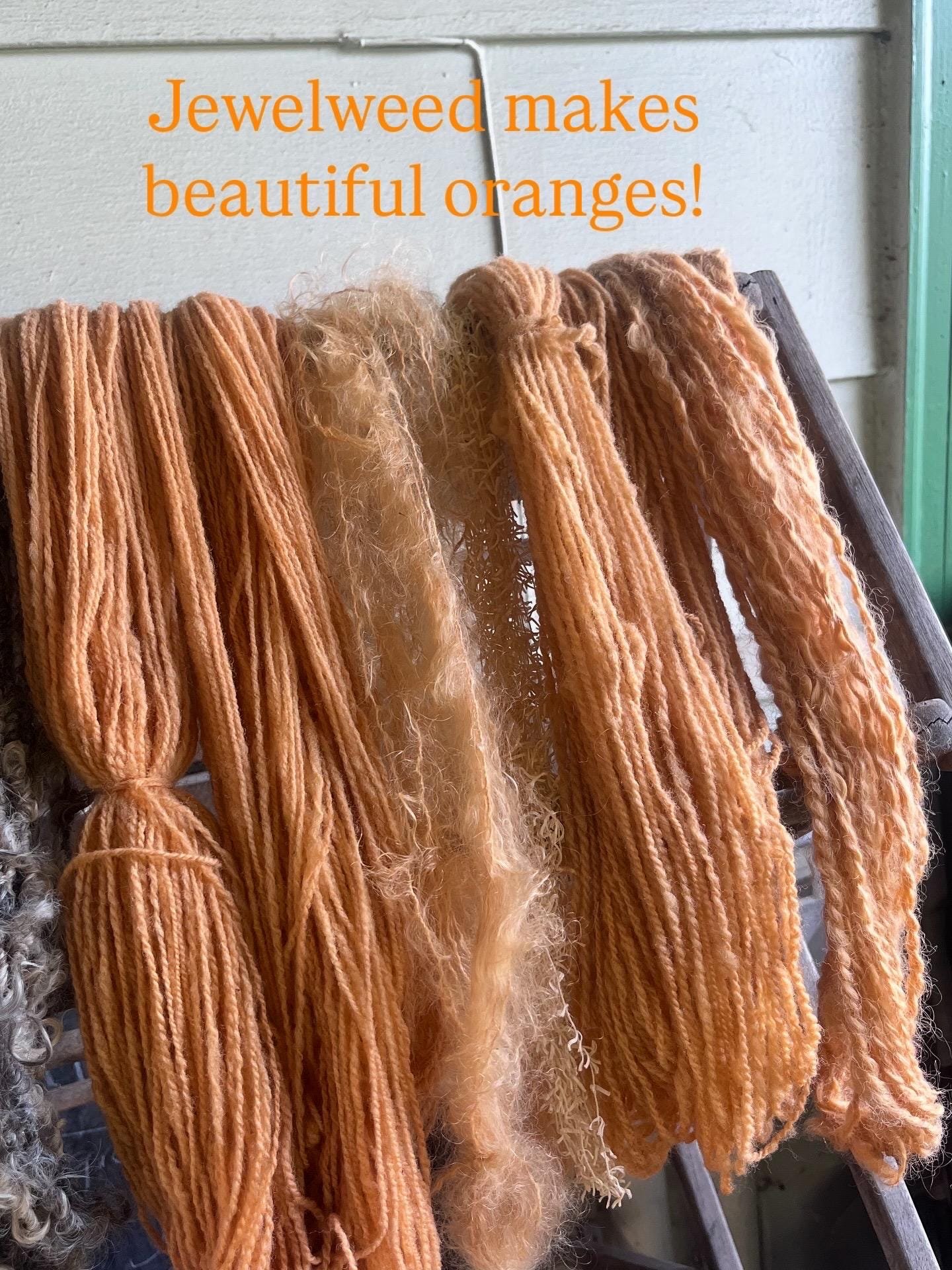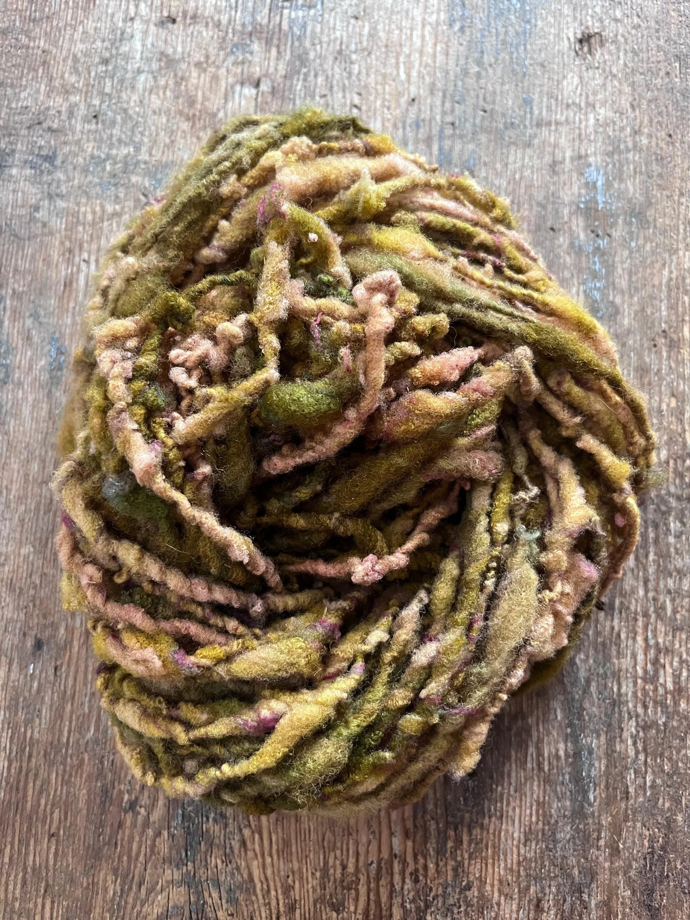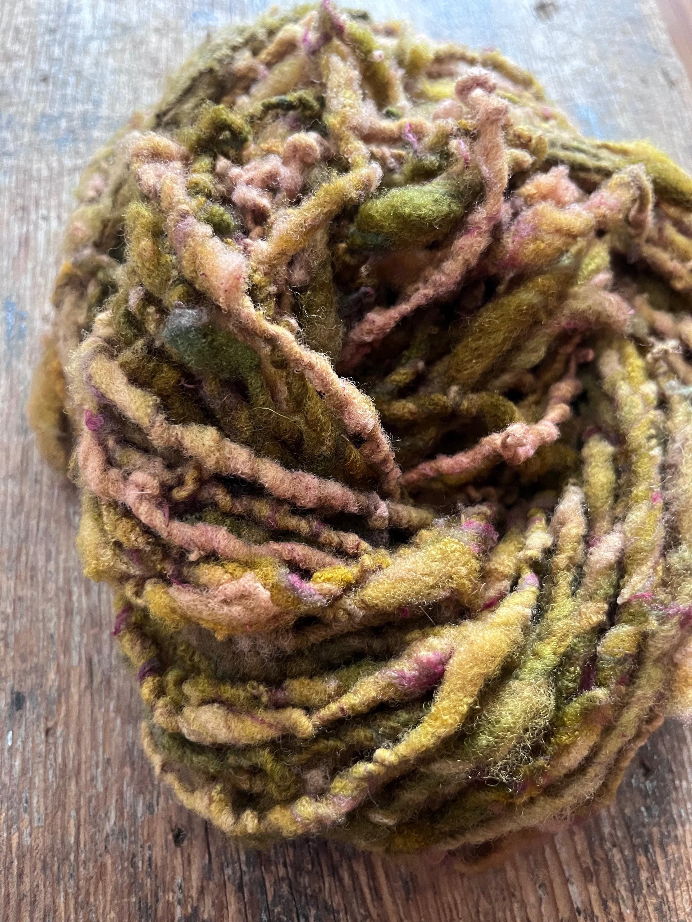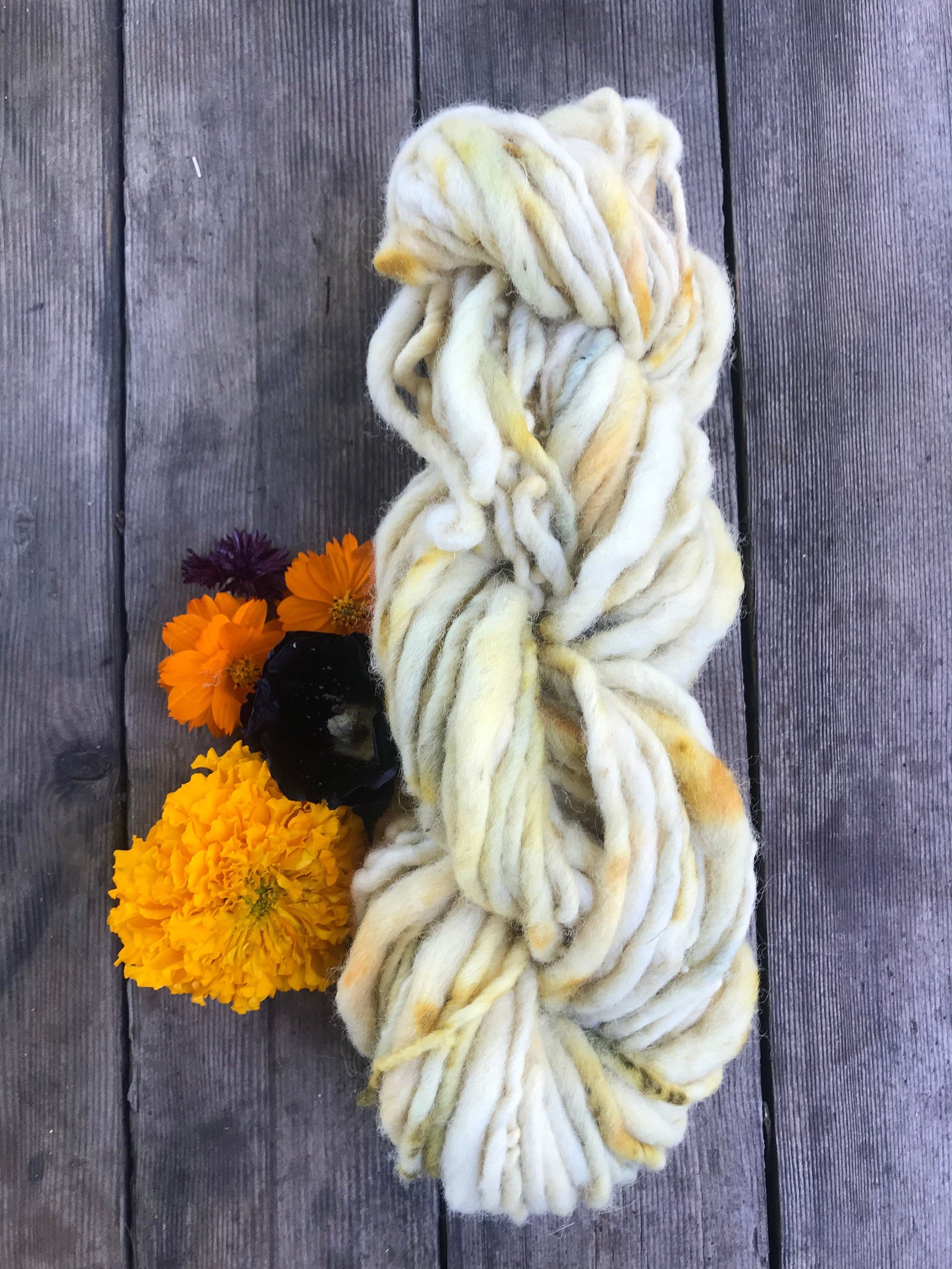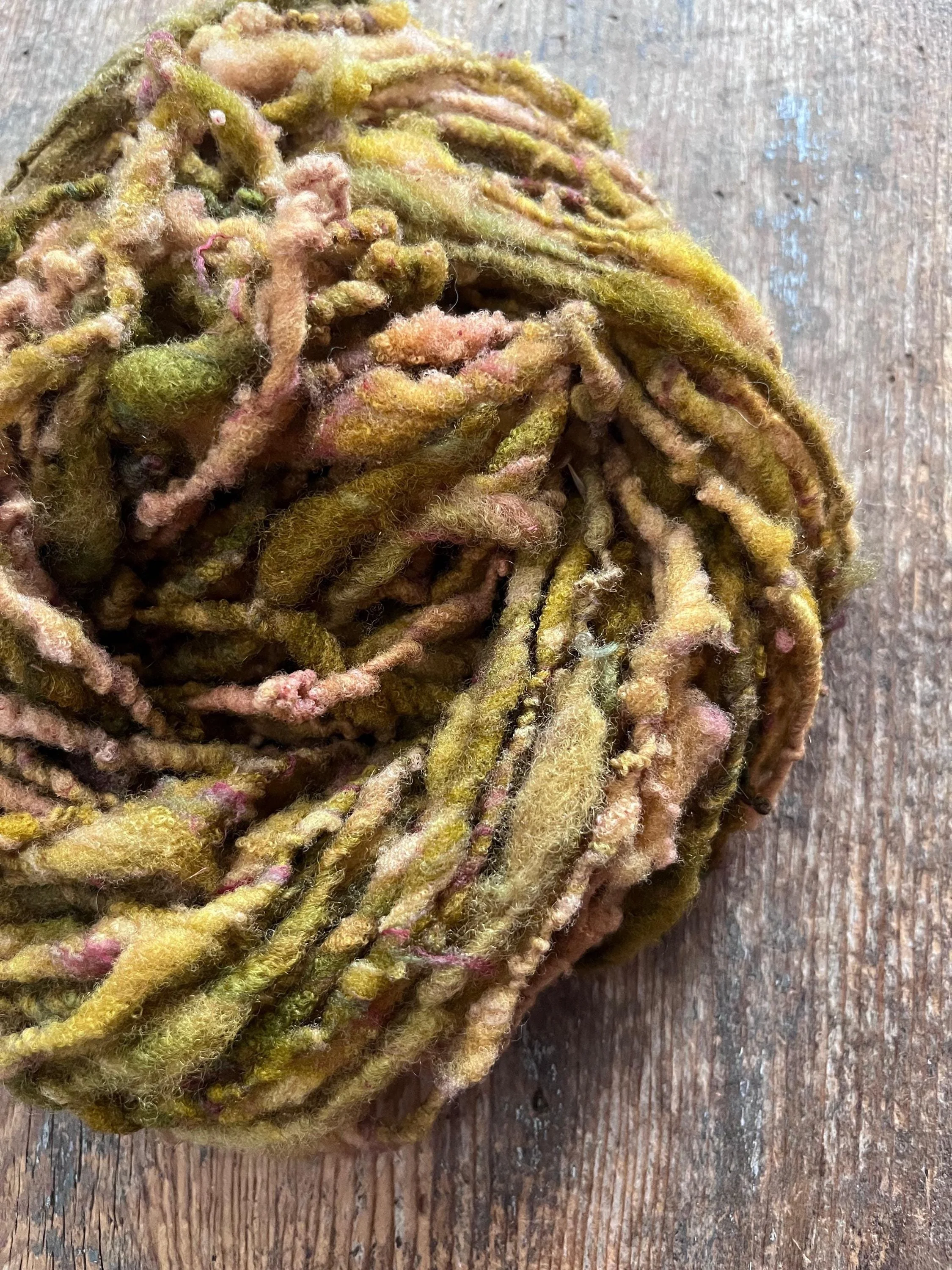 Jewelweed naturally dyed handspun yarn, bulky single ply art yarn