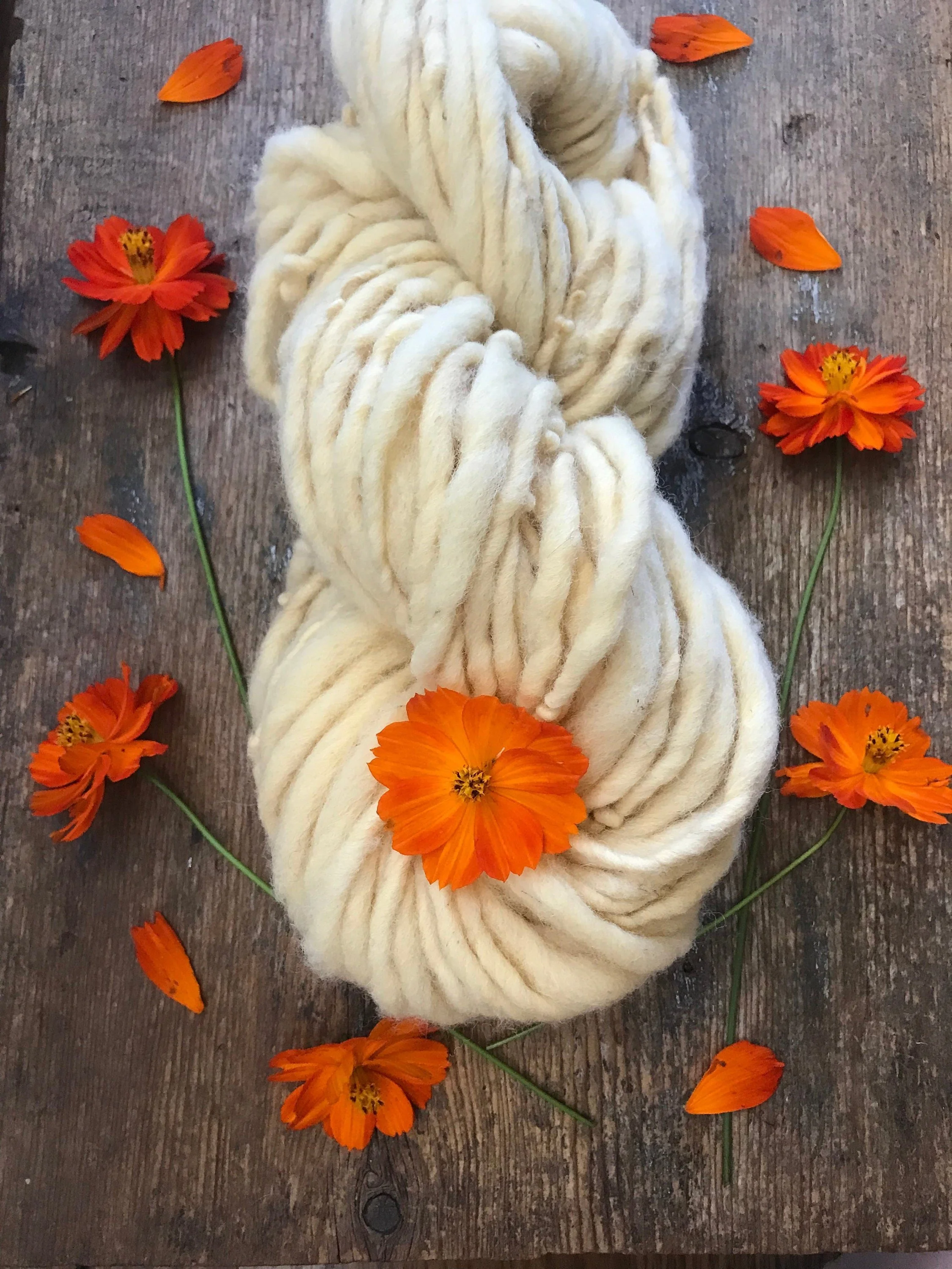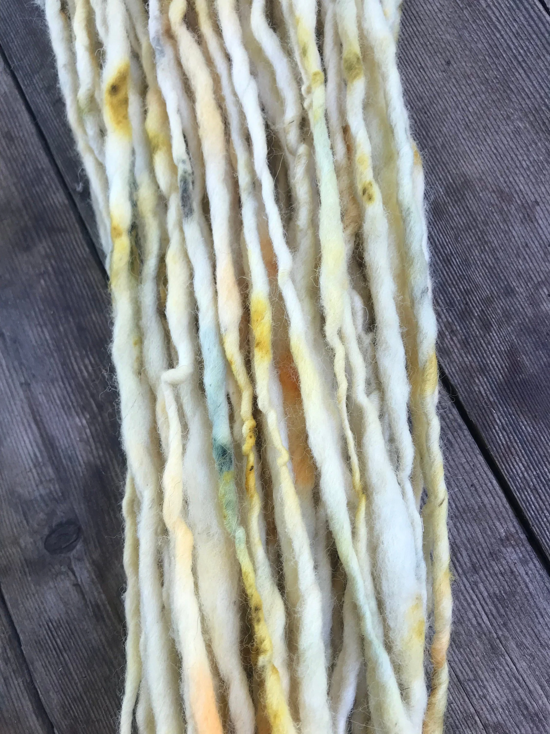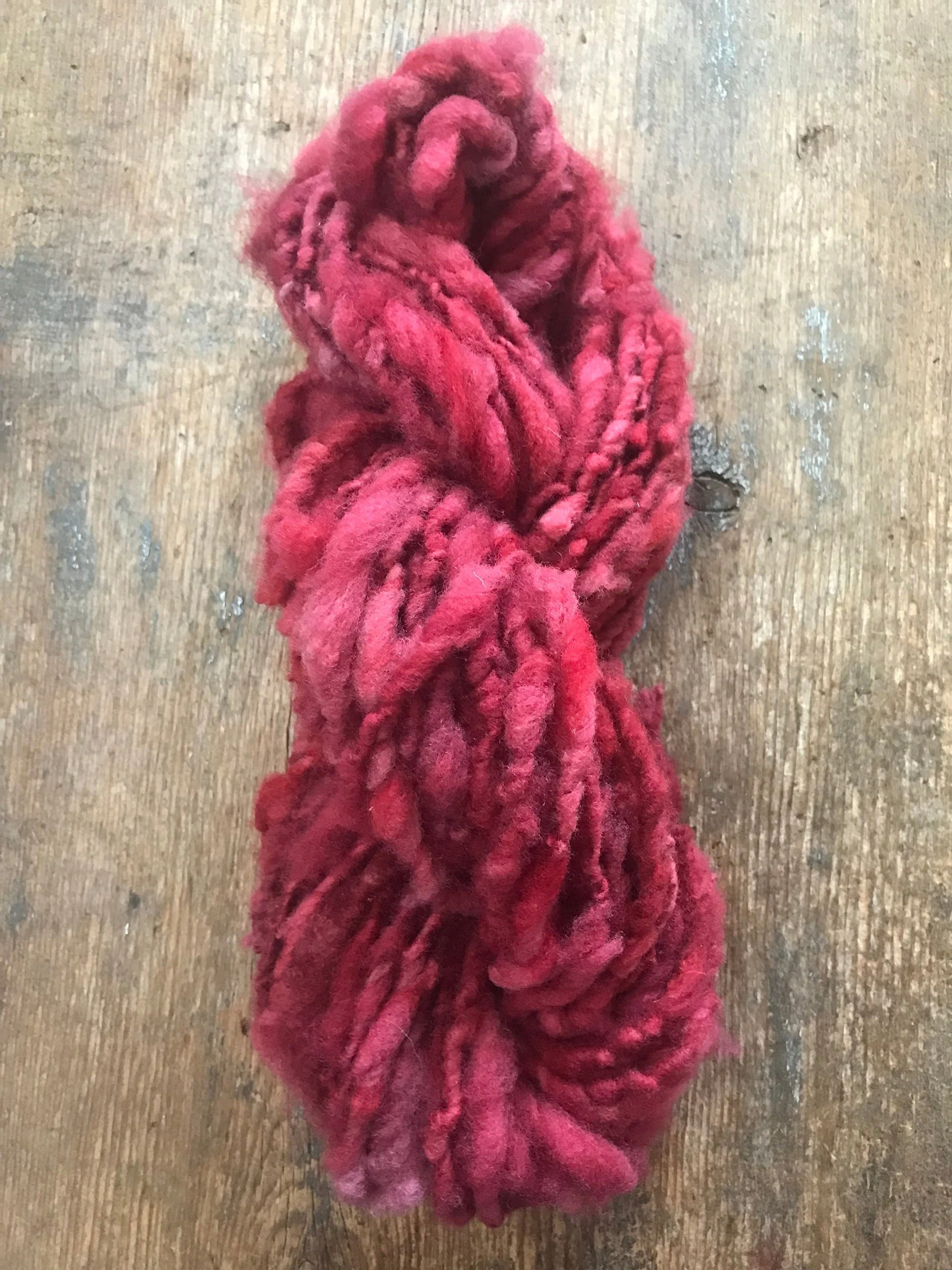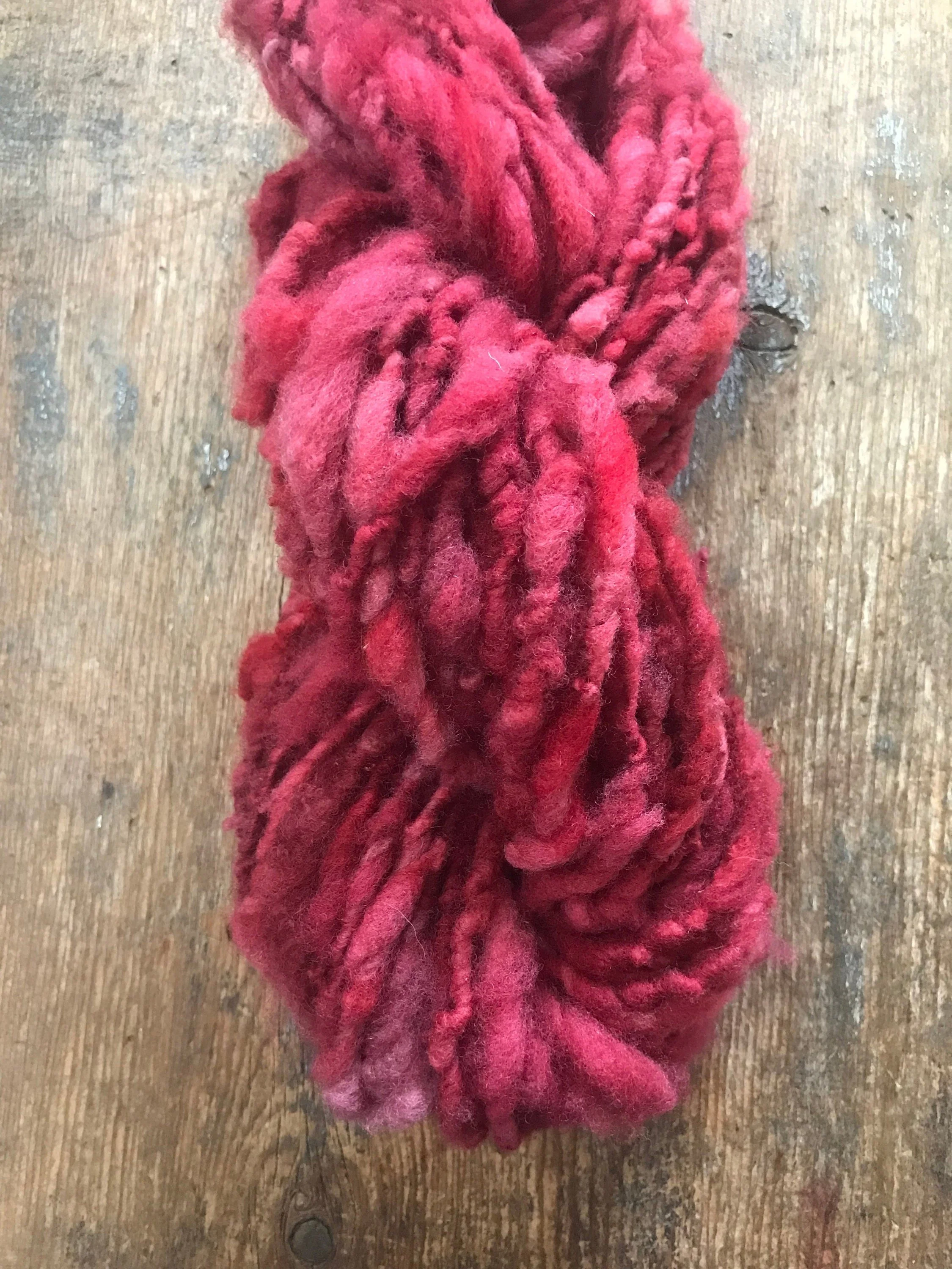 Jewelweed naturally dyed handspun yarn, bulky single ply art yarn