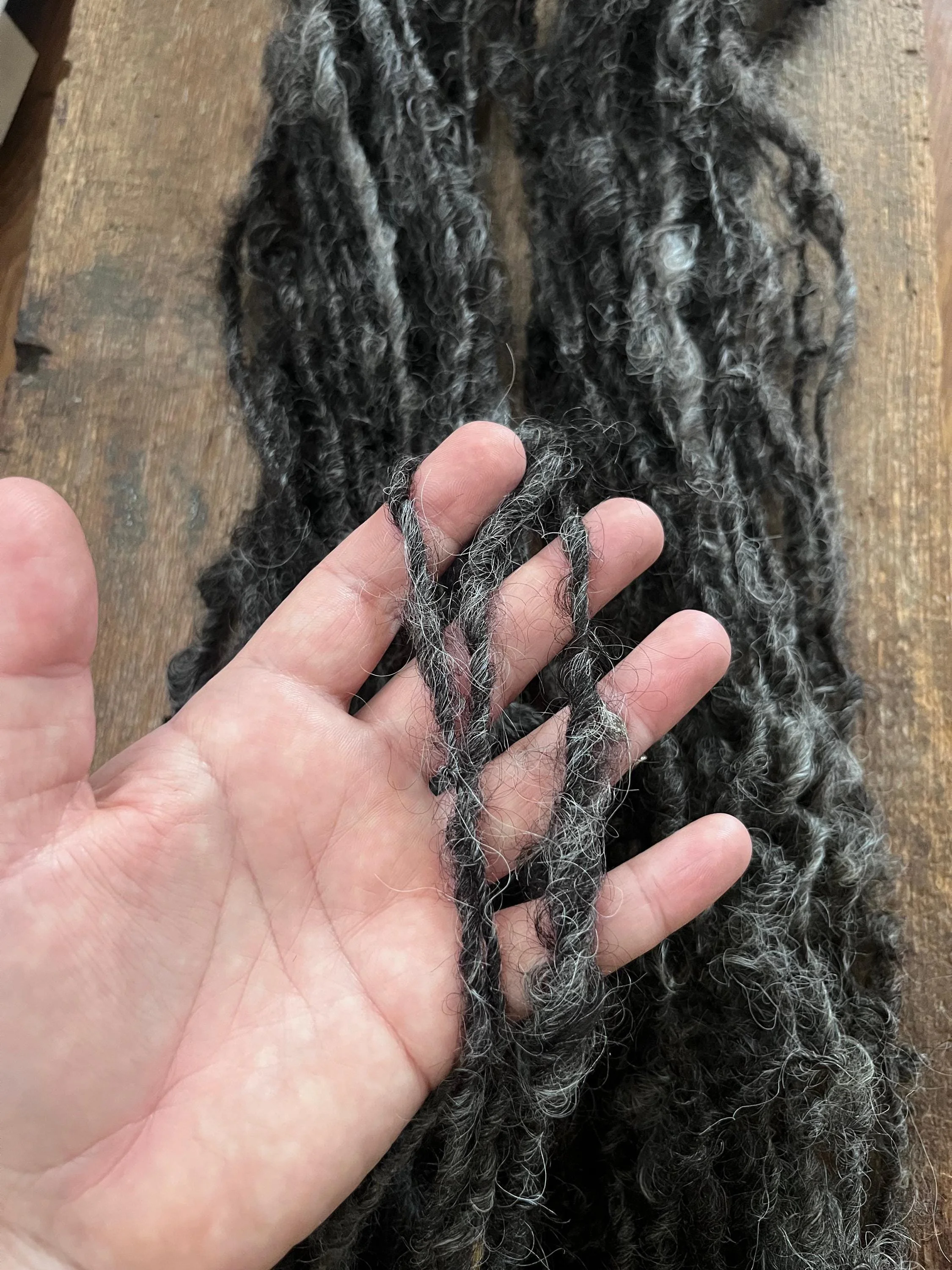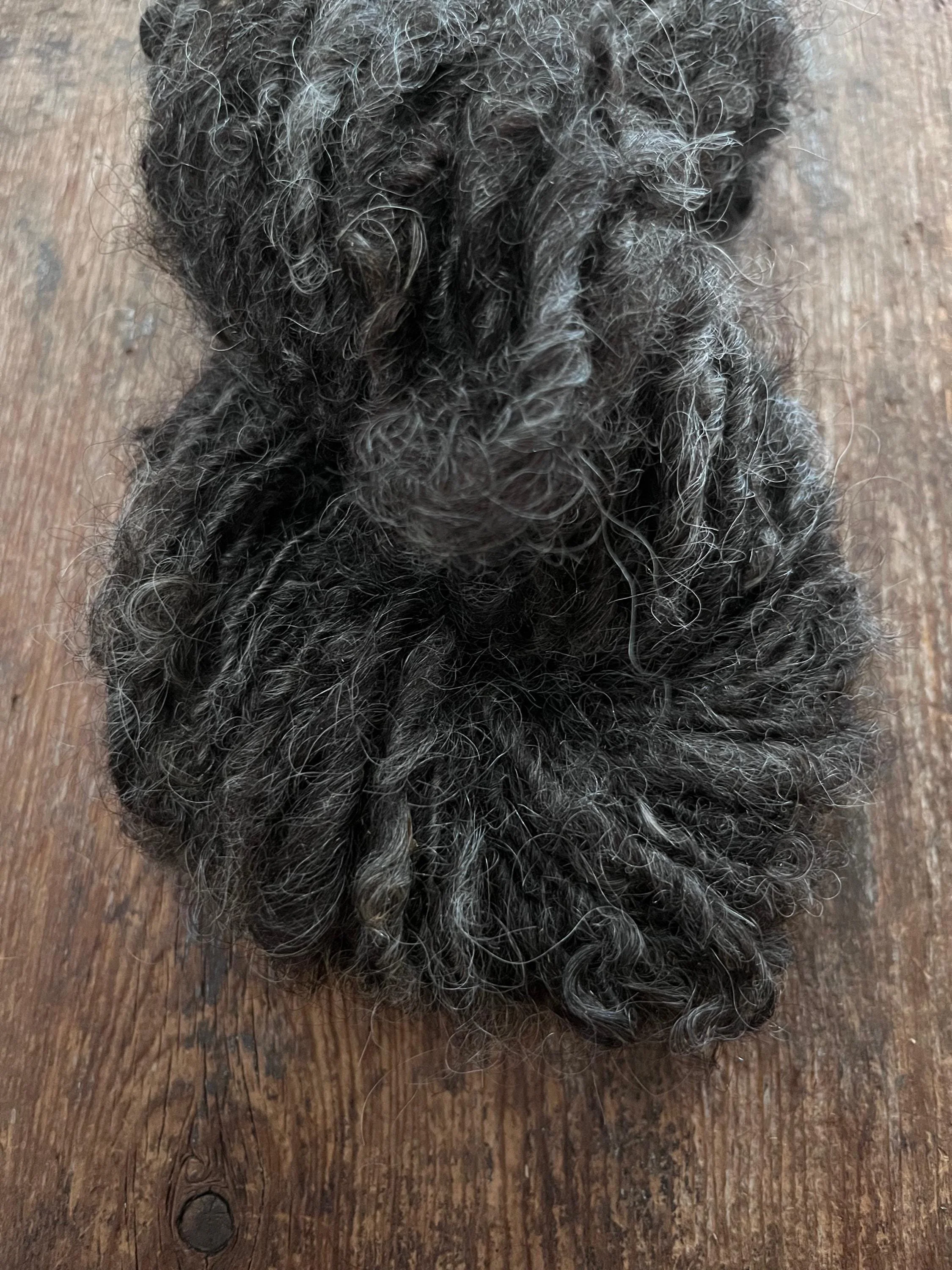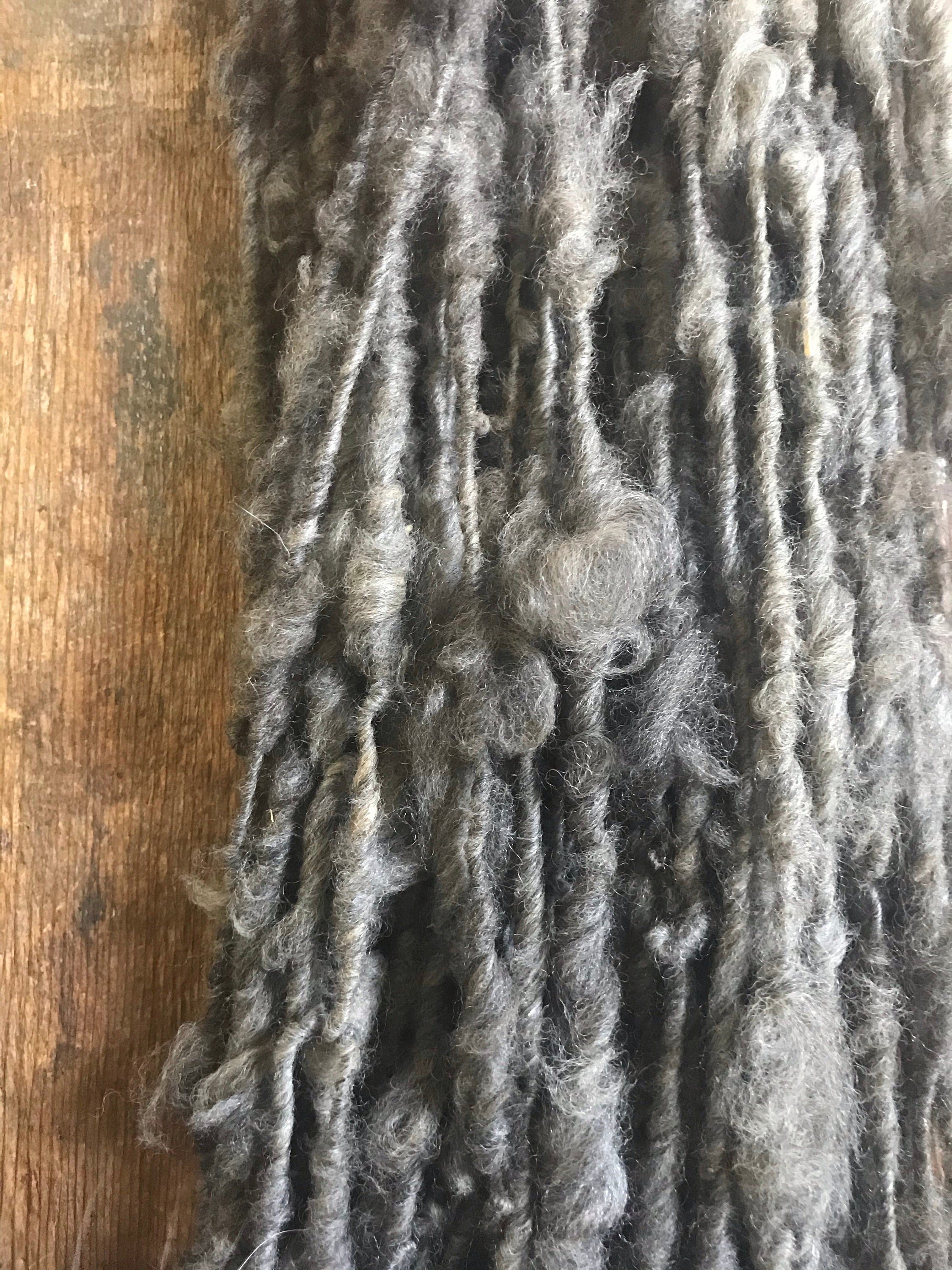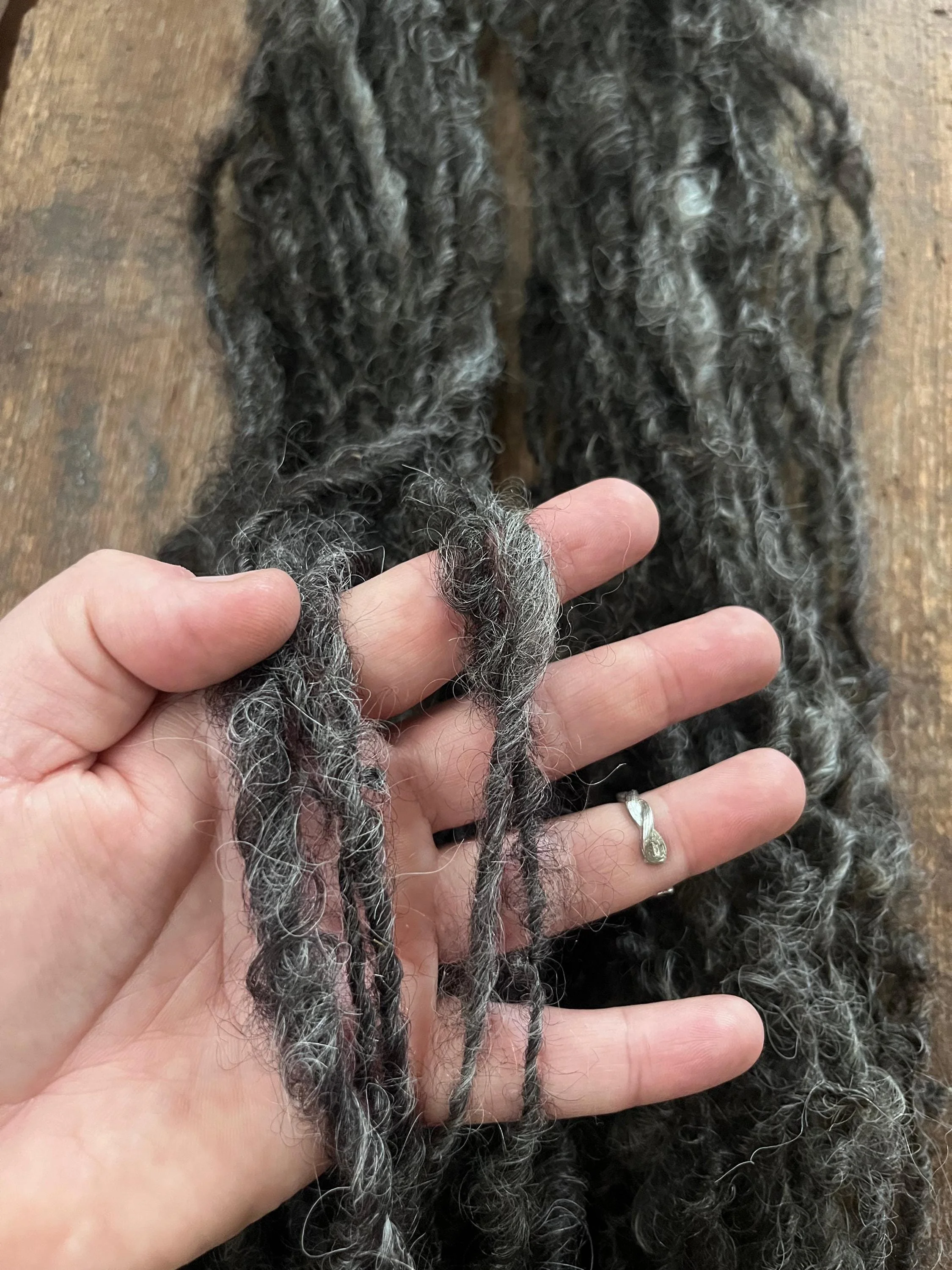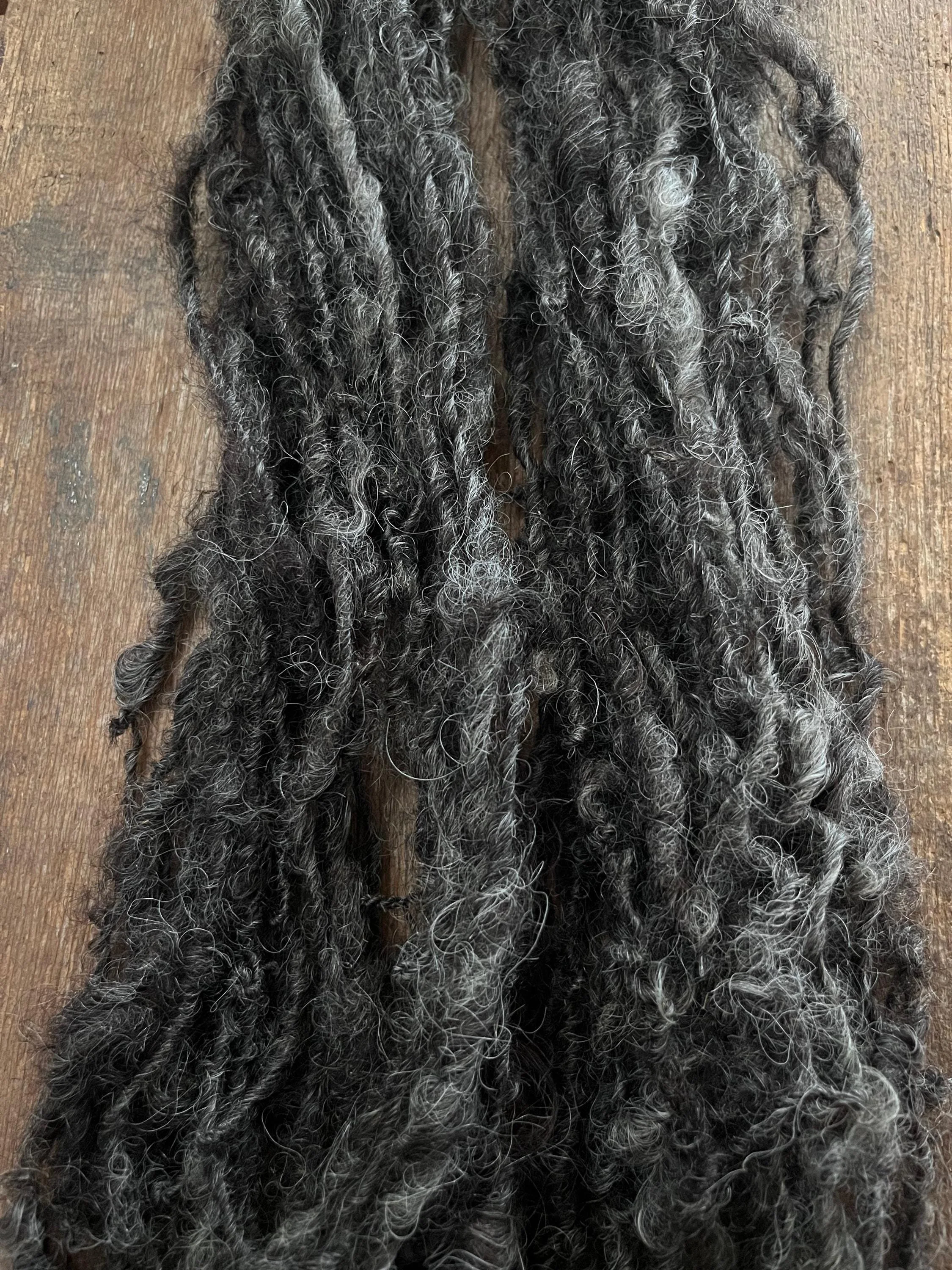 Charcoal grey Lincoln wool yarn, lockspun curly art yarn