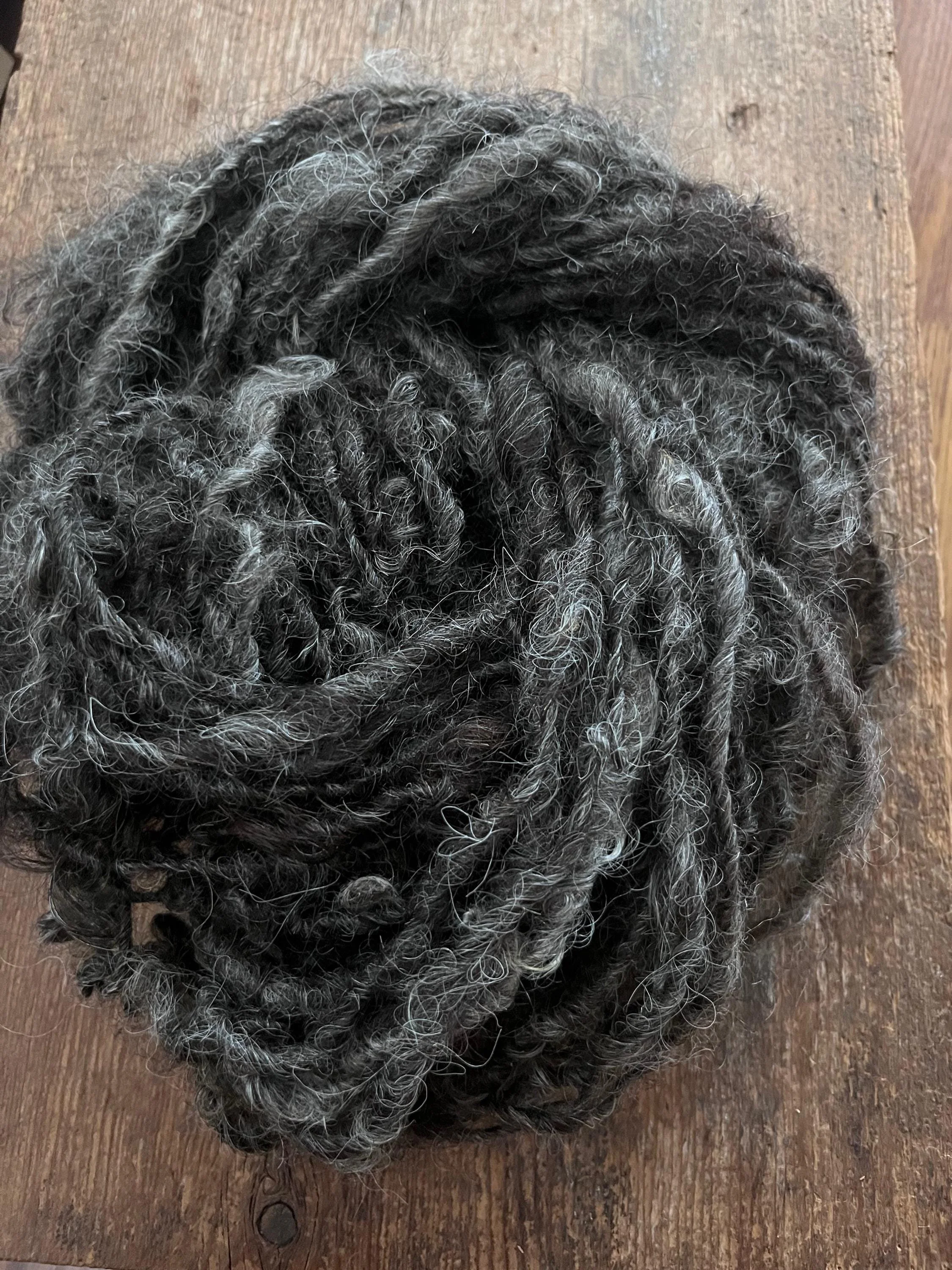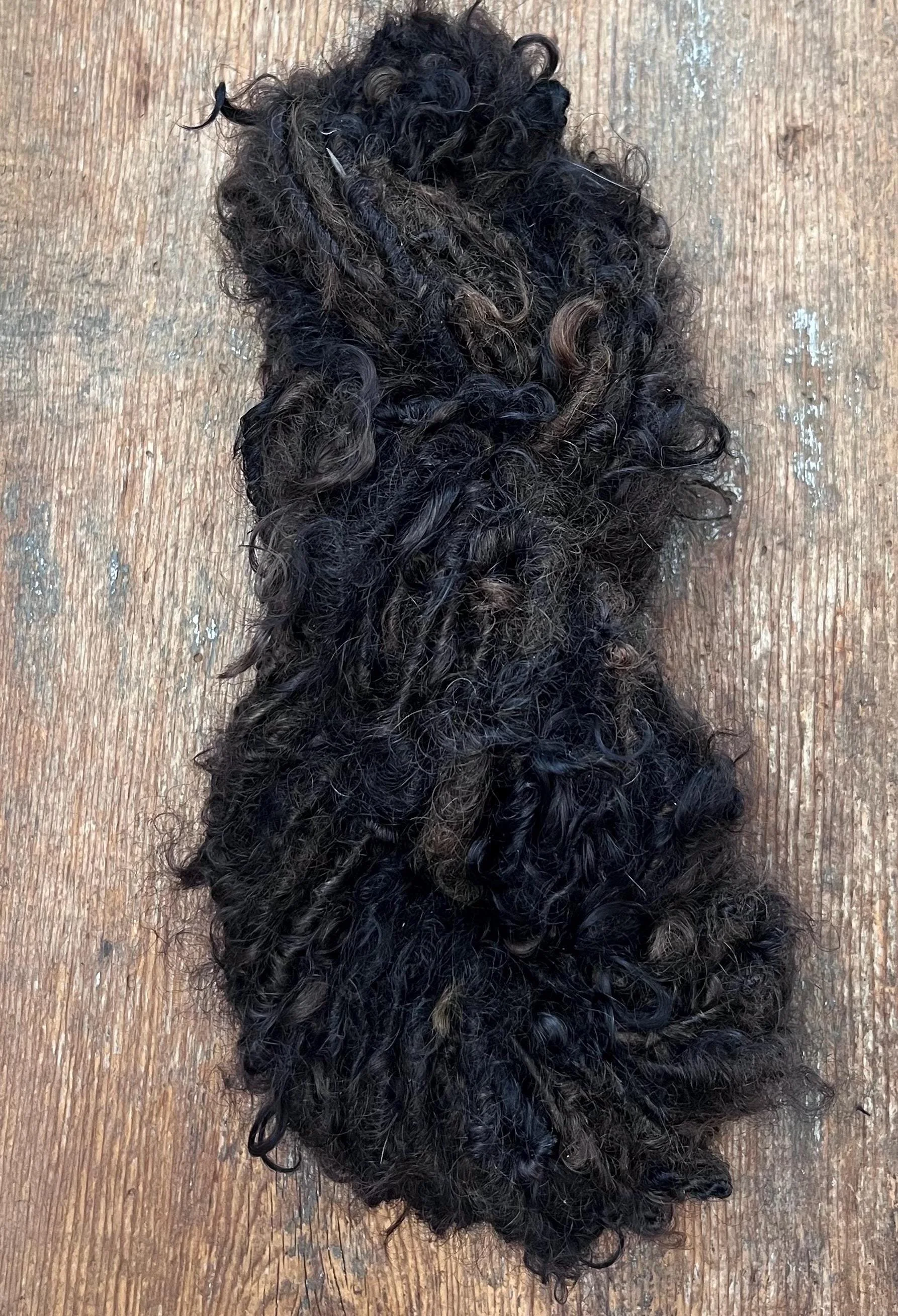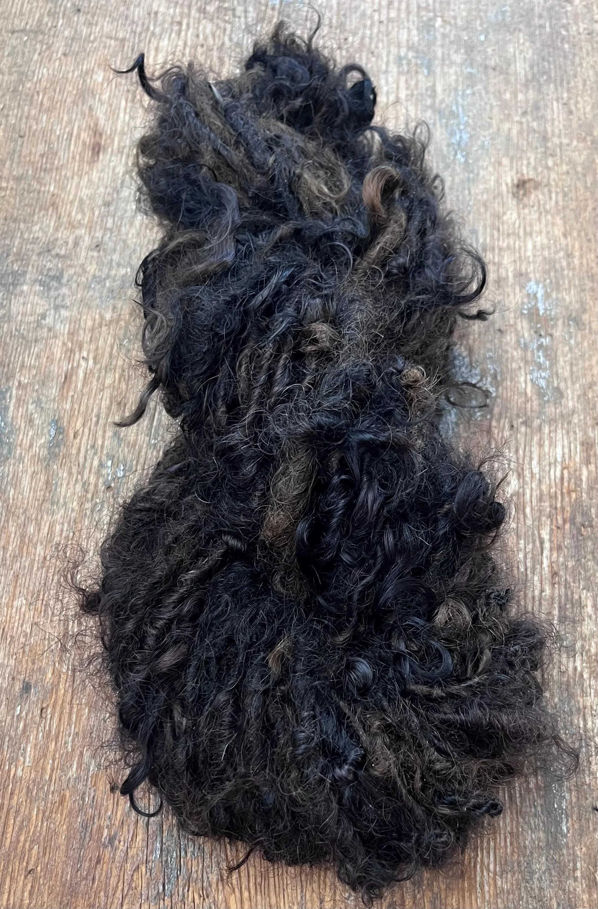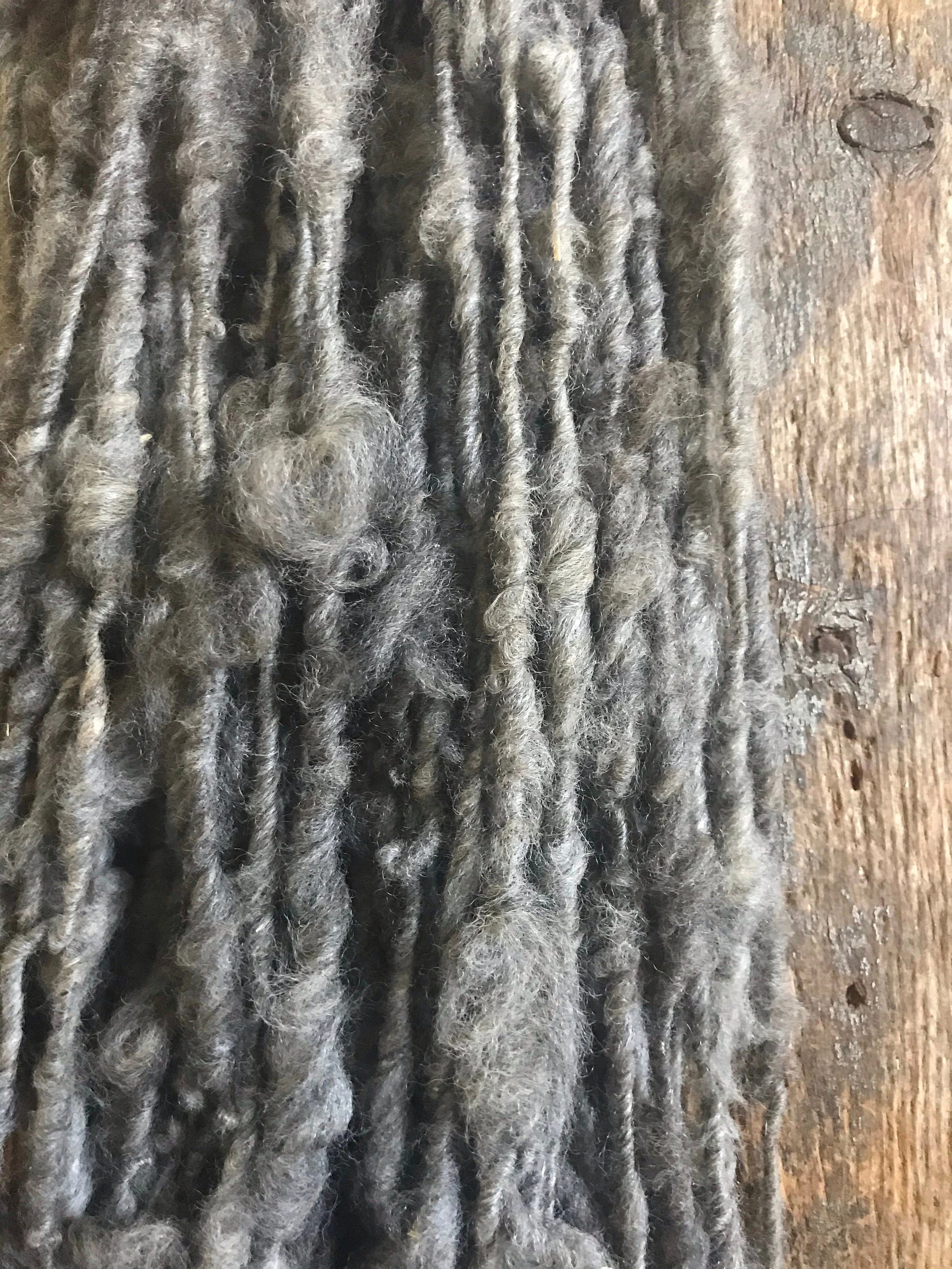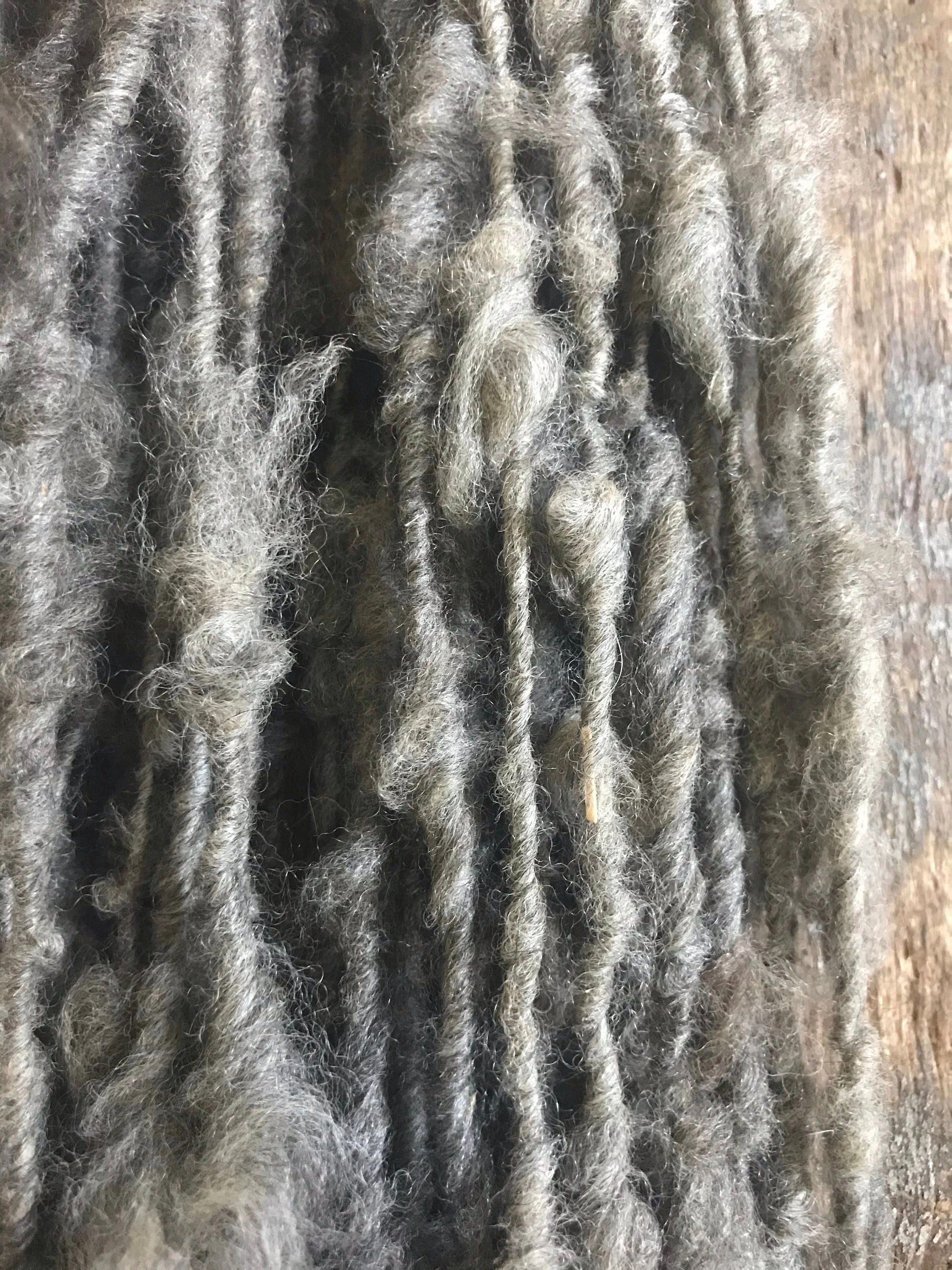Charcoal grey Lincoln wool yarn, lockspun curly art yarn