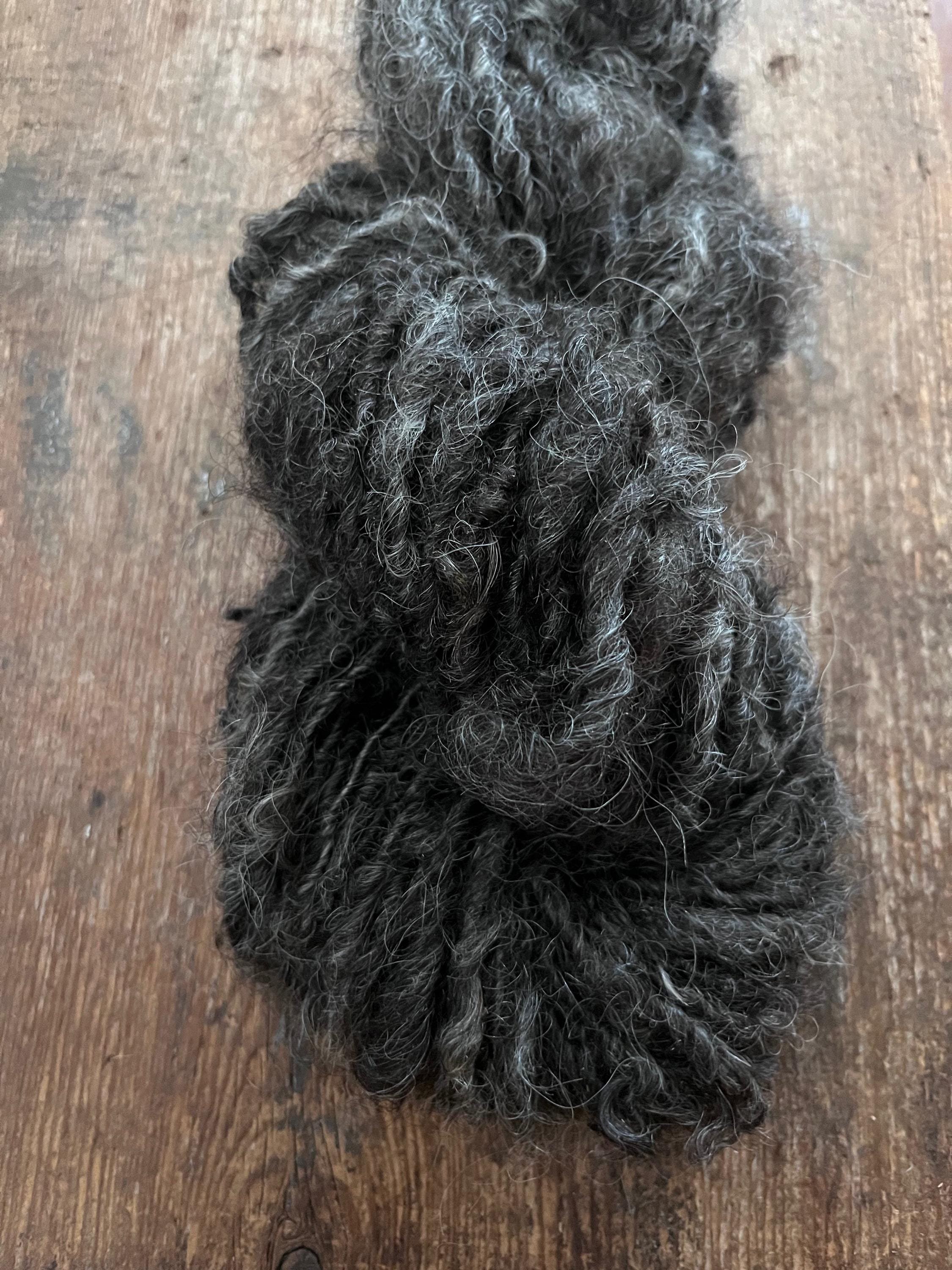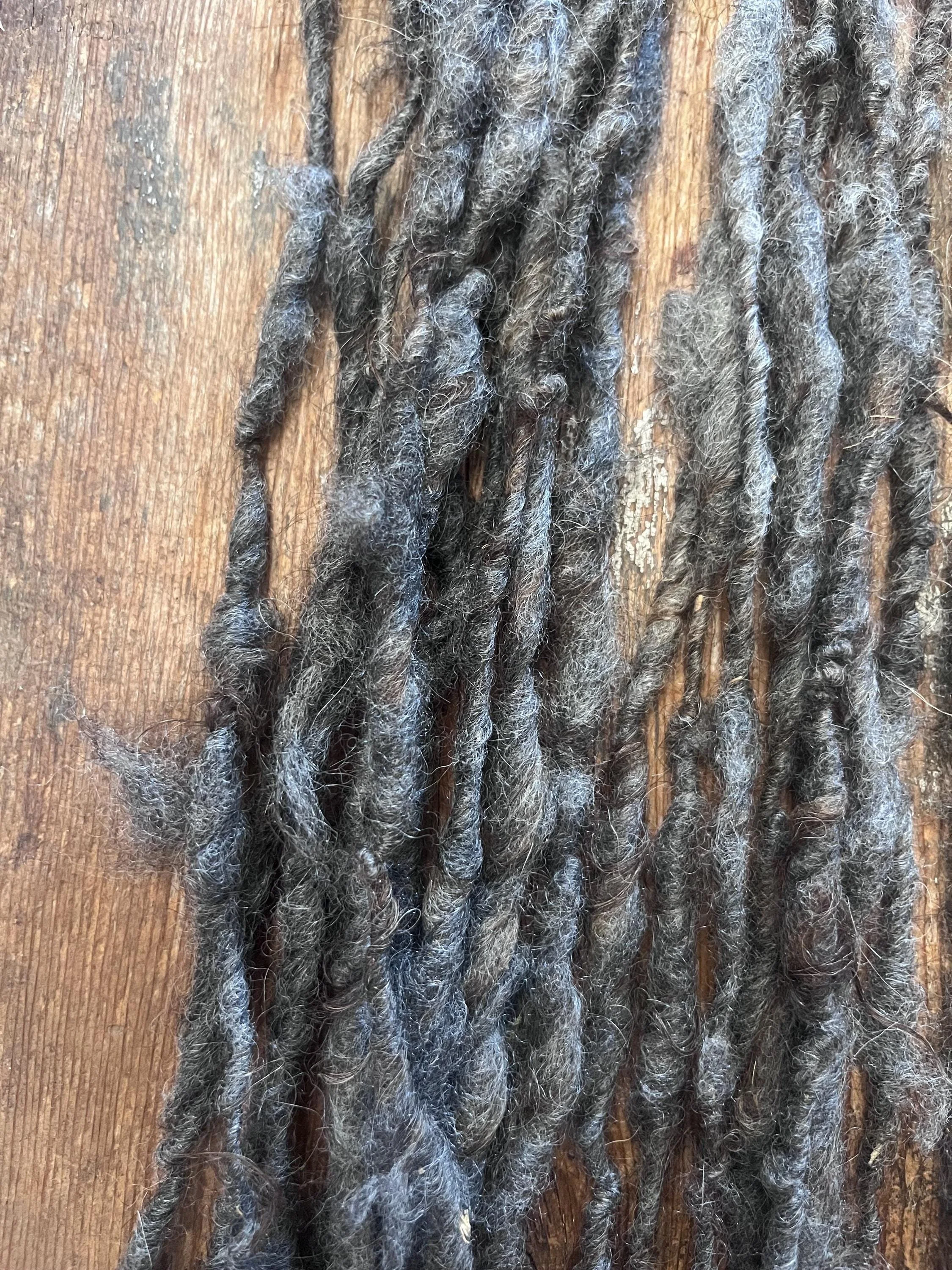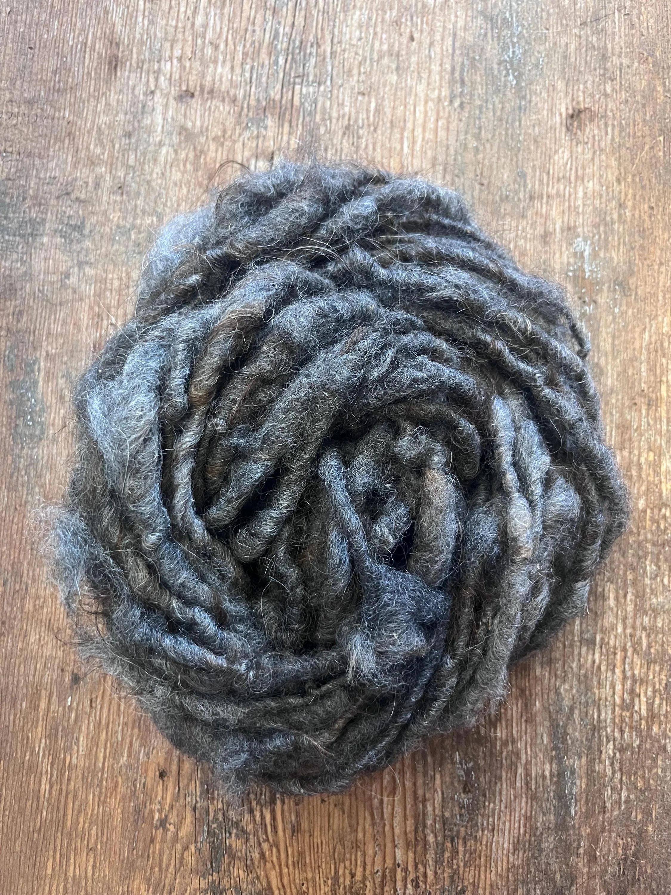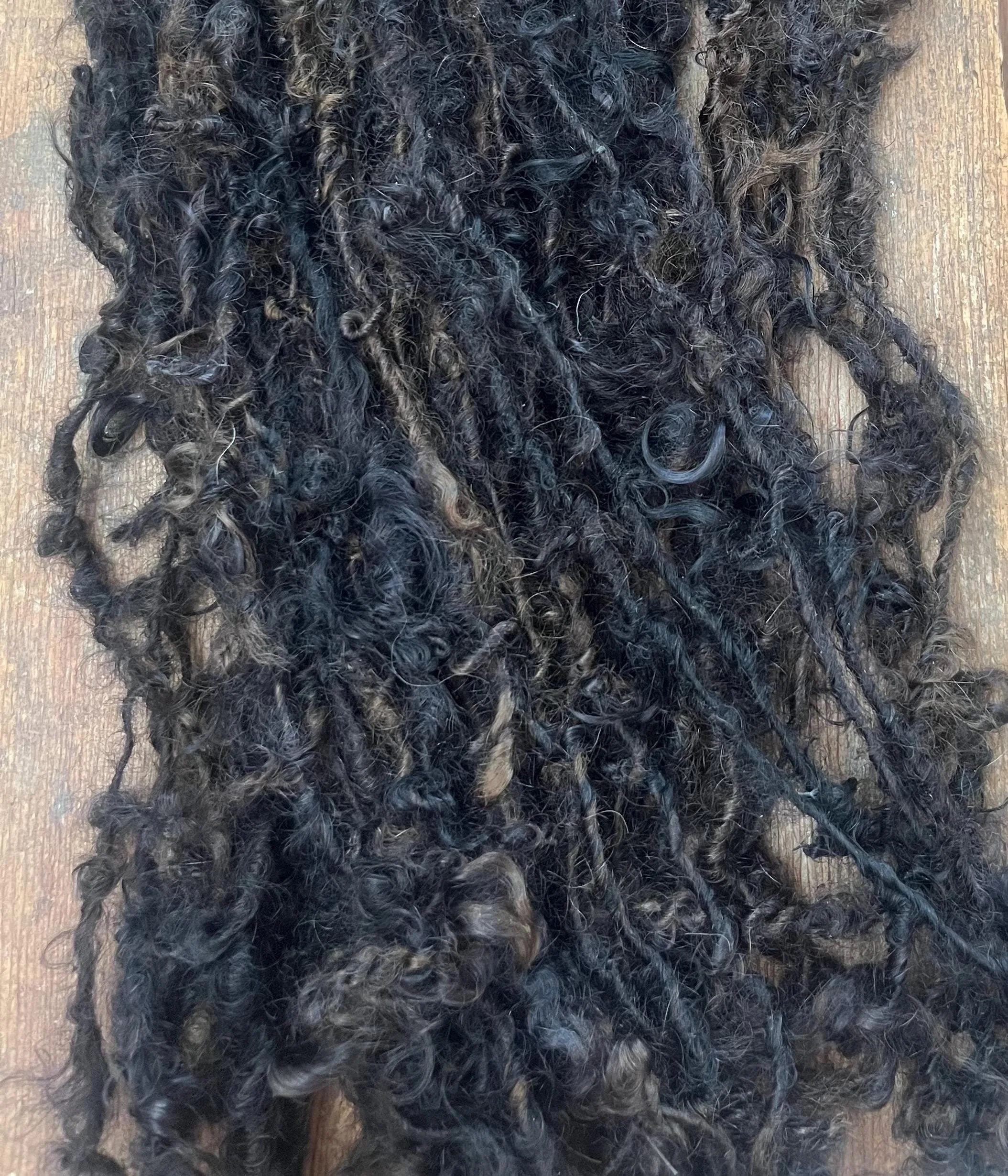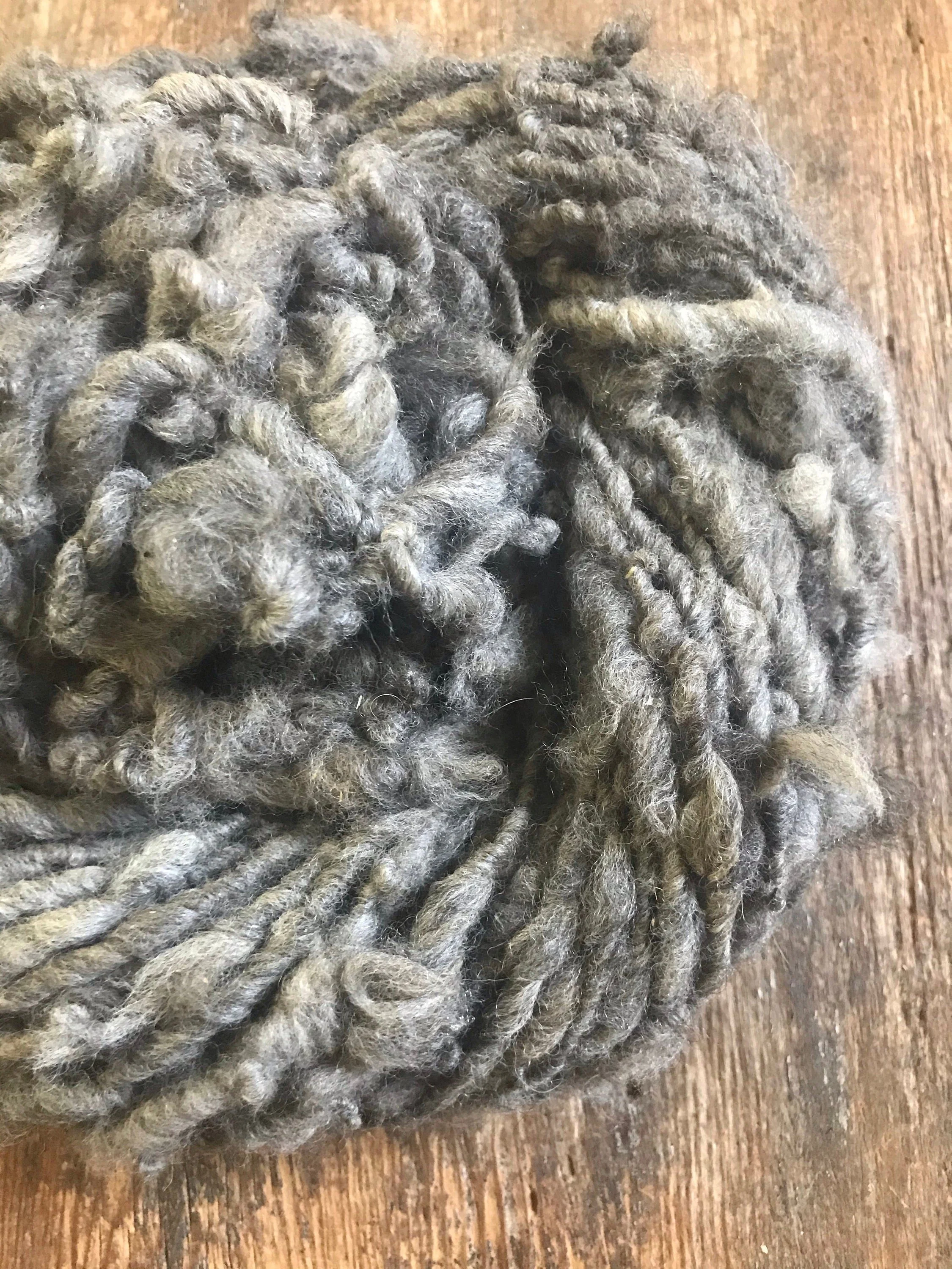 Charcoal grey Lincoln wool yarn, lockspun curly art yarn