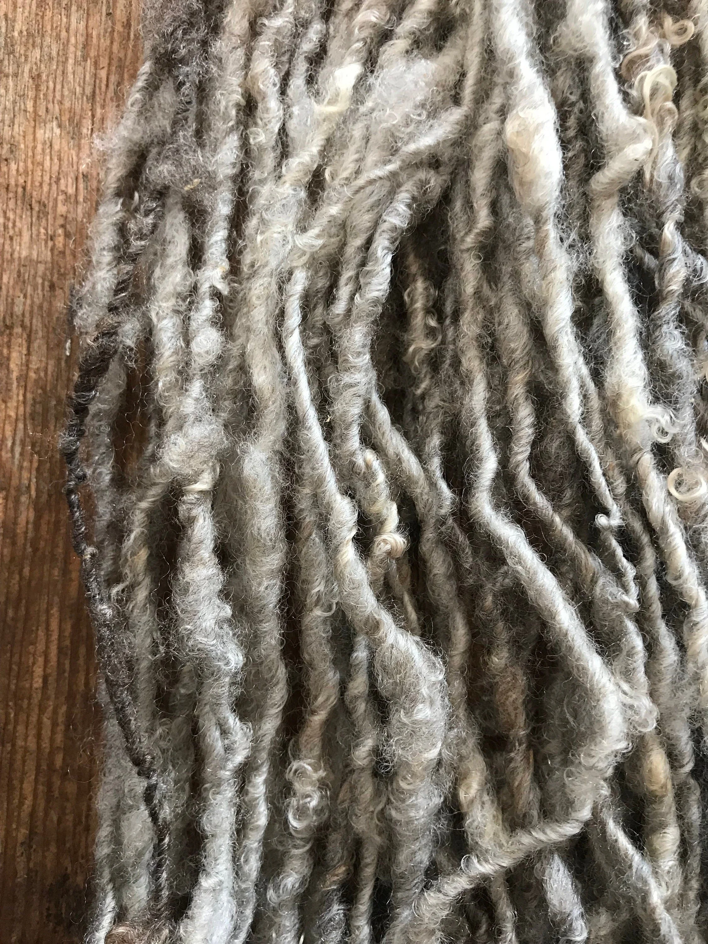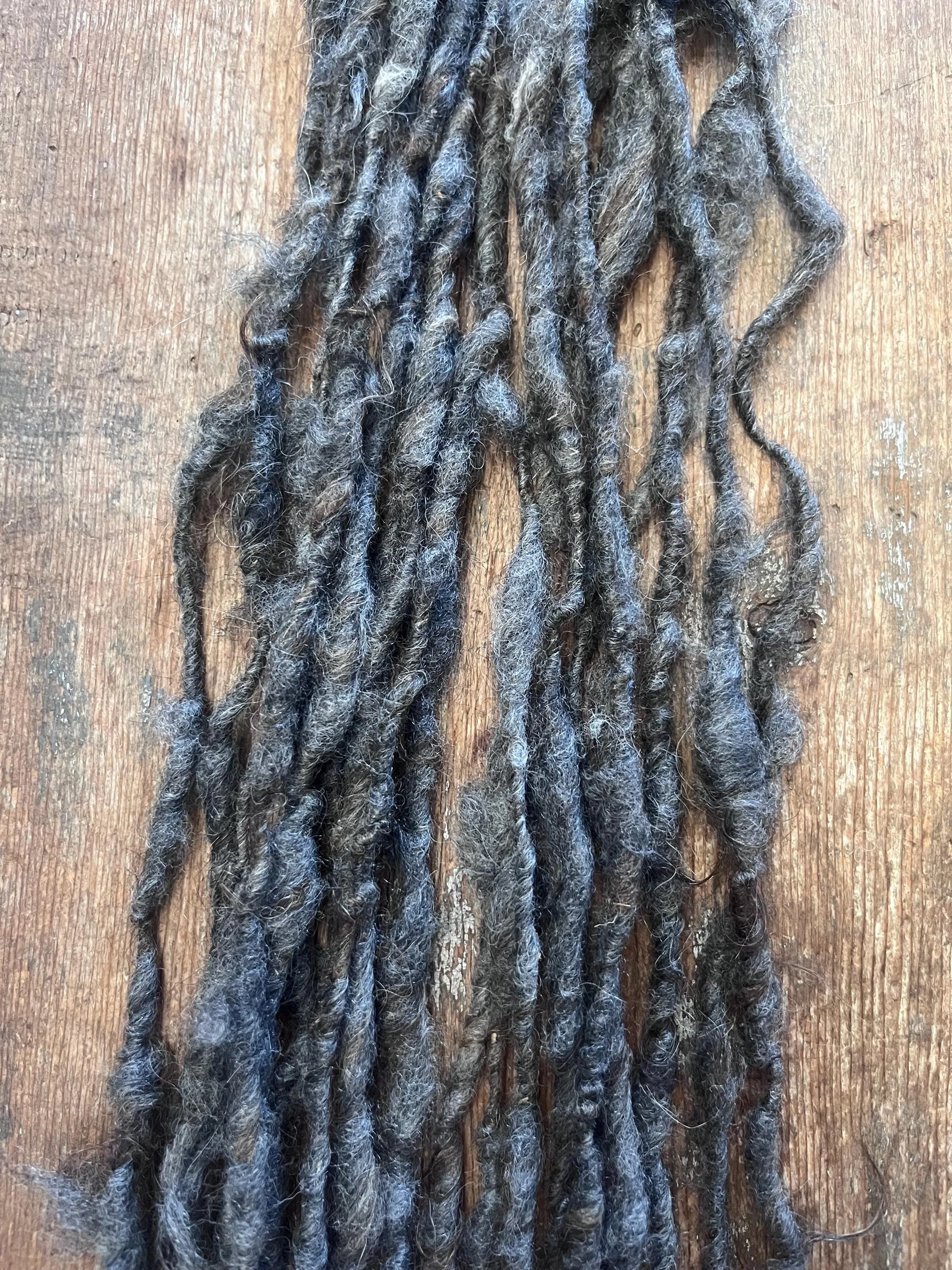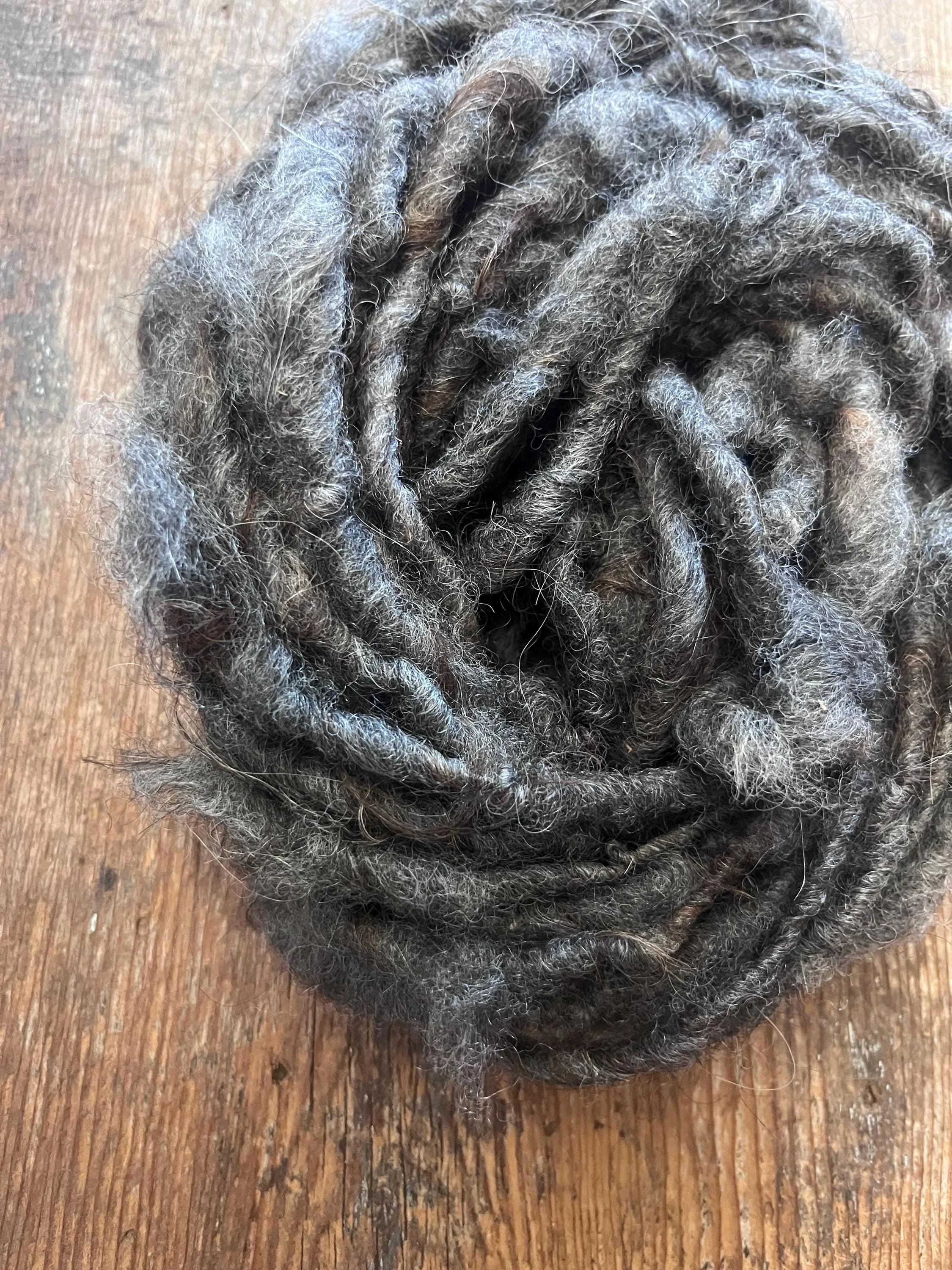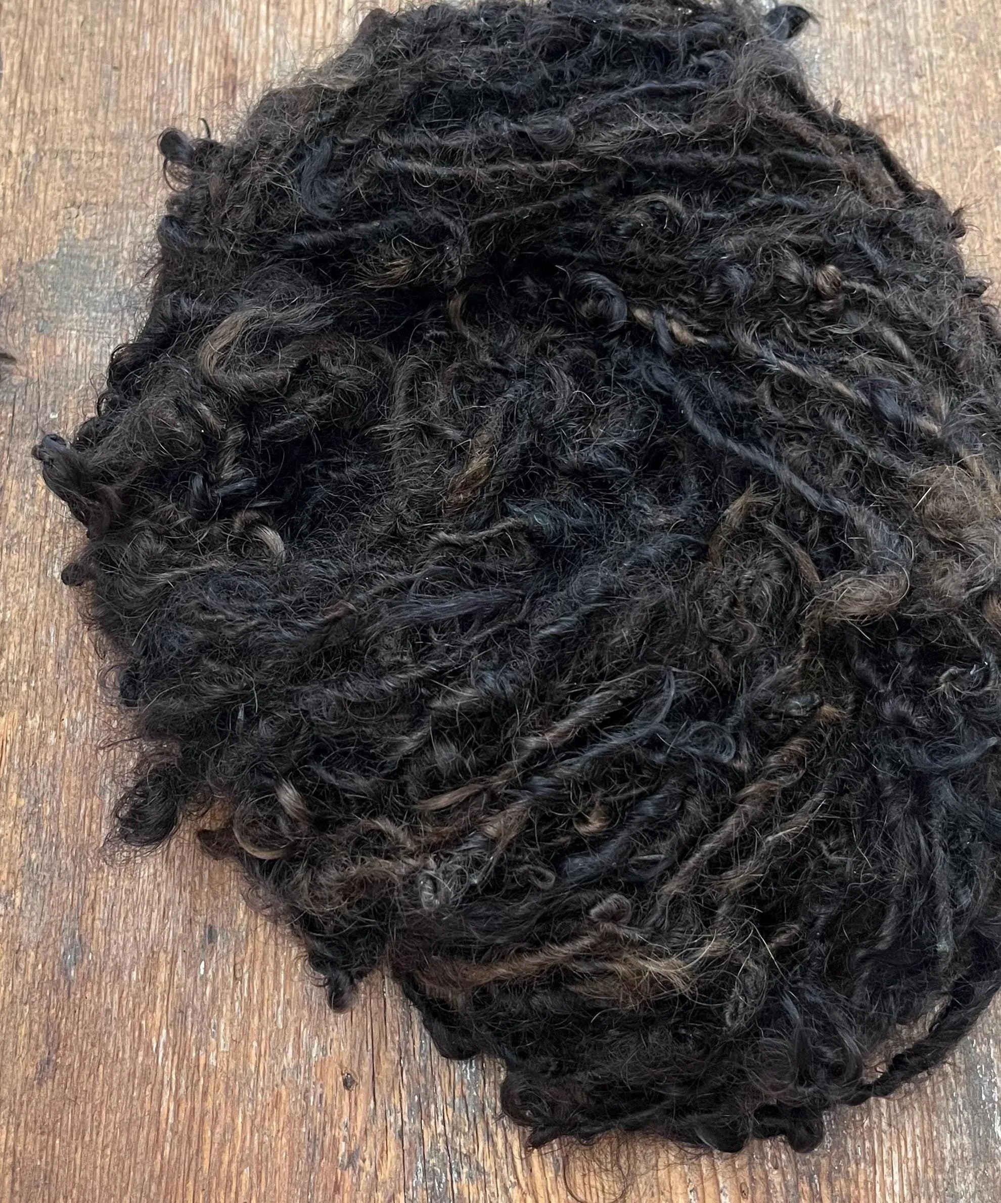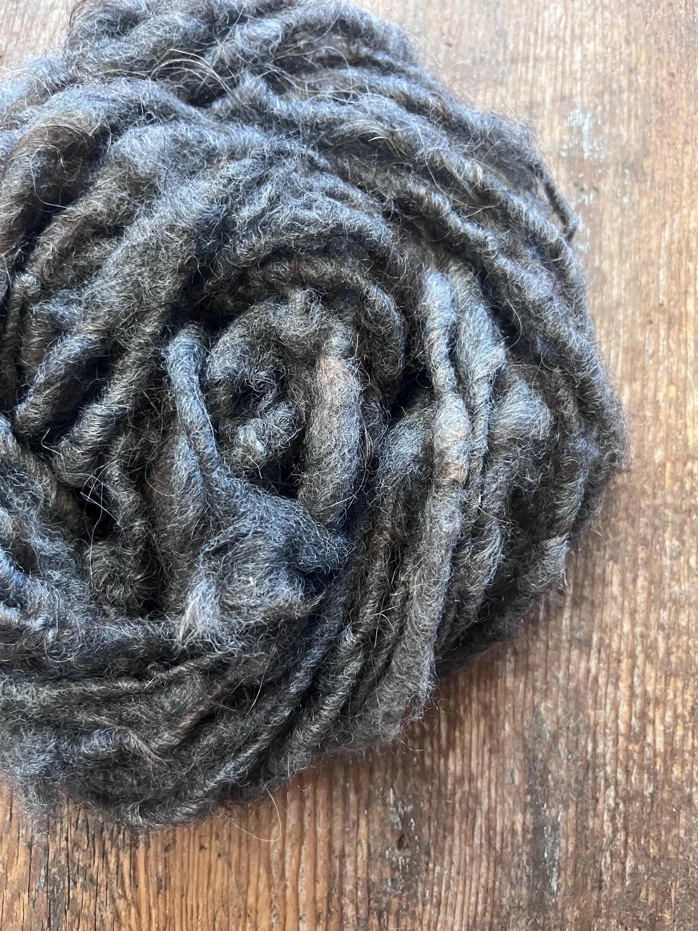 Charcoal grey Lincoln wool yarn, lockspun curly art yarn