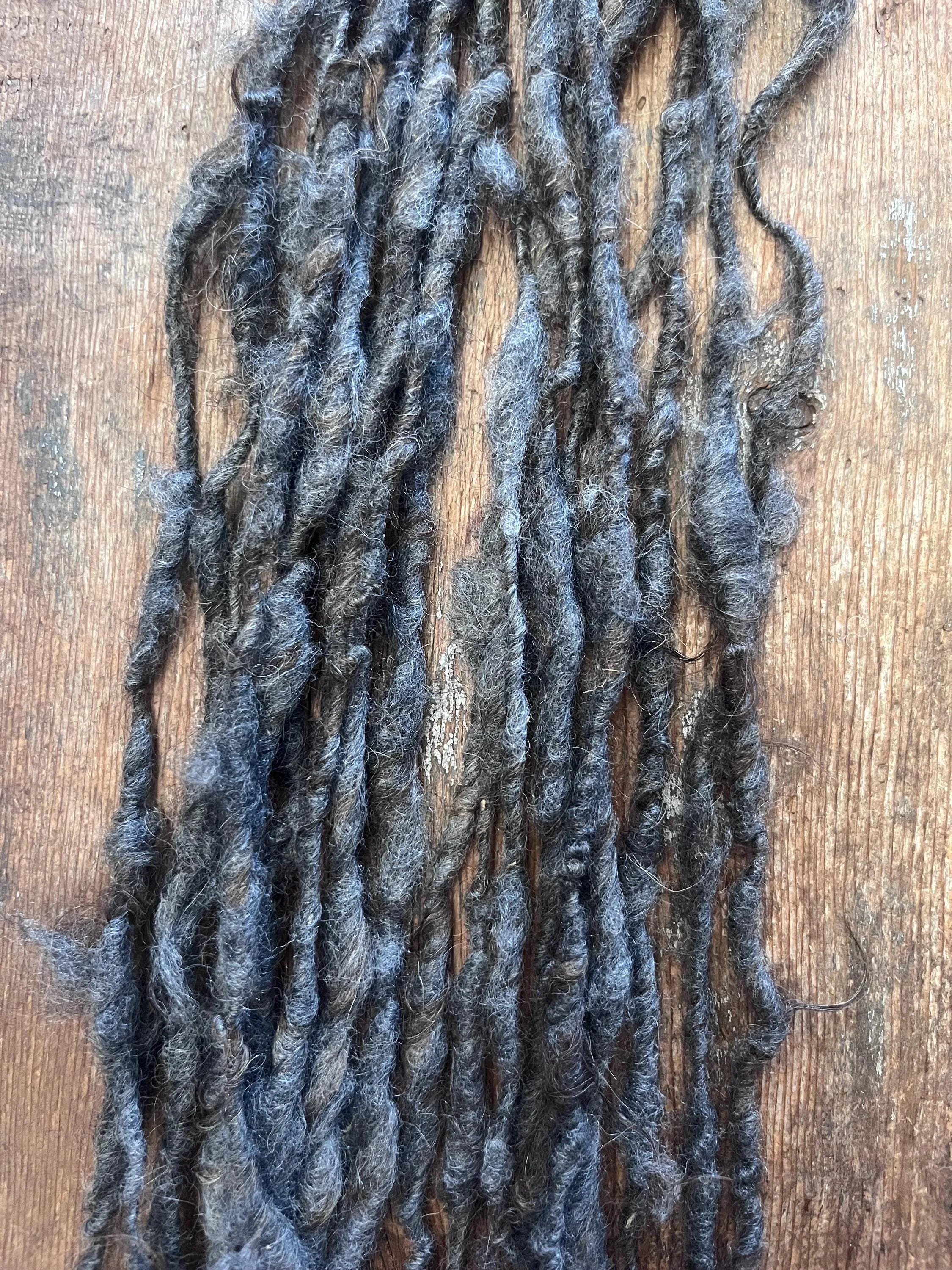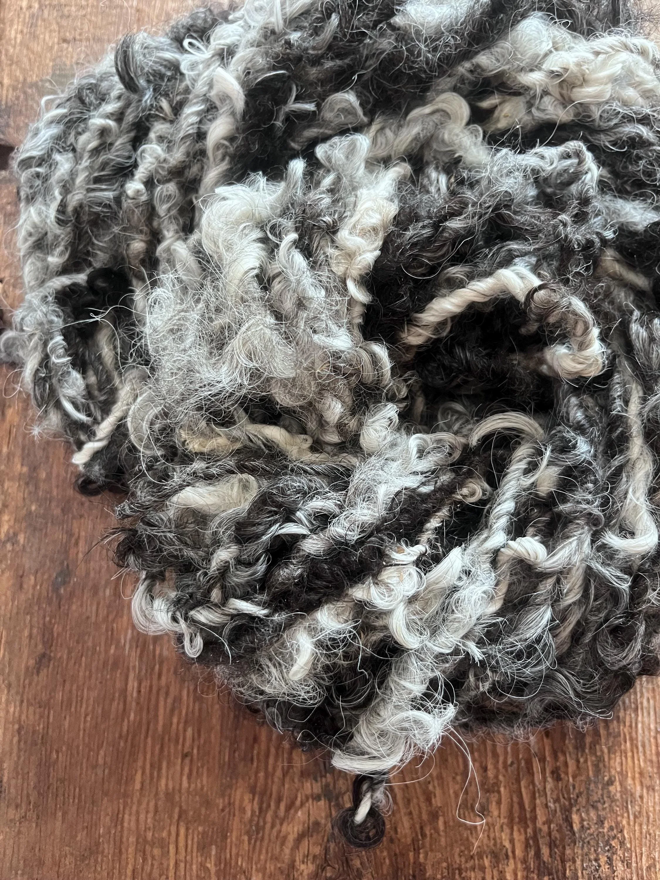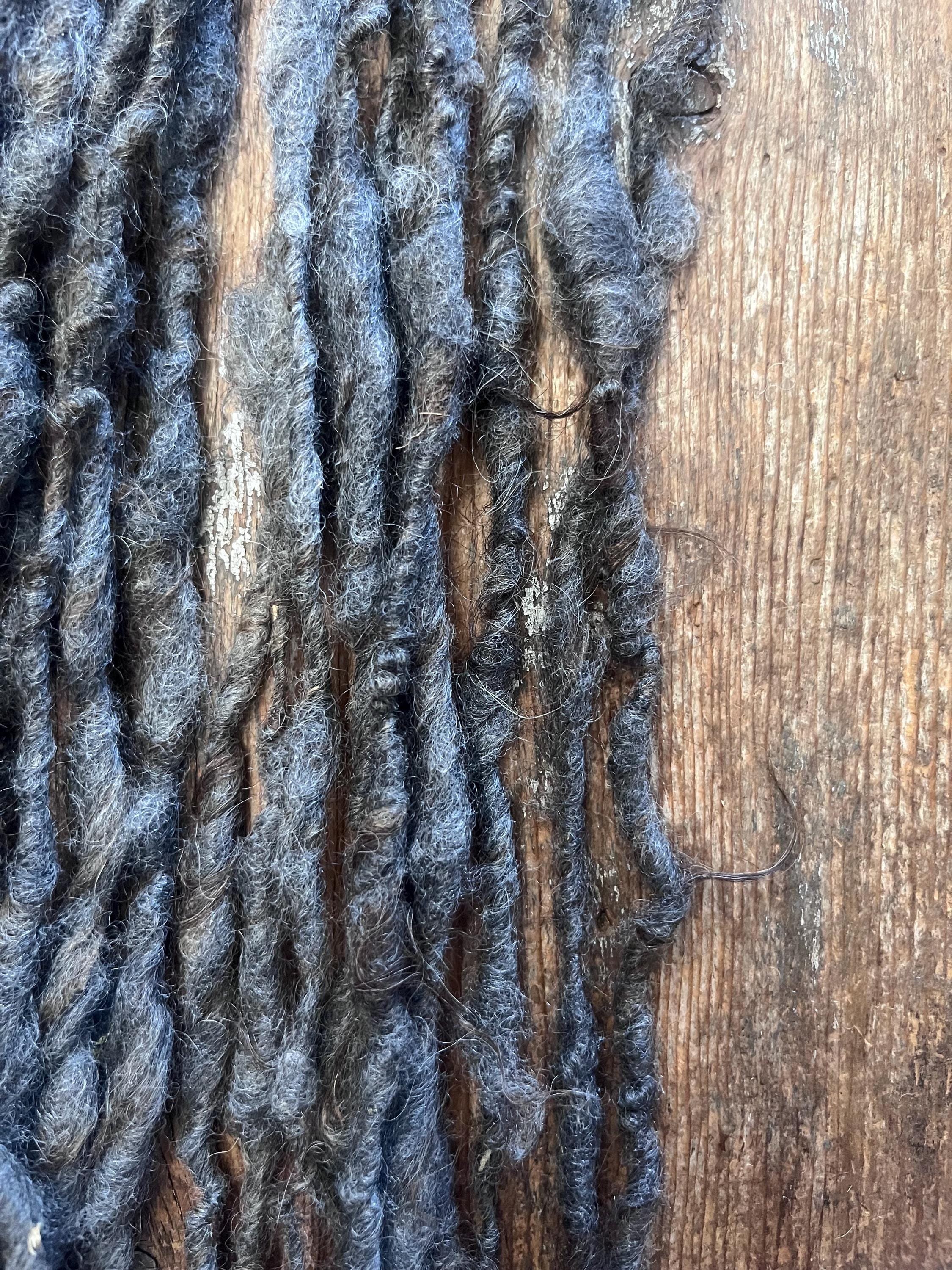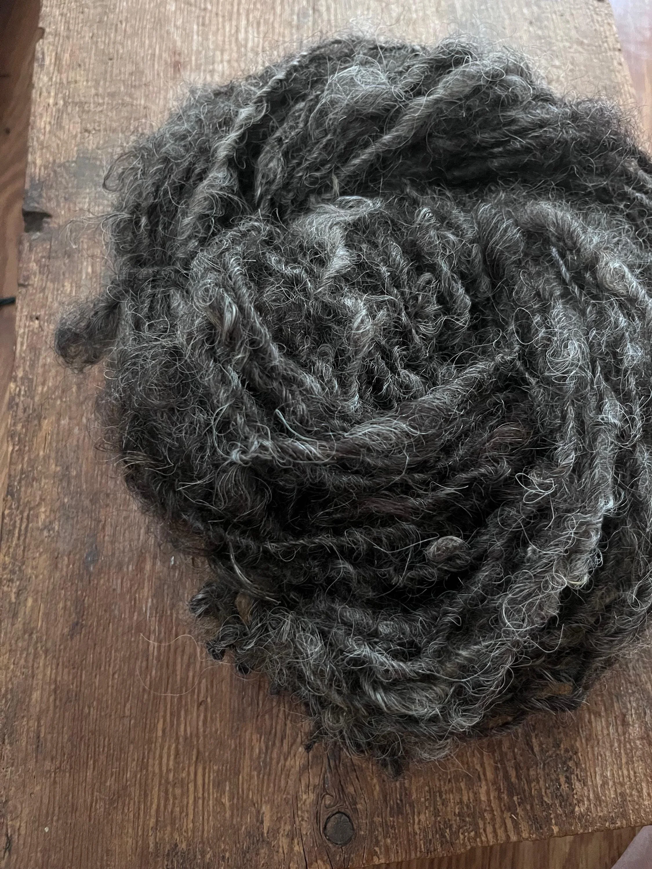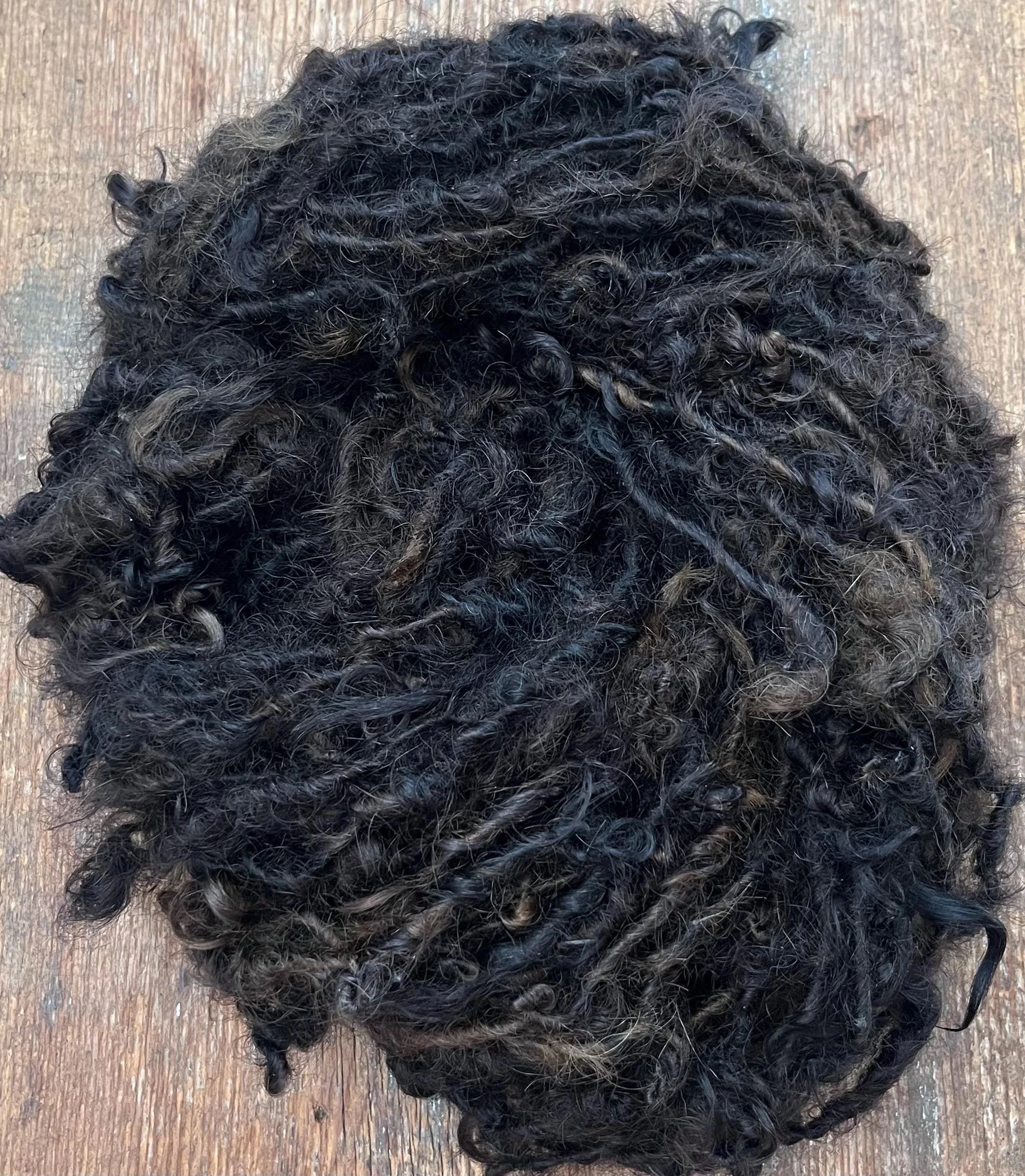 Charcoal grey Lincoln wool yarn, lockspun curly art yarn