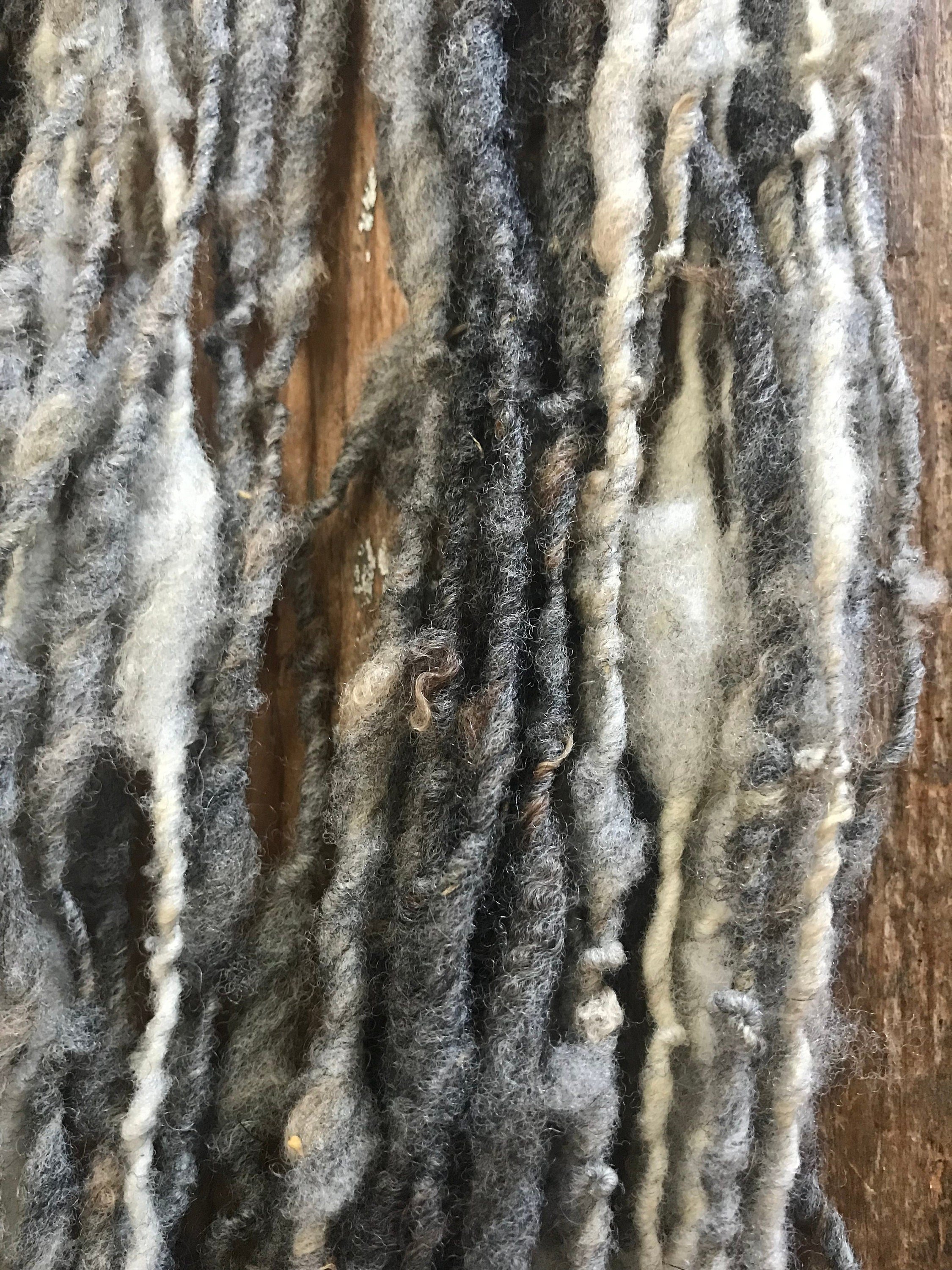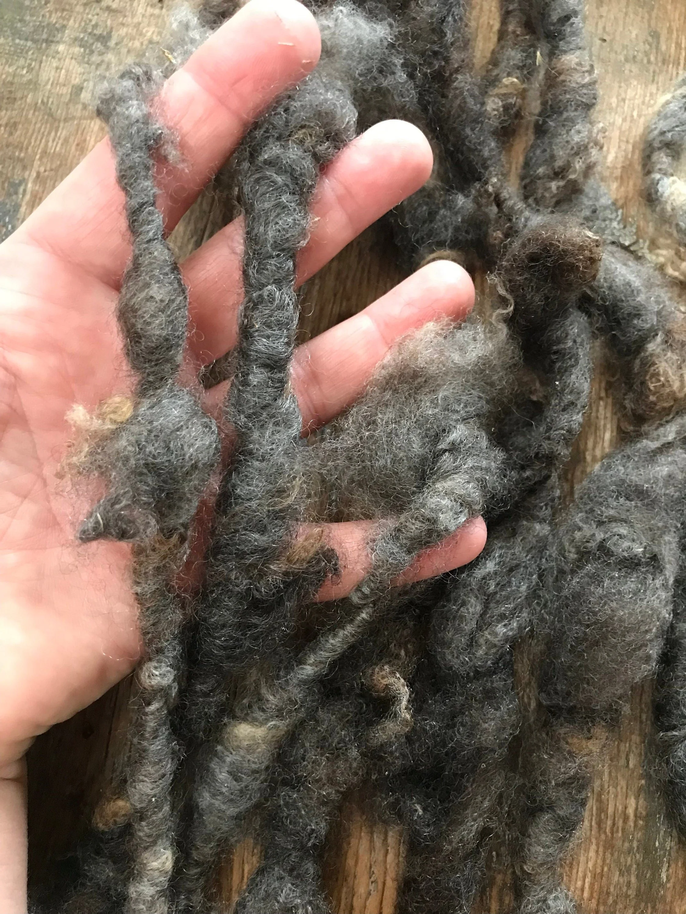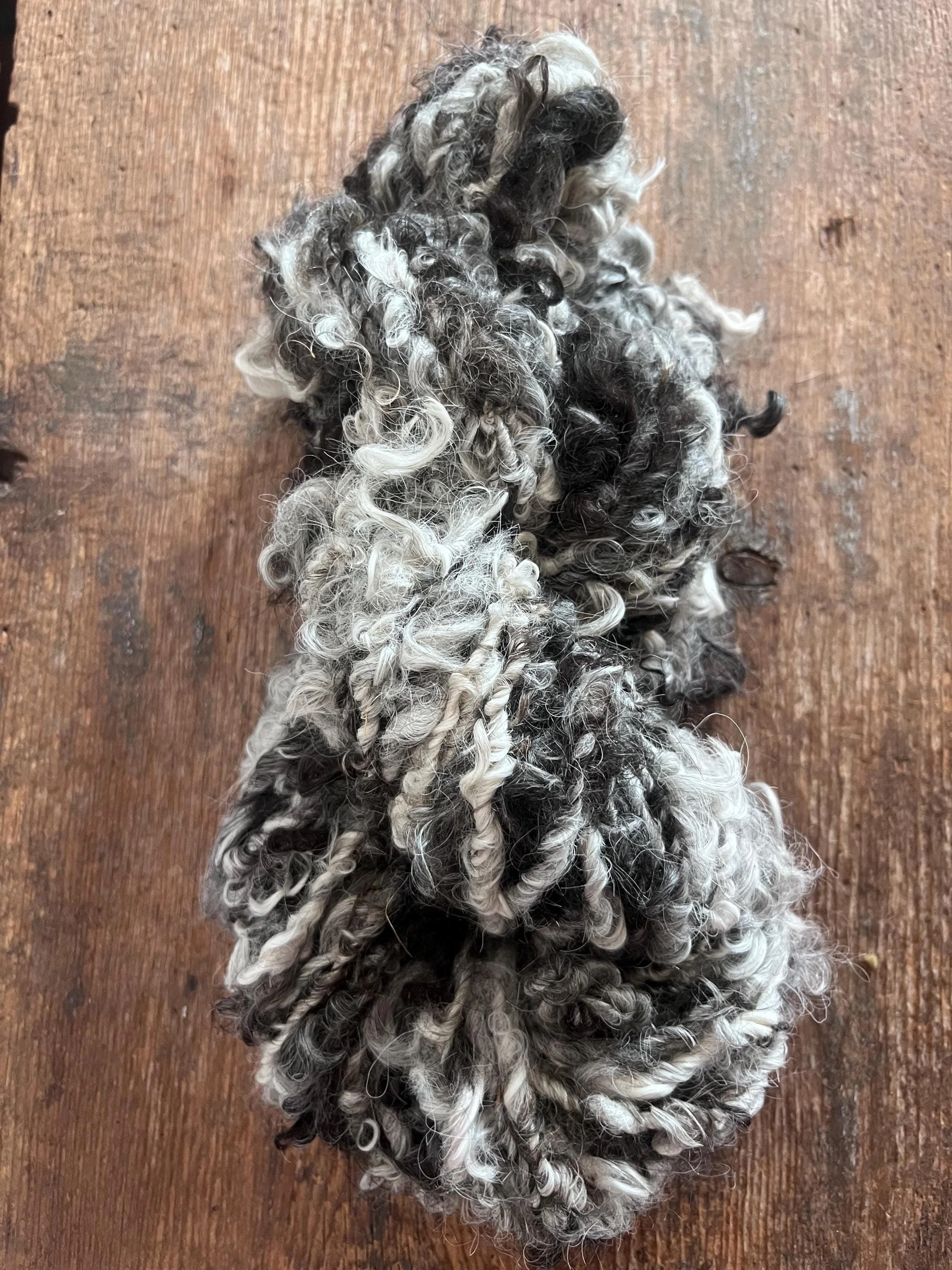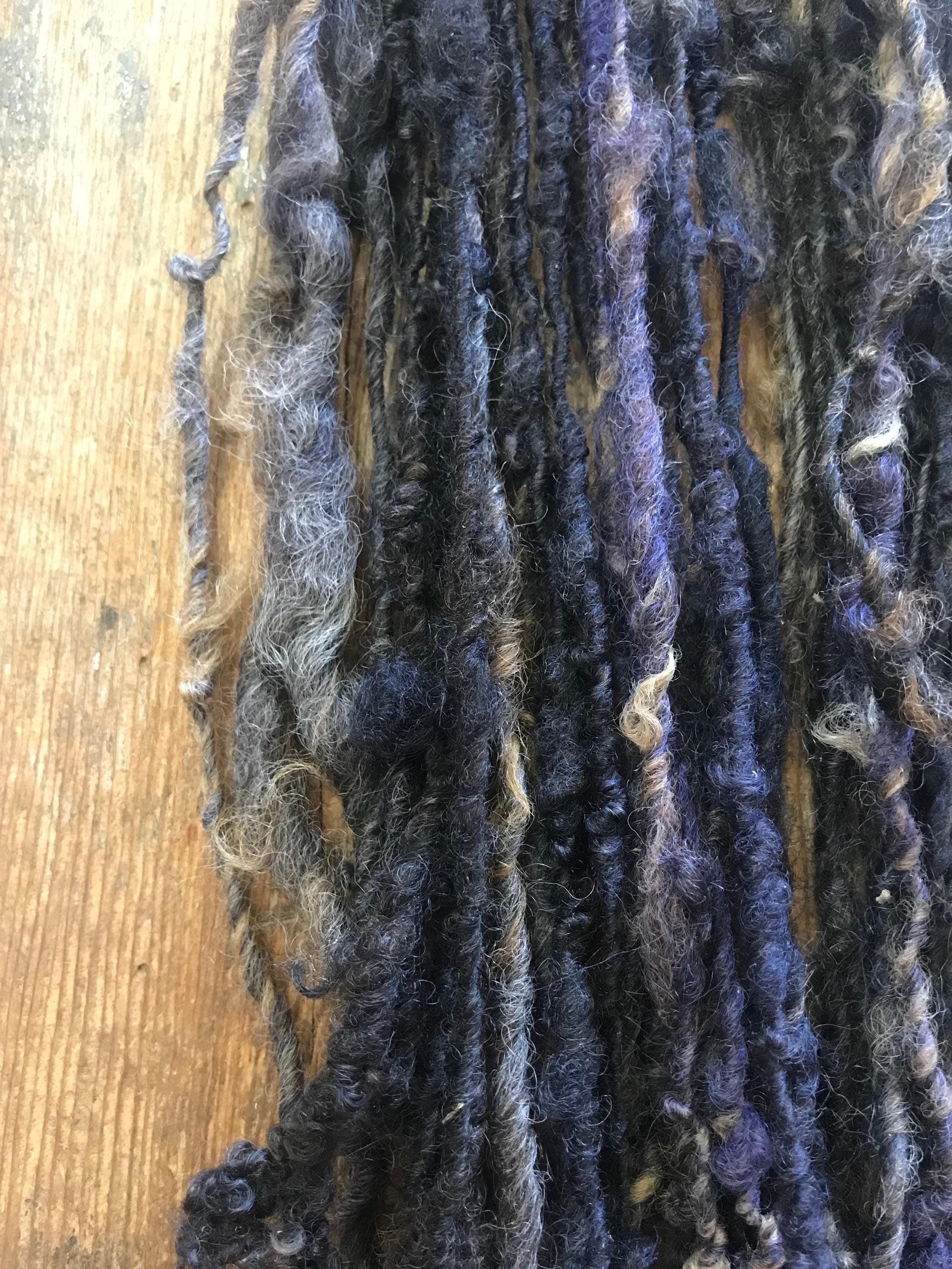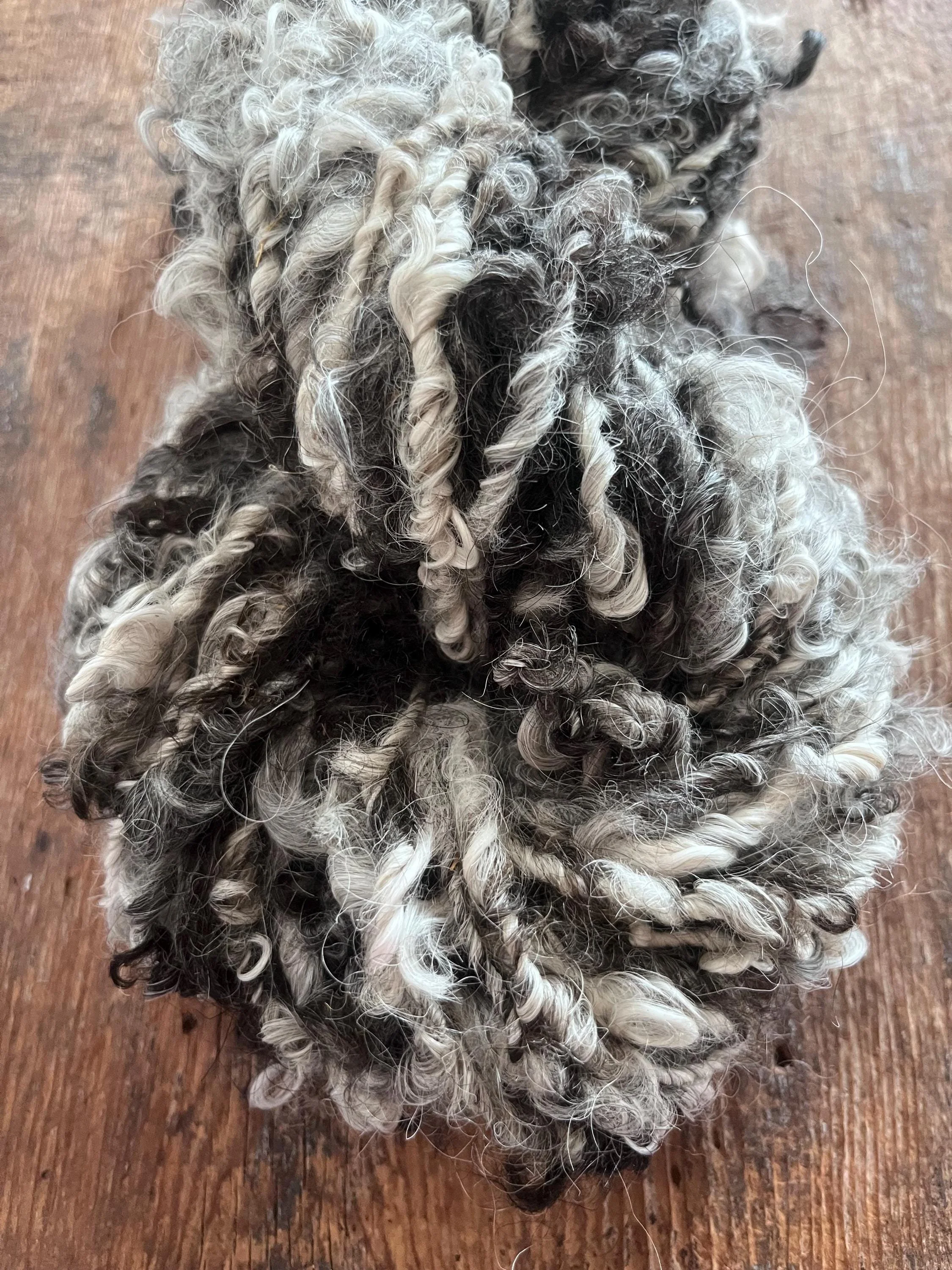 Charcoal grey Lincoln wool yarn, lockspun curly art yarn