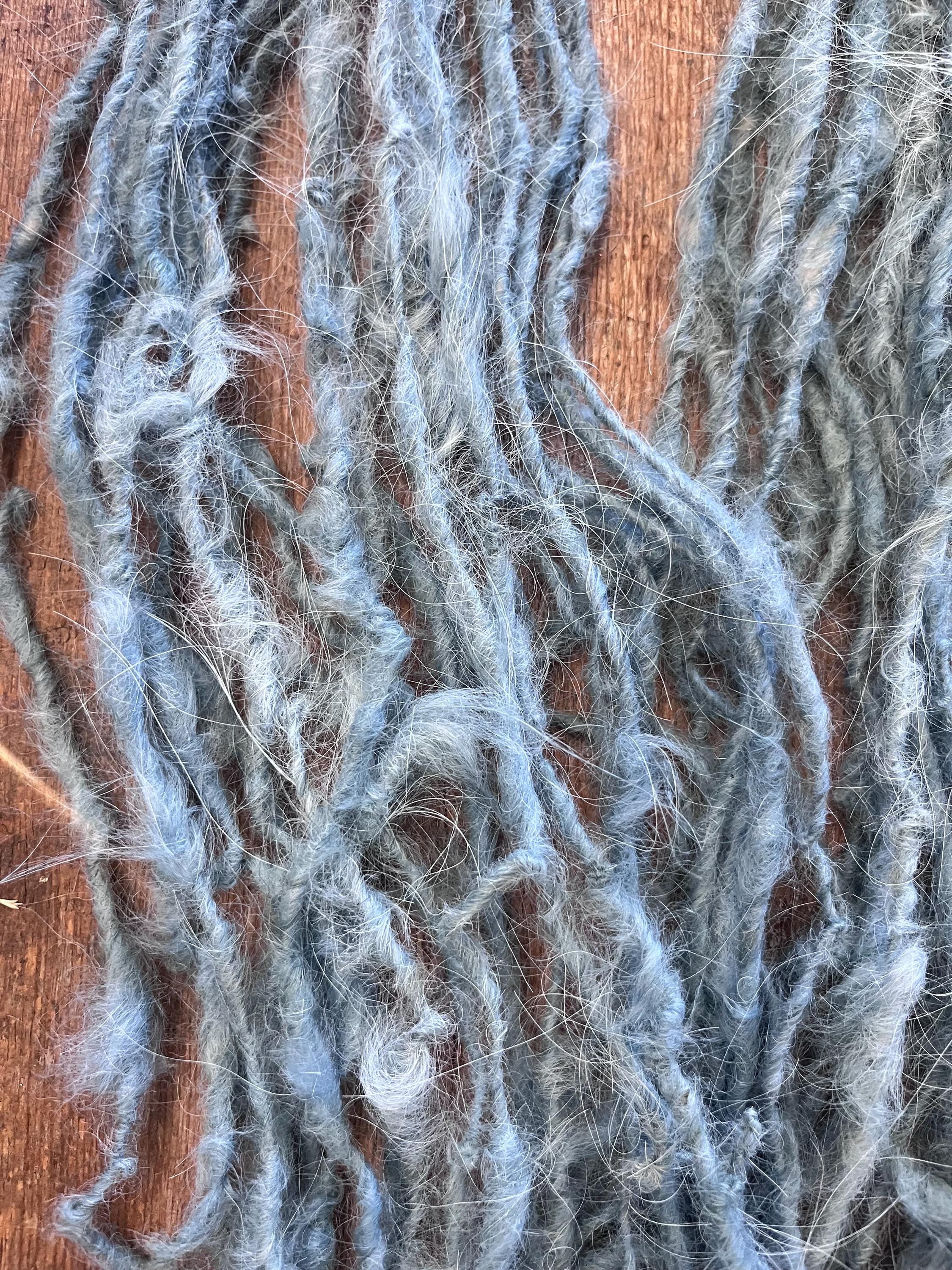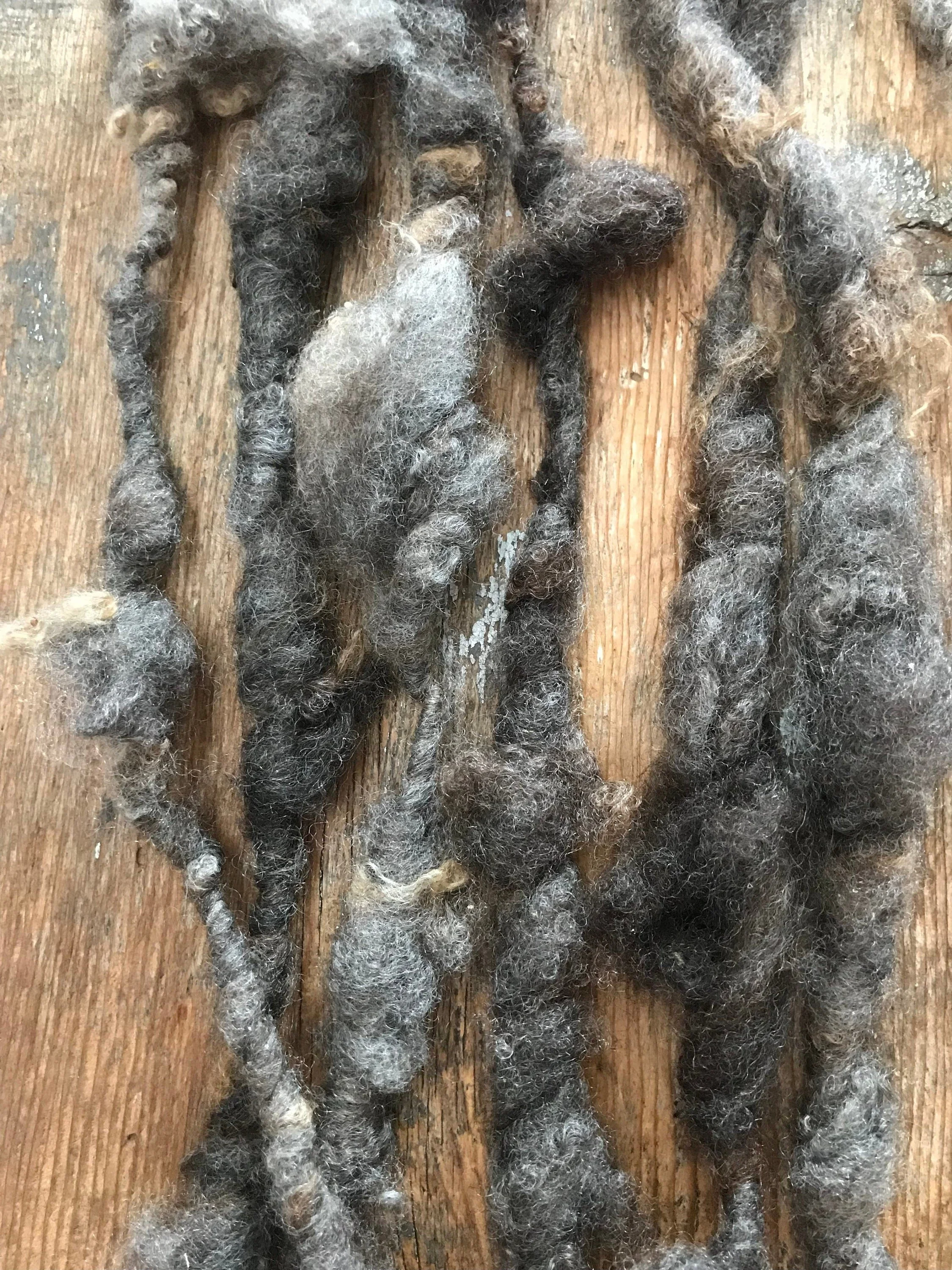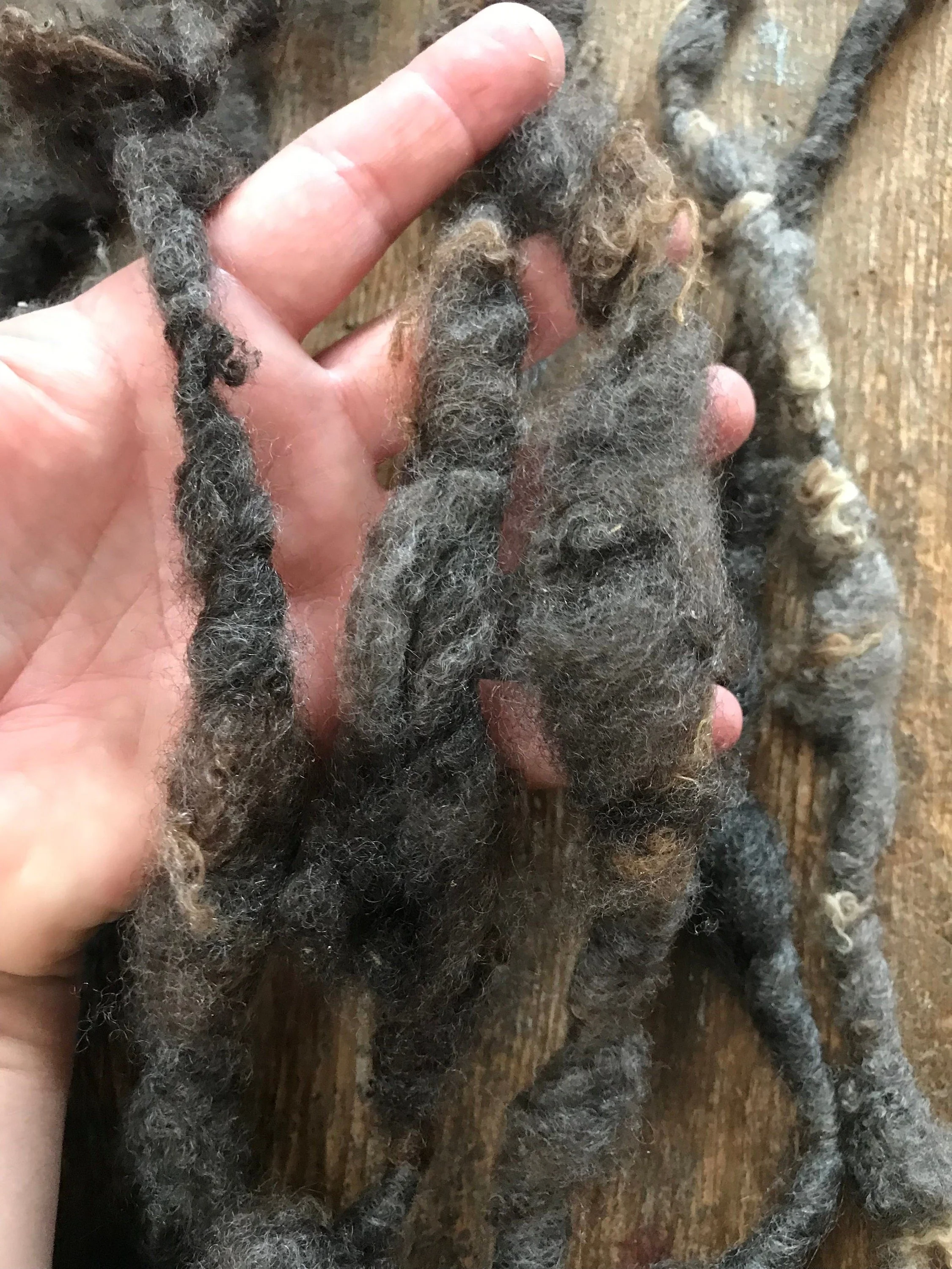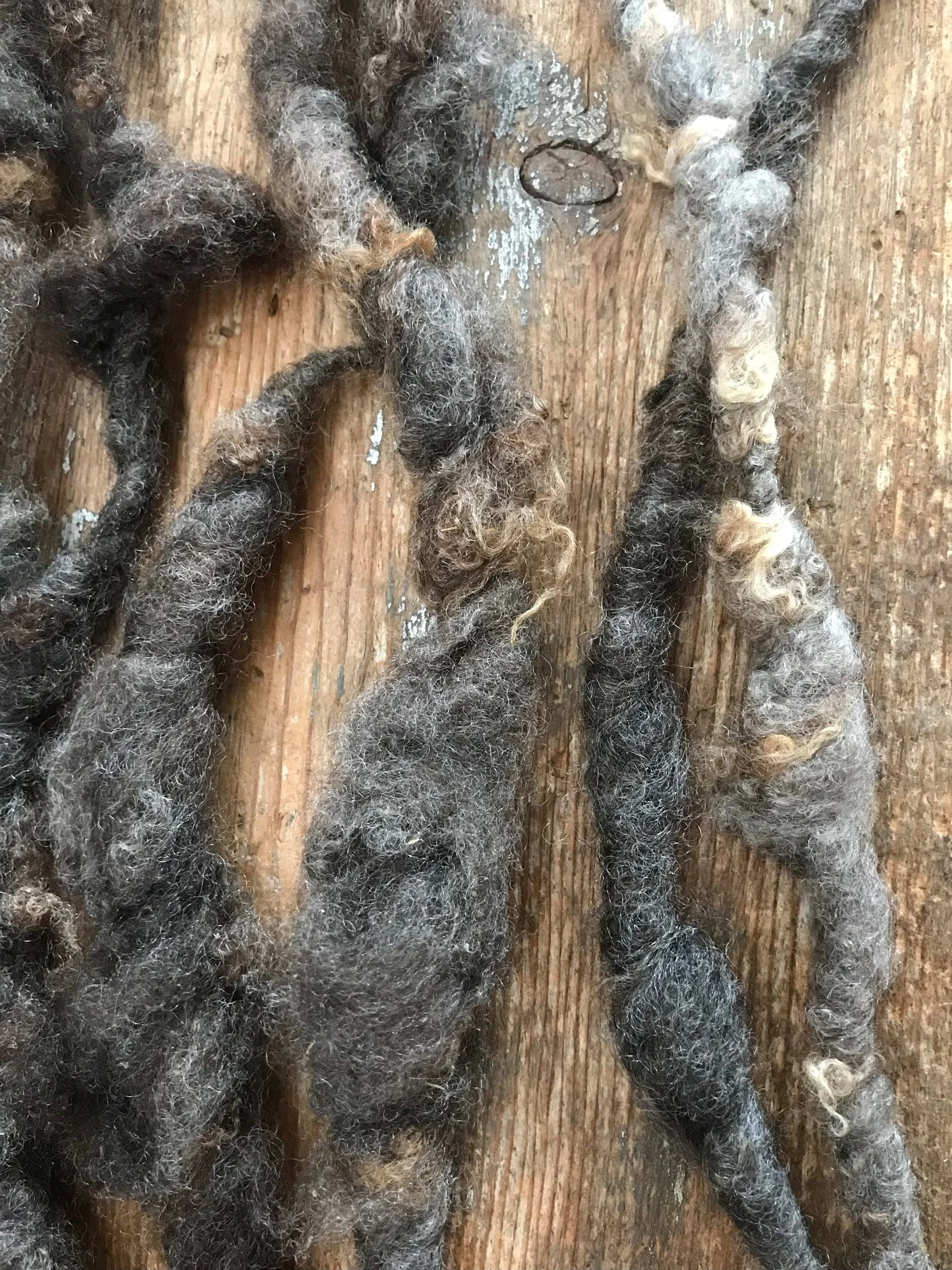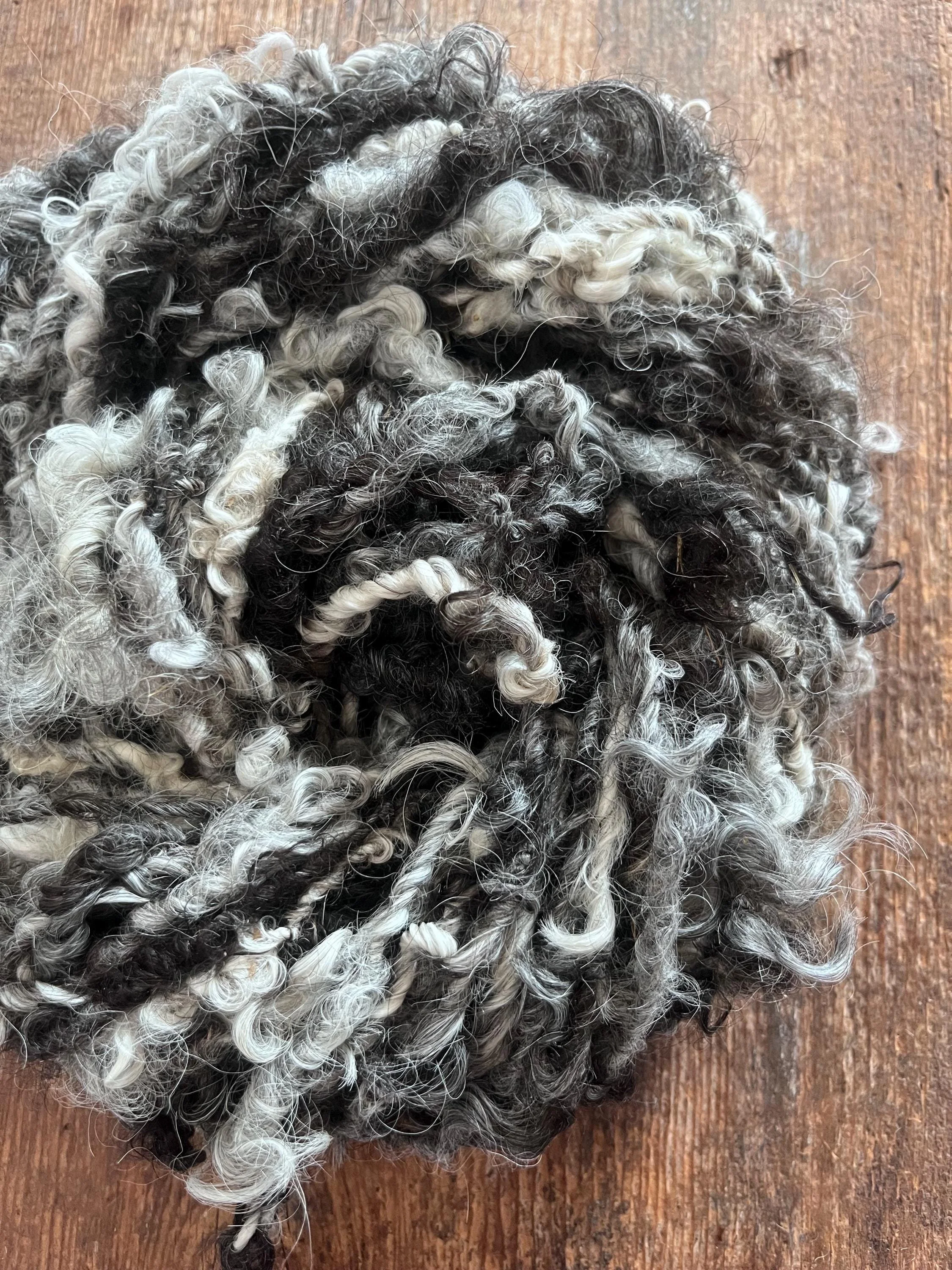 Charcoal grey Lincoln wool yarn, lockspun curly art yarn