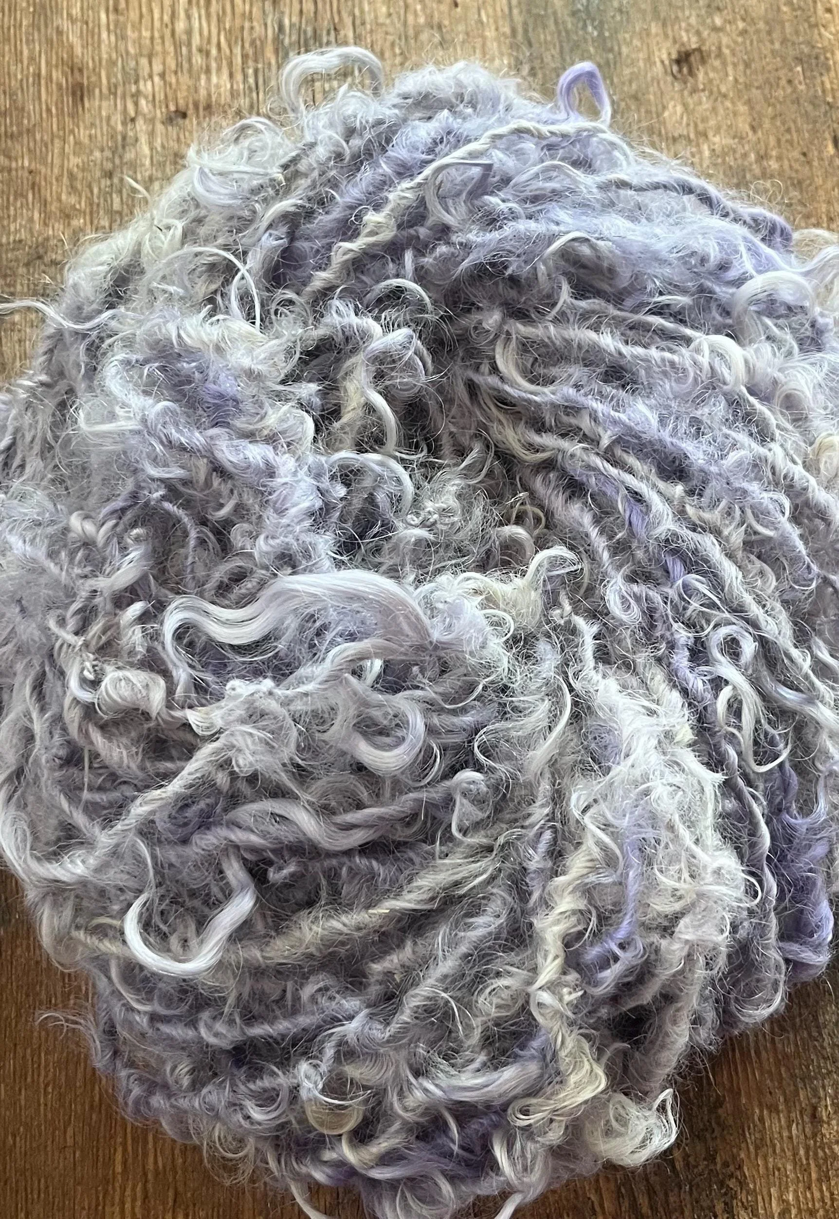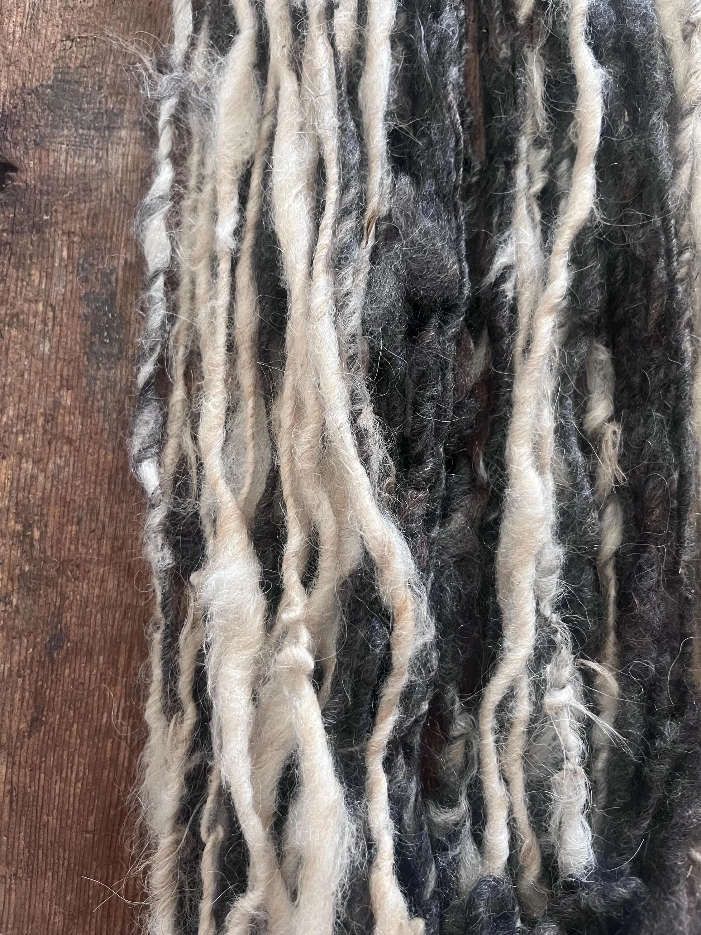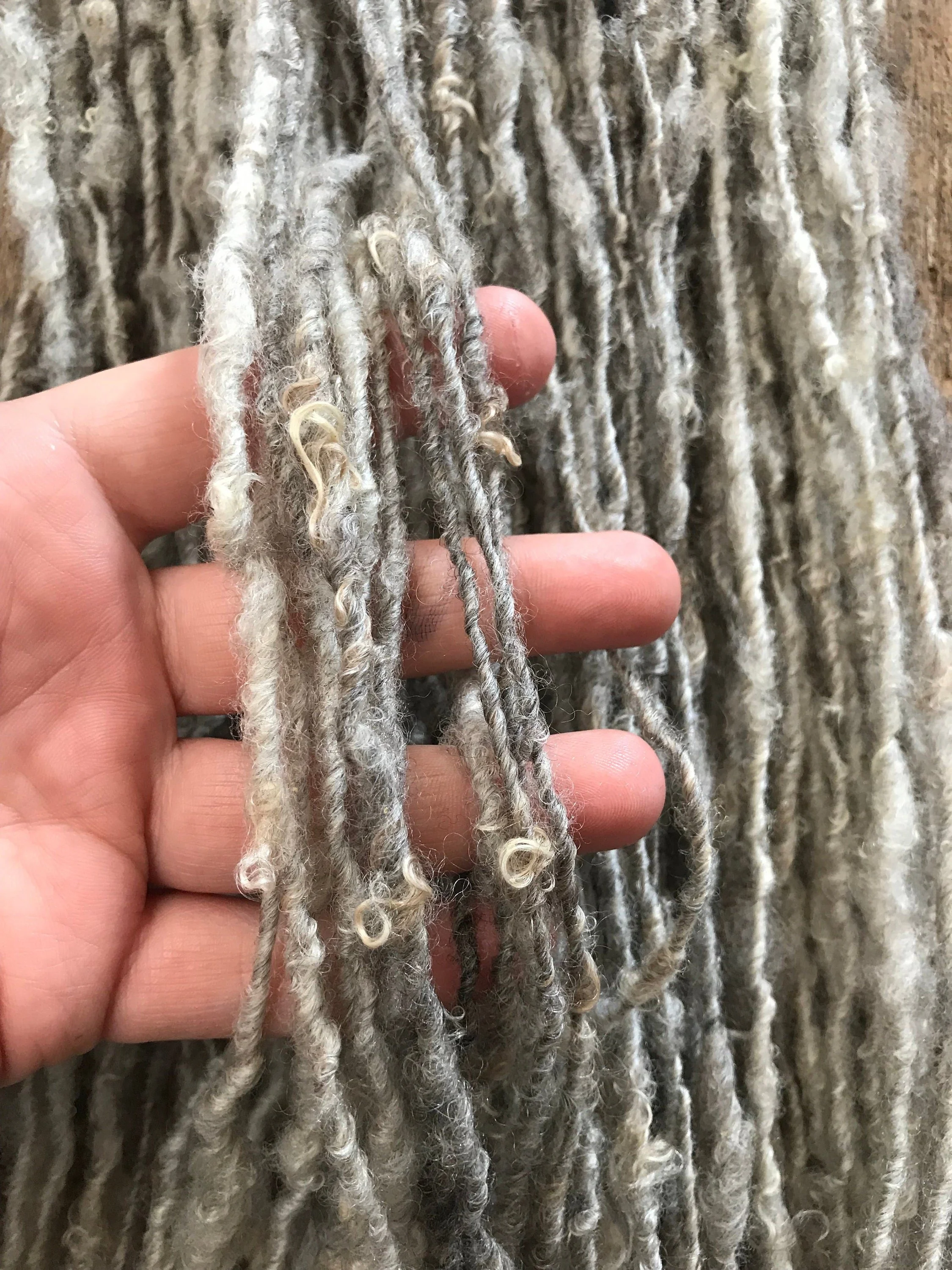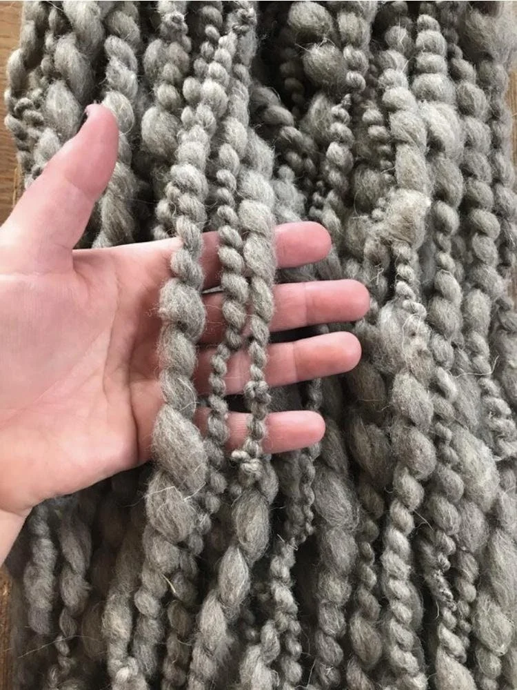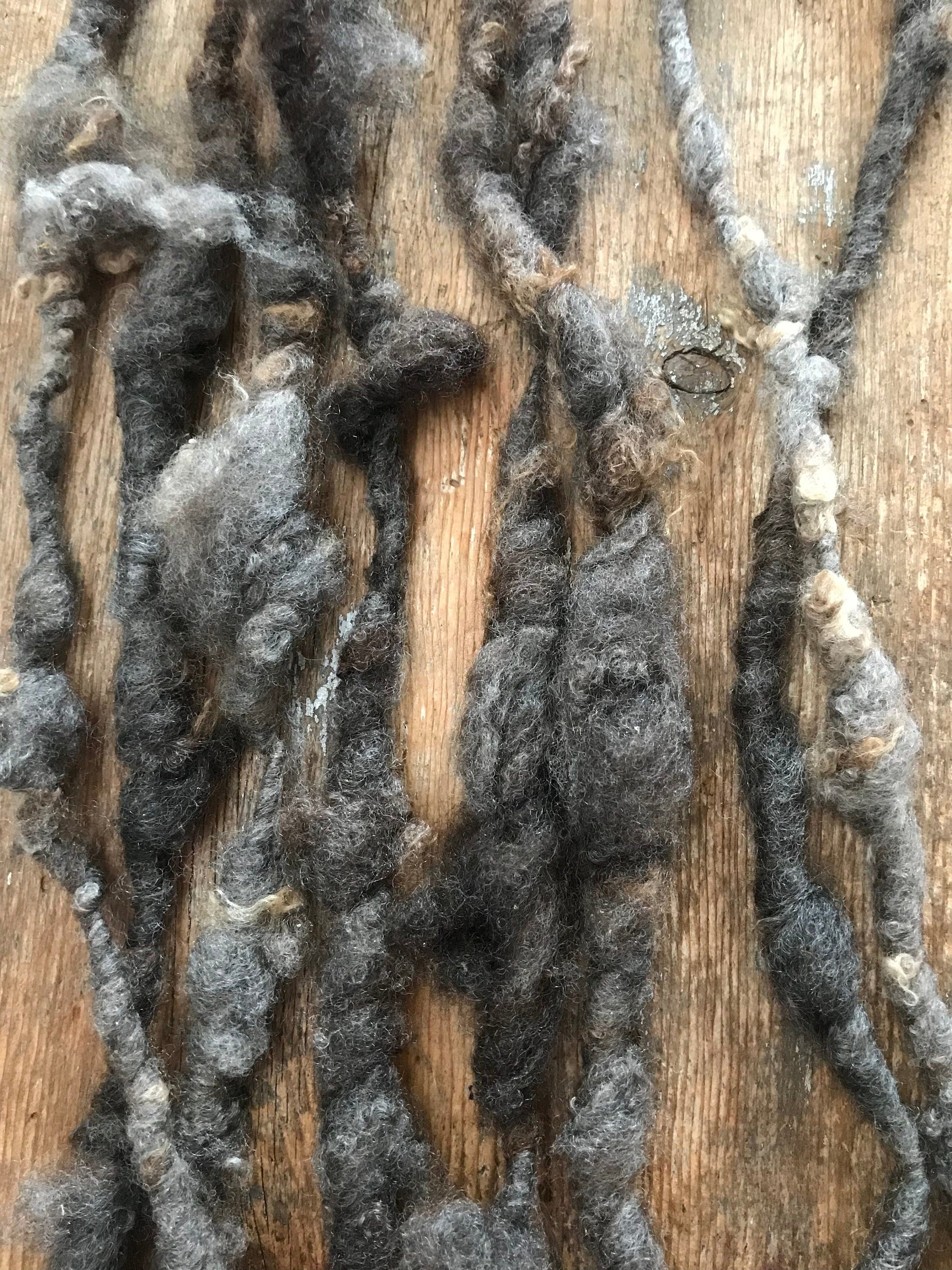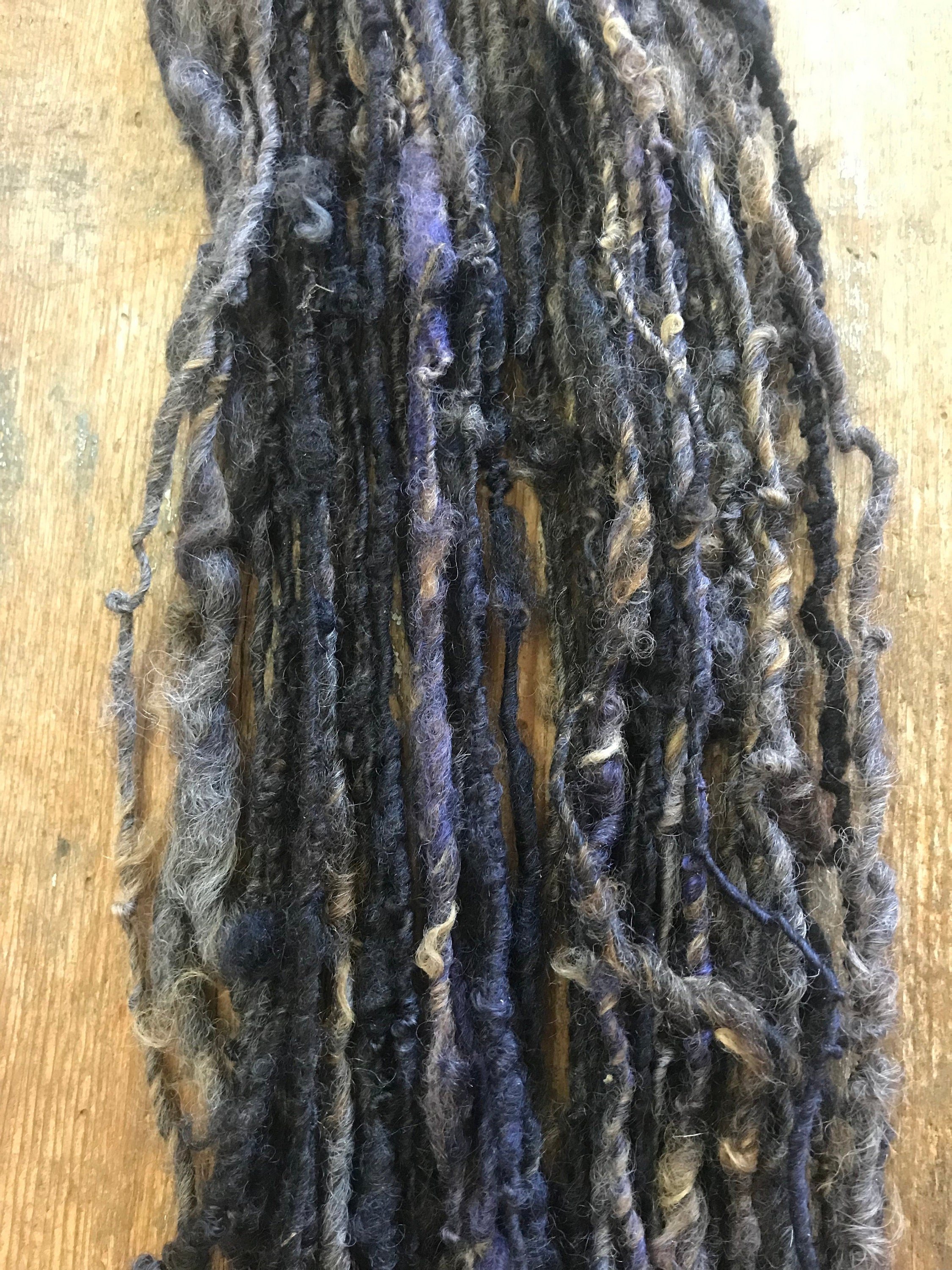 Charcoal grey Lincoln wool yarn, lockspun curly art yarn