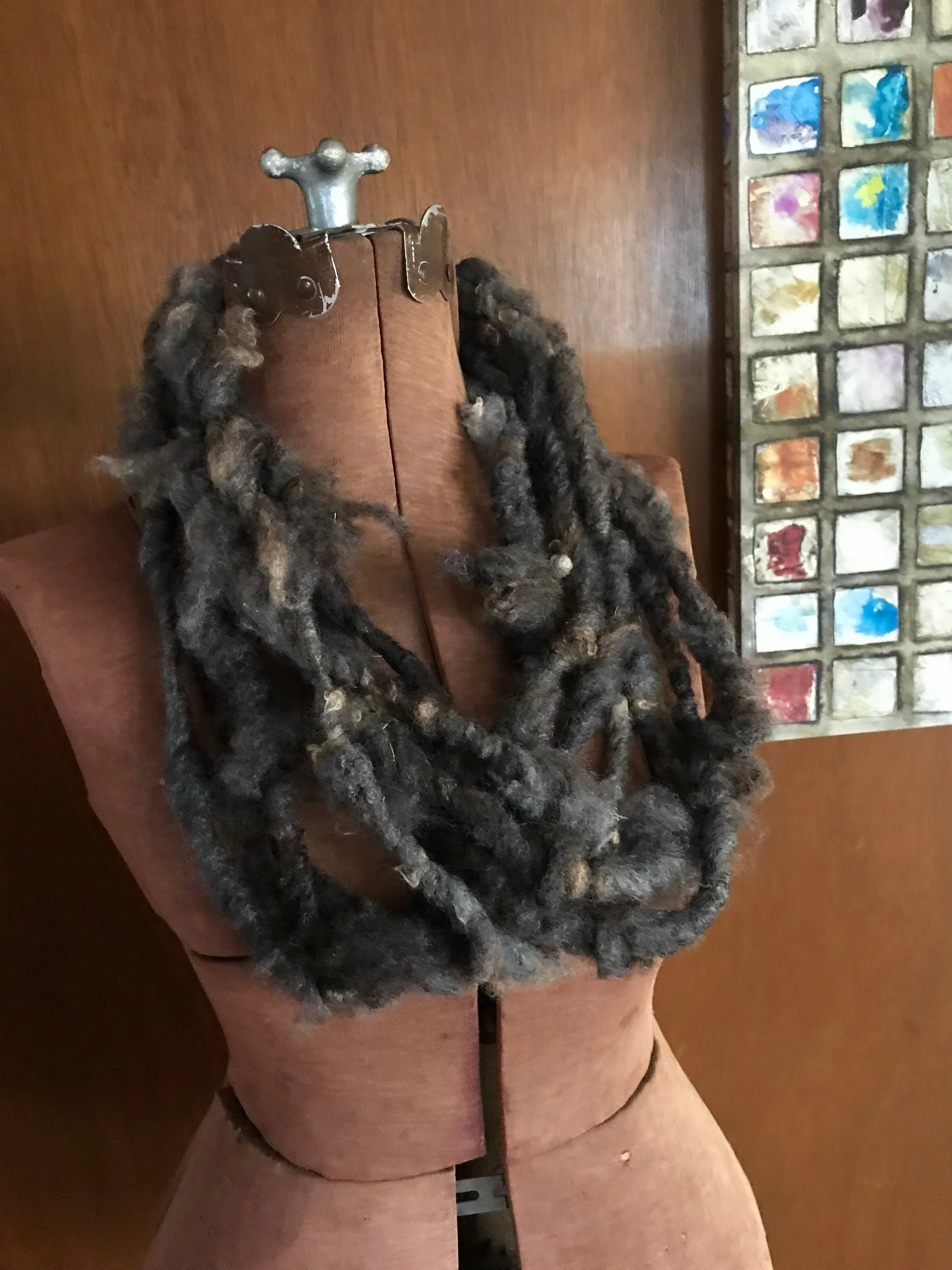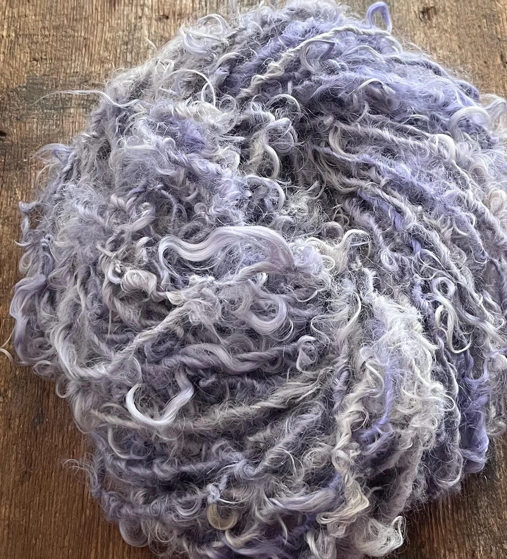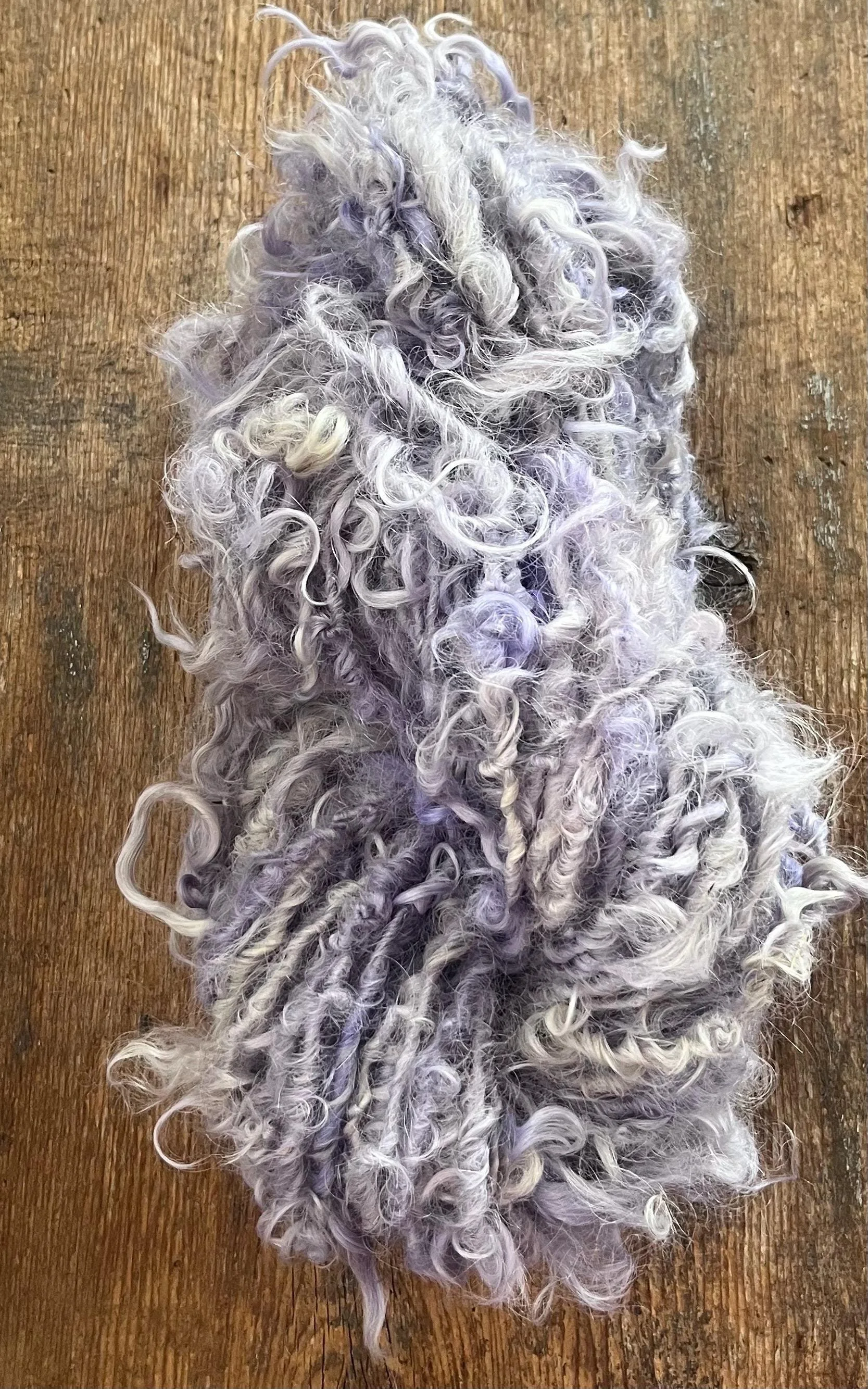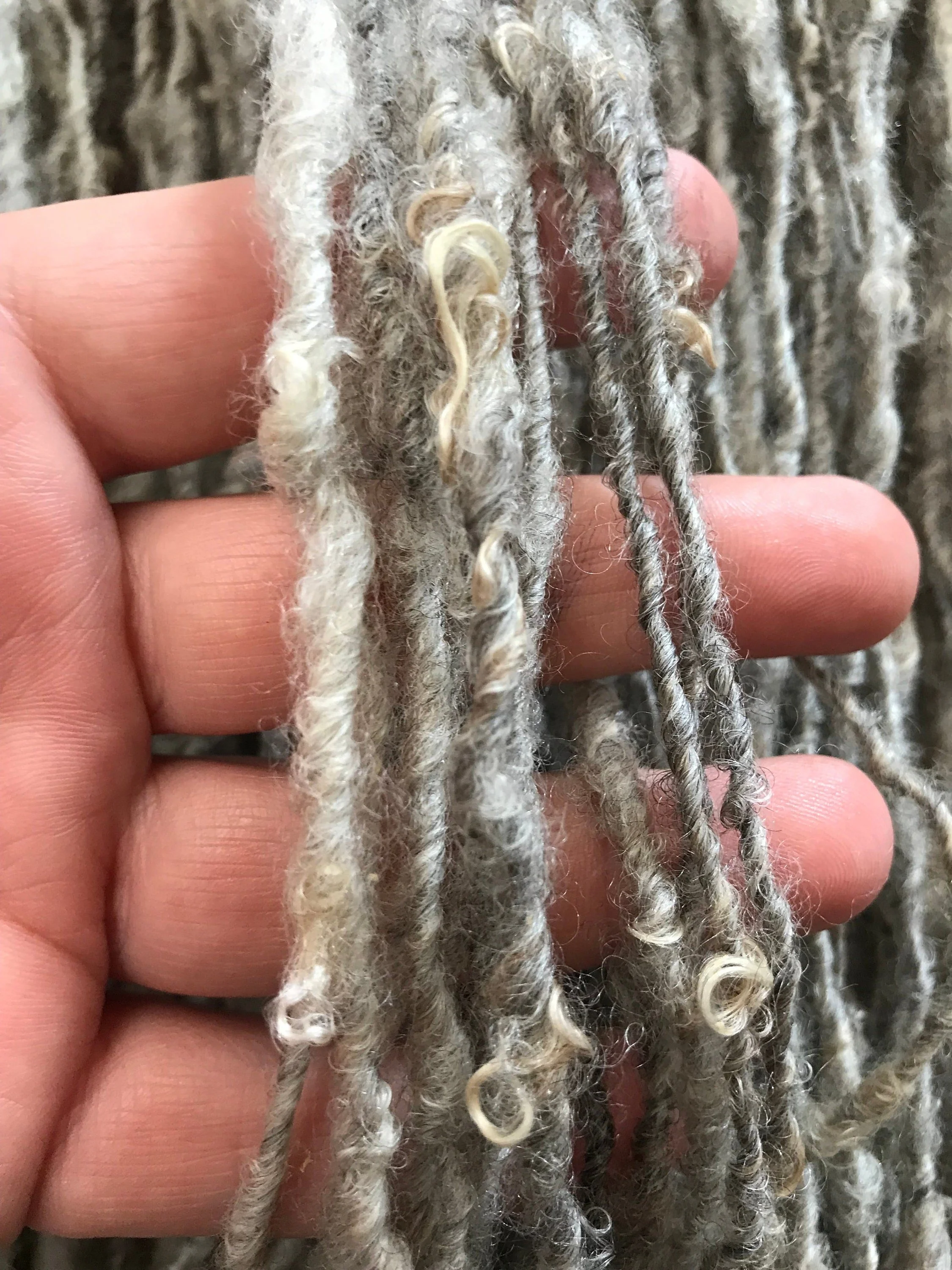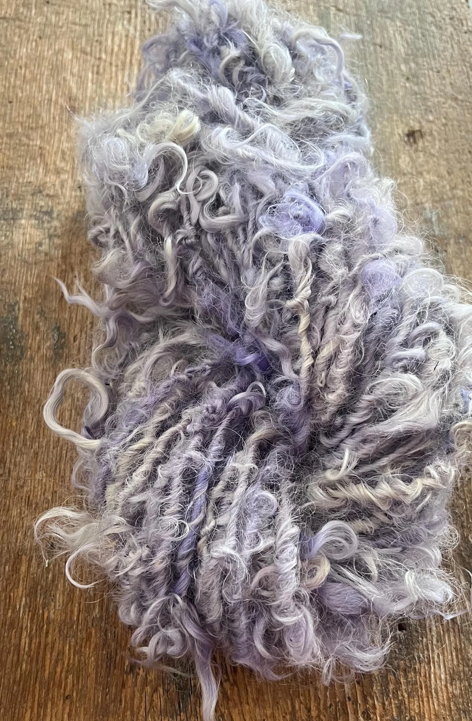 Charcoal grey Lincoln wool yarn, lockspun curly art yarn