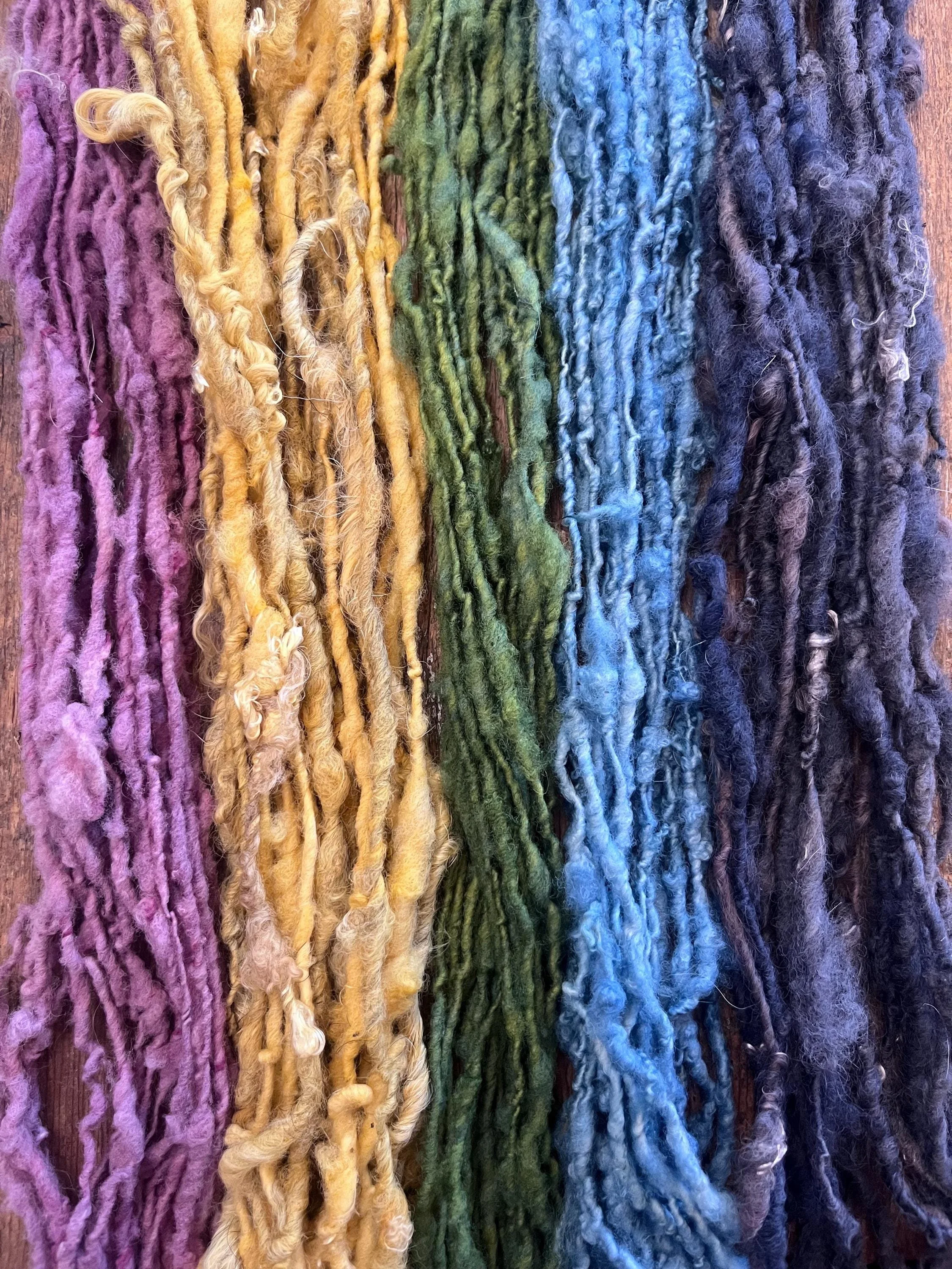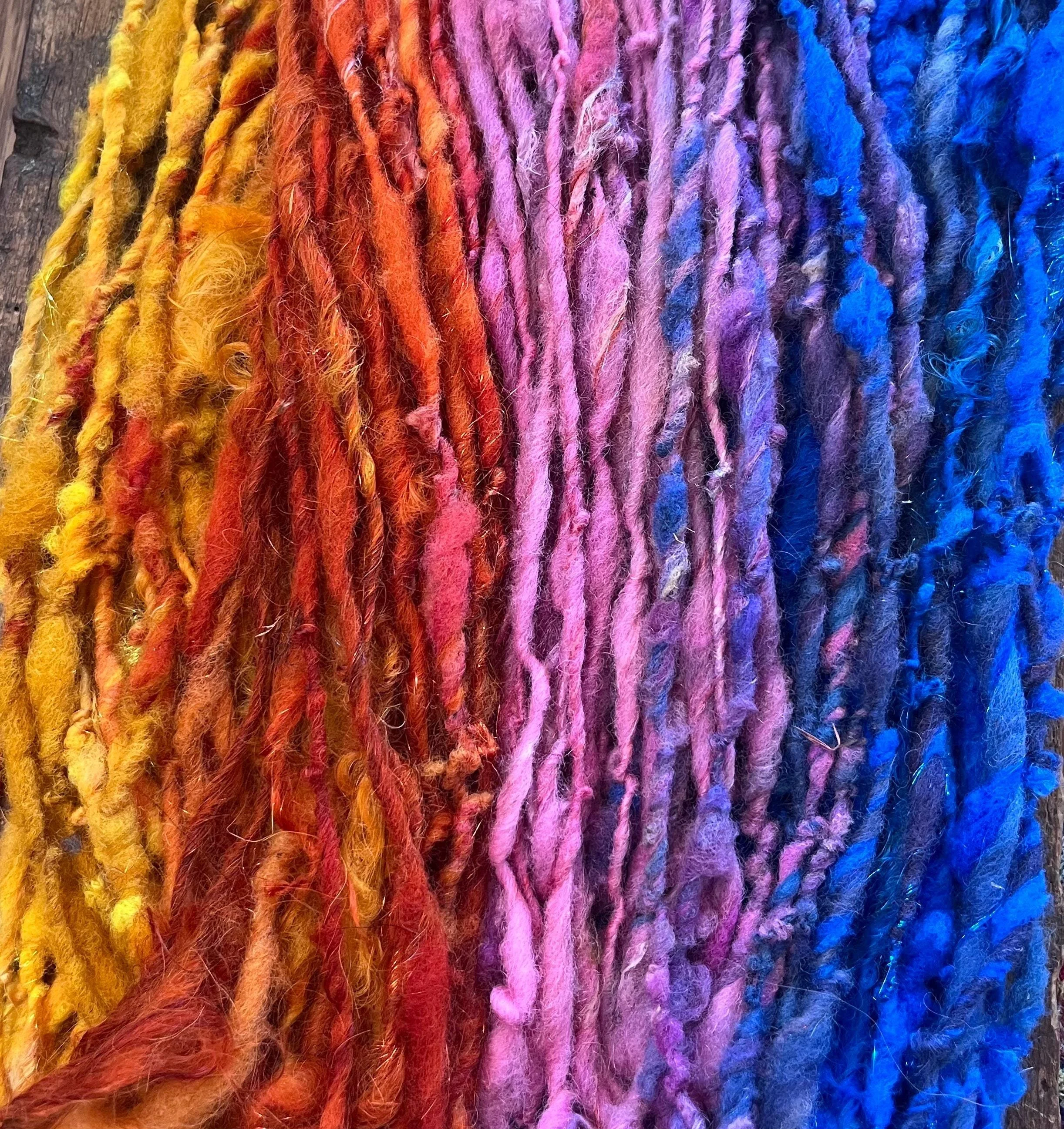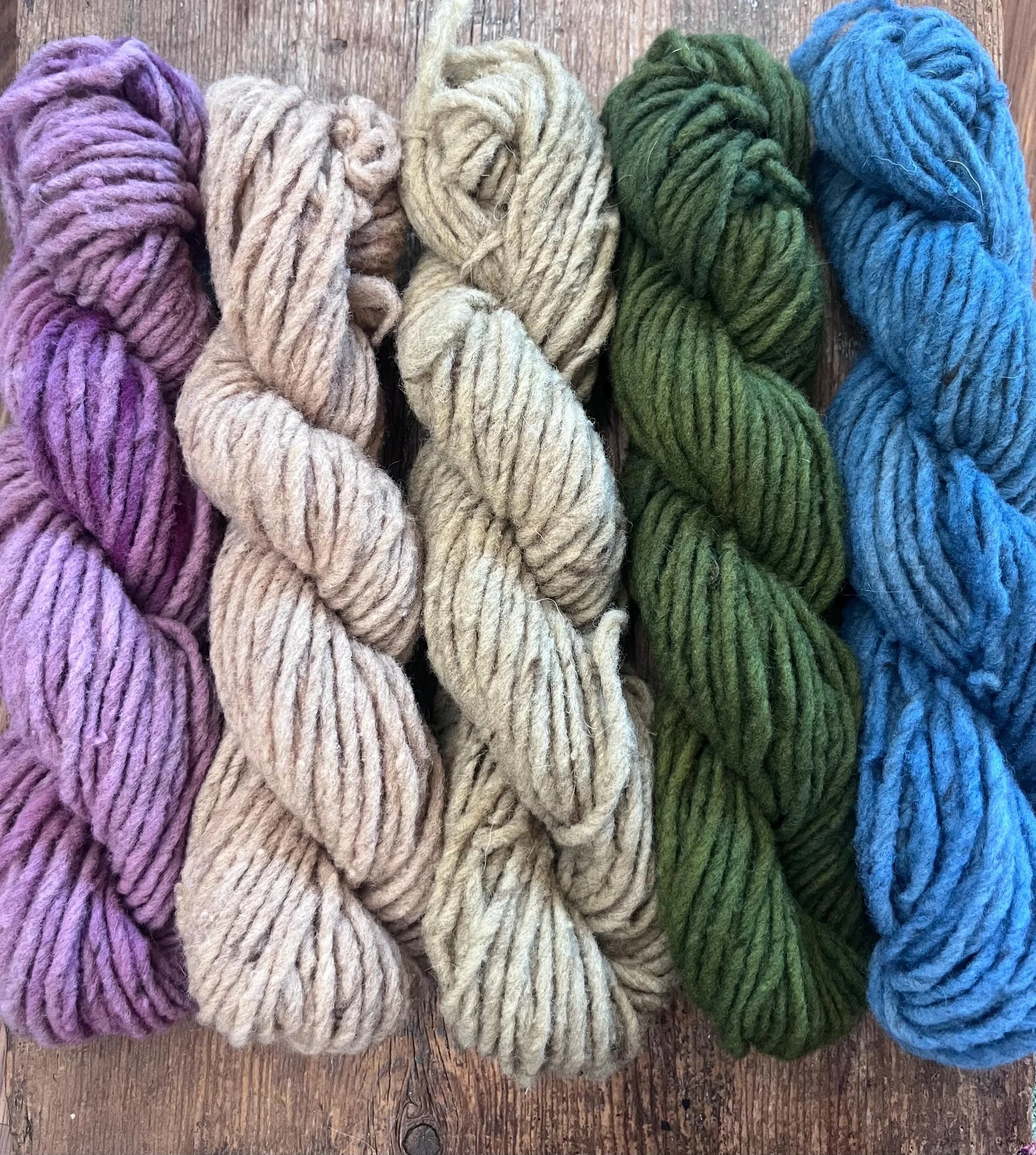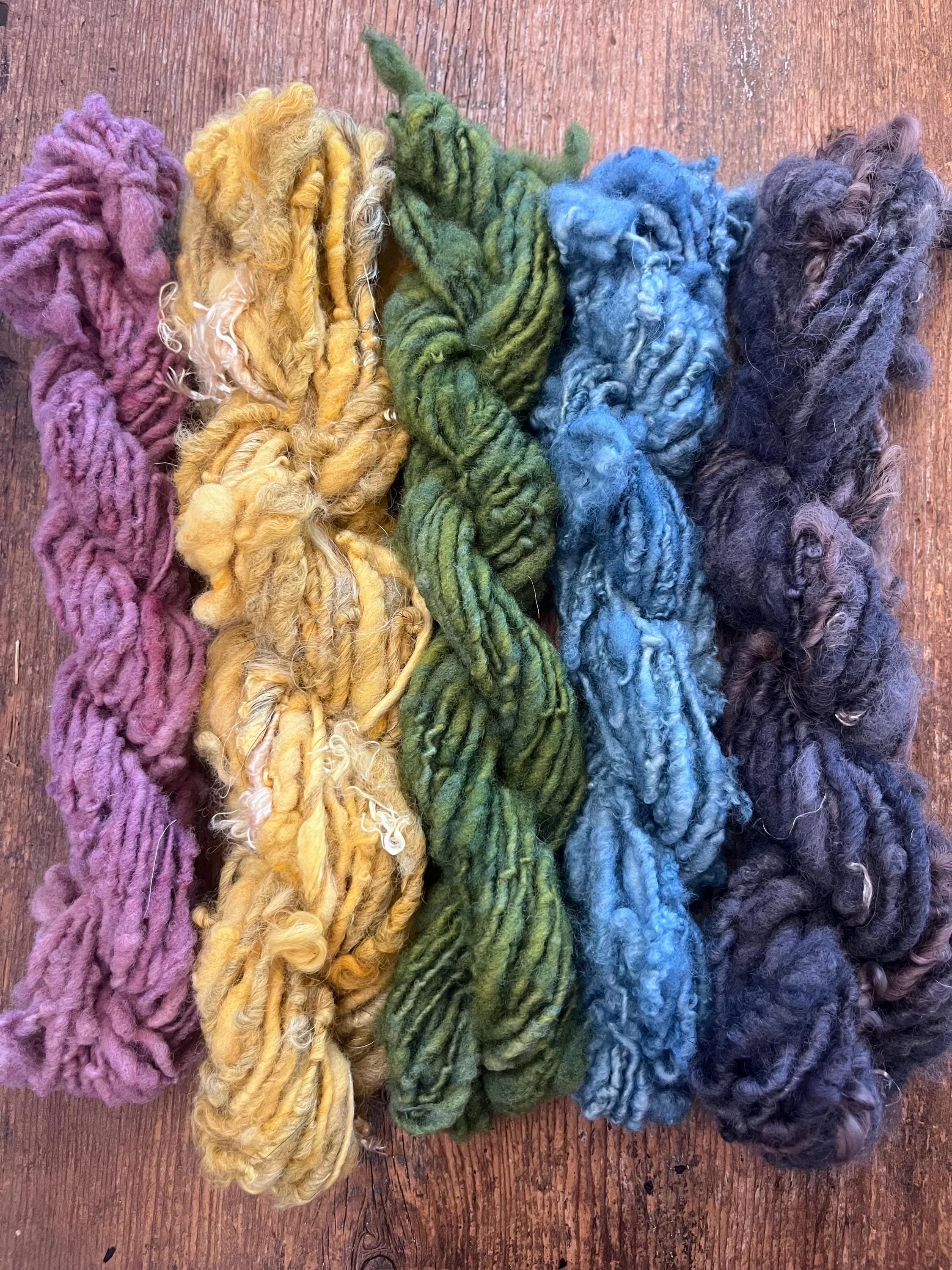 Naturally dyed rainbow handspun art yarn set, 100 yards