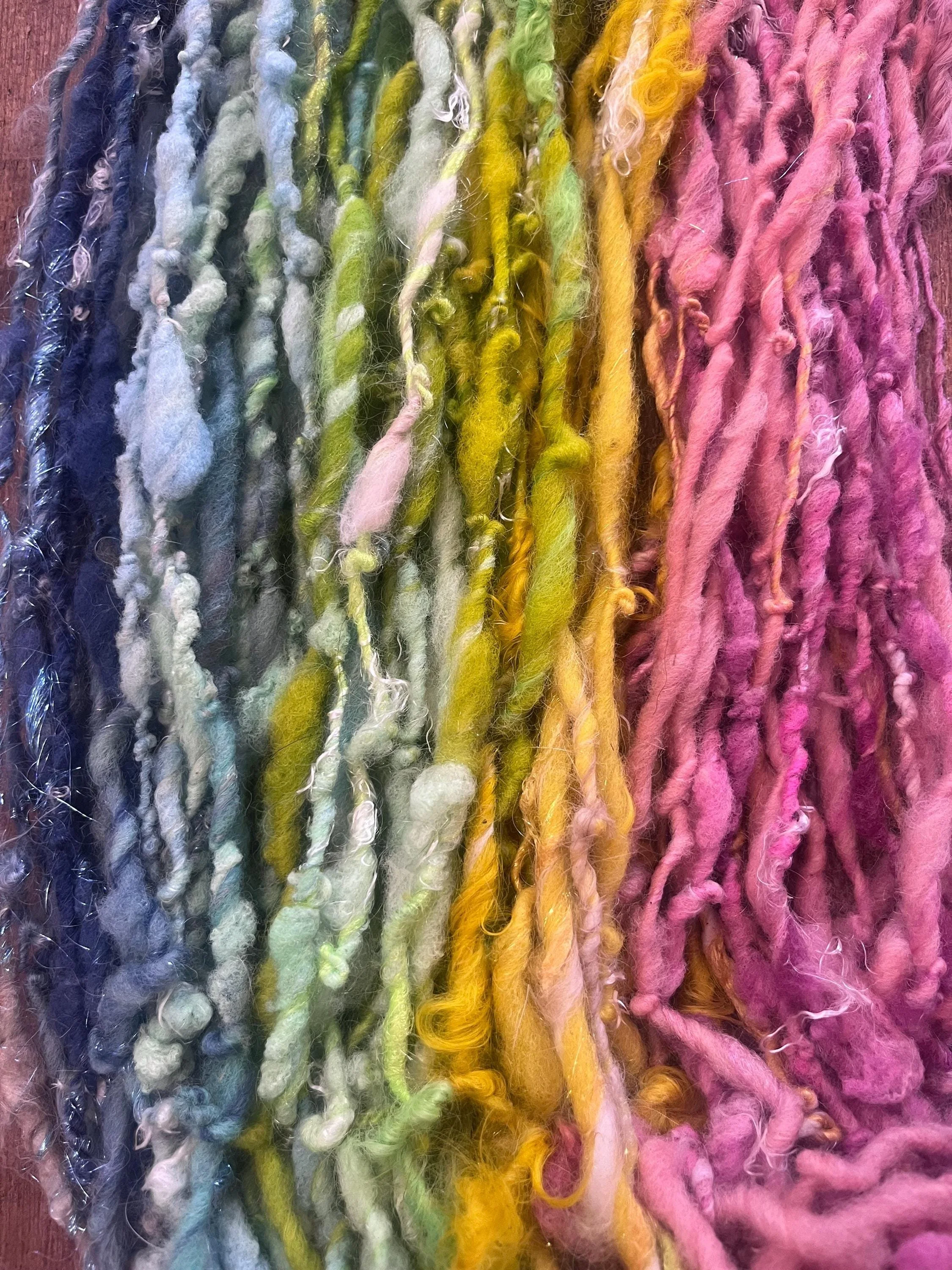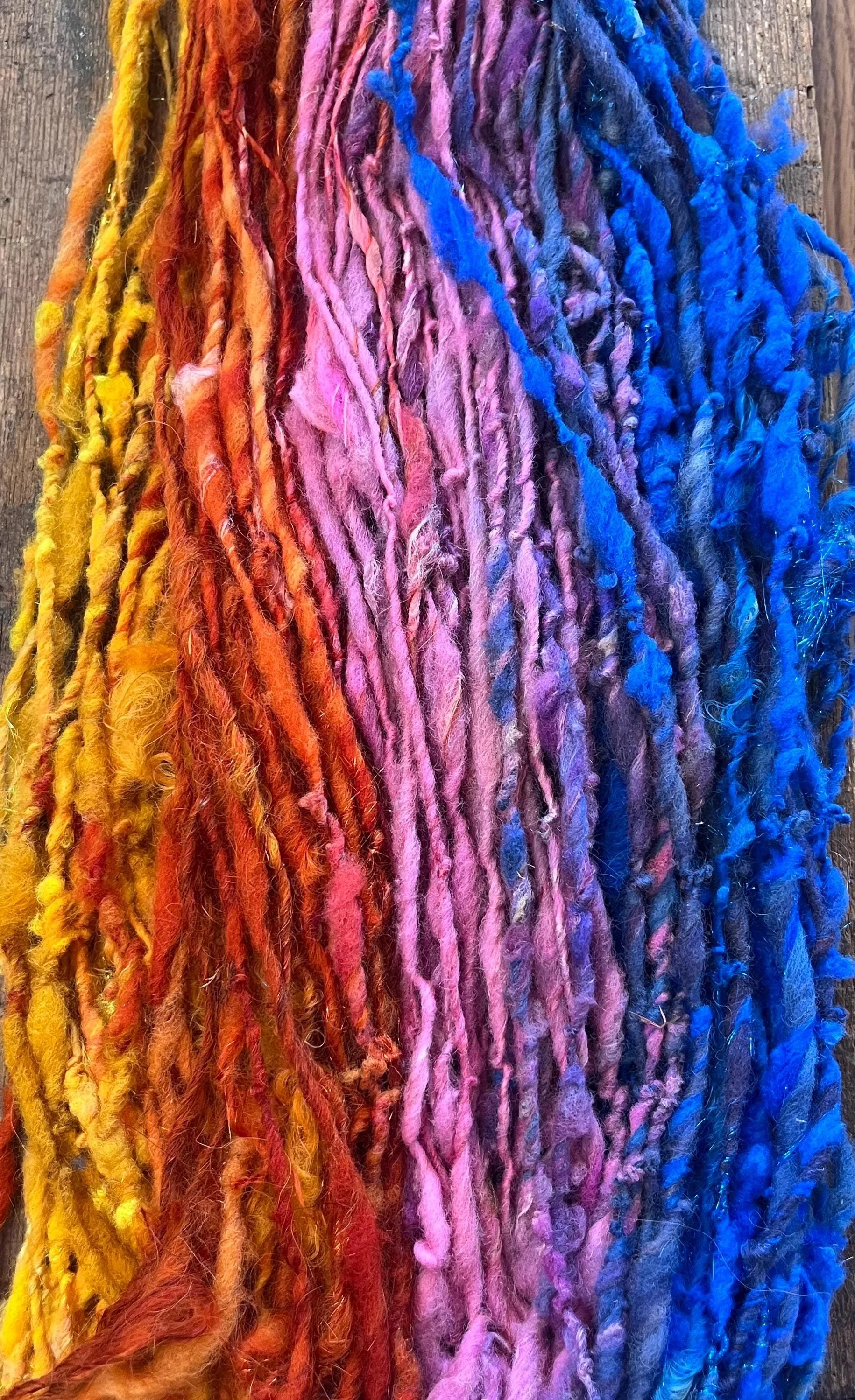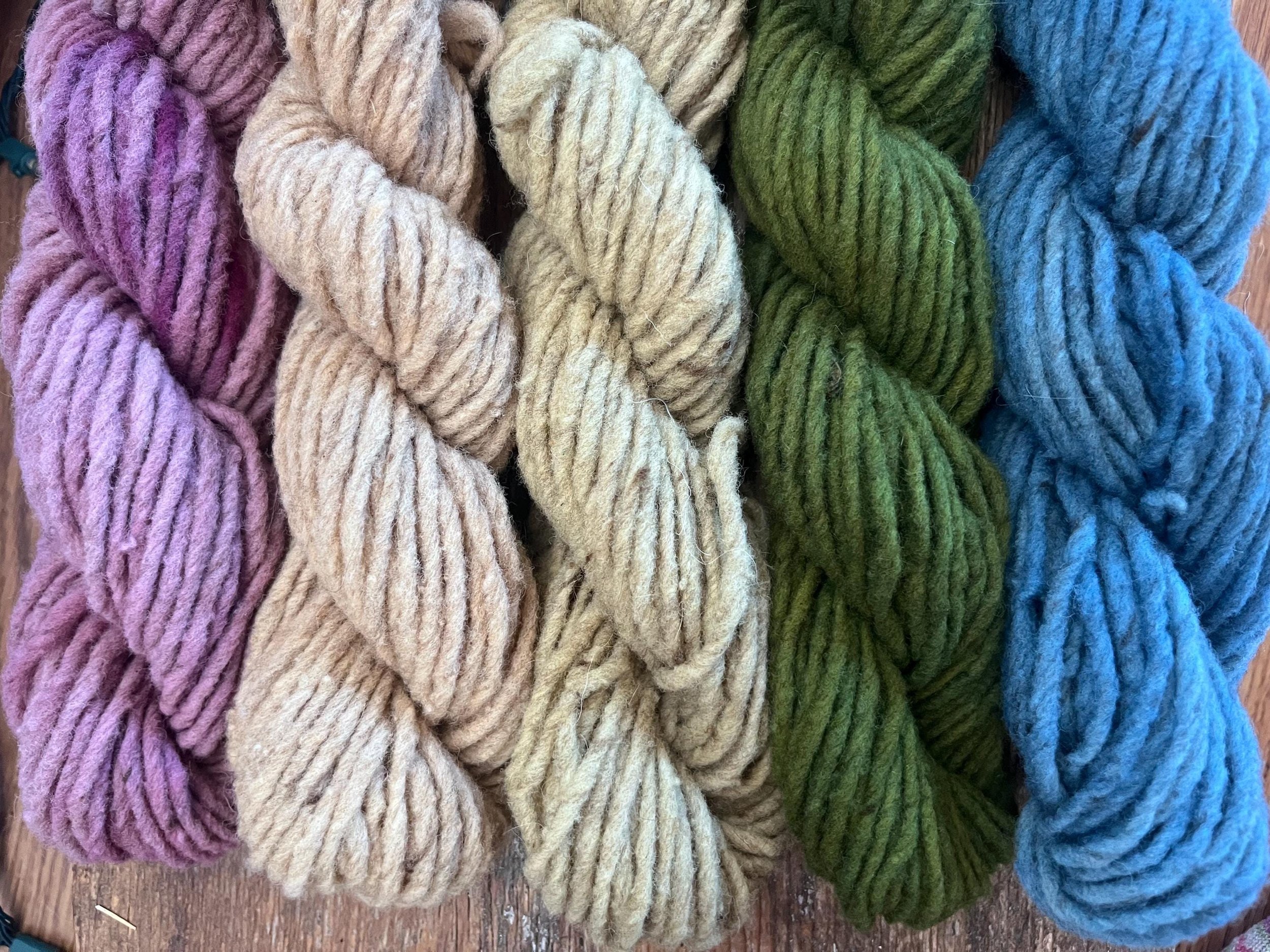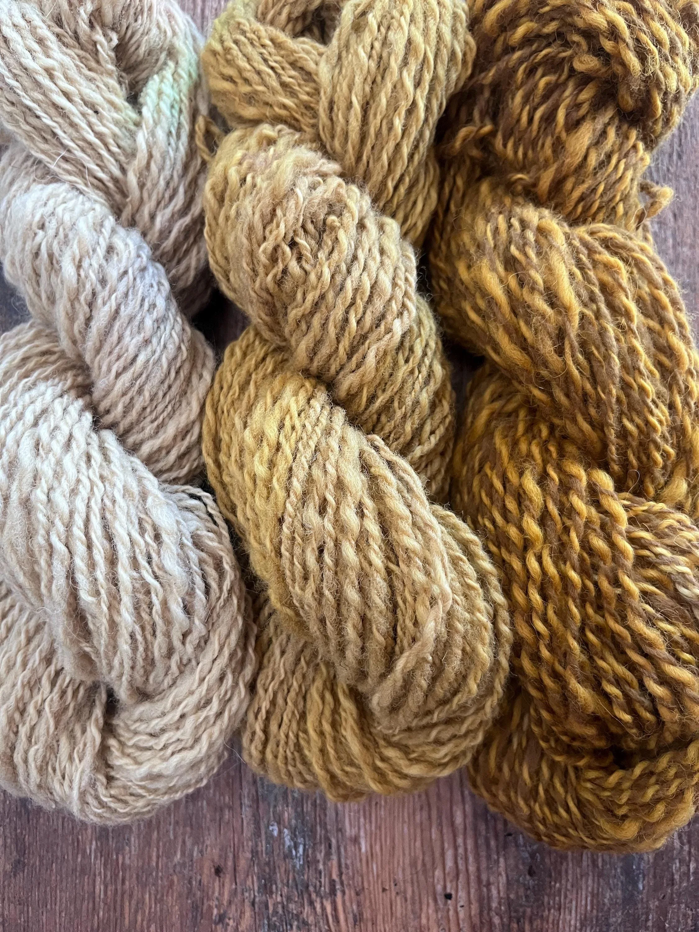 Naturally dyed rainbow handspun art yarn set, 100 yards
